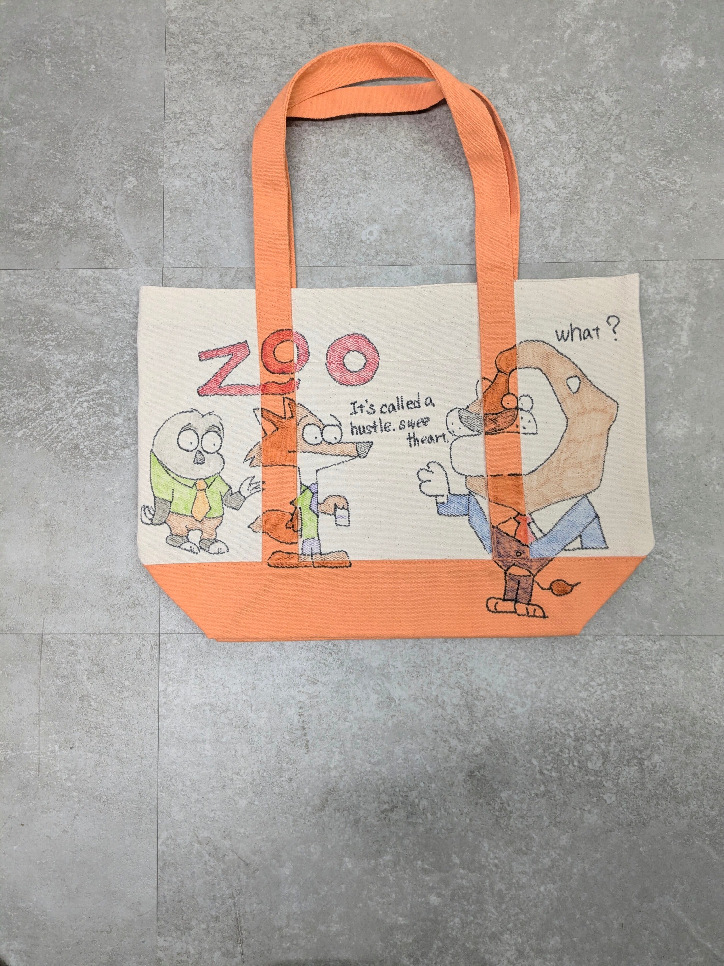 Hand Drawing Canvas Tote Bag Large "zoo"
