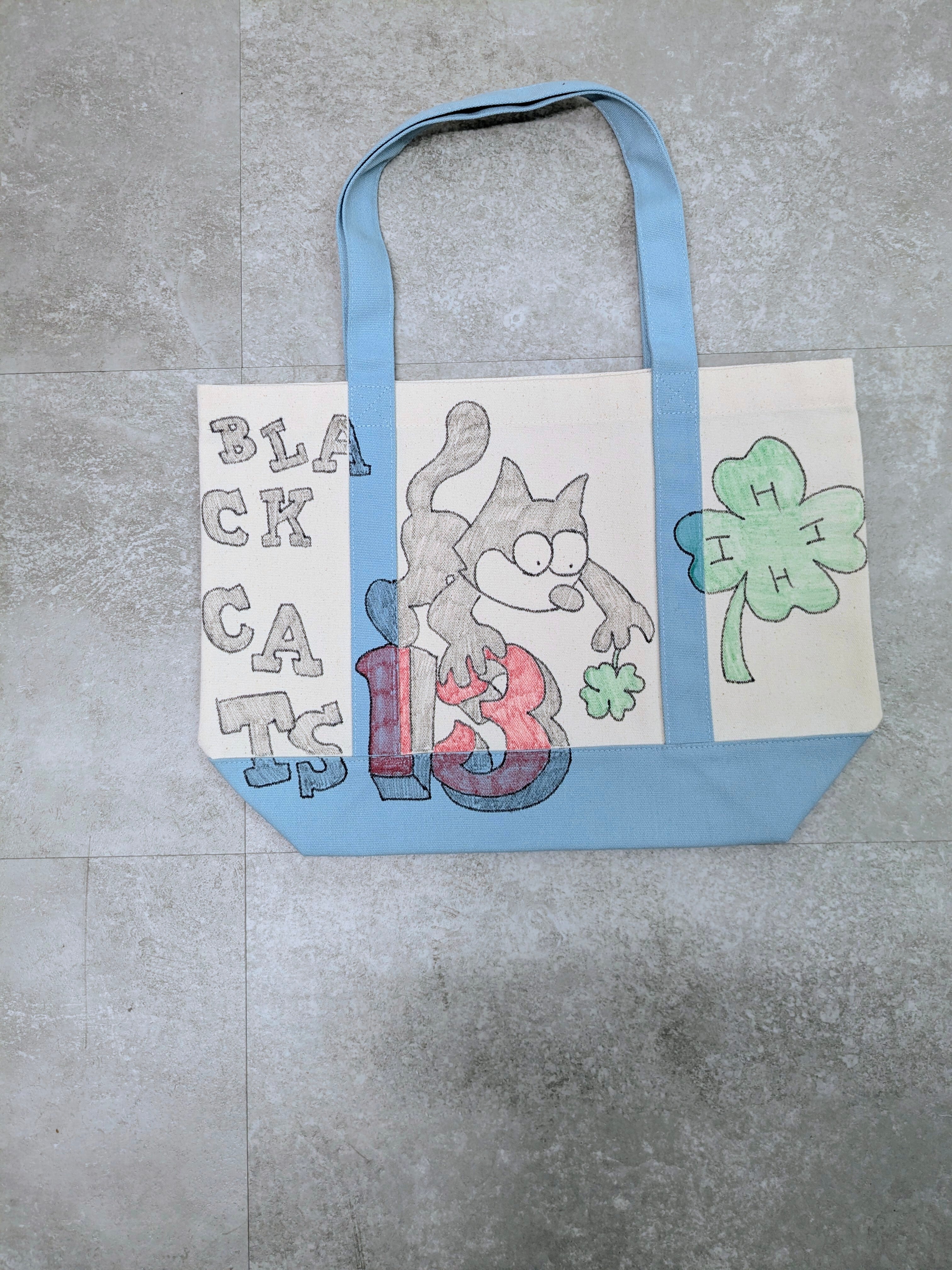 Hand Drawing Canvas Tote Bag Large "black cat"