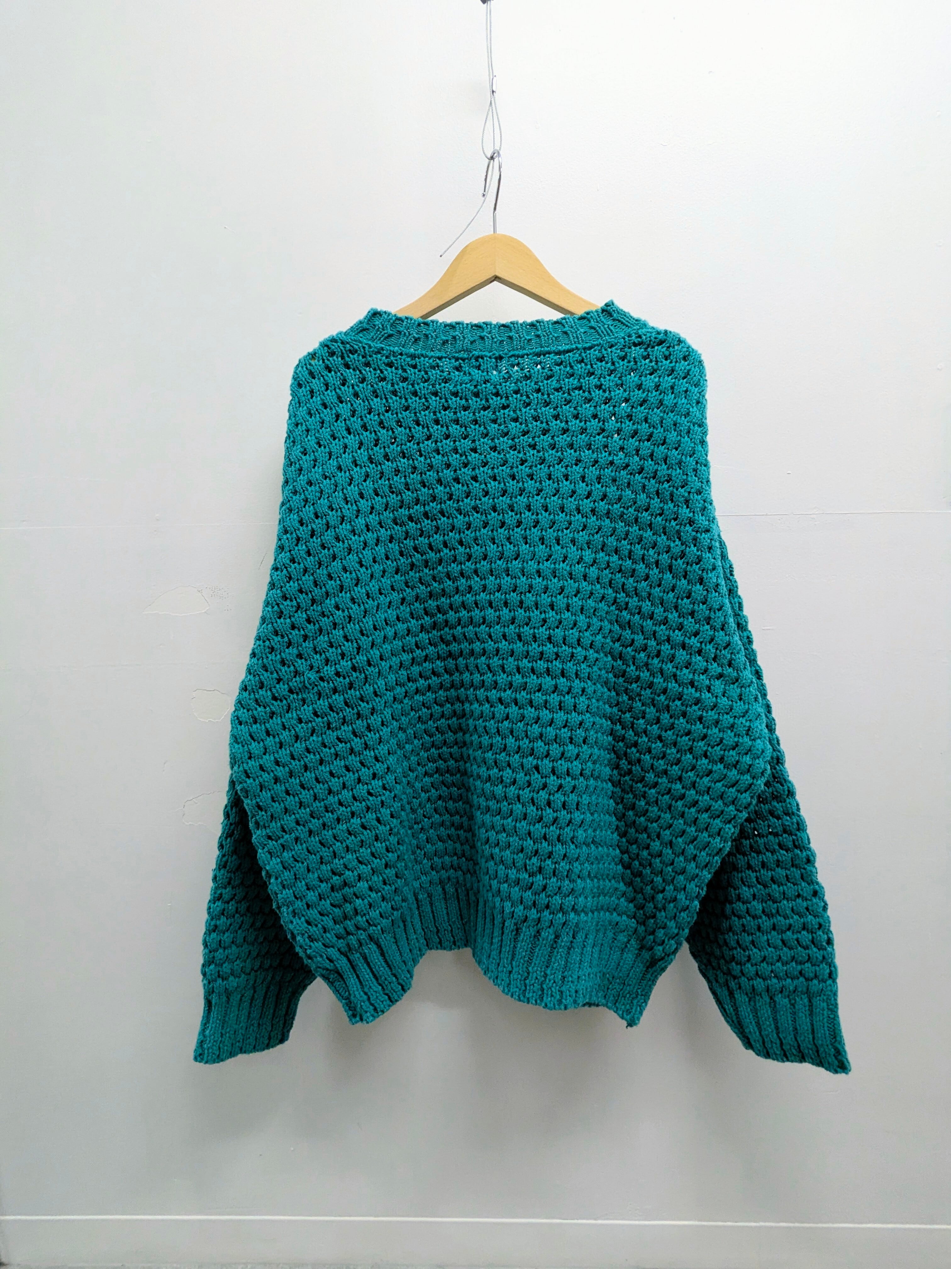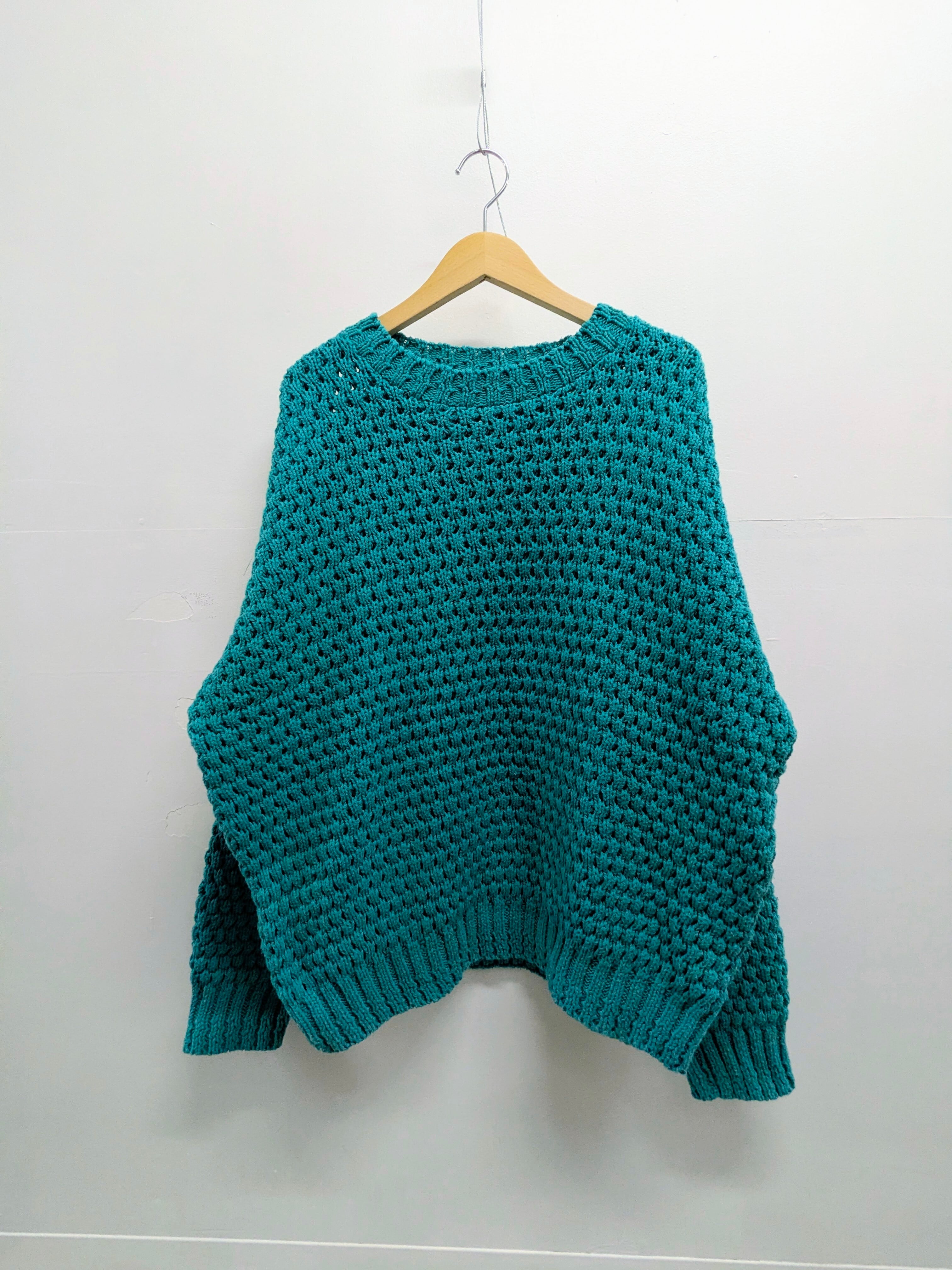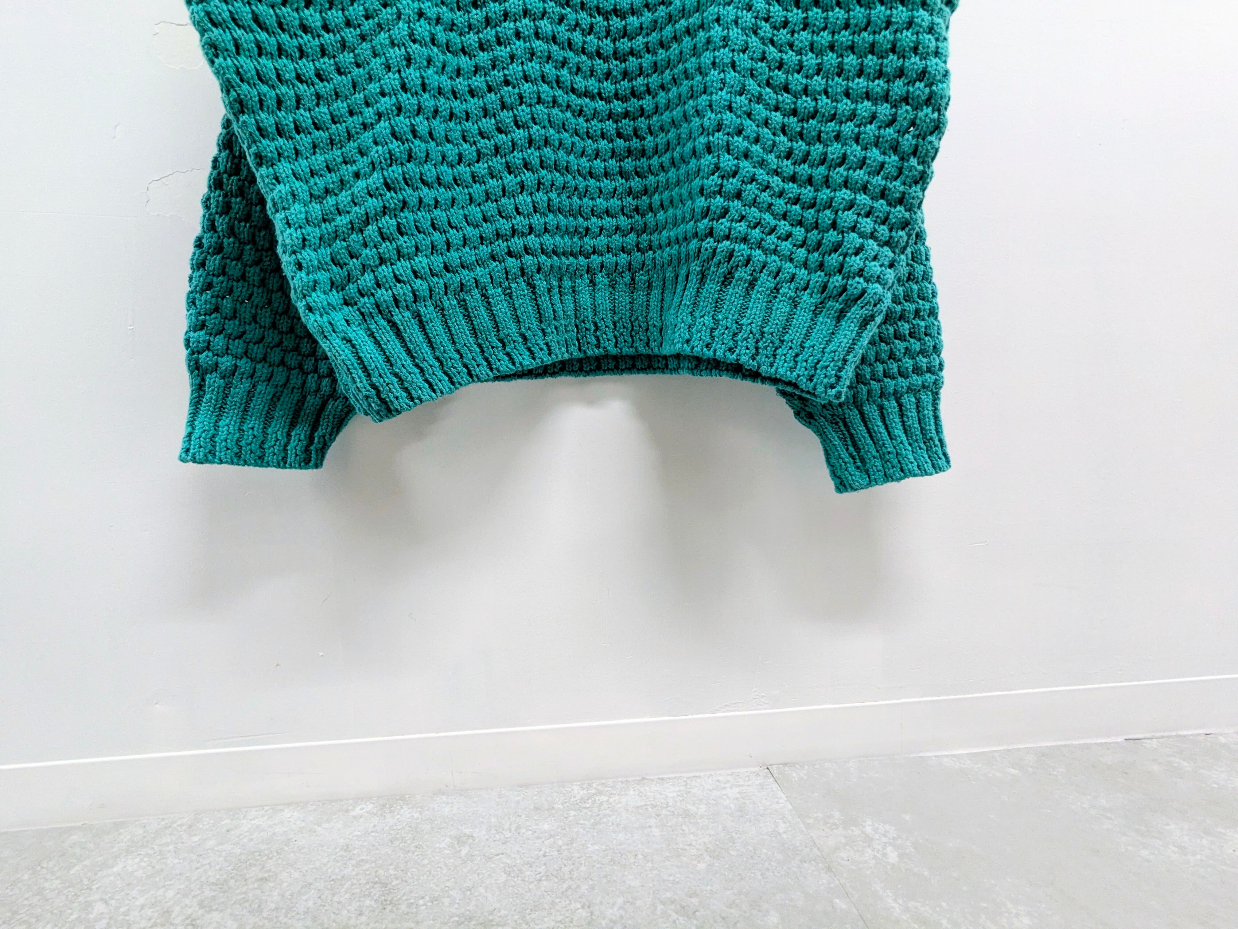ざっくりとした編み方になっているので、インナーの色が隙間から見えたりするので、インナーによって表情が変わるアイテム。サイズはゆったりめに着ていただけます。アメリカ製のコットンニットとなっています。