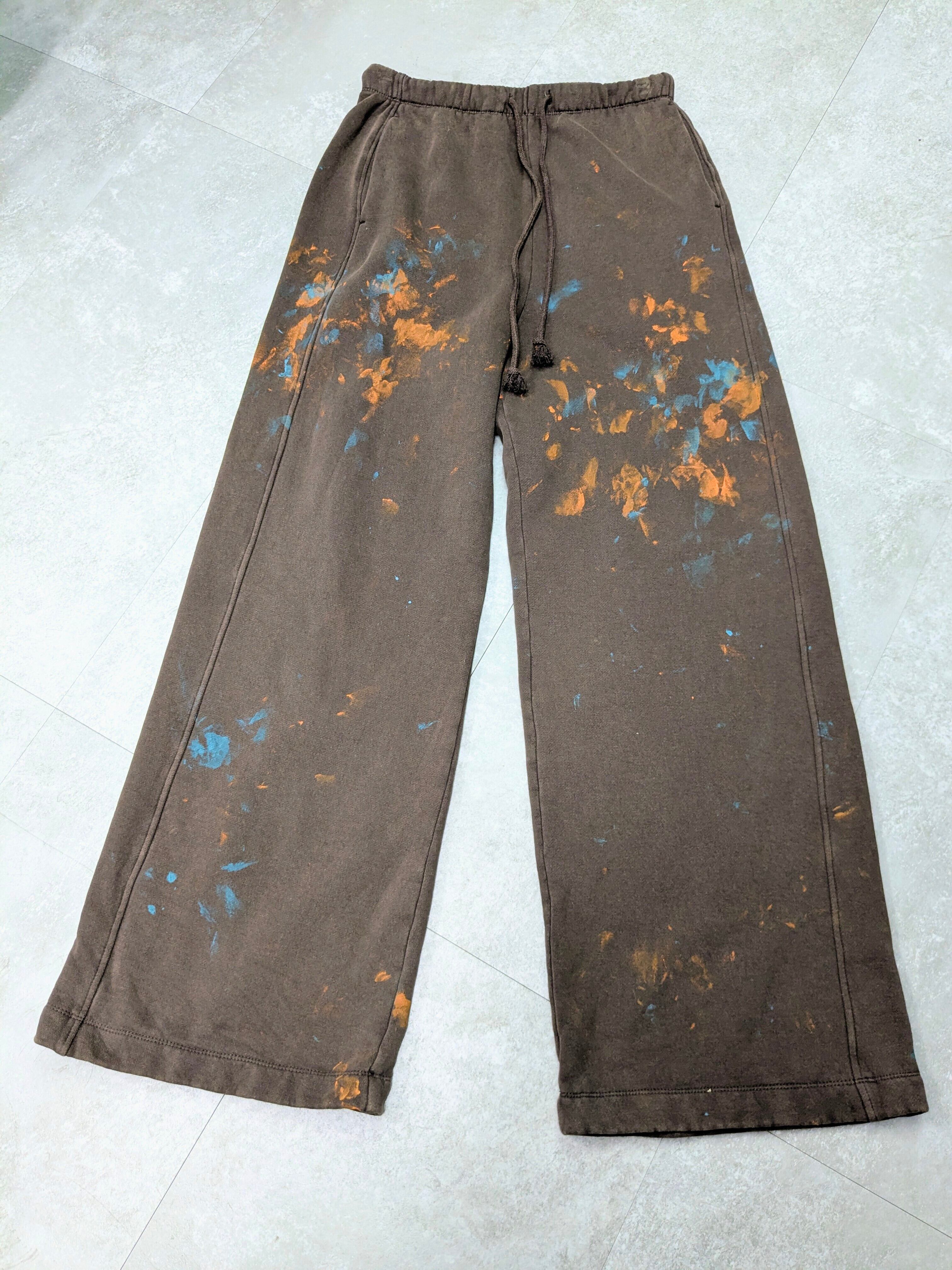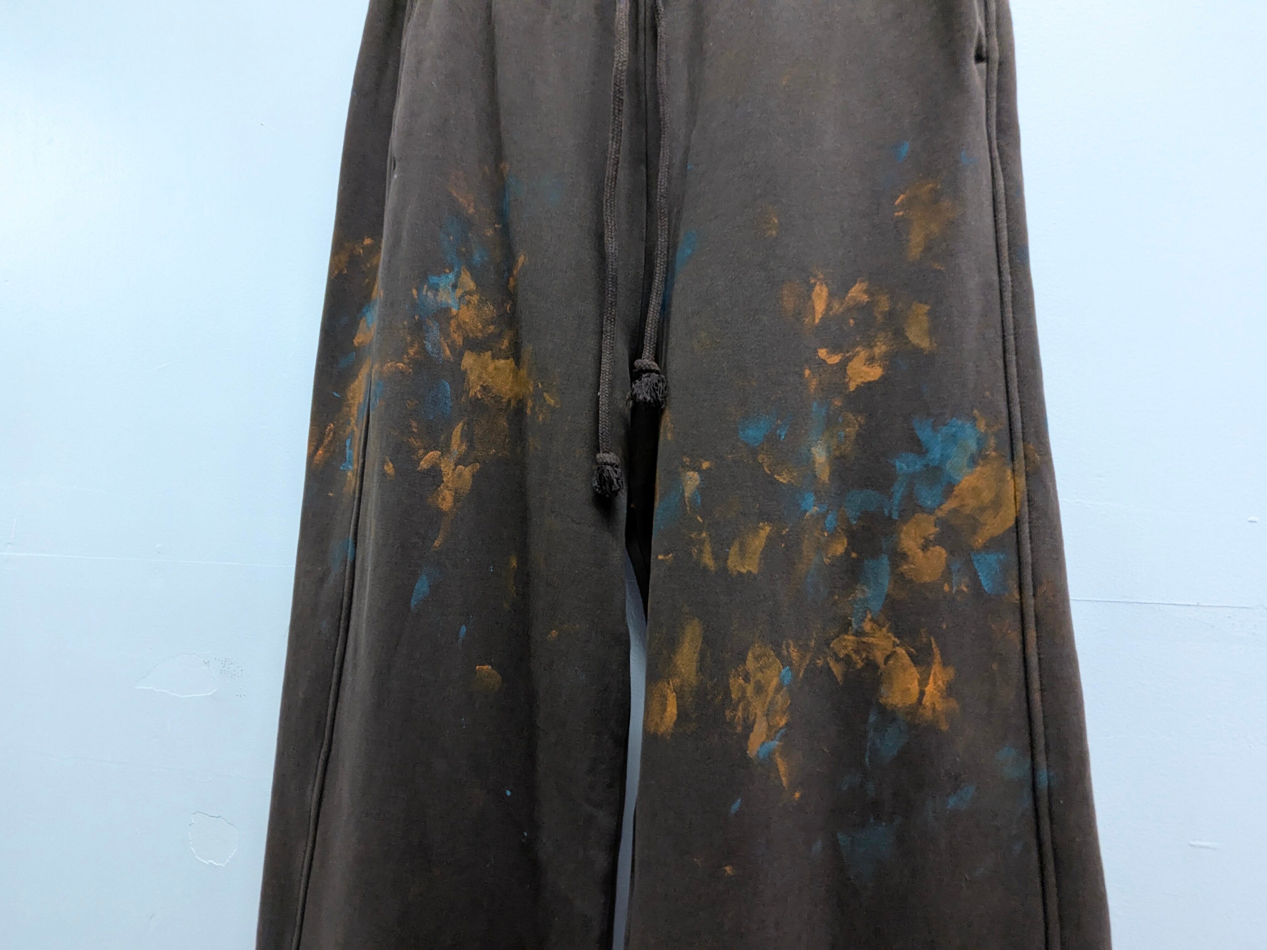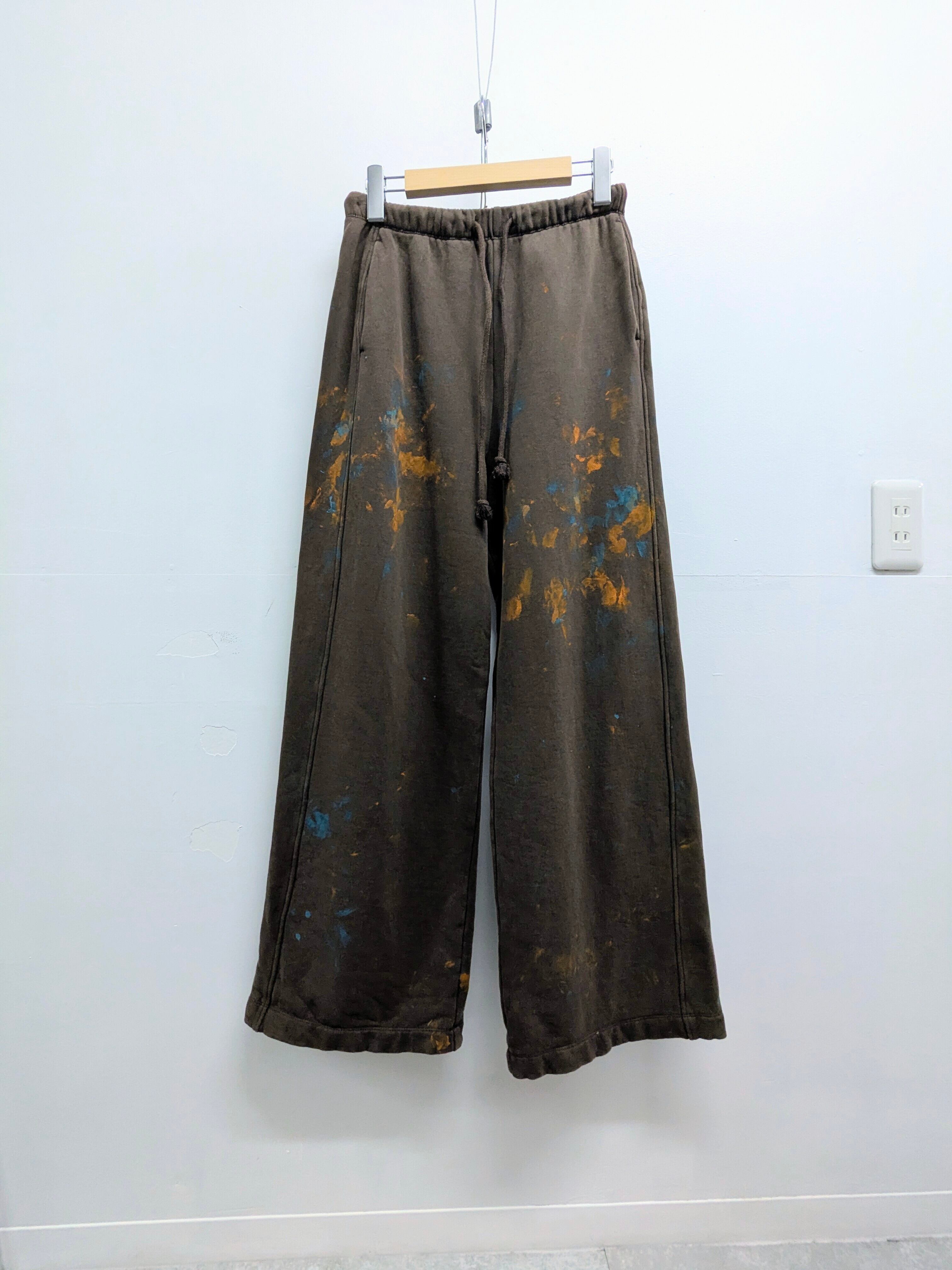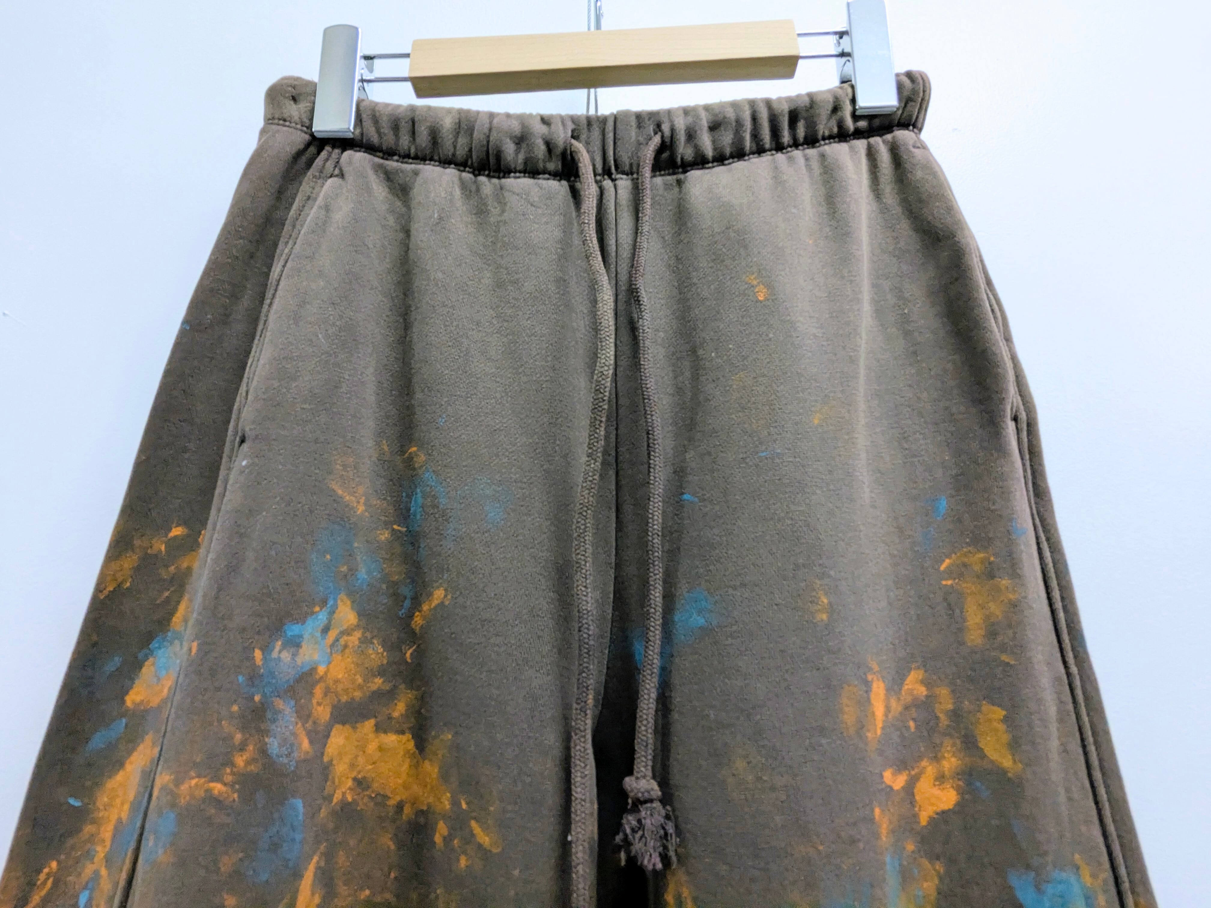 ワイドスウェットパンツにペイントを加えております。シルエットは今っぽい程よいワイドなシルエット。