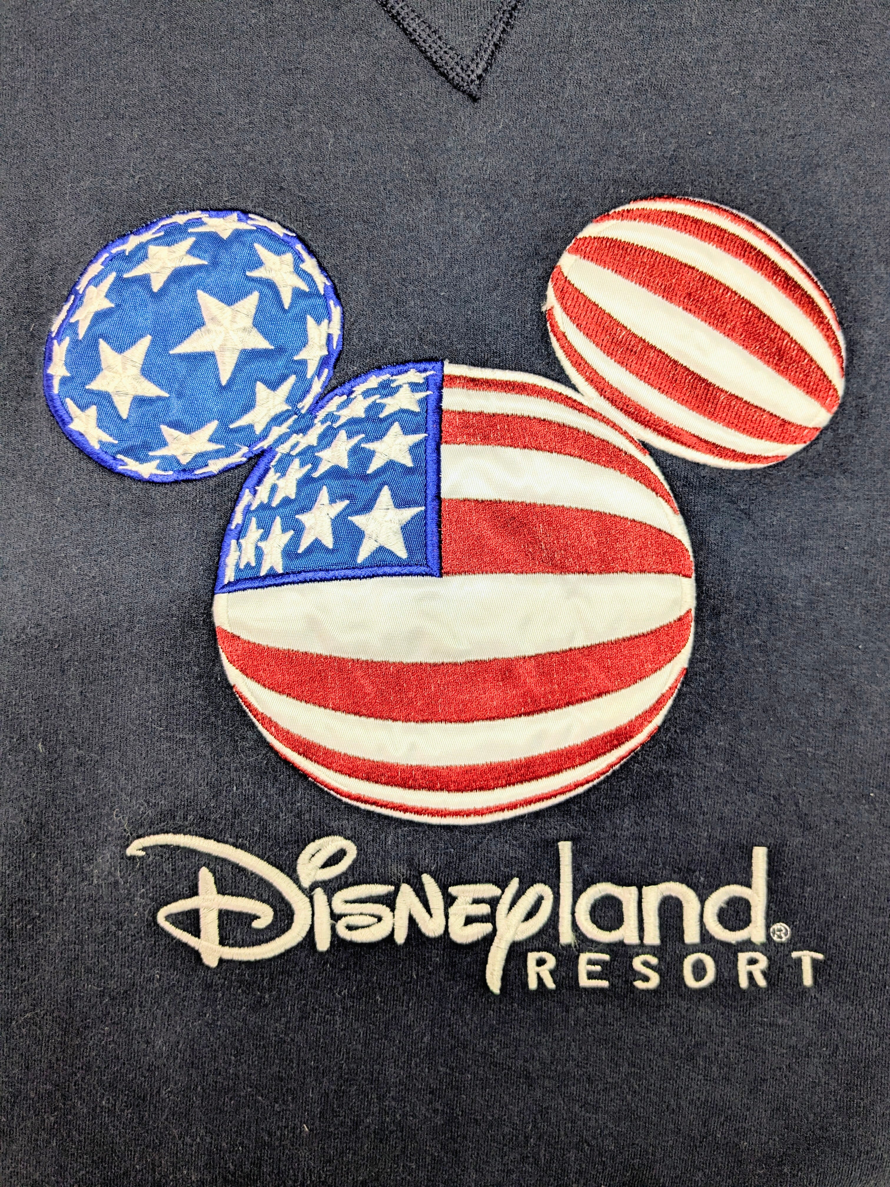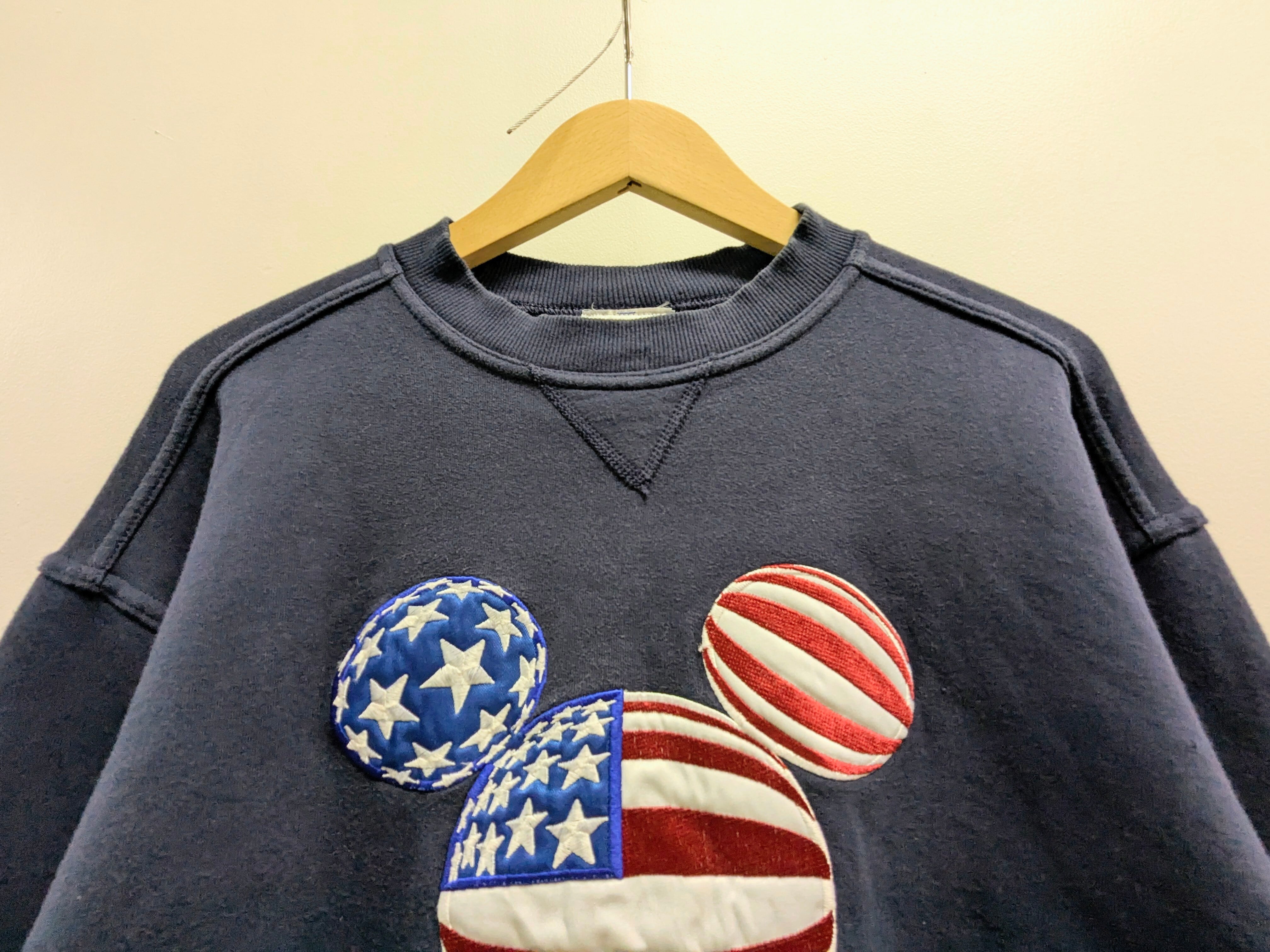 星条旗をミッキーのシルエットにかたどられたパッチと刺繍が可愛い一着。少し肉厚な素材感となります。キズあり。