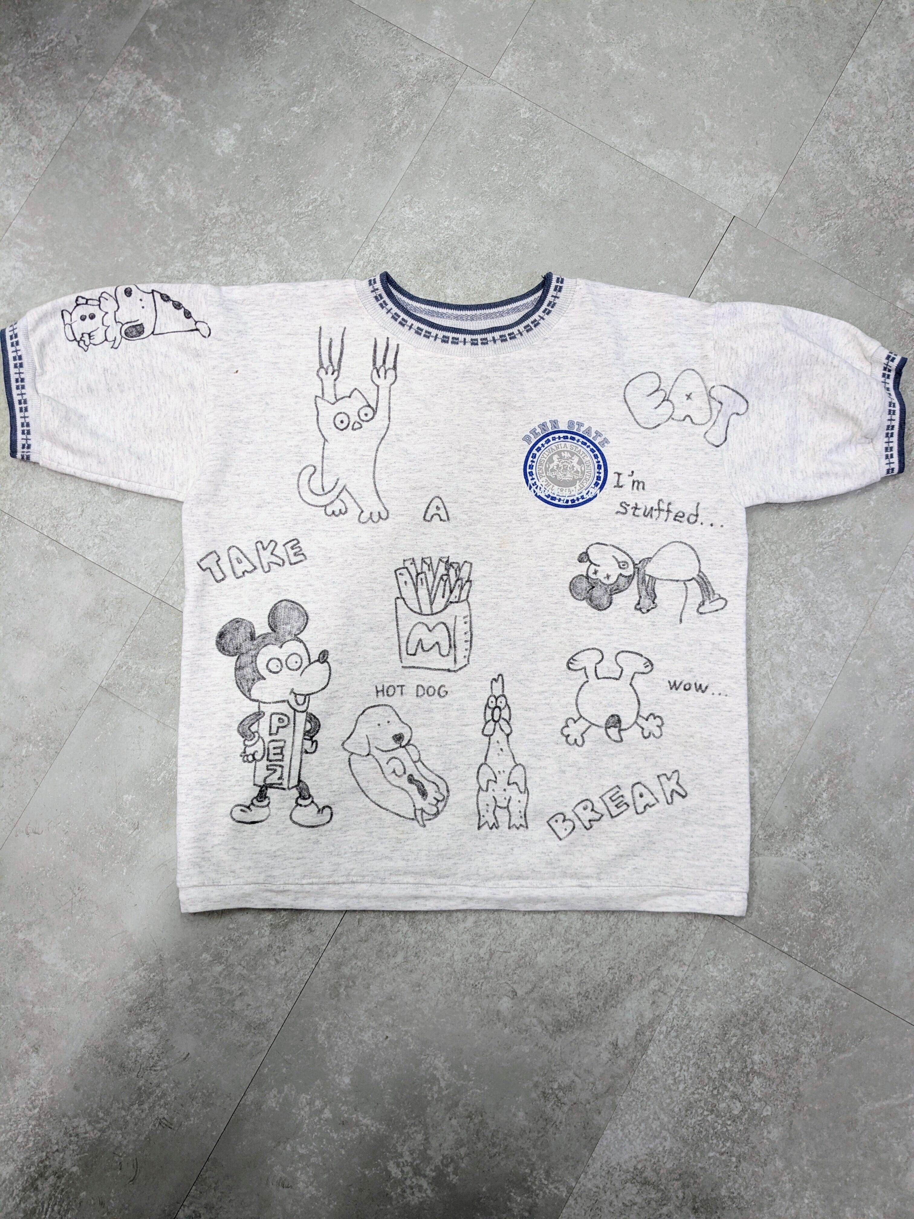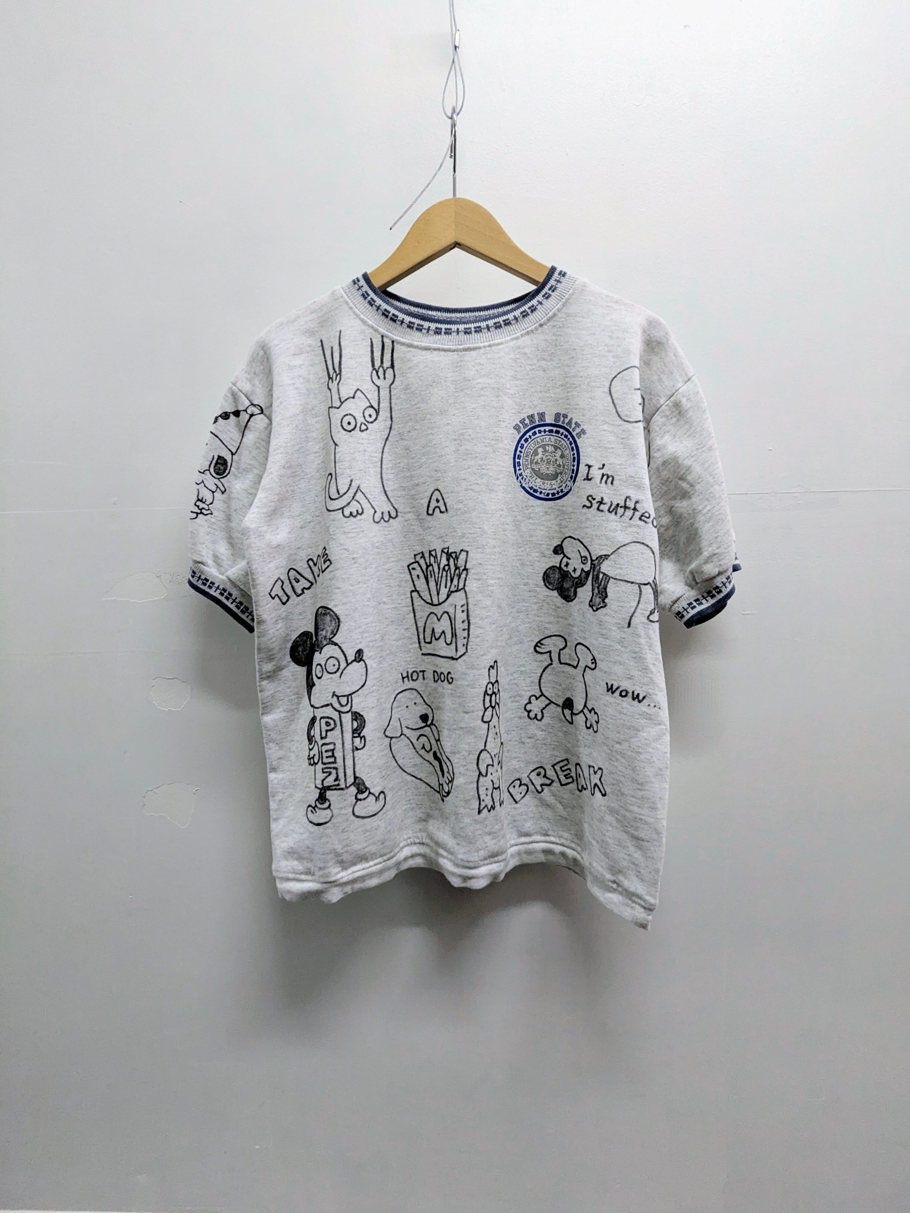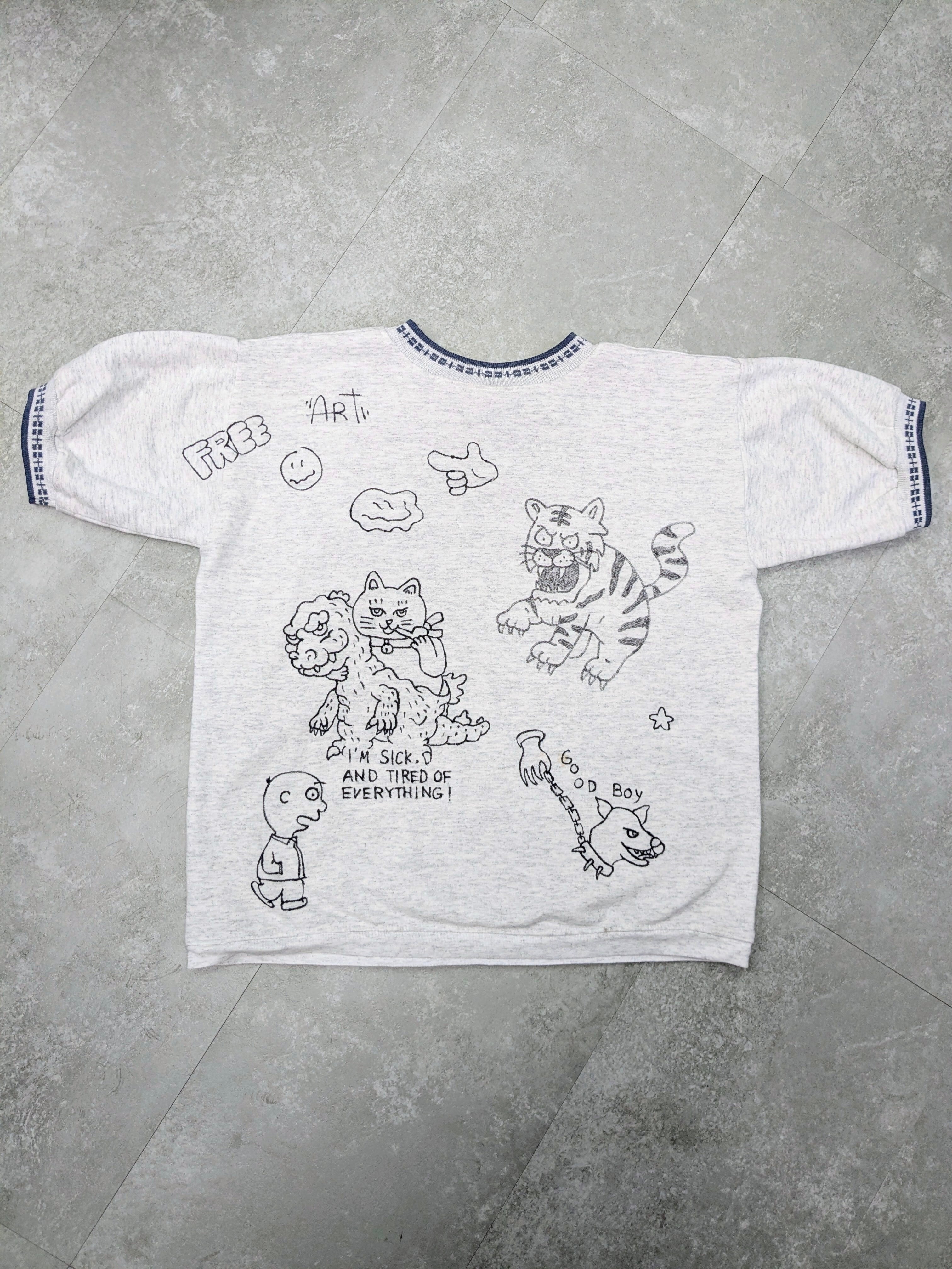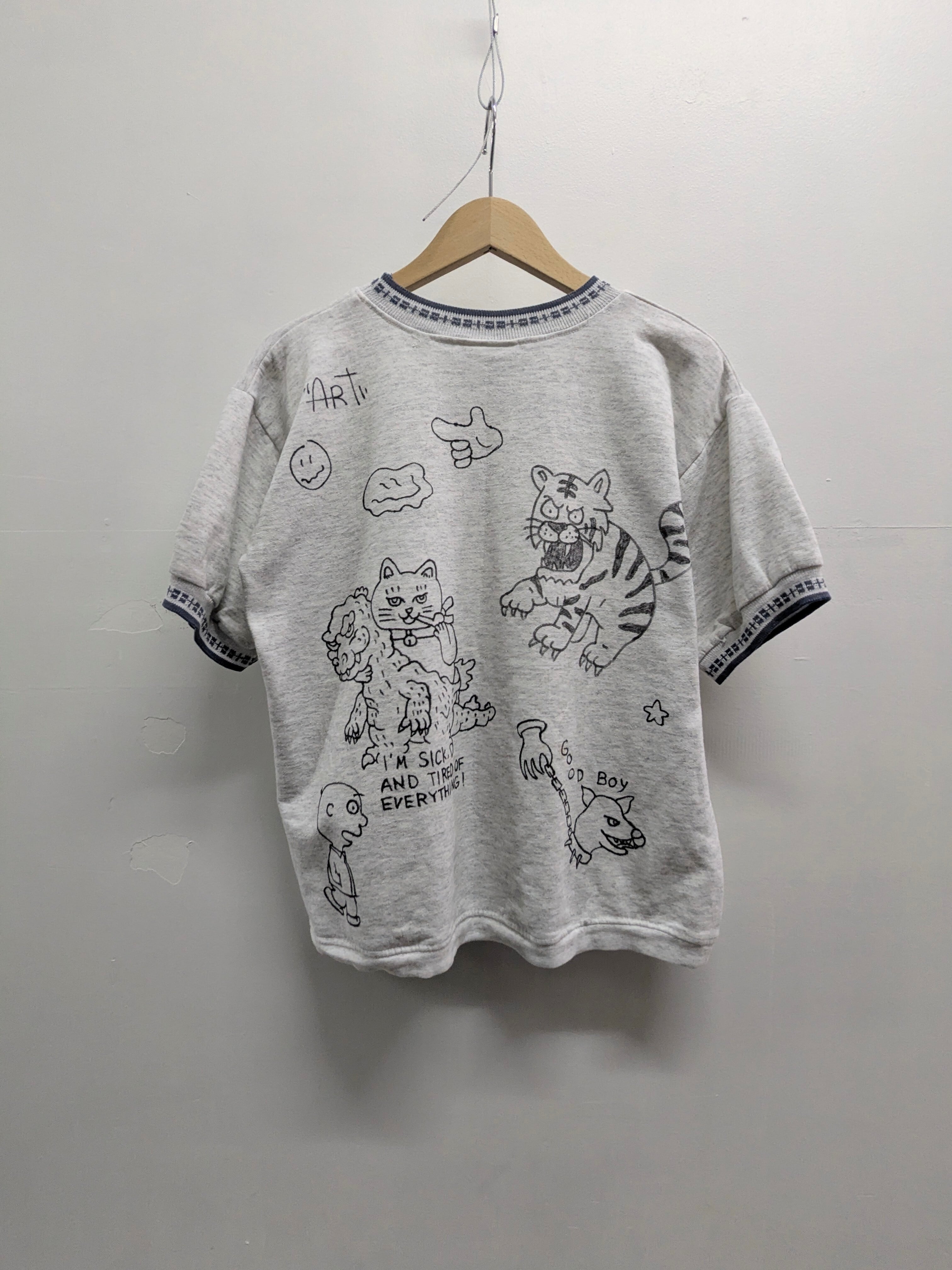 半袖のスウェットに手描きにてイラストを加えています。全て手描きのため一点物となっております。