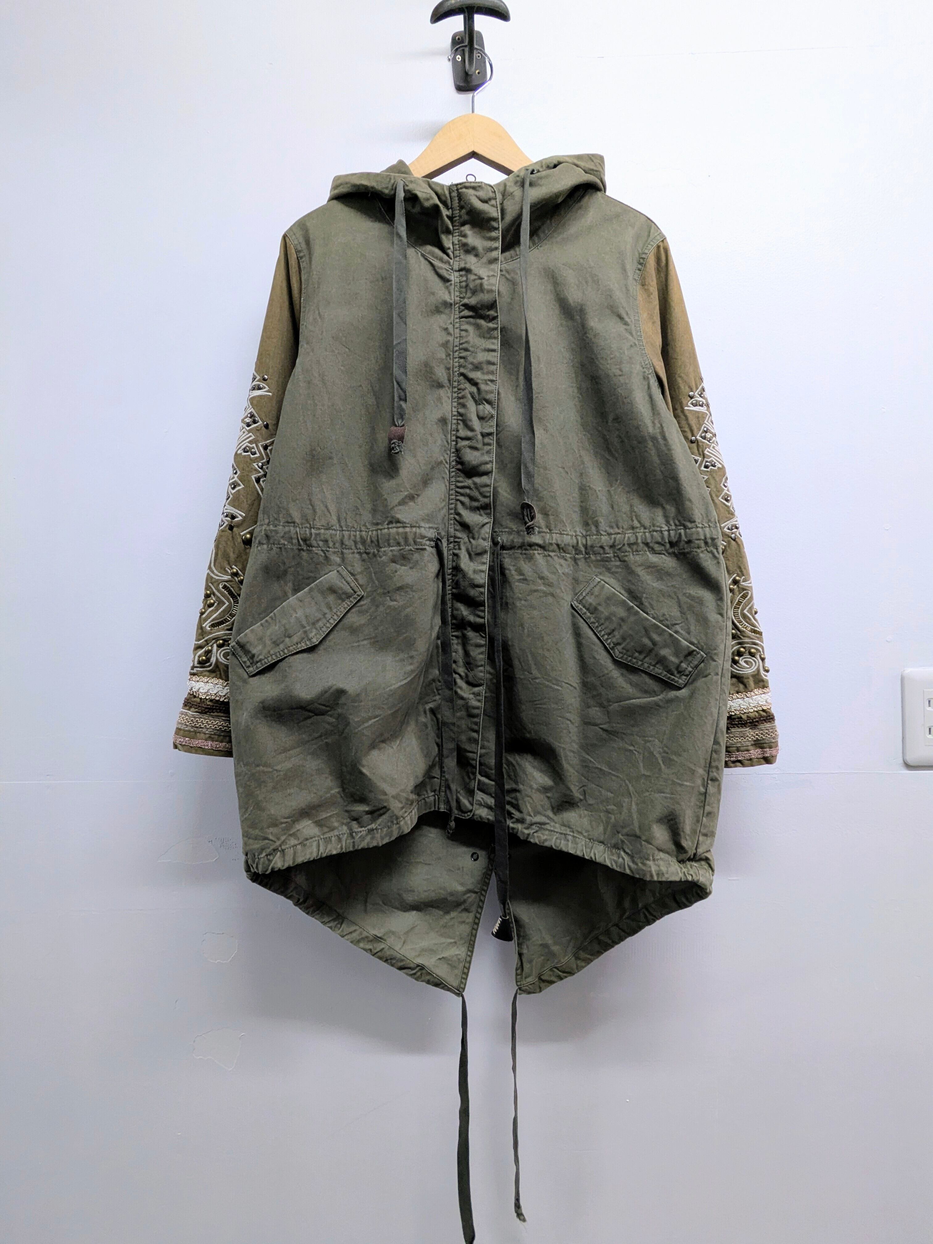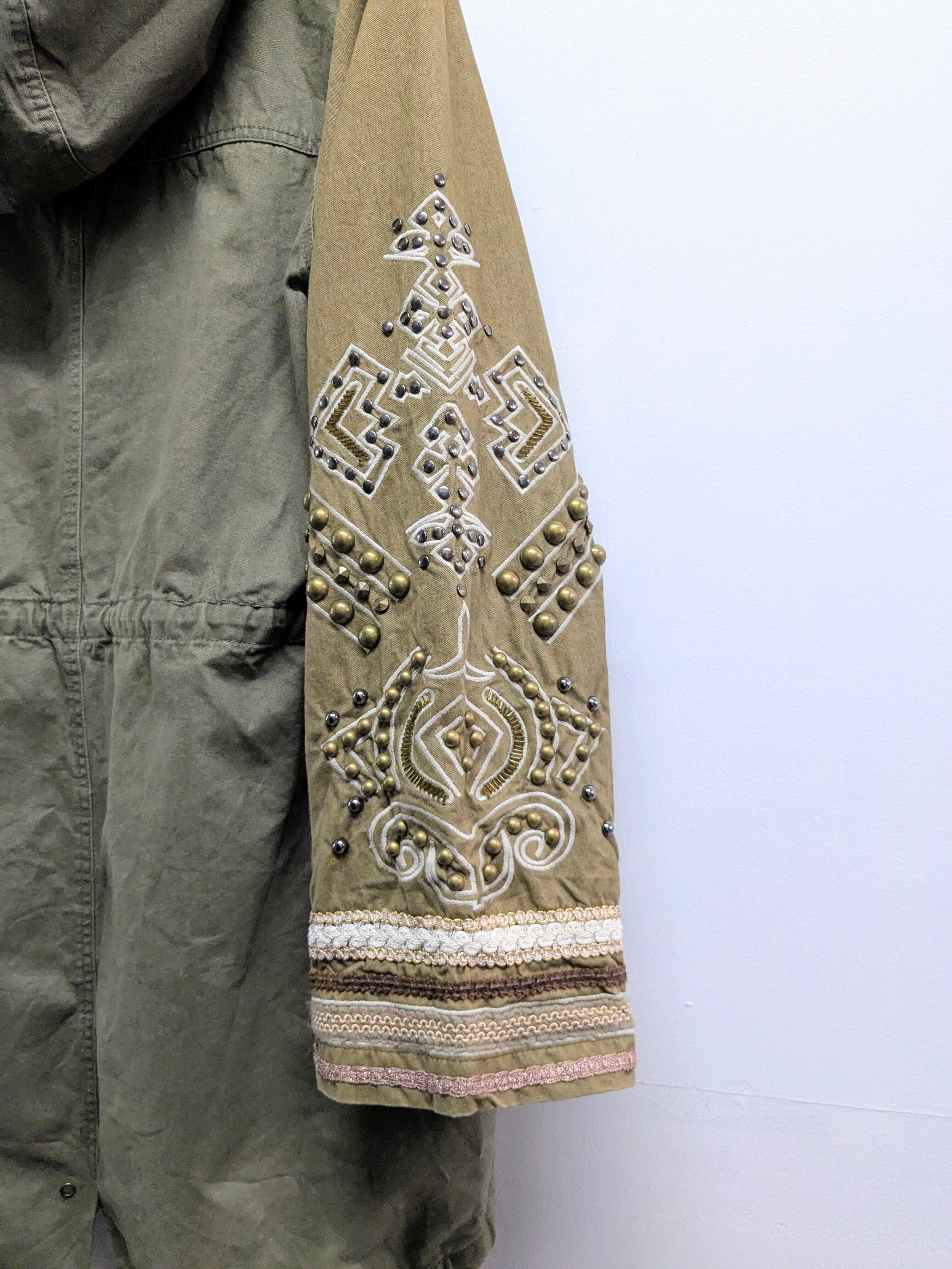 Studs Embroidered Military Coat With Linner