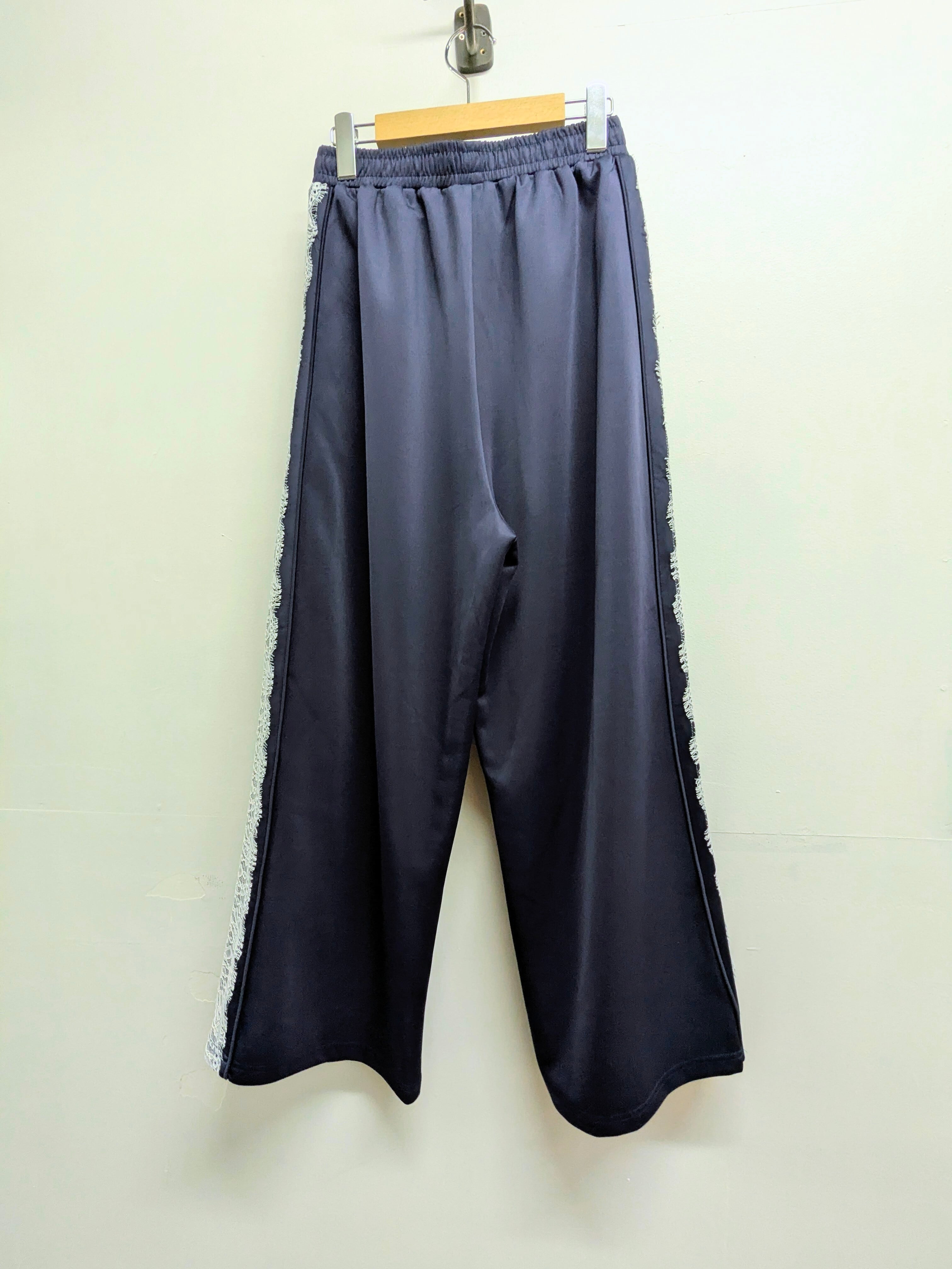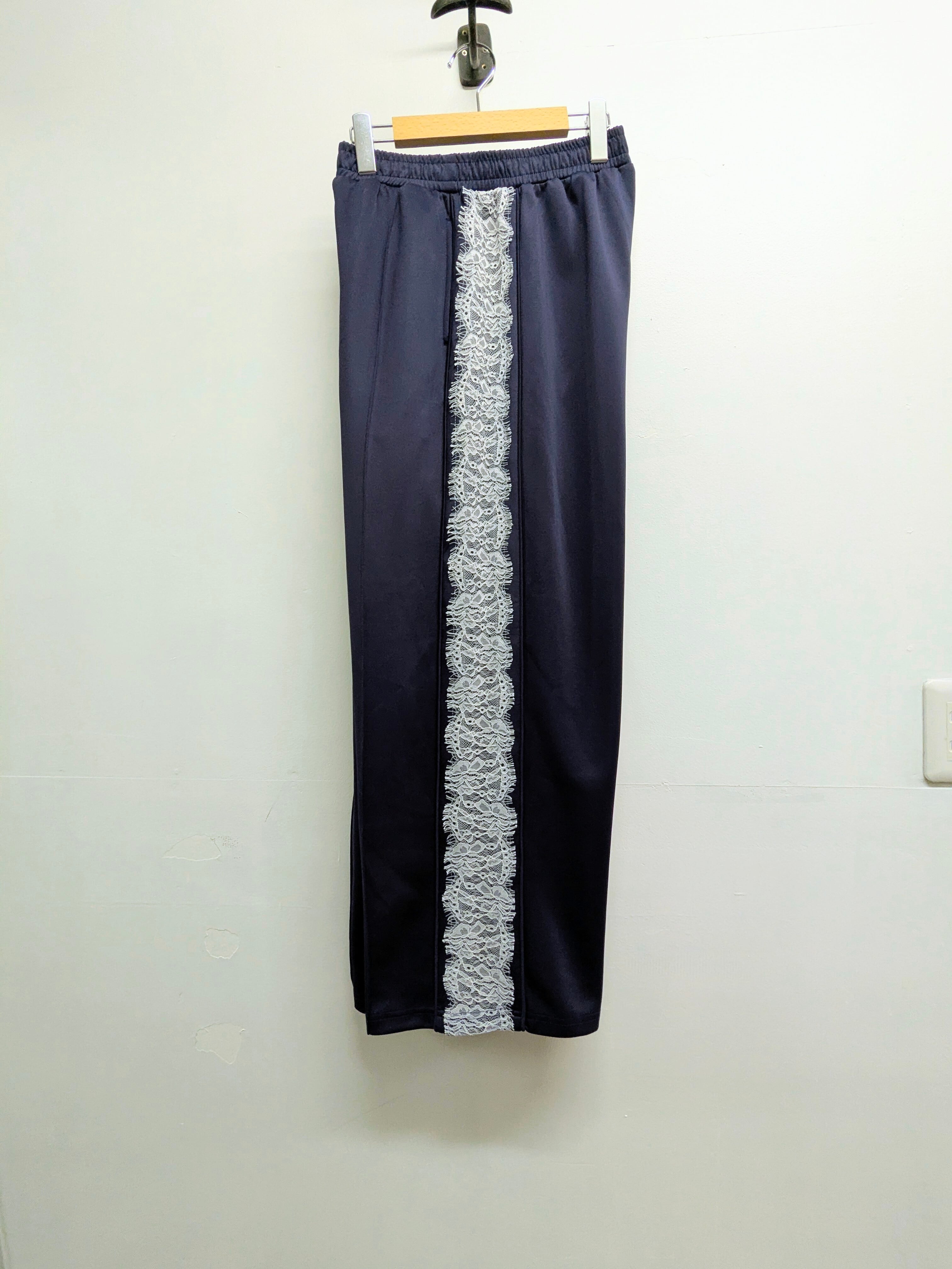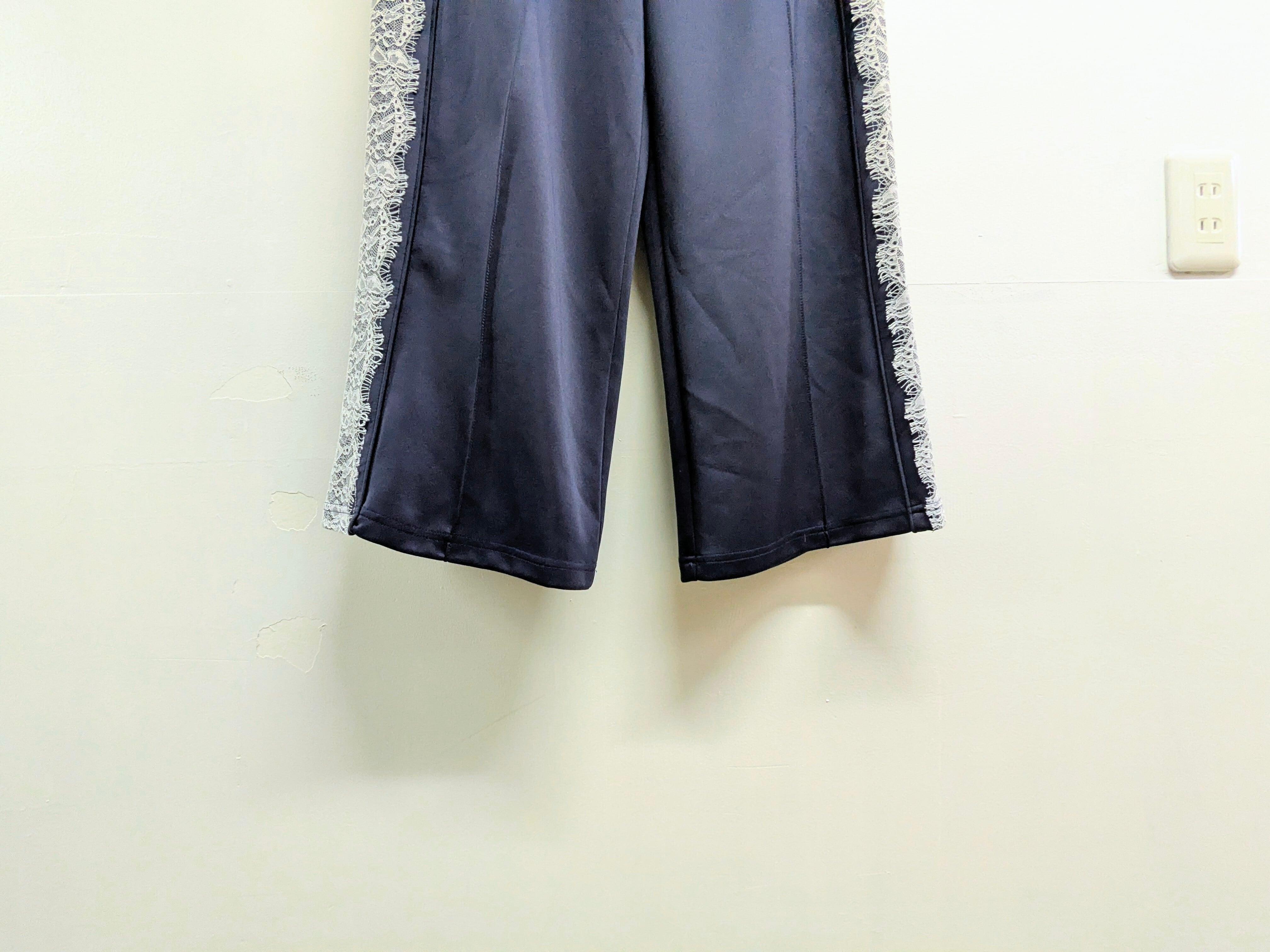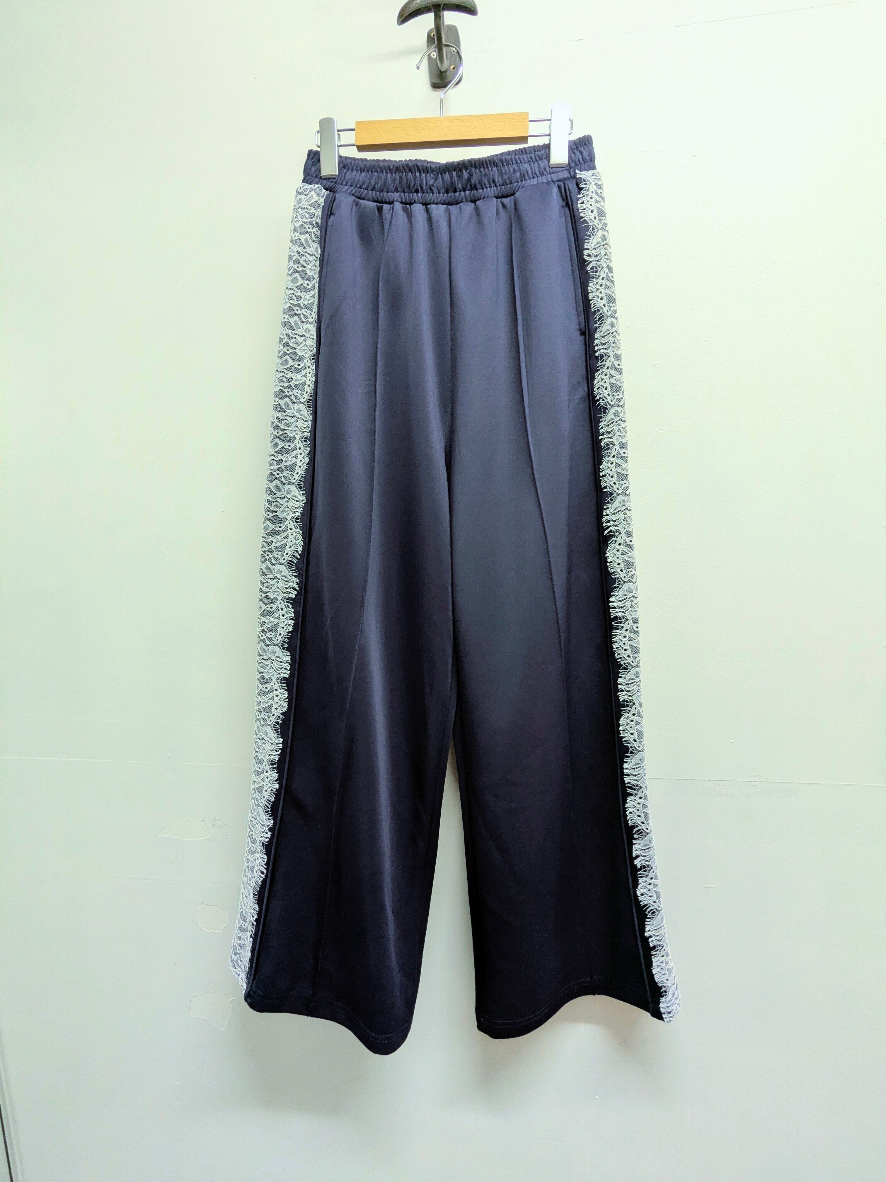 サイドラインがレースになっているトラックパンツ。とても上品さ、可愛さを兼ね備えた一着。他とはかぶらないさり気ない変化のデザイン。