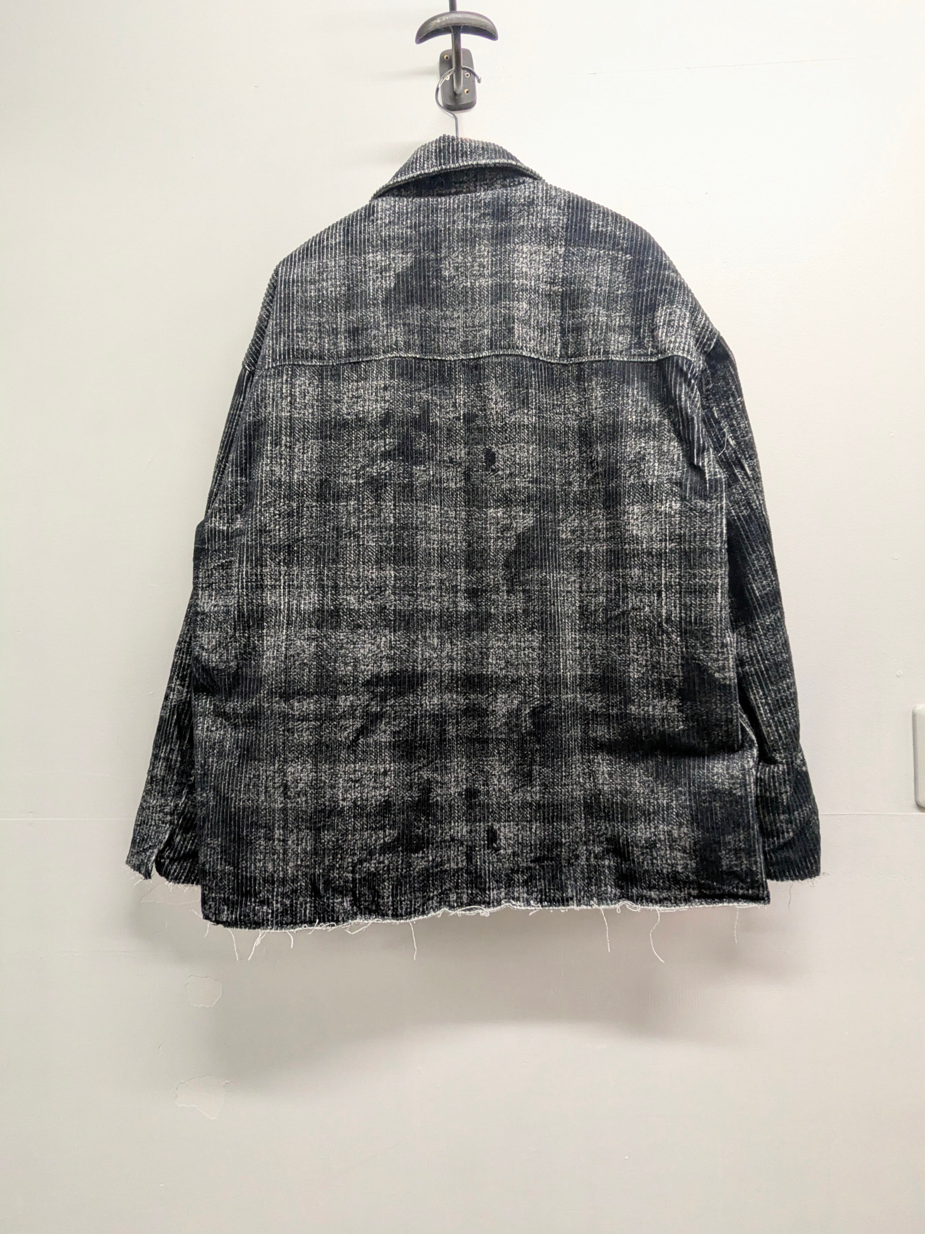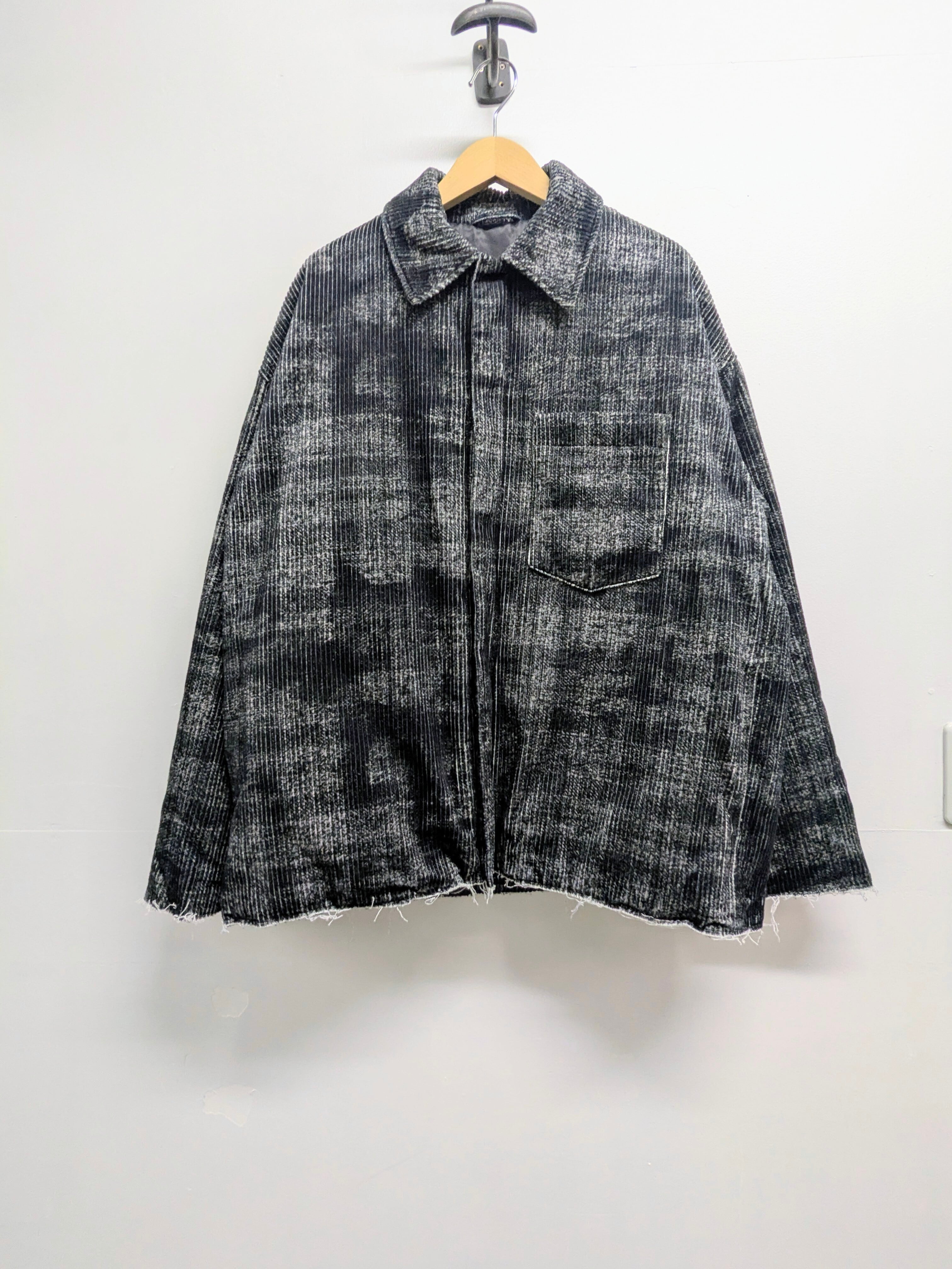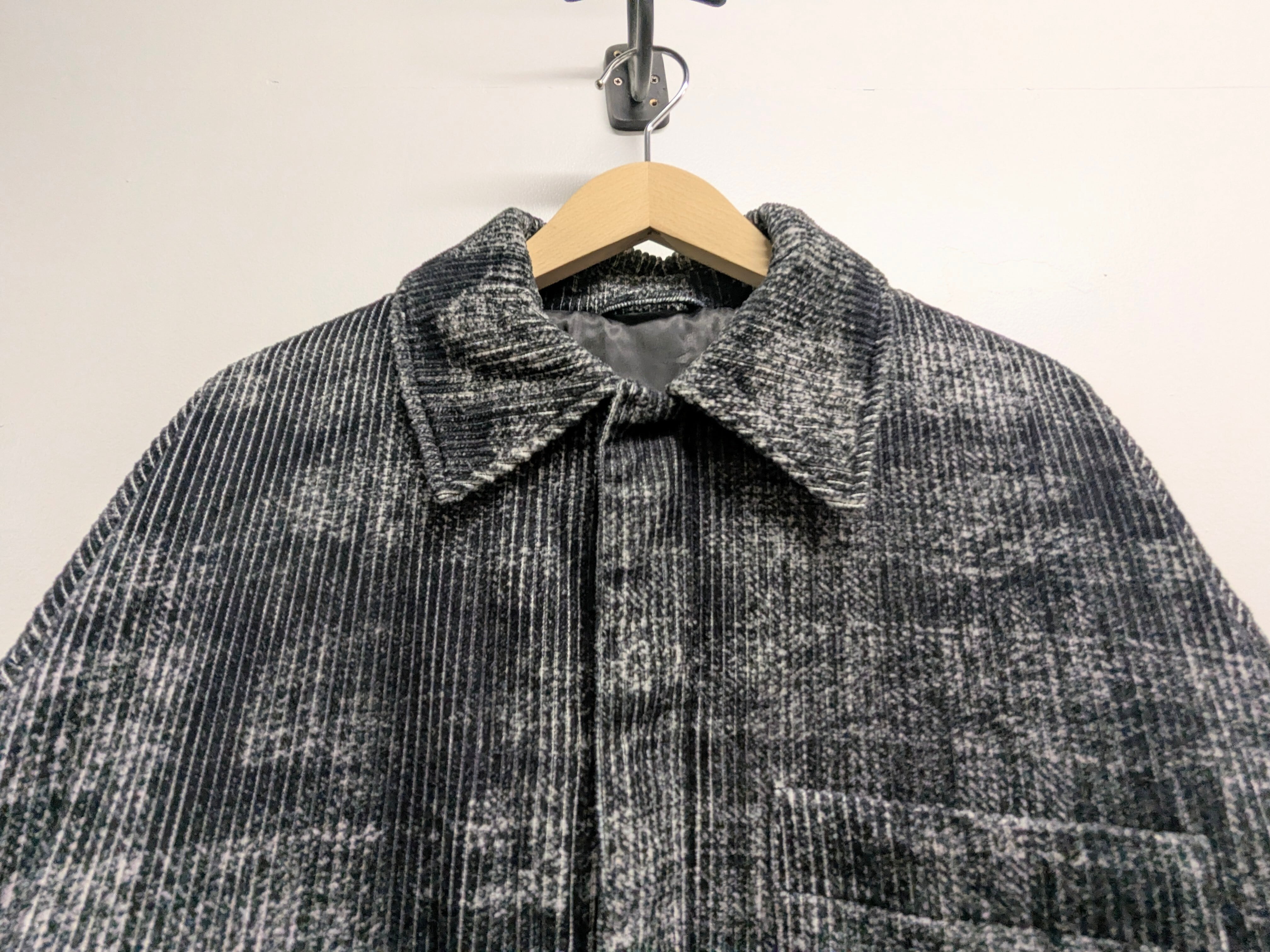 カスレチェックの中綿ブルゾン。のっぺりしない立体的な見た目がとてもカッコいい一着。裾、袖口に切りっぱなしのようなデザインもとても気の利いたデザインとなっています。