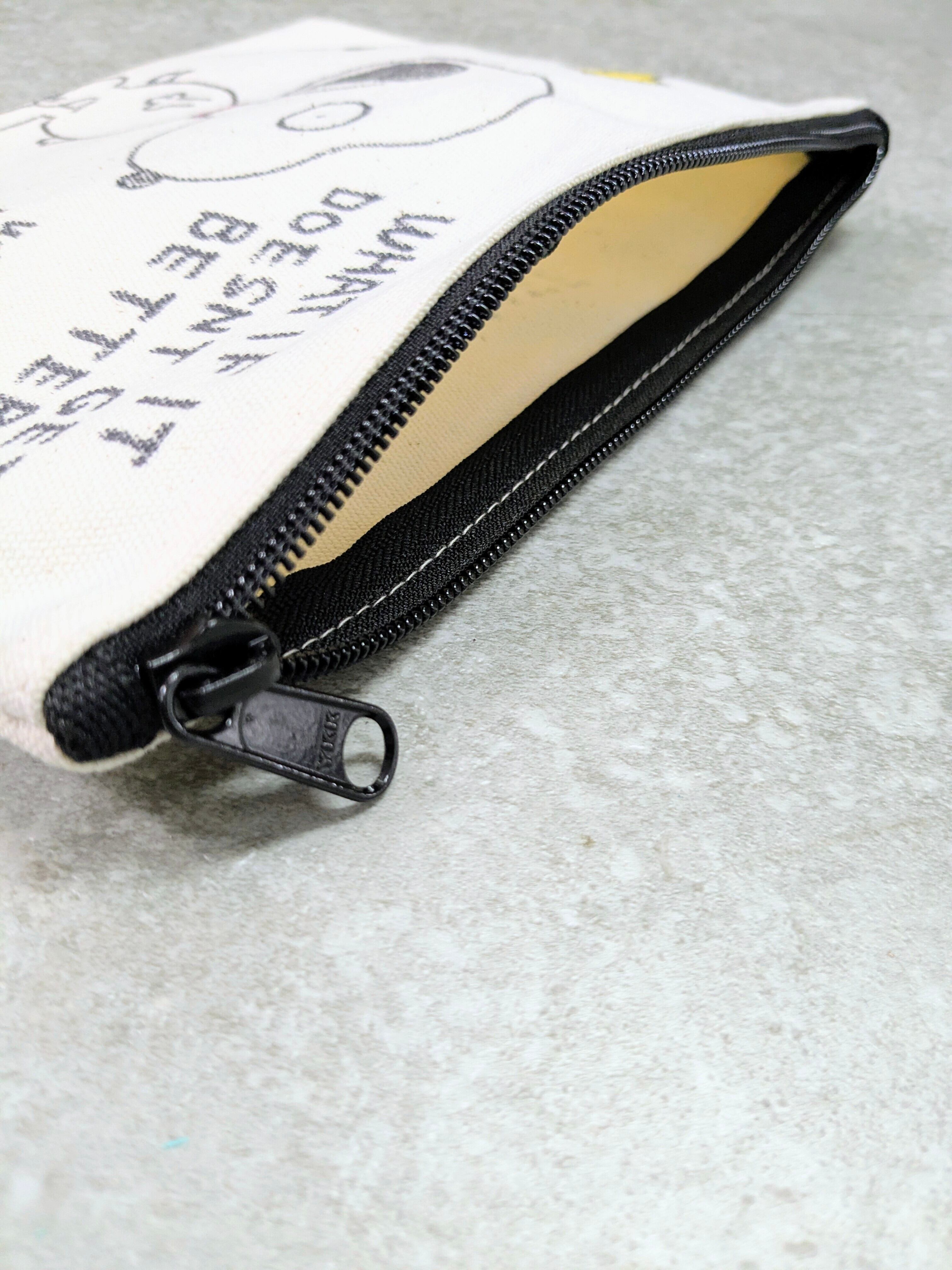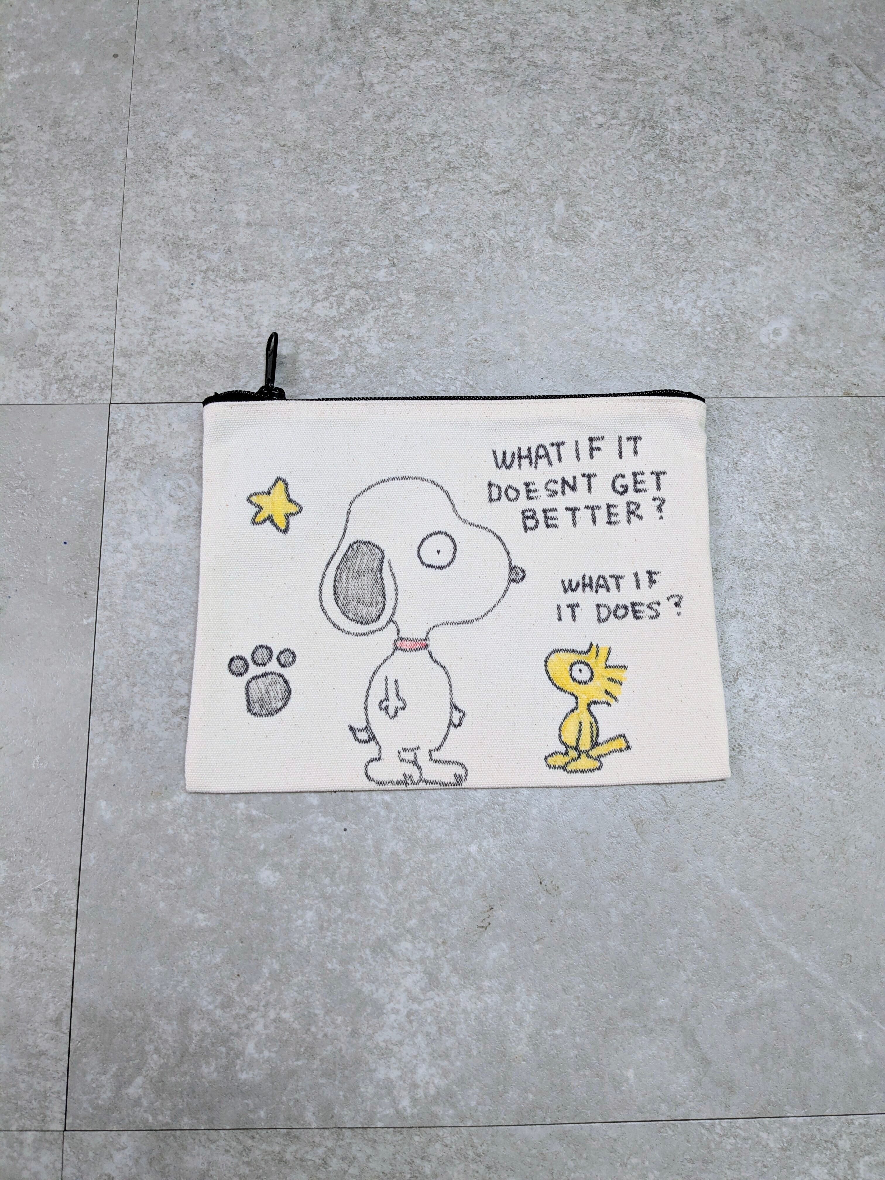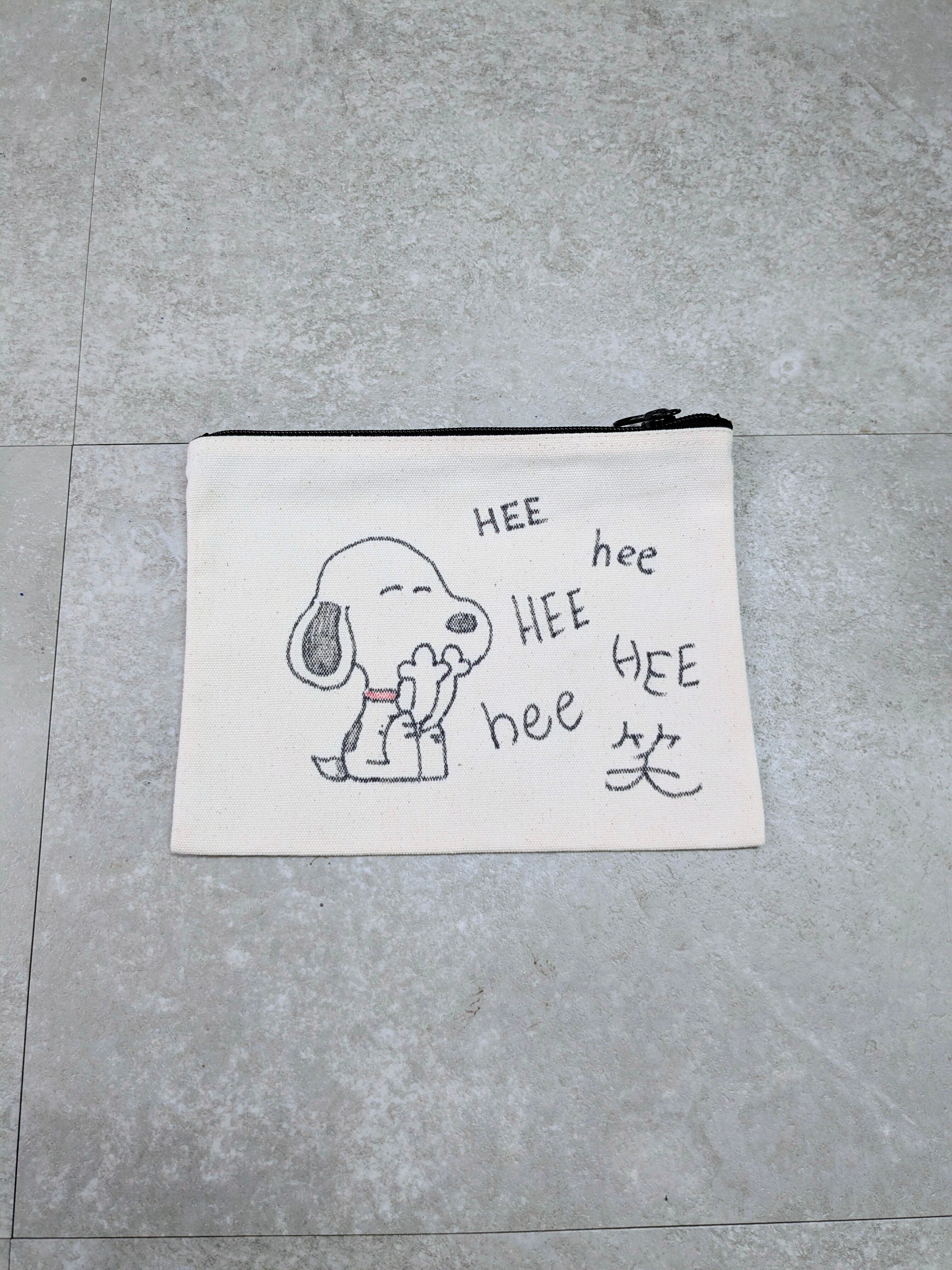 キャンバスのポーチにイラストを加えています。ジップで開閉でき、化粧品、ちょっとした小物をしまうのにちょうどいいアイテム。メモリアルの要素があり、どこか見たことあるキャラクターがいたりと、とにかく可愛いアイテム。全て手作業になるので、唯一無二の一点物となります。