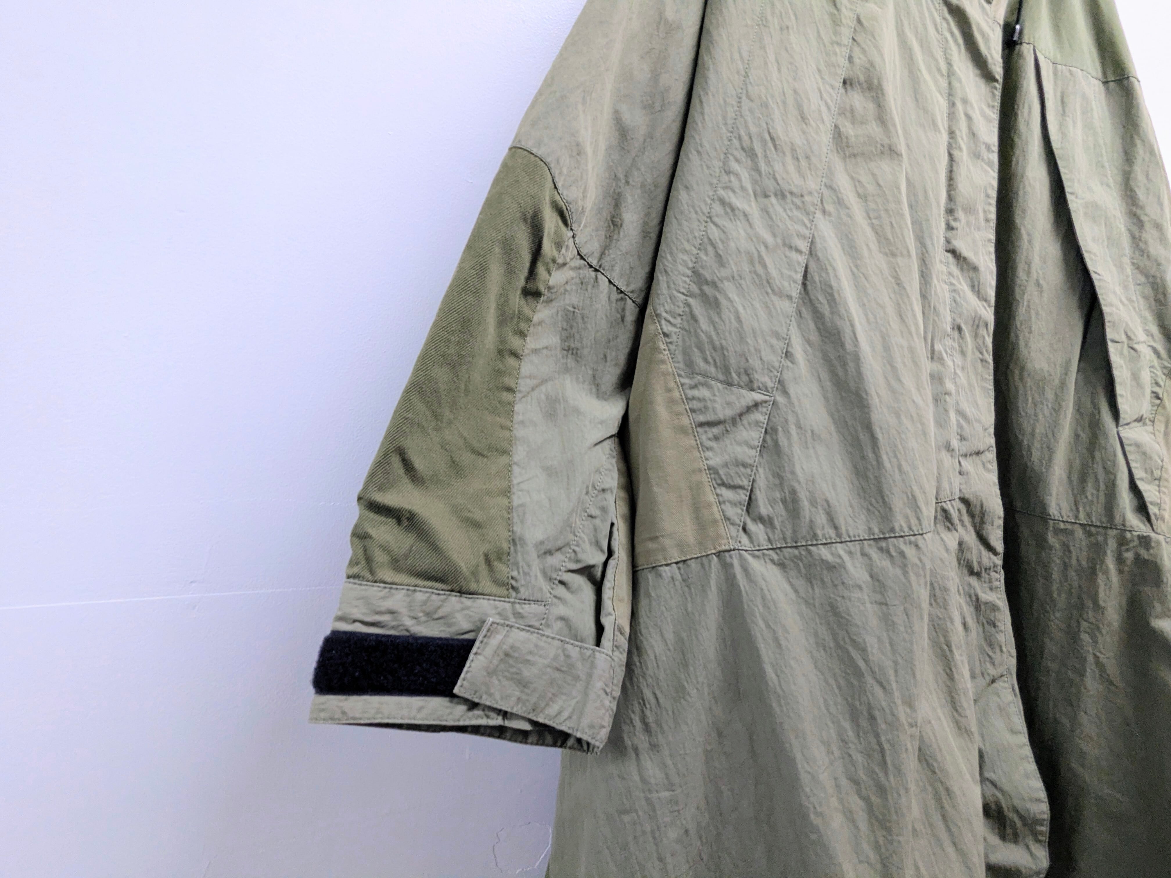 ツギハギになったミリタリーコート。かなりオーバーサイズで腕はドルマンスリーブのようになっているので、インナーも選ばずザクッと羽織っていただけます。脇の下はジップで開閉できベンチレーション付。