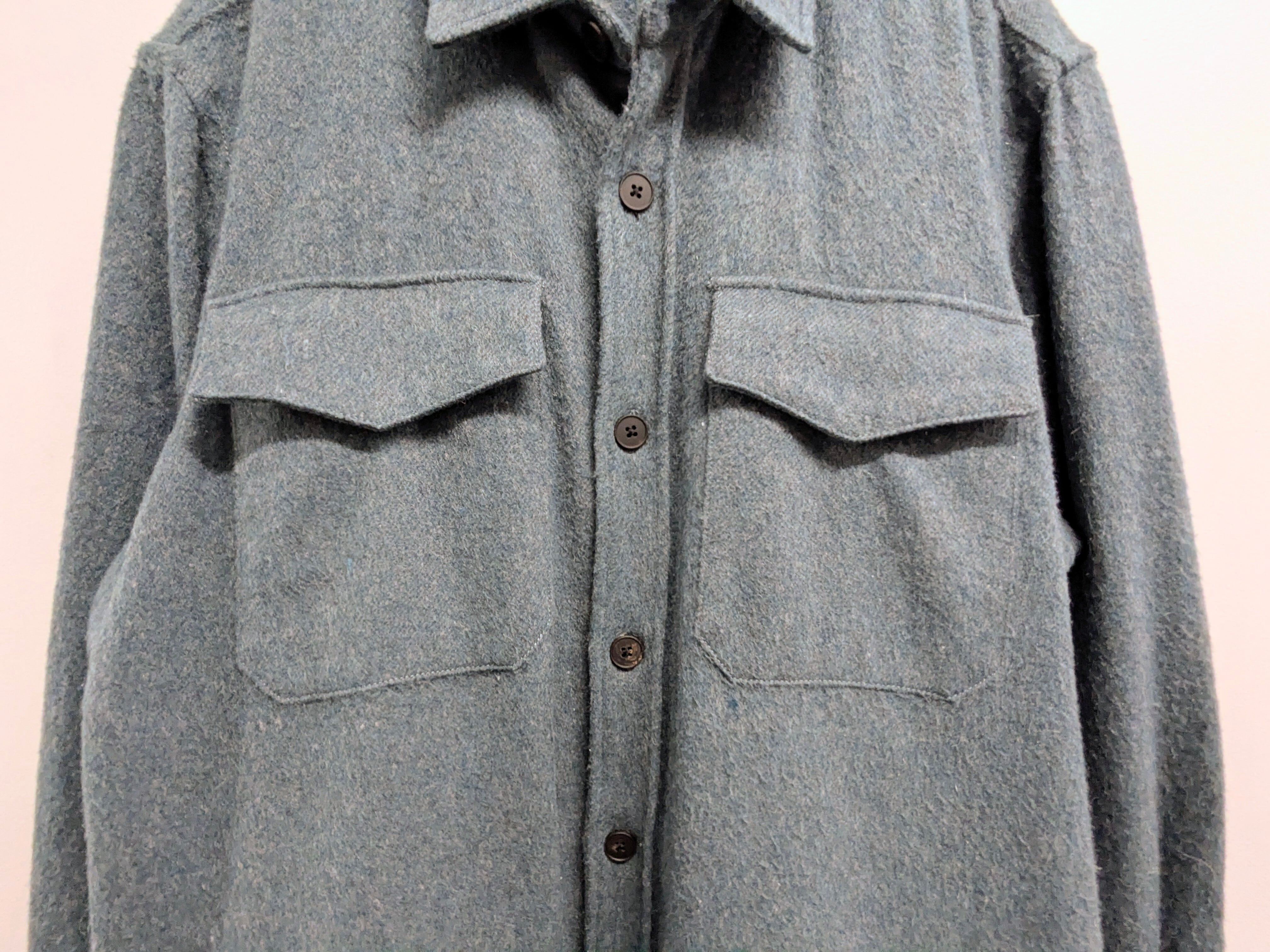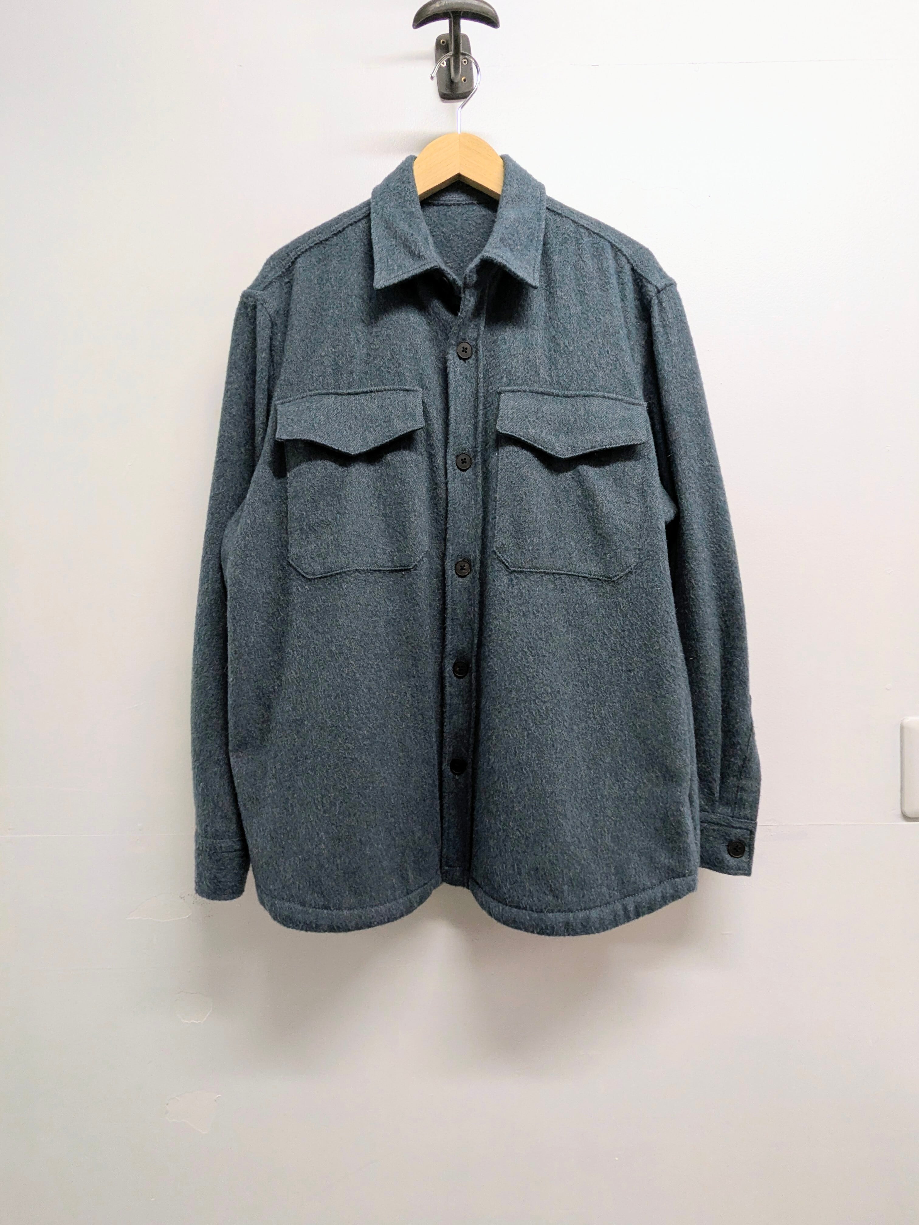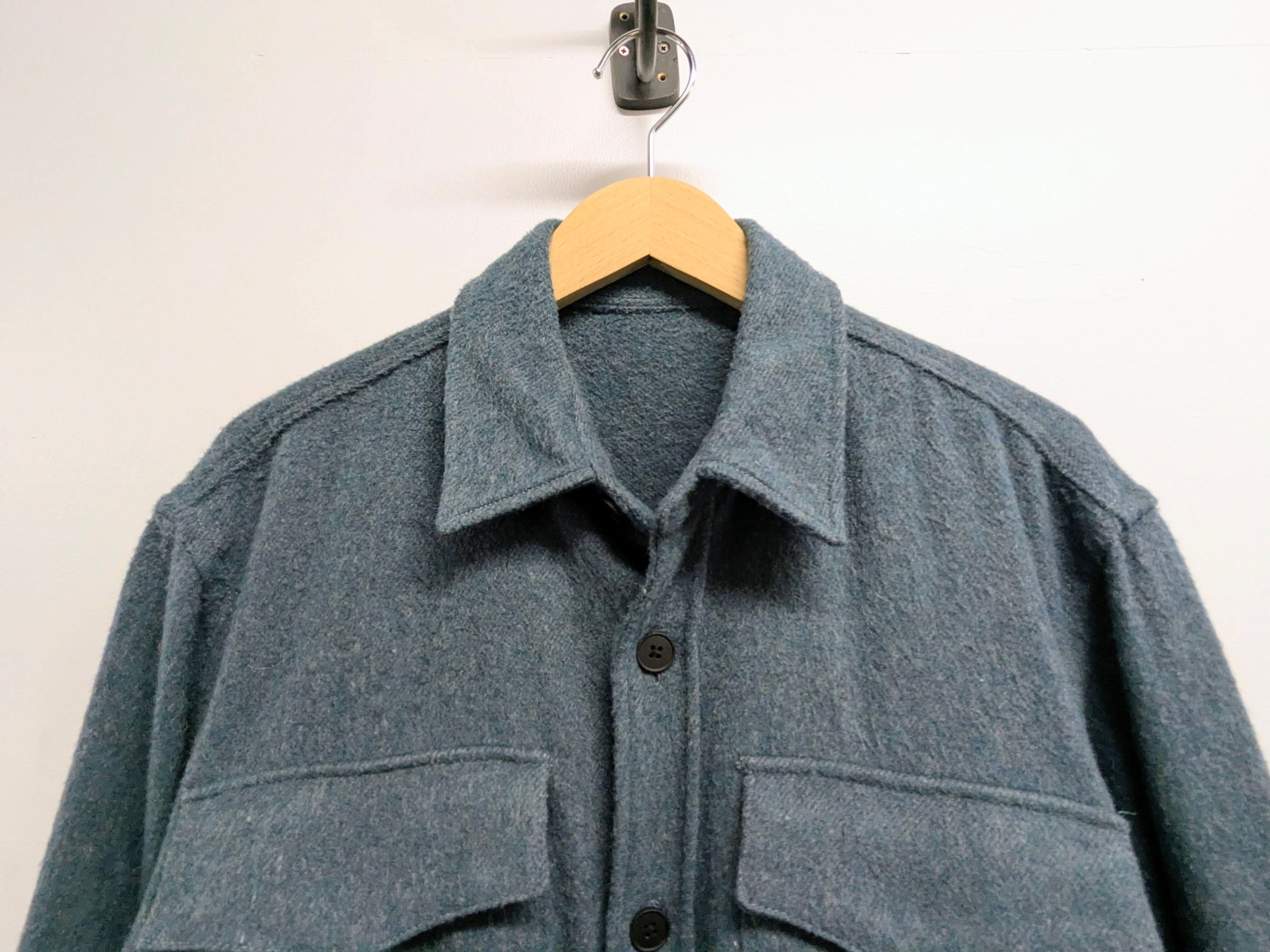 オーバーサイズ、ゆったりとしたシャツブルゾン。メランジでよく見ると多色使った表面がとても綺麗なアイテム。胸ポケット以外にもサイドポケットも付いています。とても軽く、柔らかい素材。