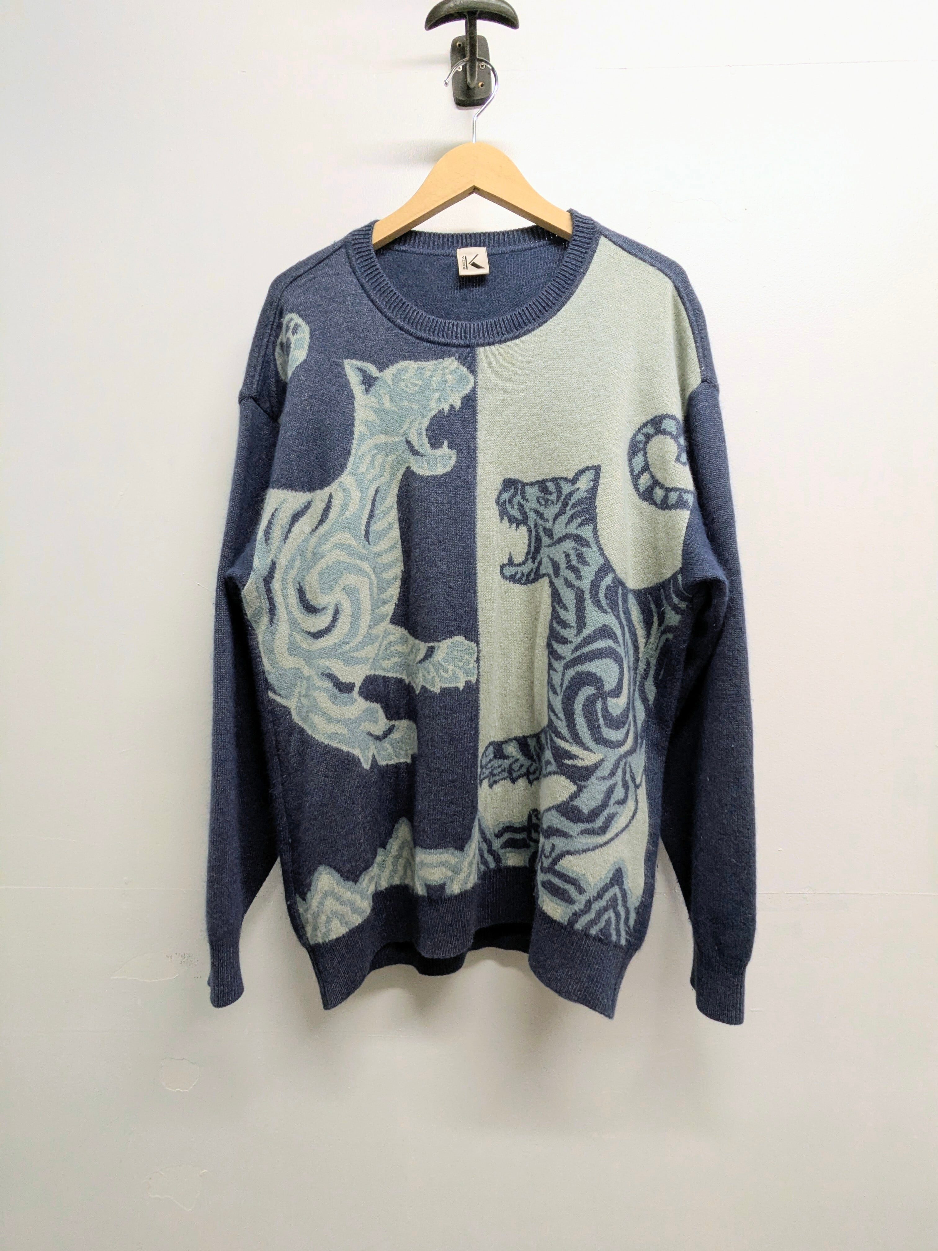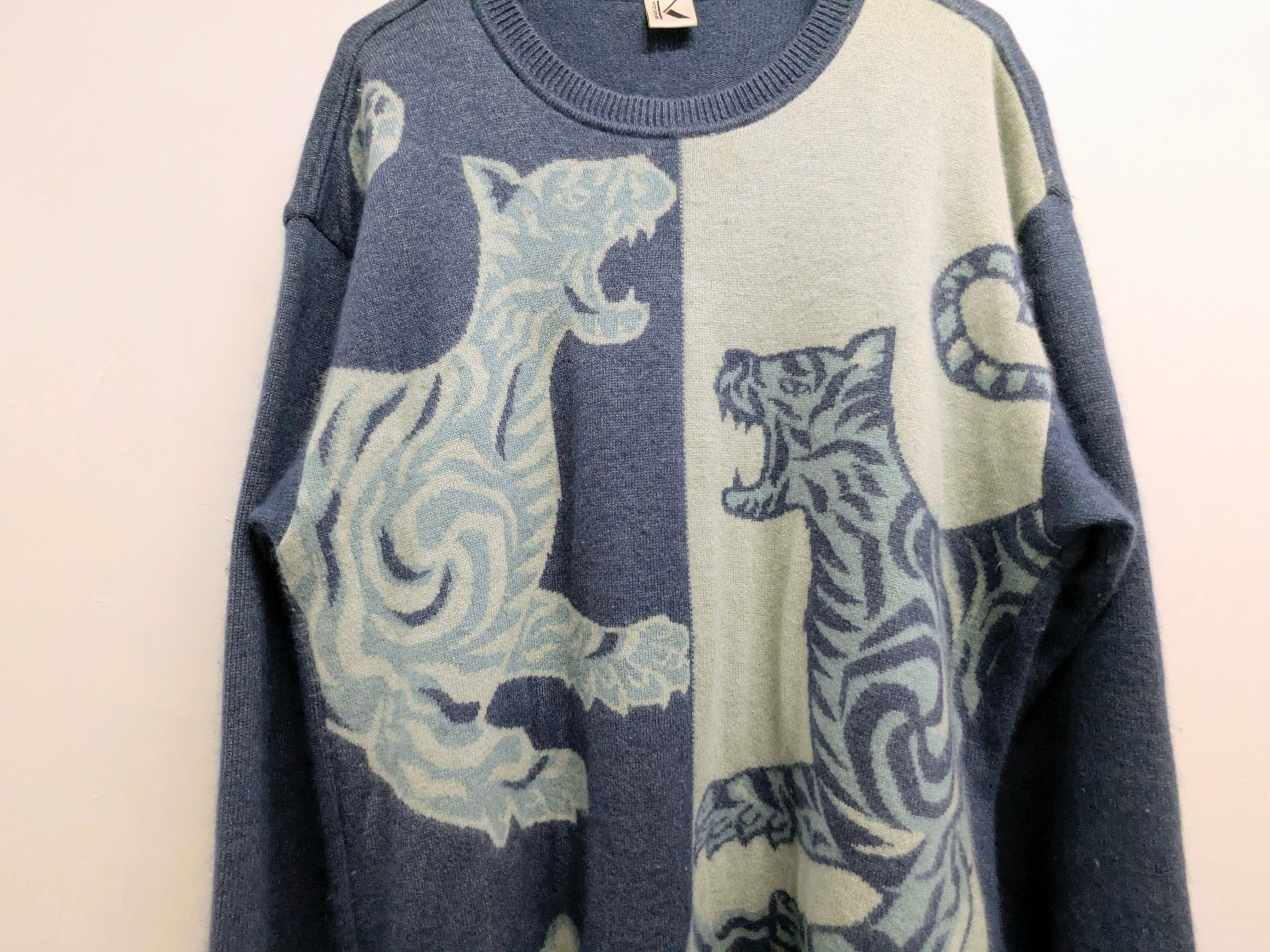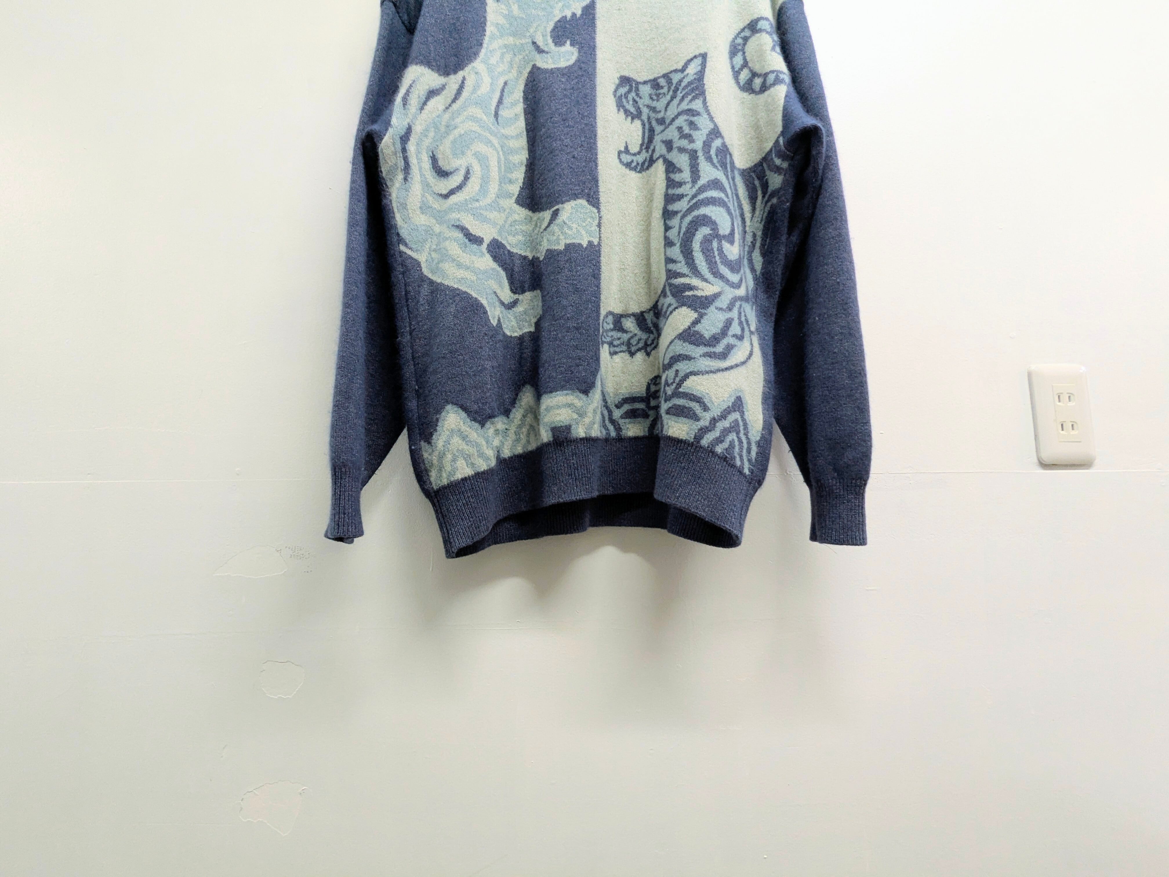 アンゴラ混のニット。織柄で入った虎のデザインがとても可愛い一着。アンゴラの他にもレーヨンなどが入っており、滑らかな肌触りでチクチクしないのが嬉しいポイント。生地自体も肉厚なニットとなっています。