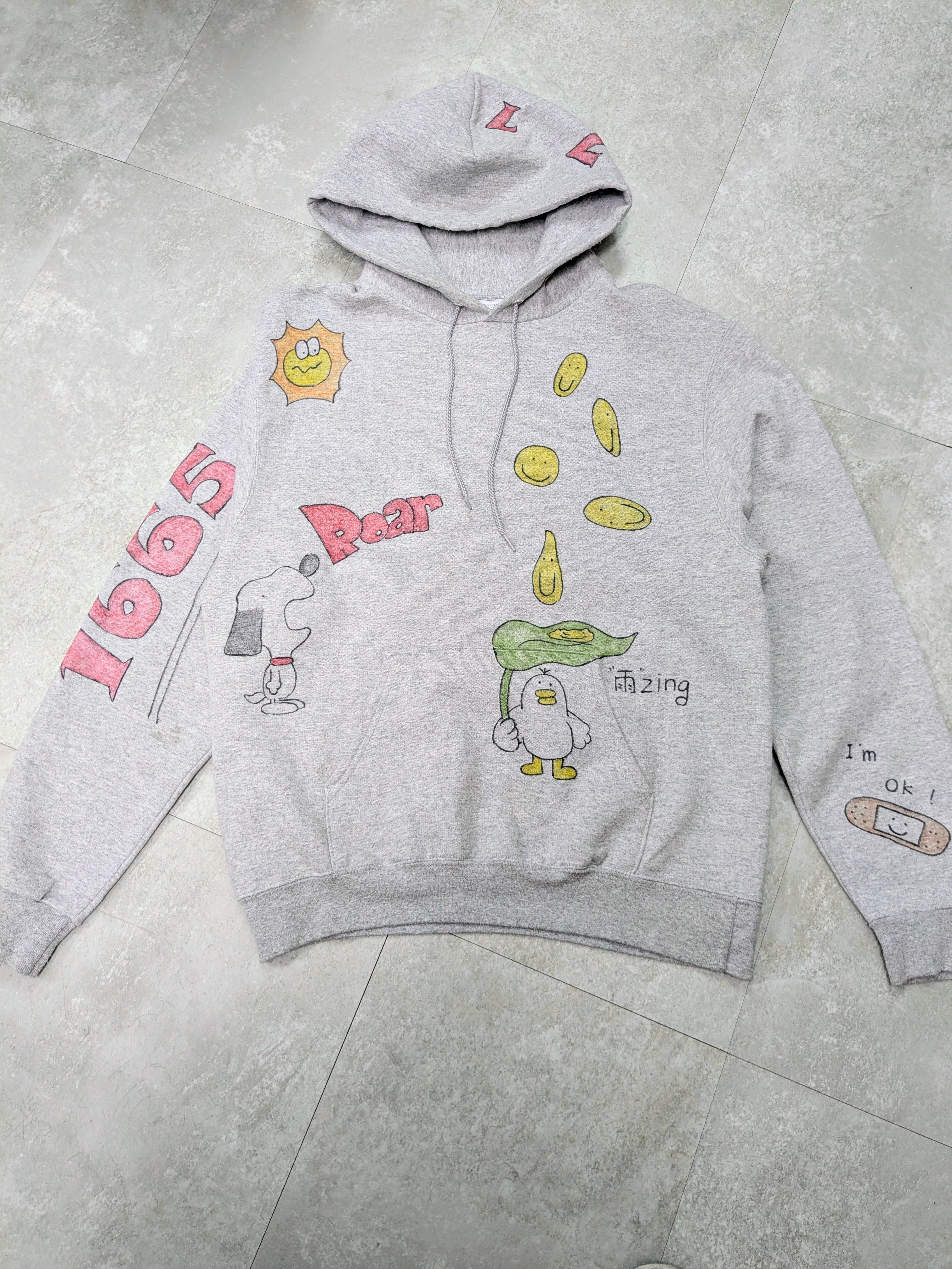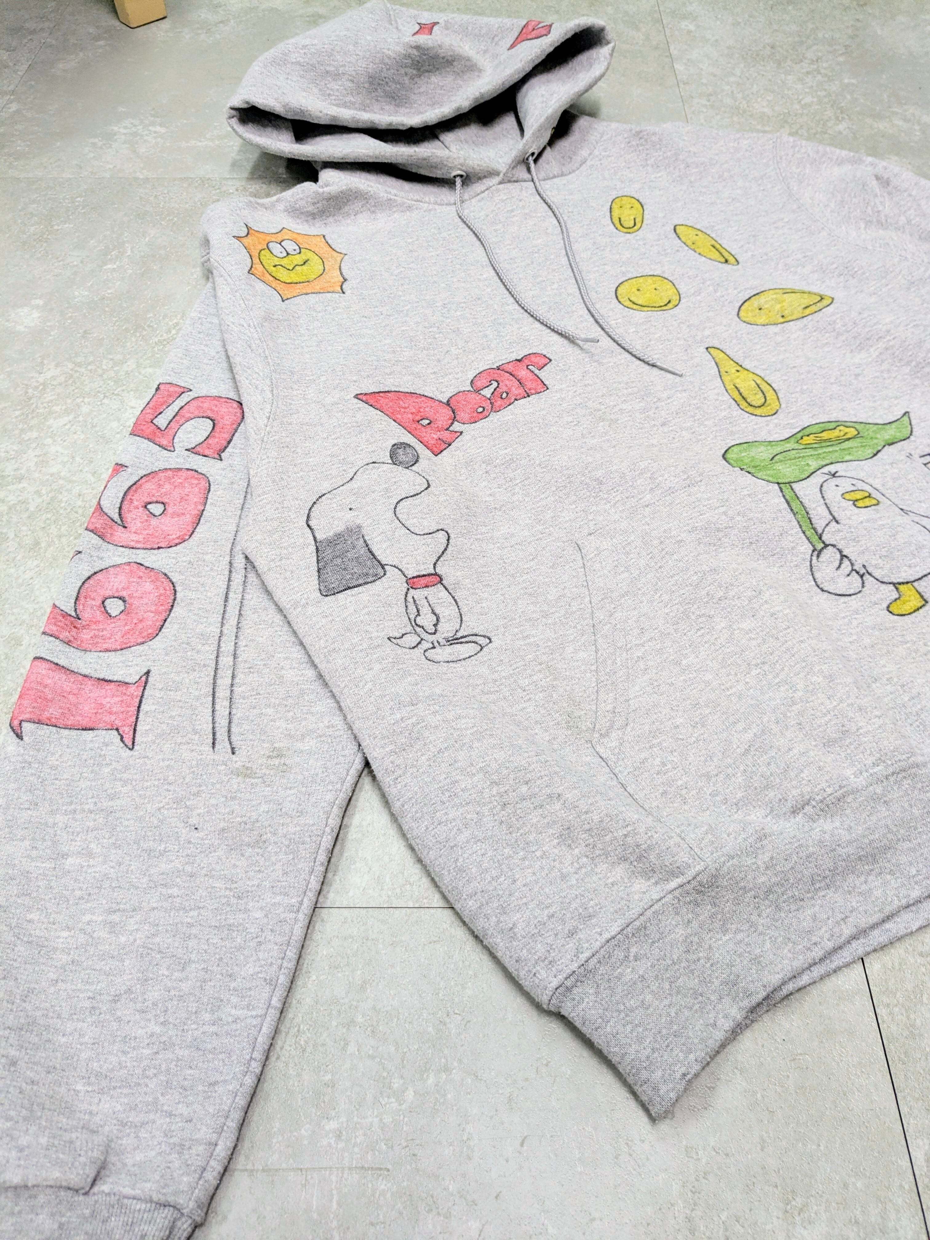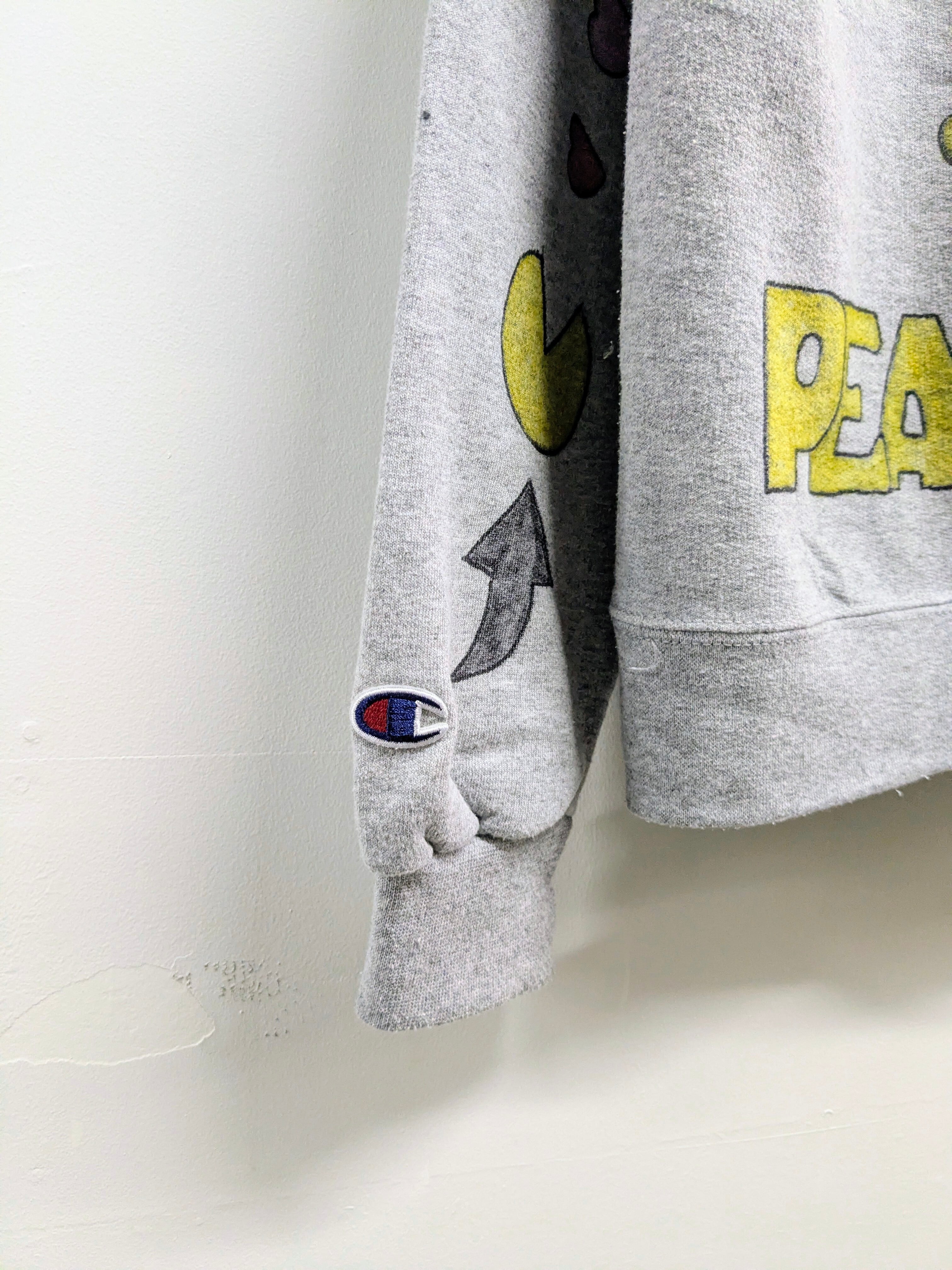ユーズドのチャンピオンを使用しています。メモリアル要素もありつつ、どこか見たことあるようなキャラクターがいたりと可愛いアイテム。全て手描きのため唯一無二の一点物となります。