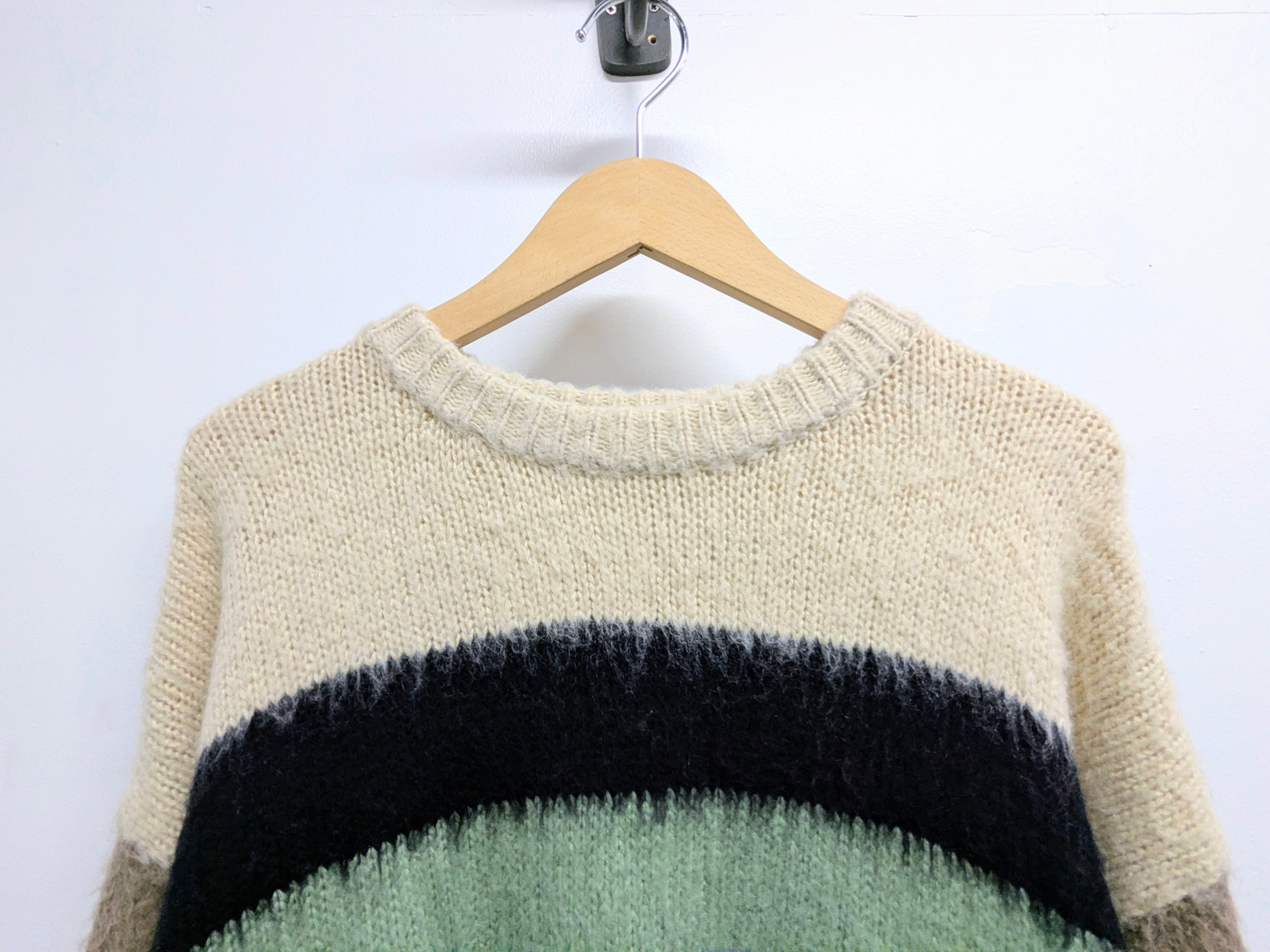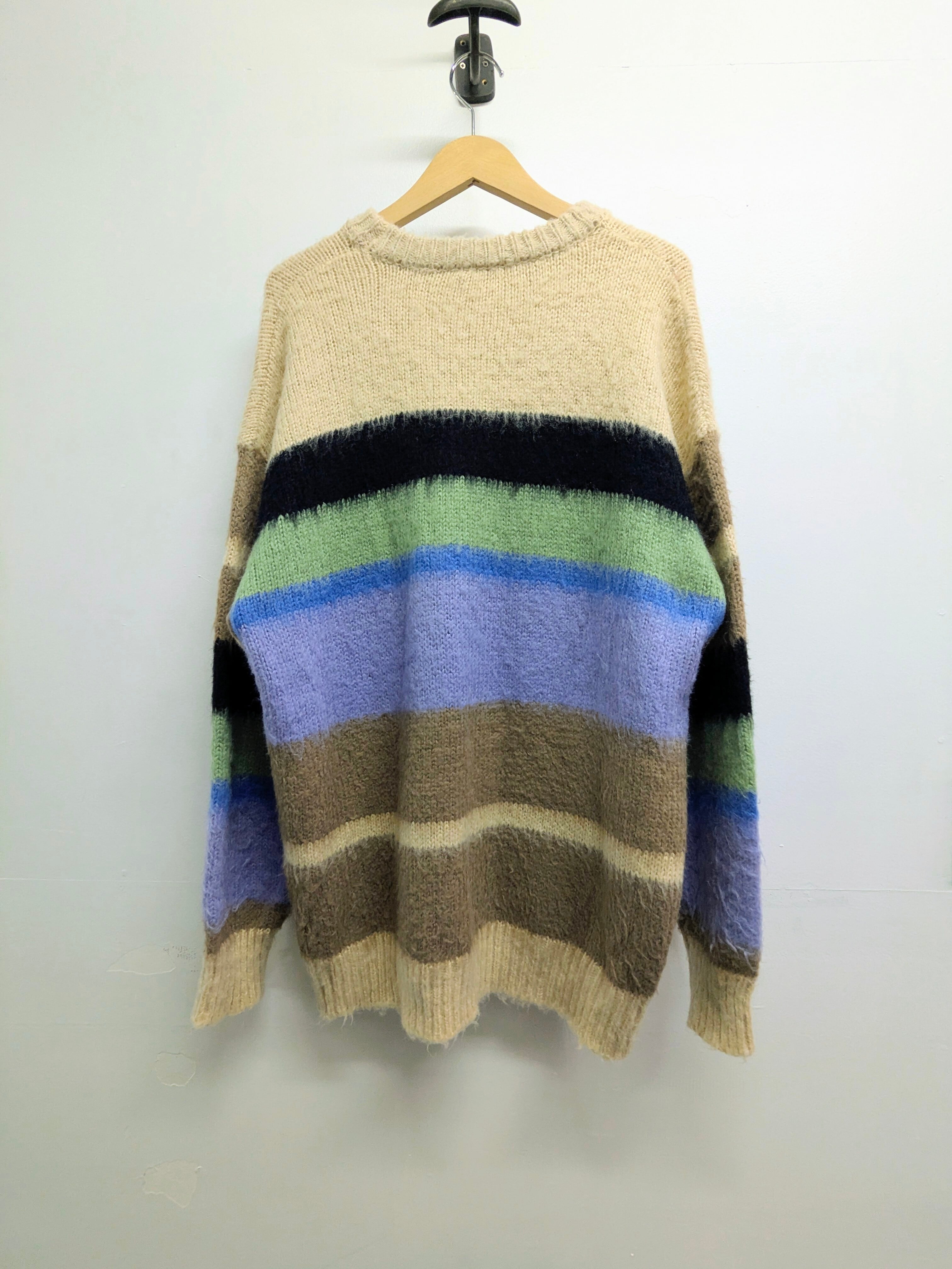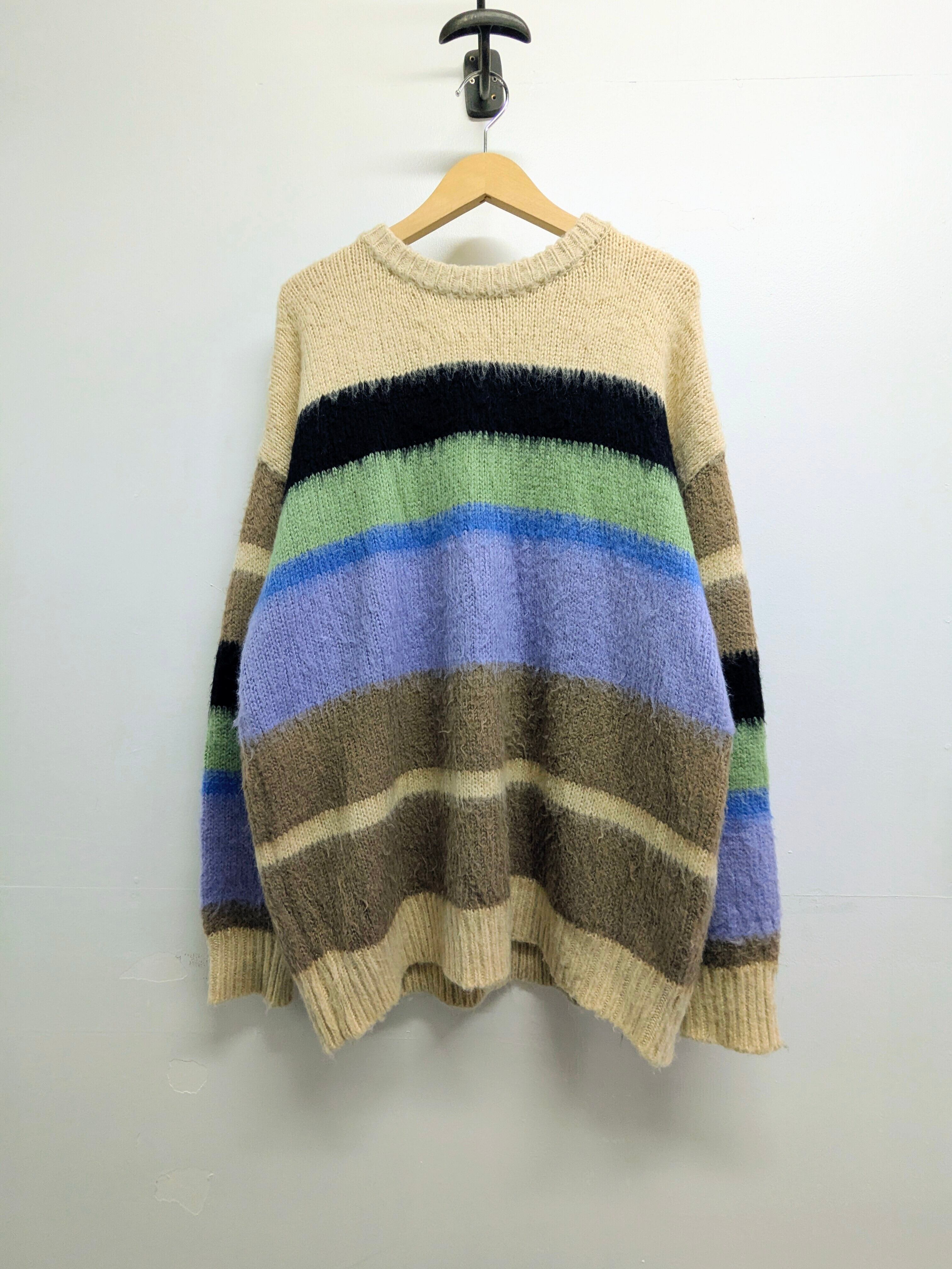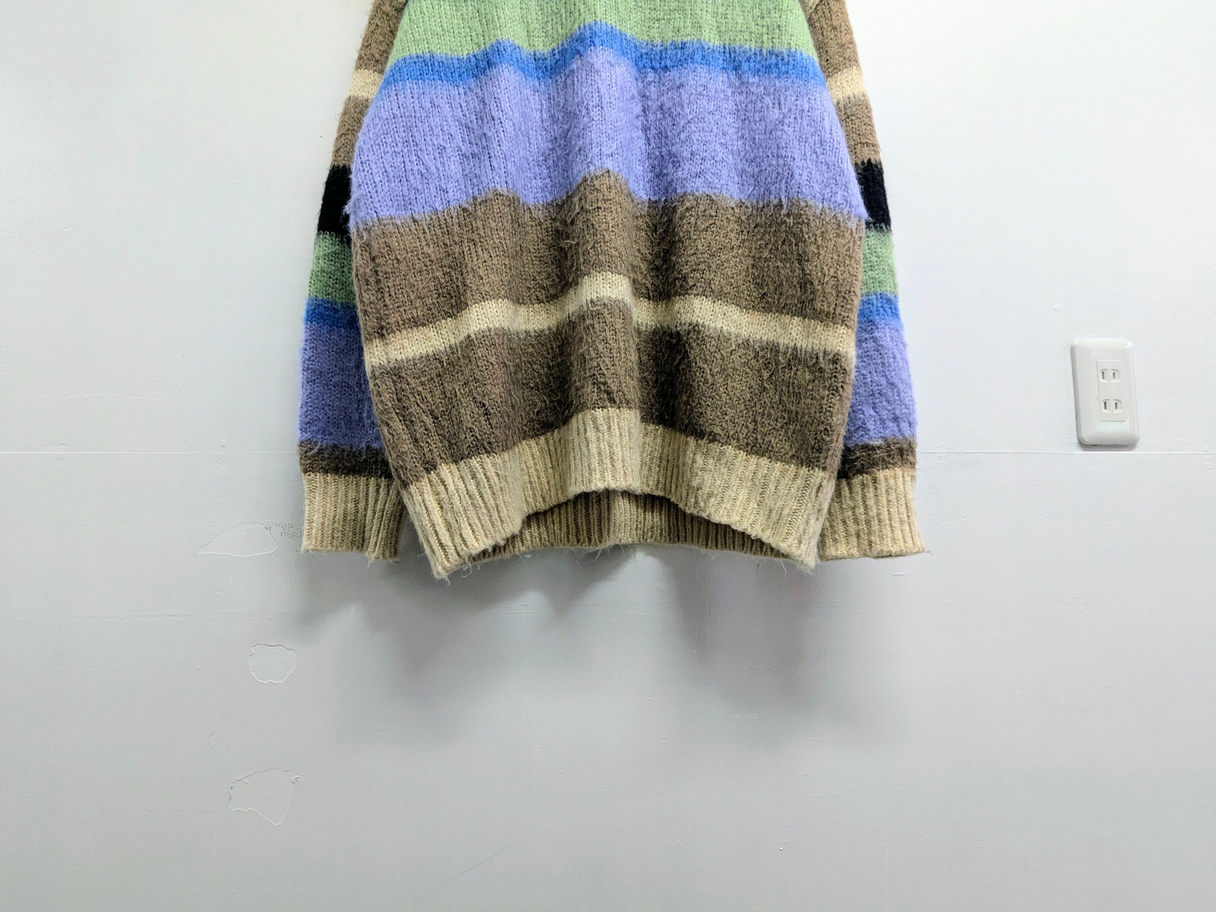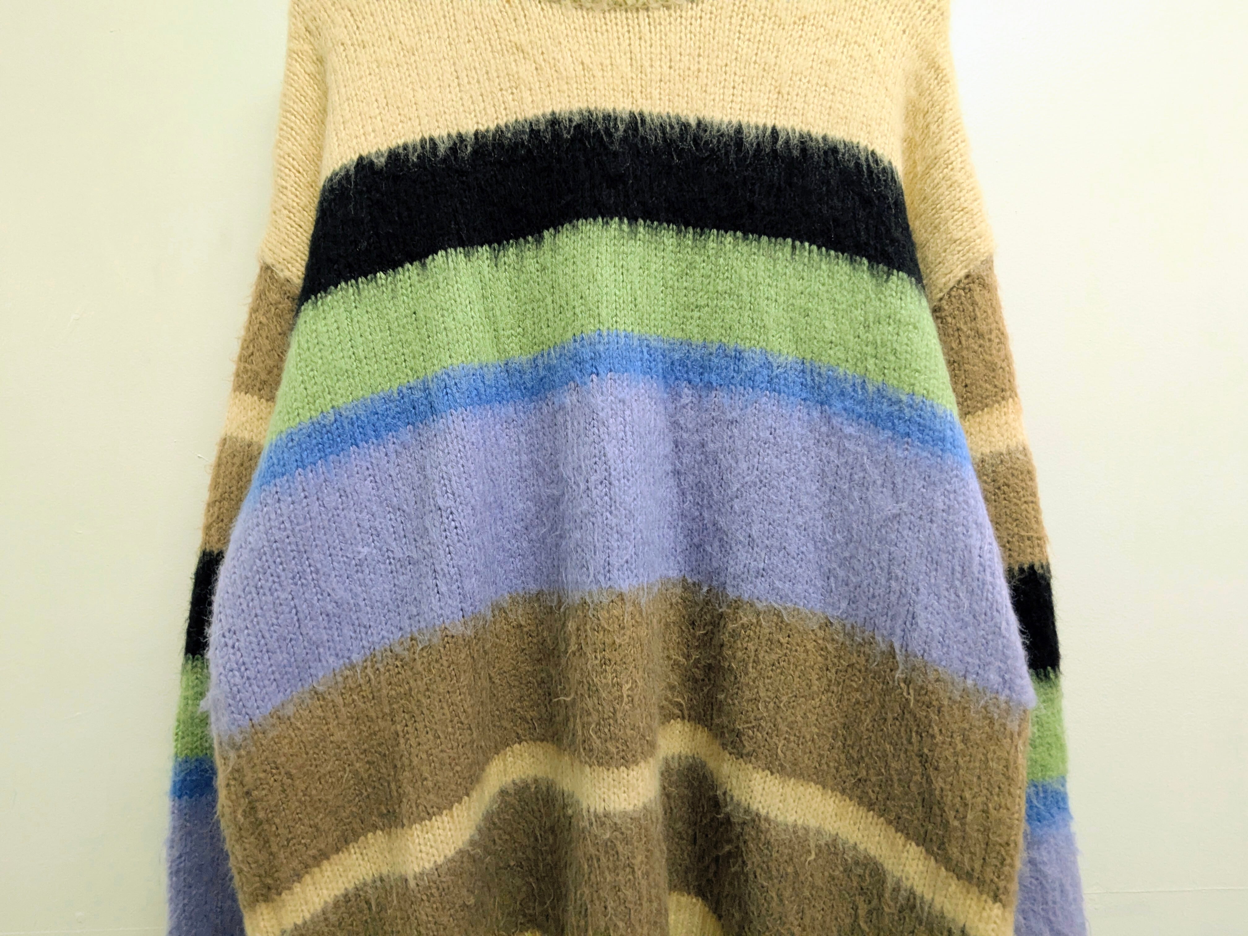 シンプルなボーダーでなく、マルチカラー、ピッチも不規則になっている変形ボーダーニット。