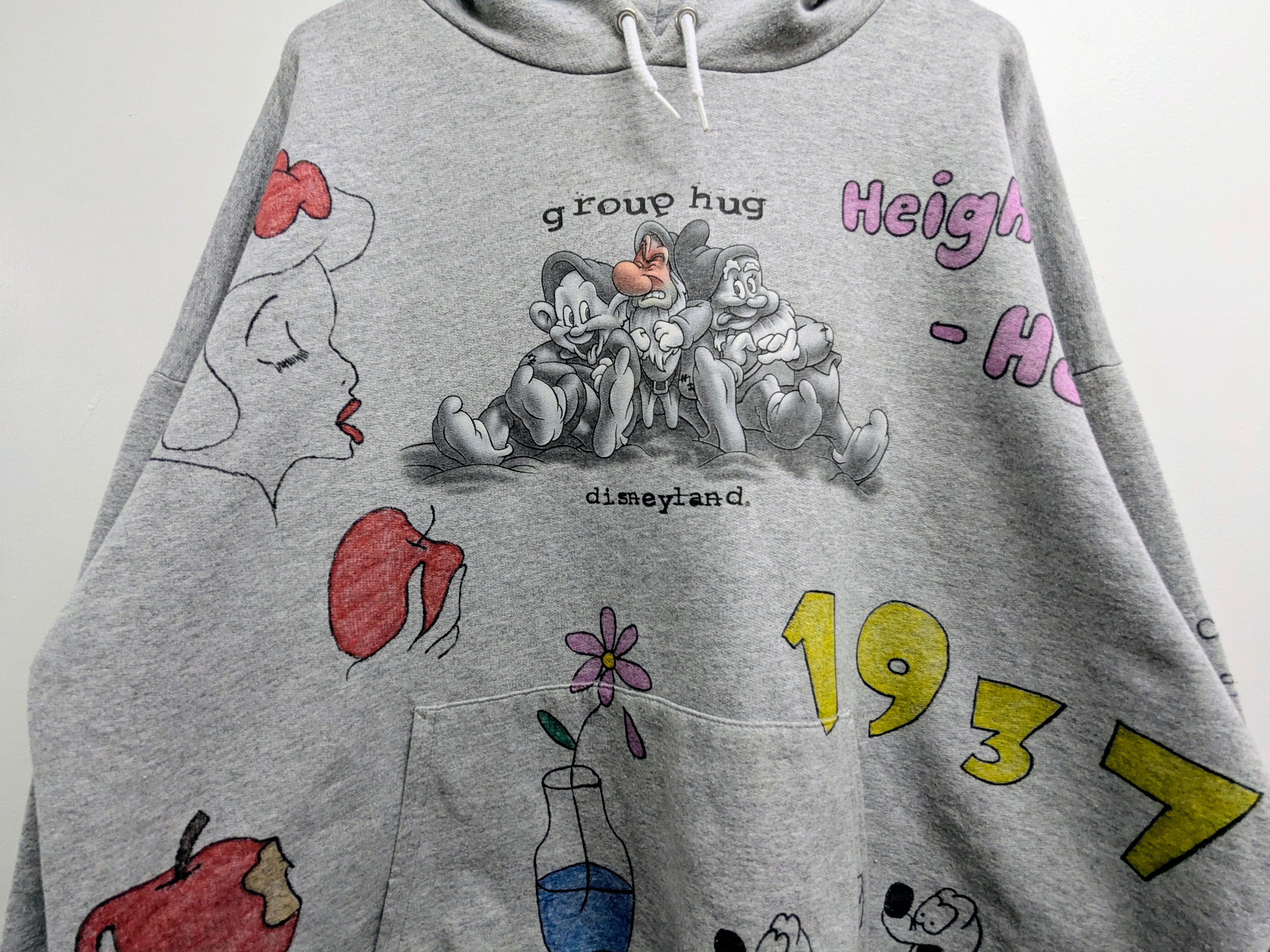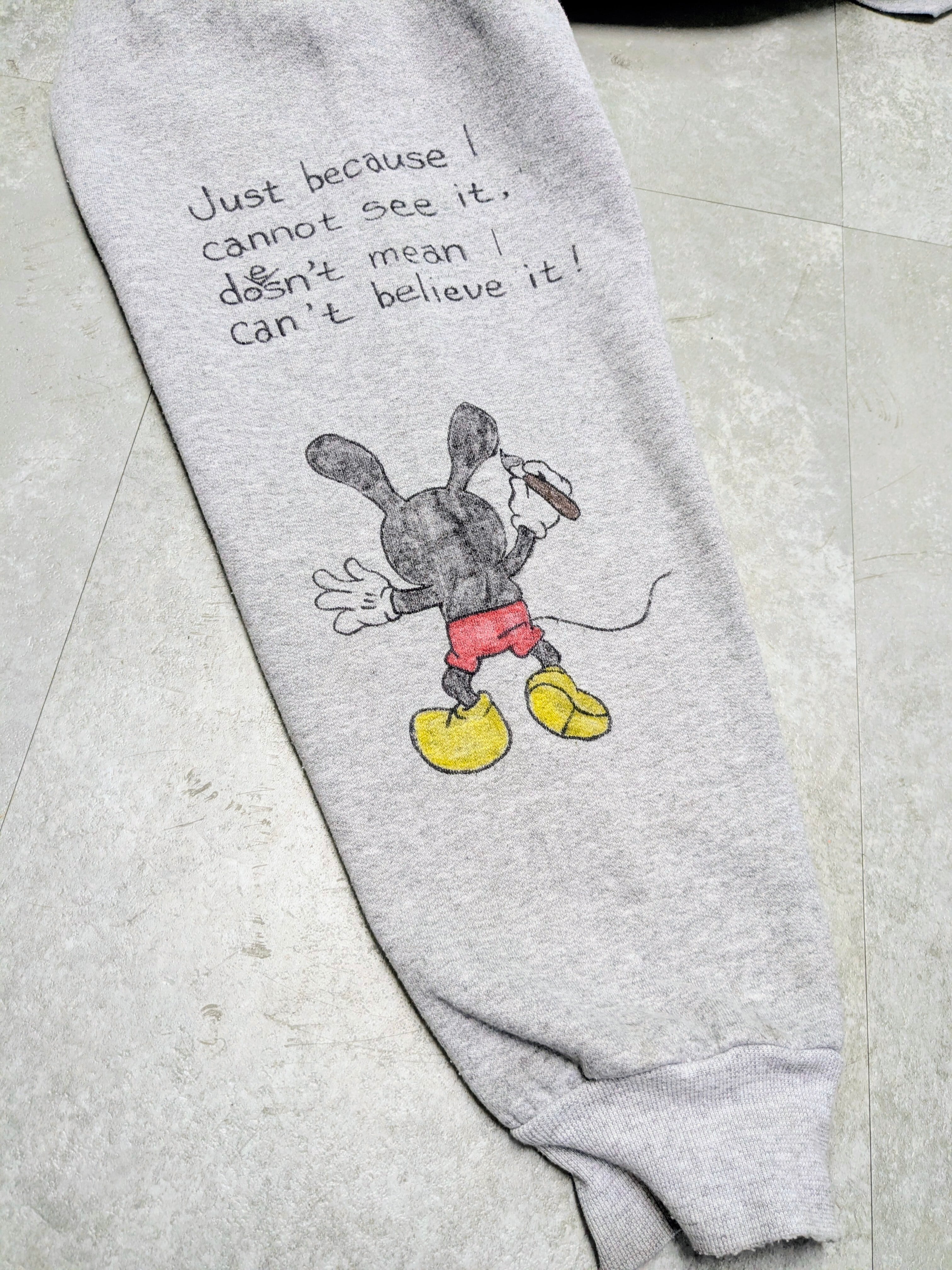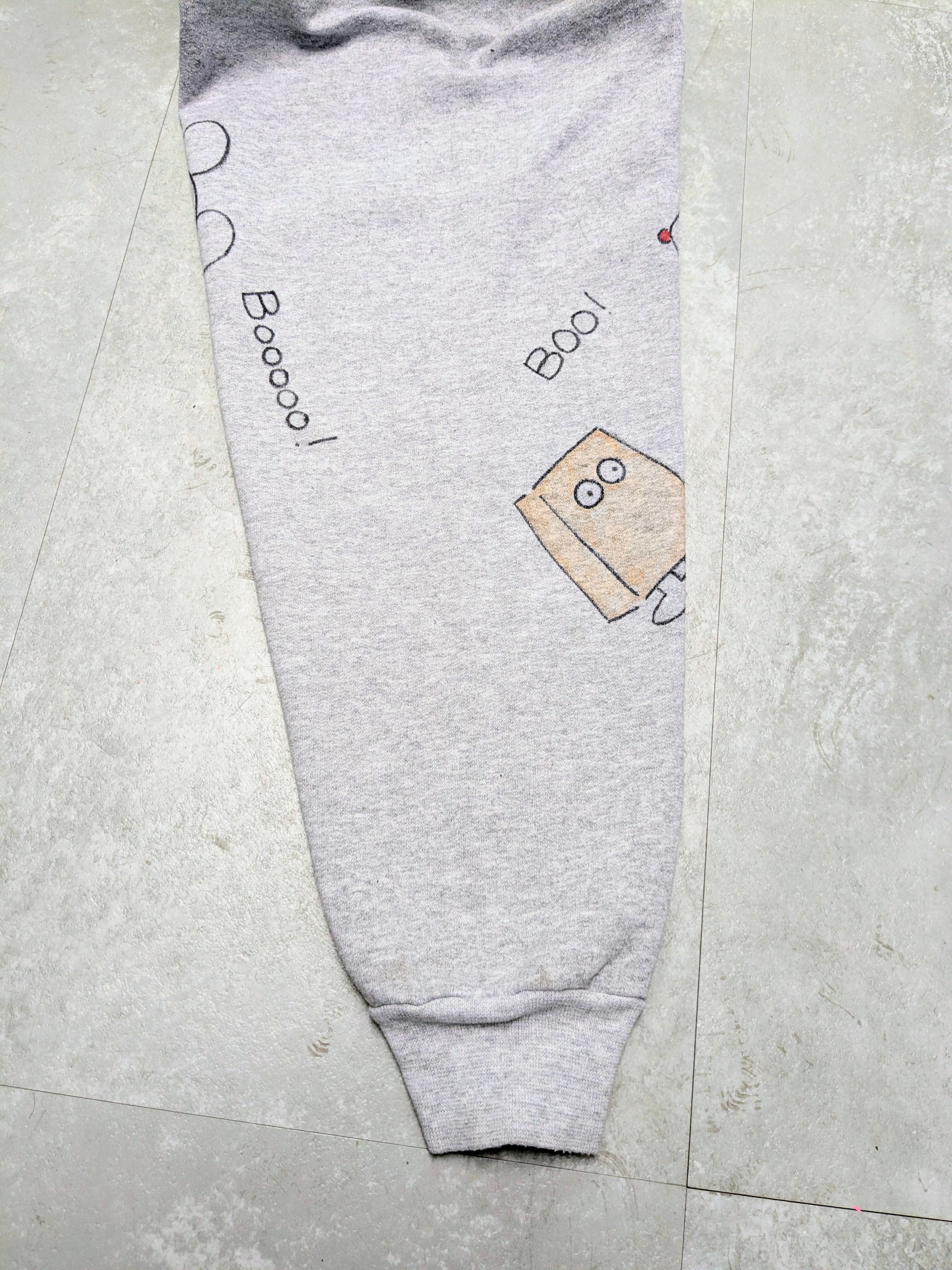 ユーズドのキャラクタースウェットを使用しています。表は元々のプリントあり、バックも表面のようなイラストがあり、両A面のようなスウェット。