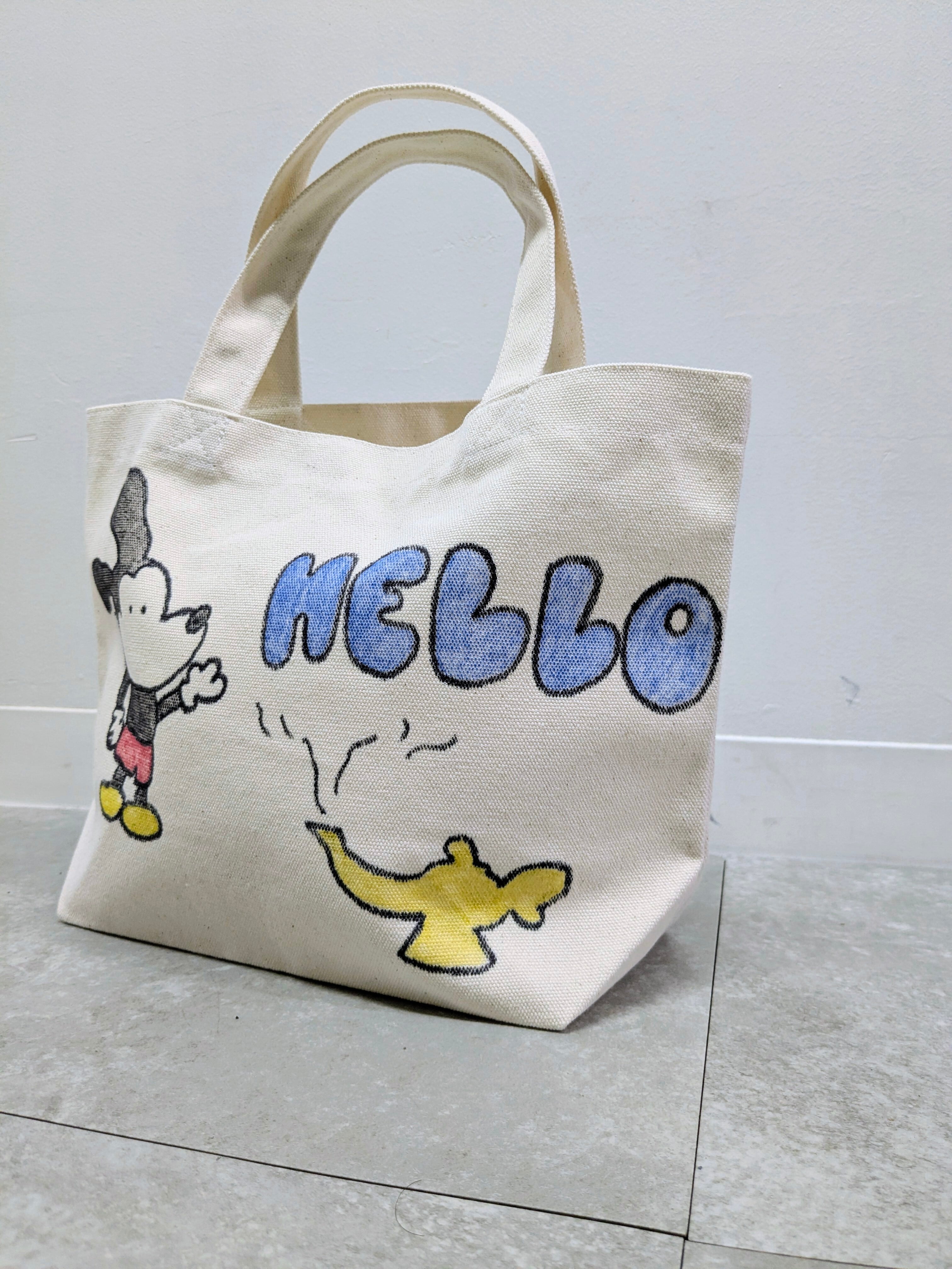 Hand Drawing Canvas Tote Bag "hello"
