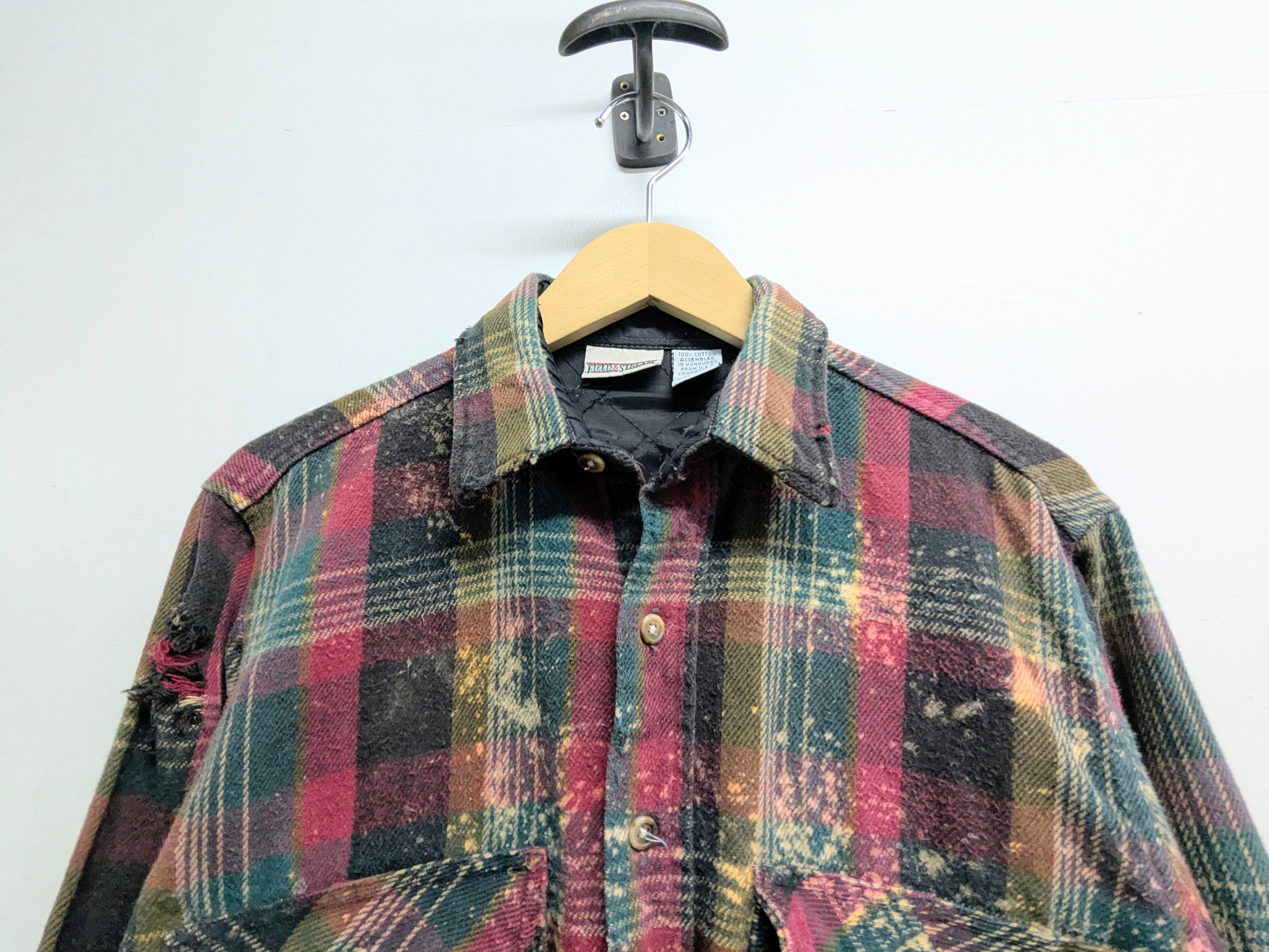 Faded Damage Boro Design Cutoff Heavy Flannel Shirt