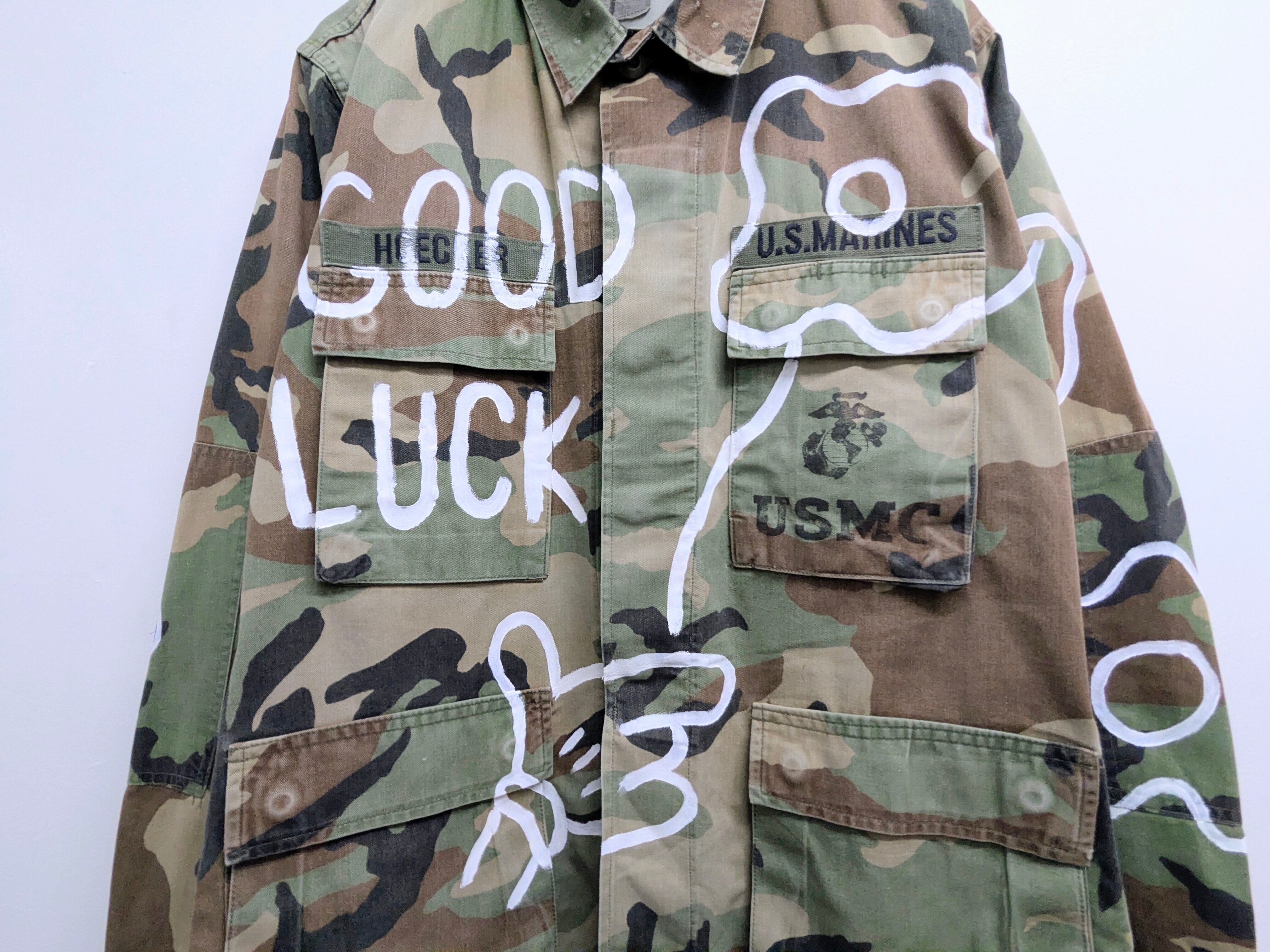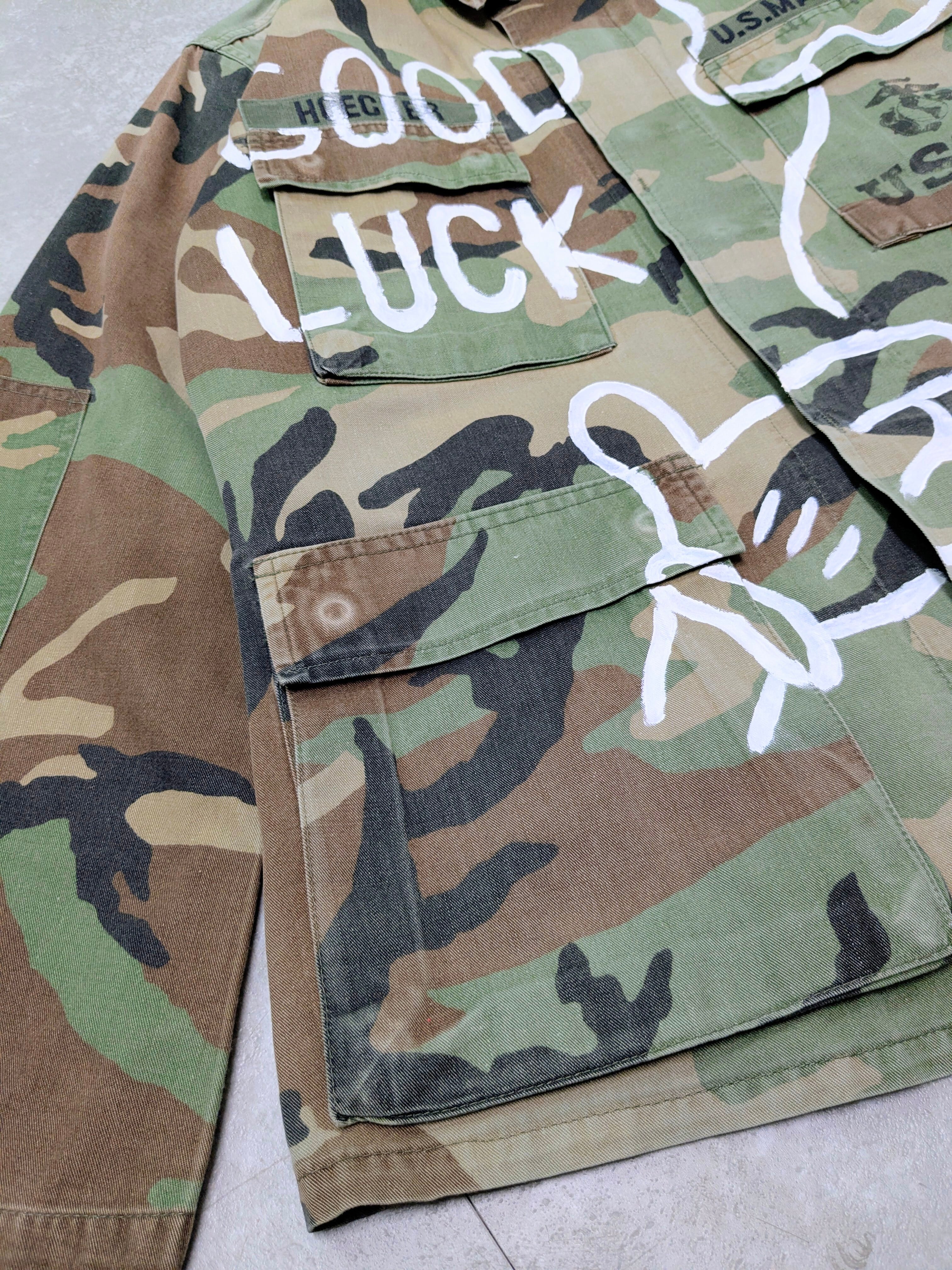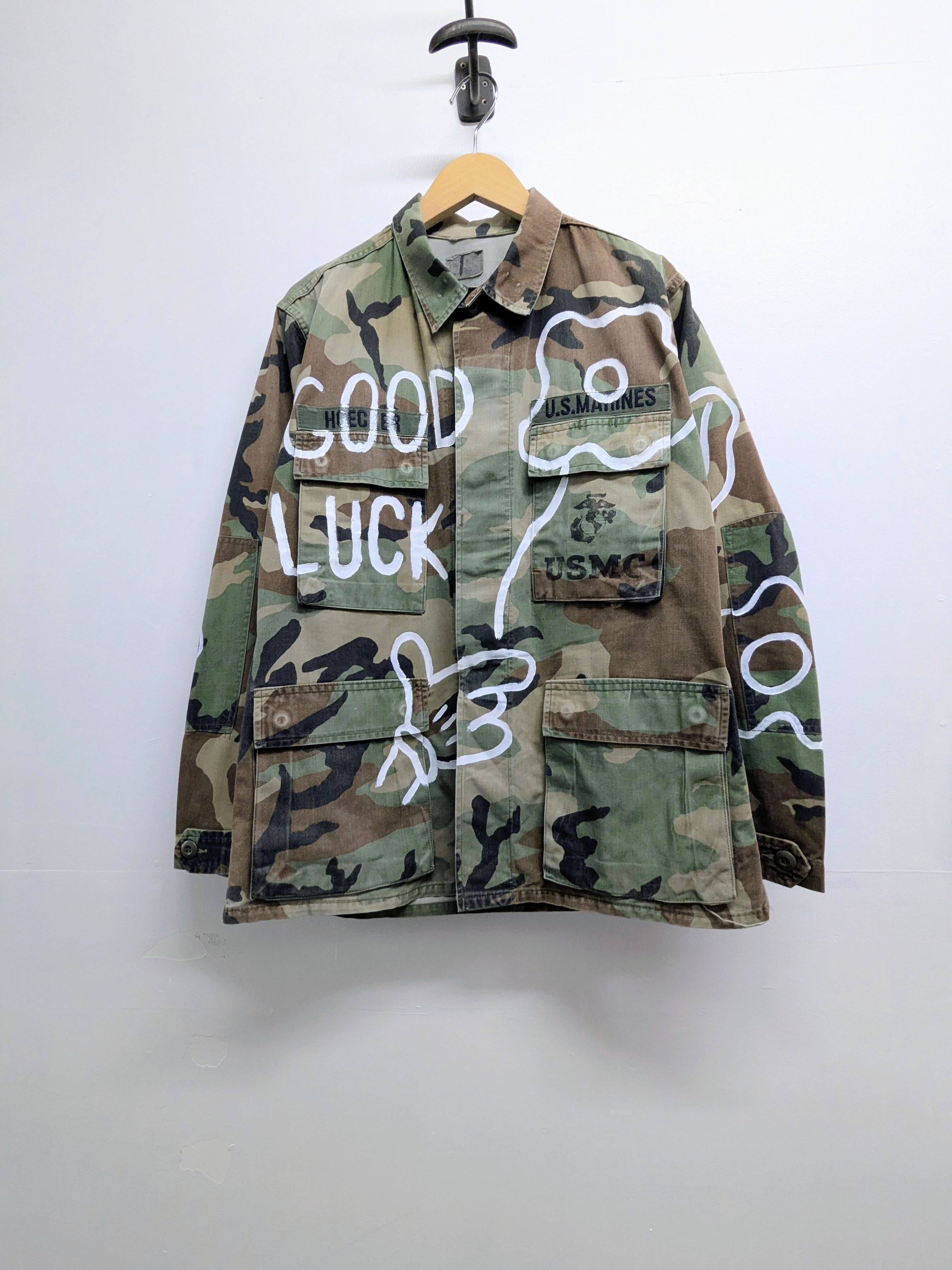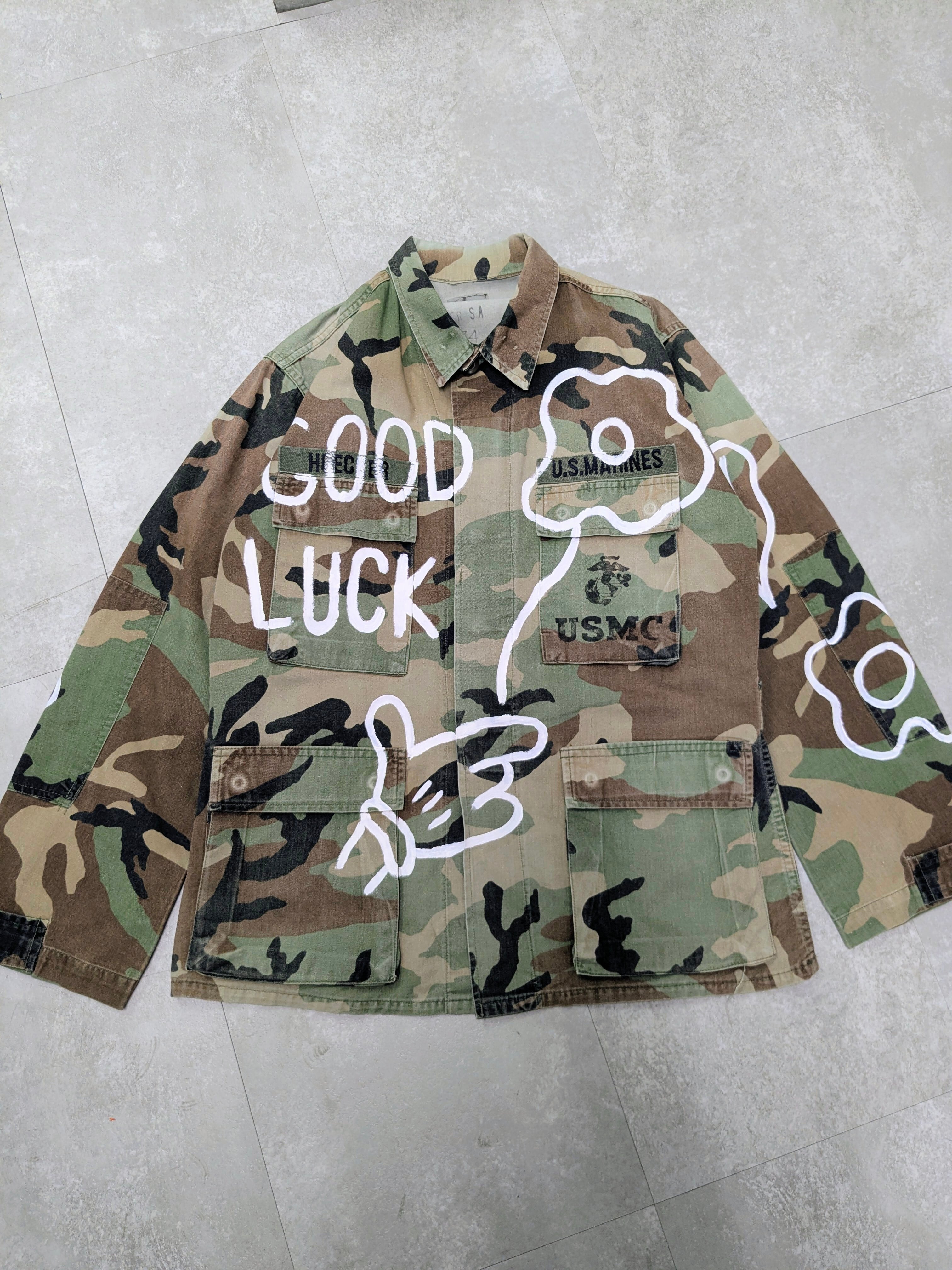 Hand Drawing Military Blouson "good luck"