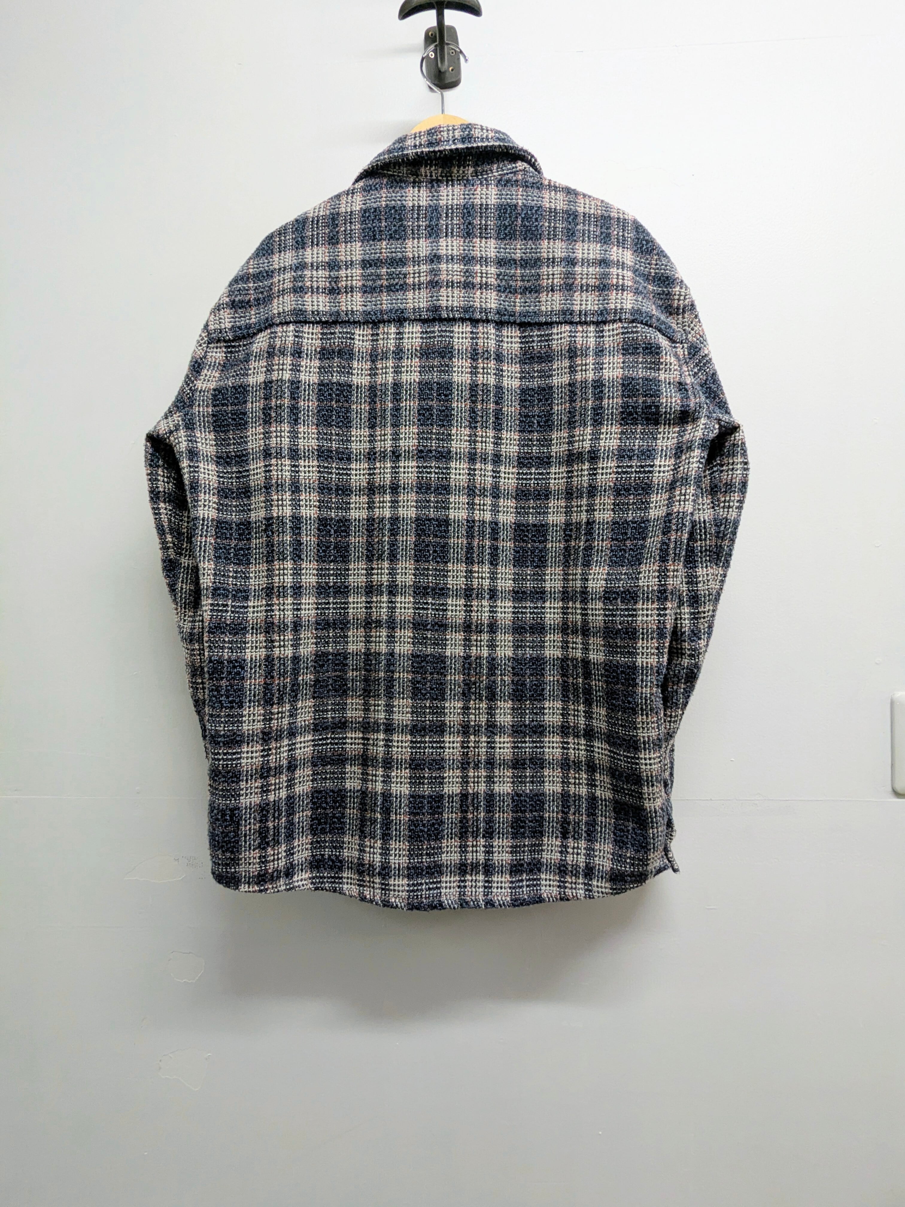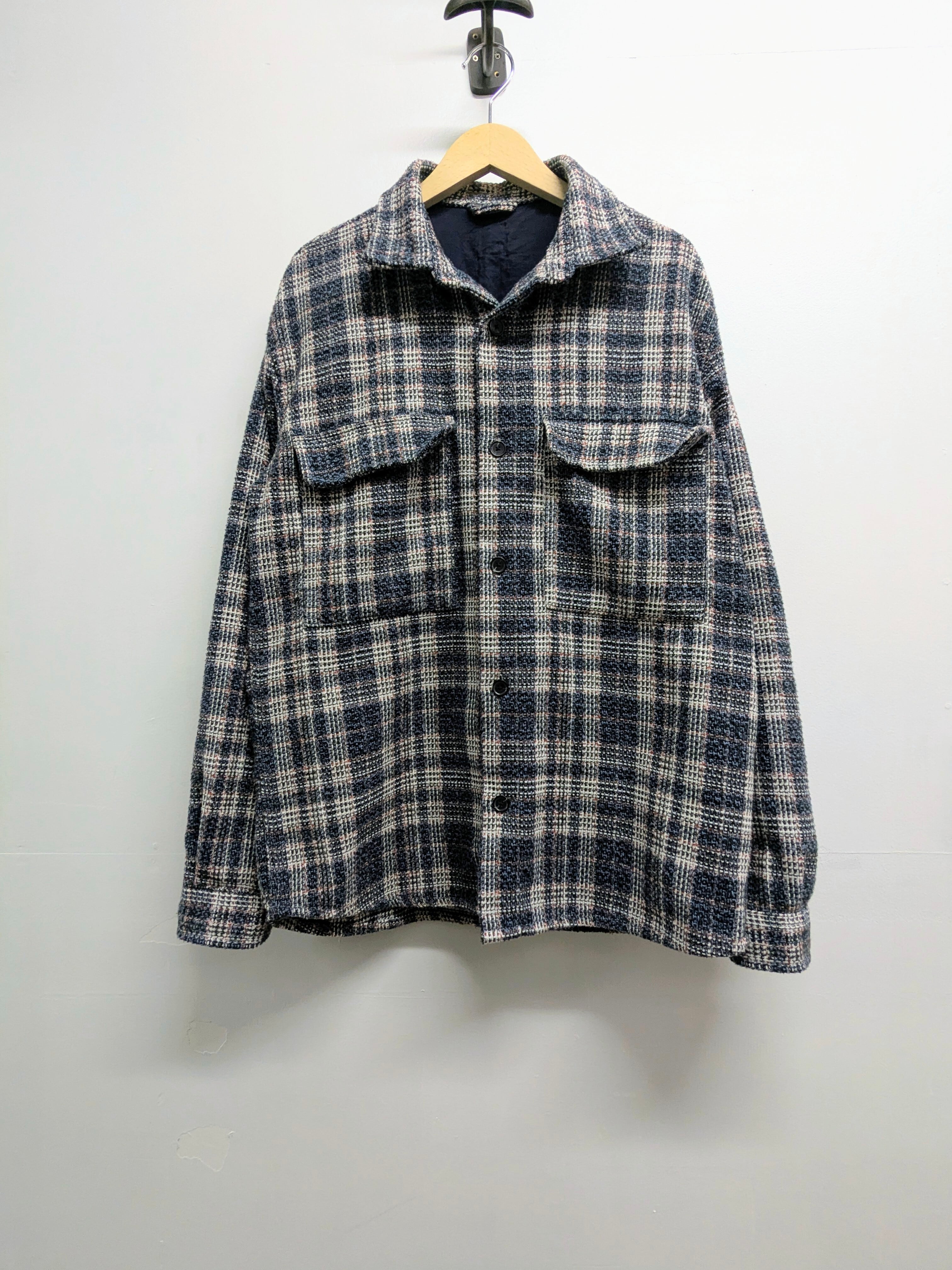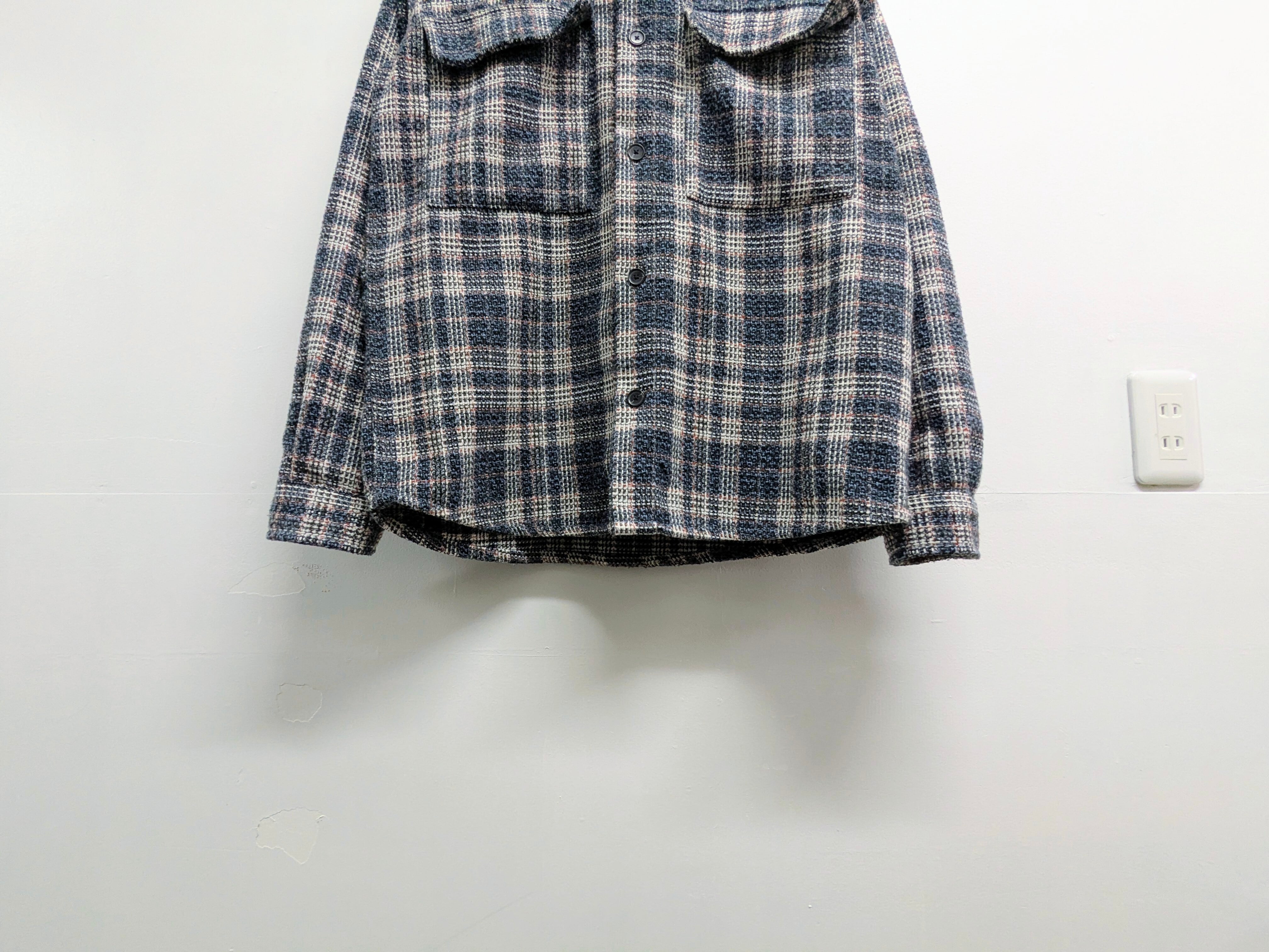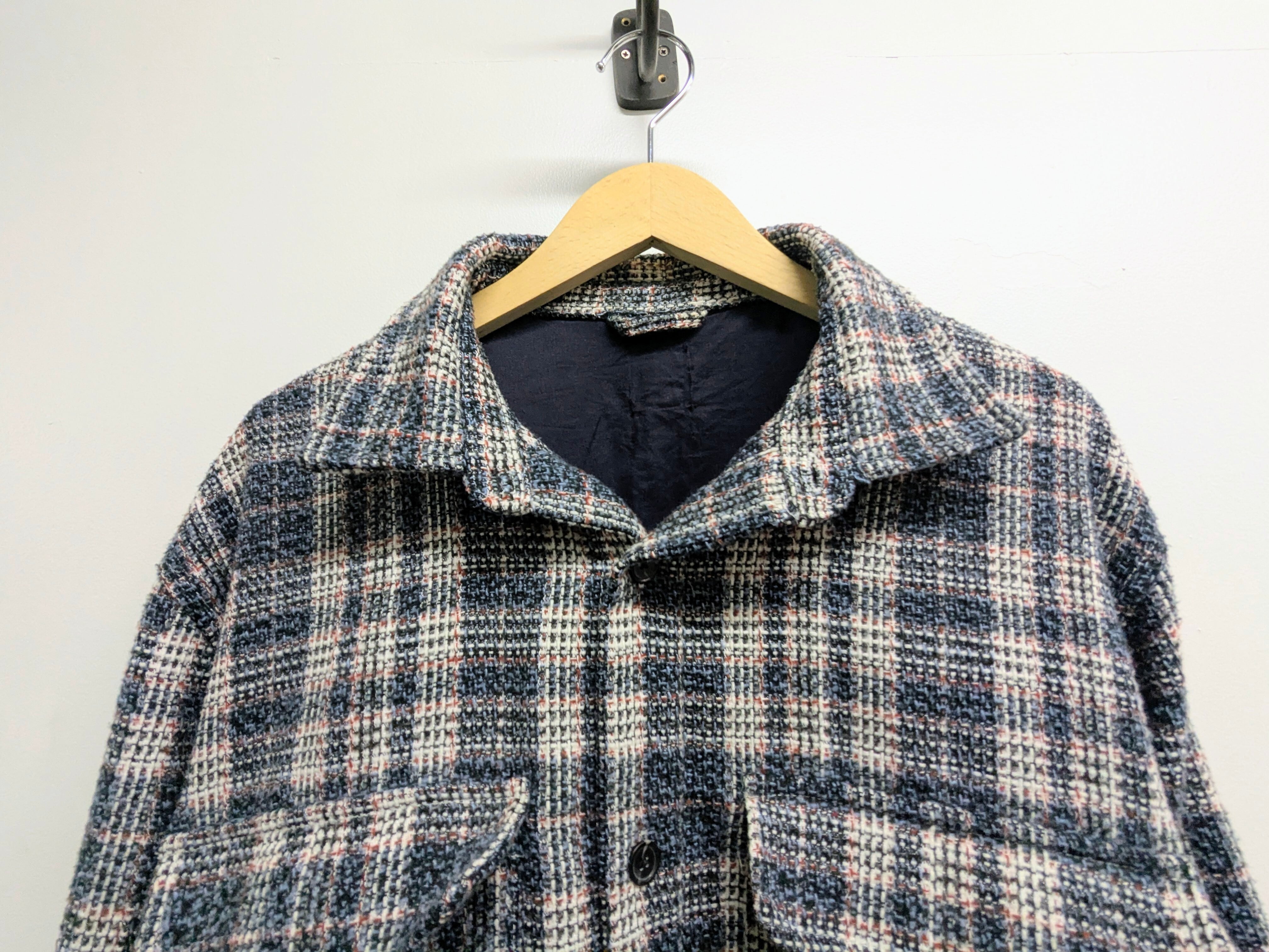 これからの時期にピッタリのライトツイードのシャツブルゾン。立体感のある素材で、綺麗な見た目のアイテム。ブルーベースに赤のペンチェックが入っています。中間着にもトップスにも活躍してくれる一着。