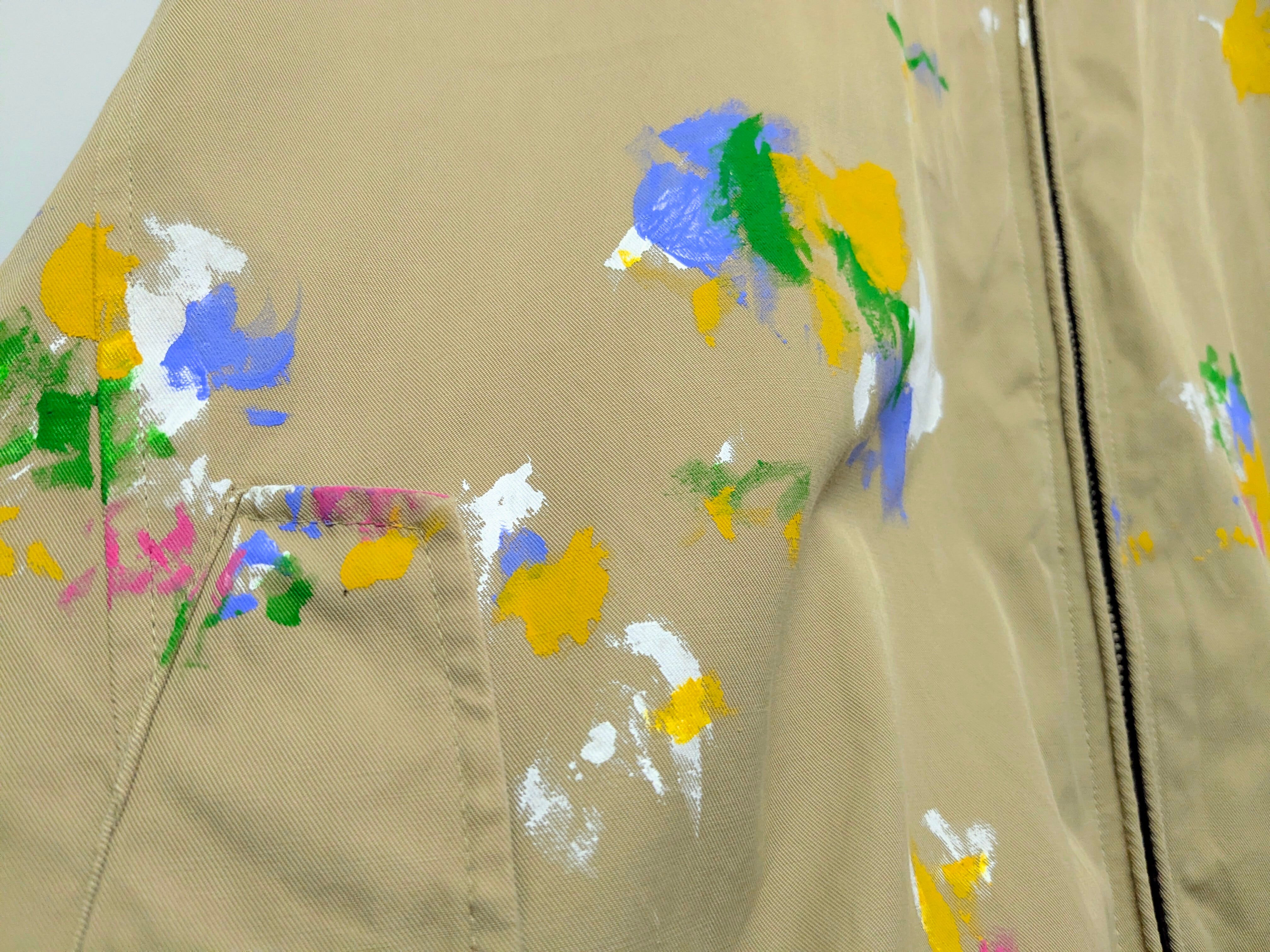 リアルワークではありえないようなペイントを加えたアイテムとなります。むしろ洋服をキャンパスに見立てて、絵を描く、アートな洋服となっています。全て手作業のため唯一無二の一点物となっております。
