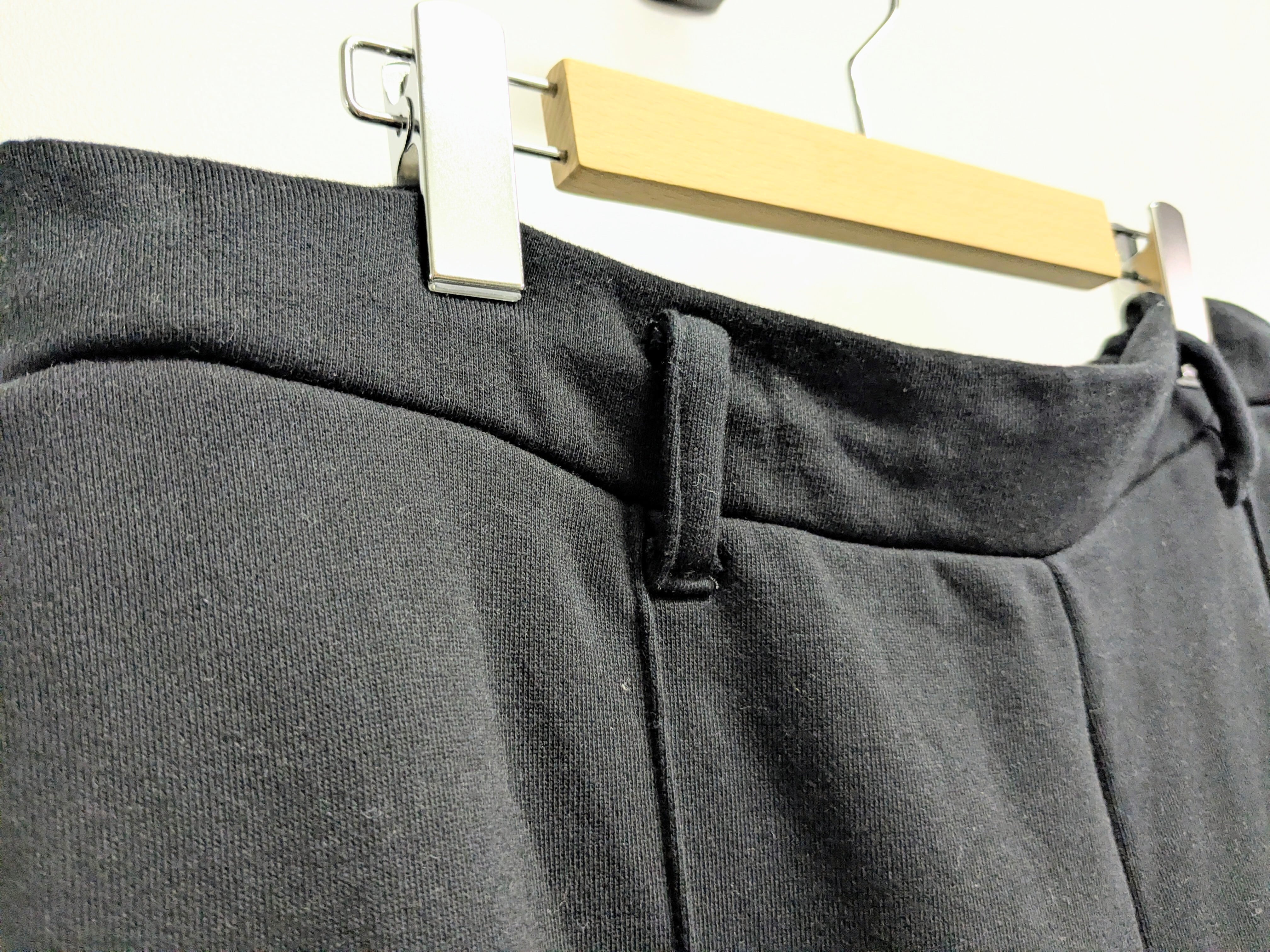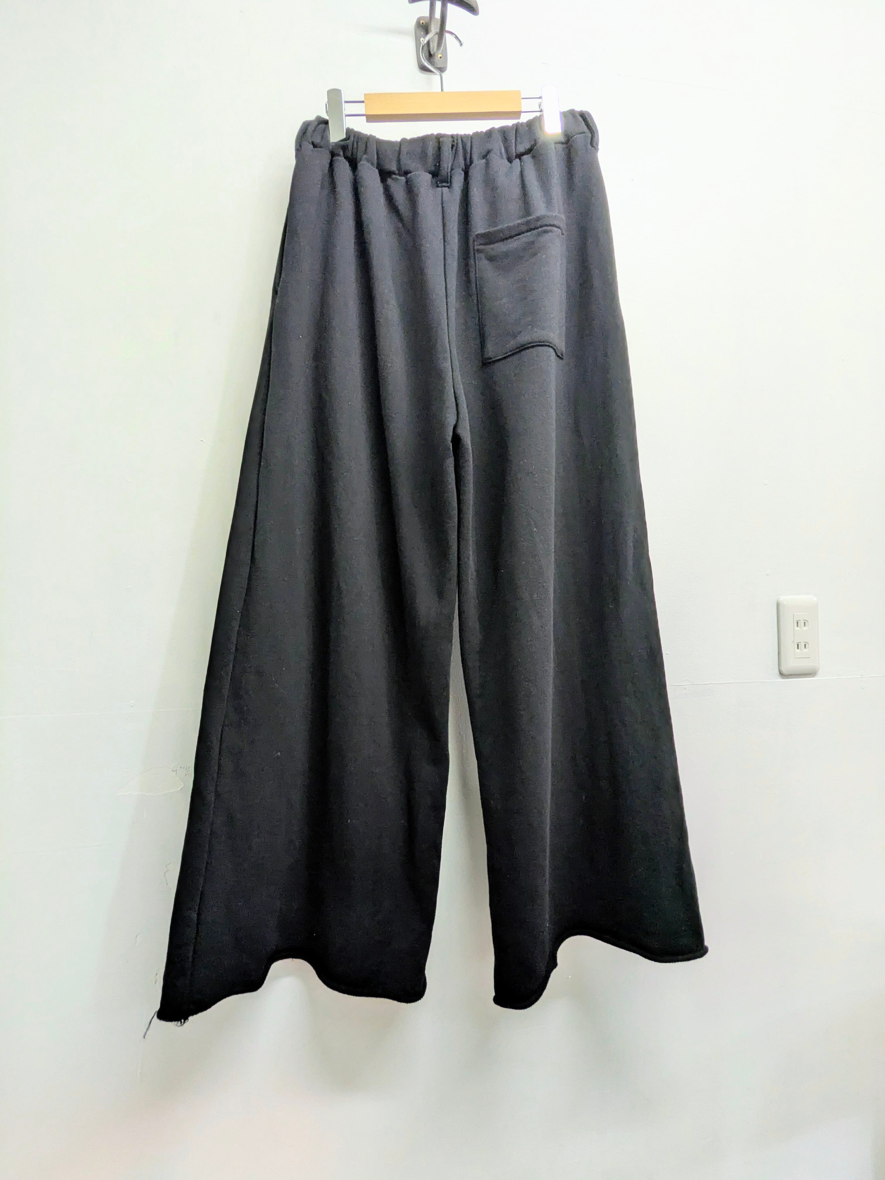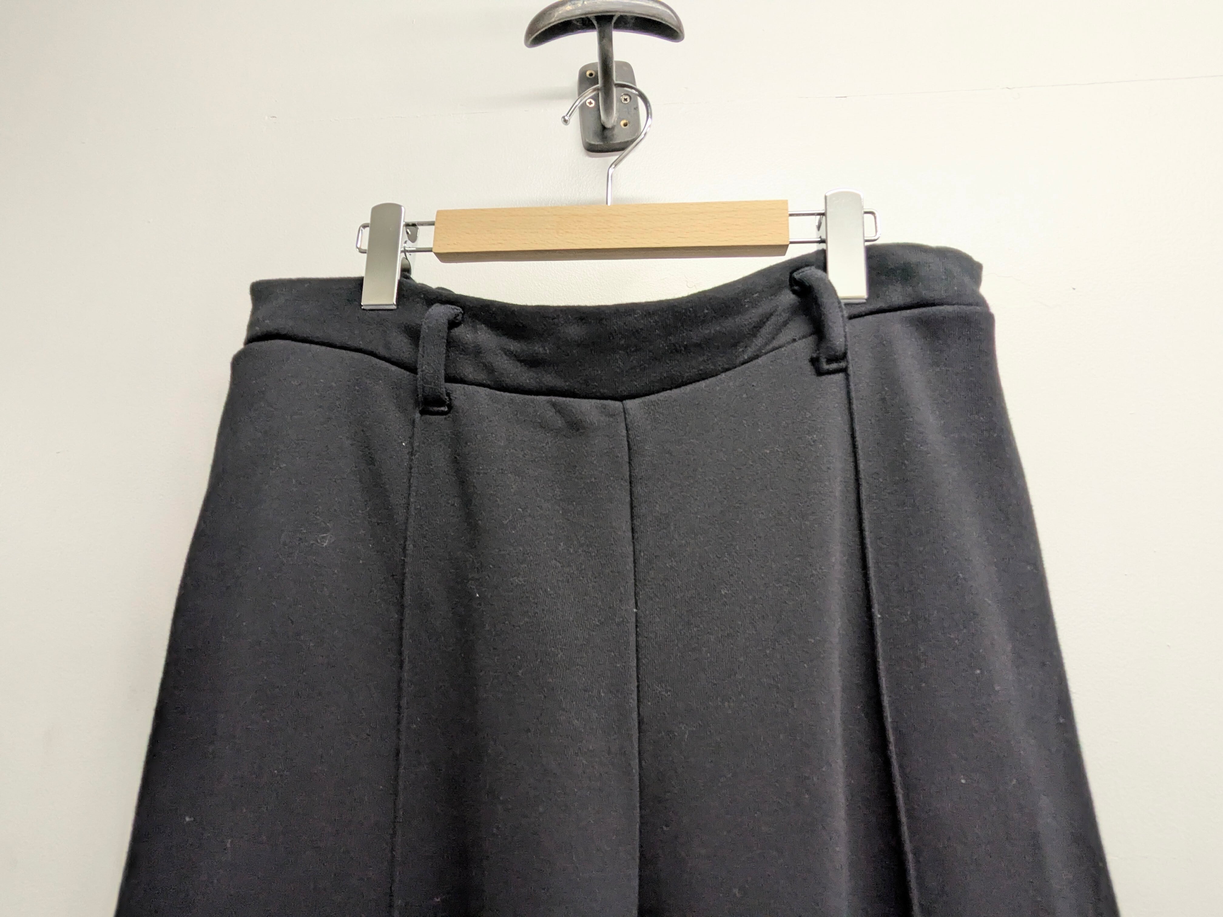 とにかくワイドシルエット!な一着。スラックスのようなセンタークリースのようなデザインがあり、パッと見ワイドスラックスにも見えます。楽なは着心地で、綺麗に見えるアイテム。スウェットなので、長ければ裾は切ってしまってもいいかと。