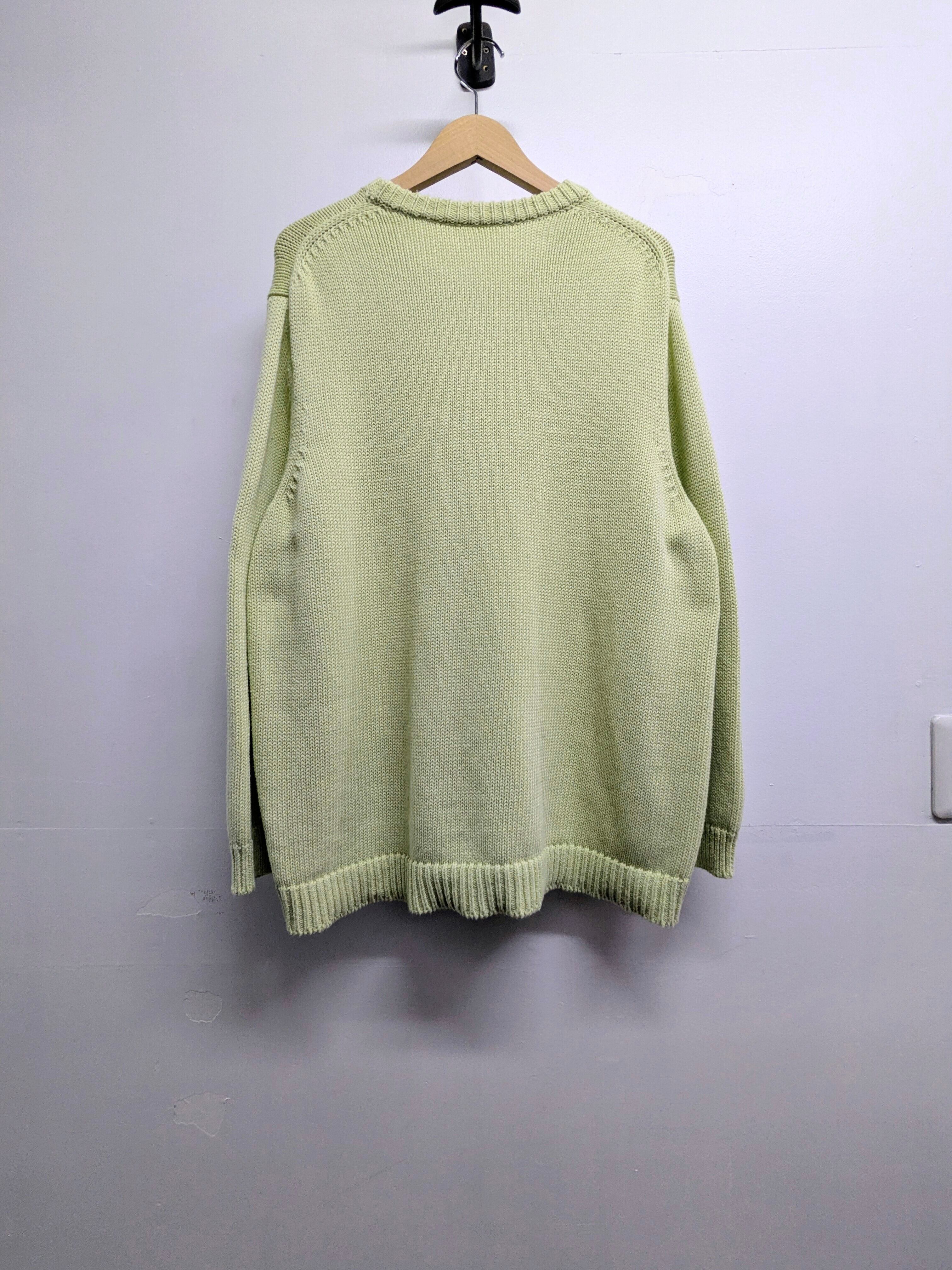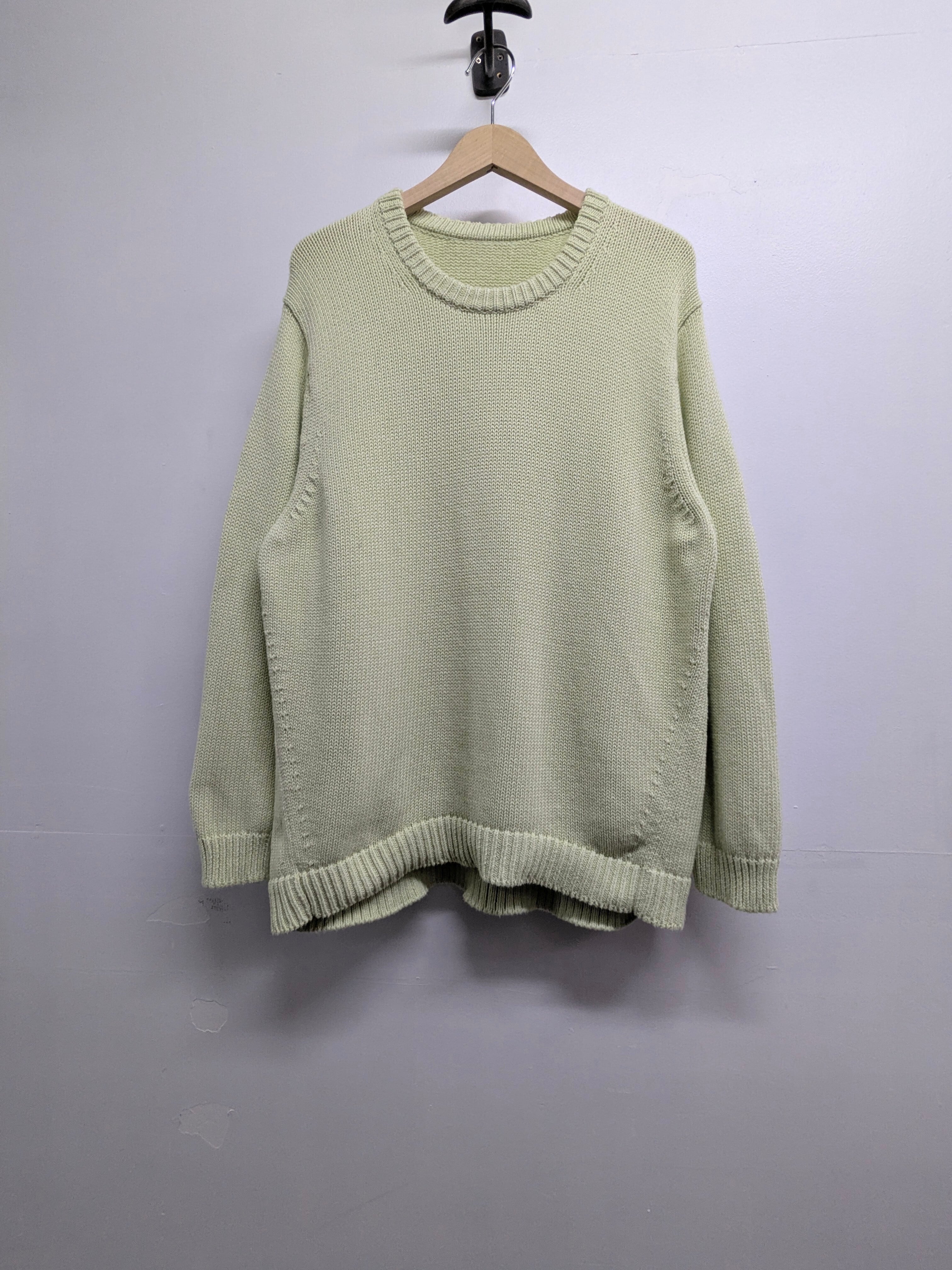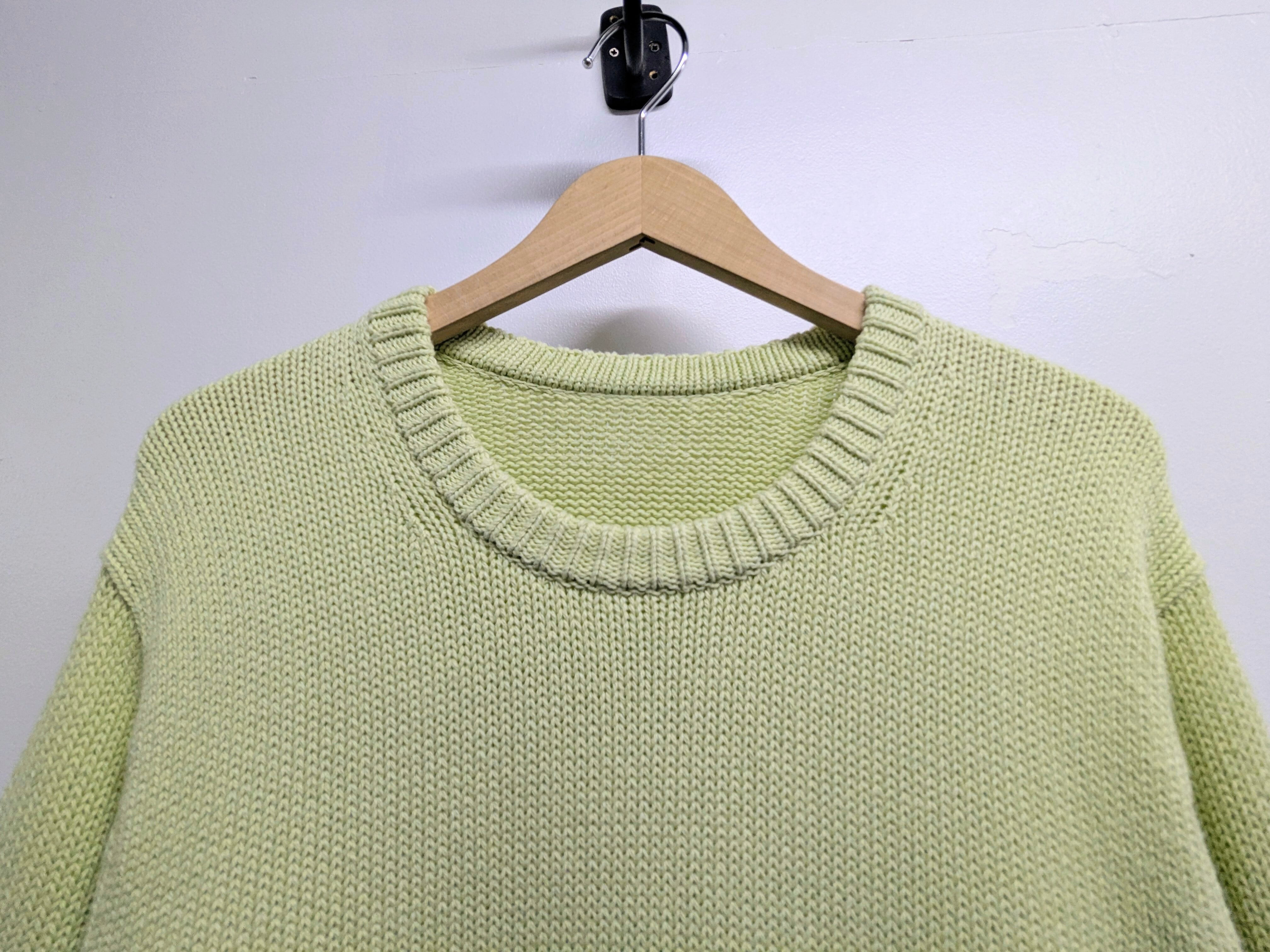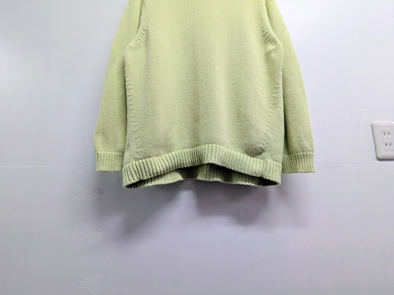 こちらは珍しい色のコットンニット。シンプルながら色で存在感があるそんなアイテム。自分で着ようかなと思って仕入れてきました。サイズ感は177cm/60kgが着て、ややルーズに着れるサイズ感です。