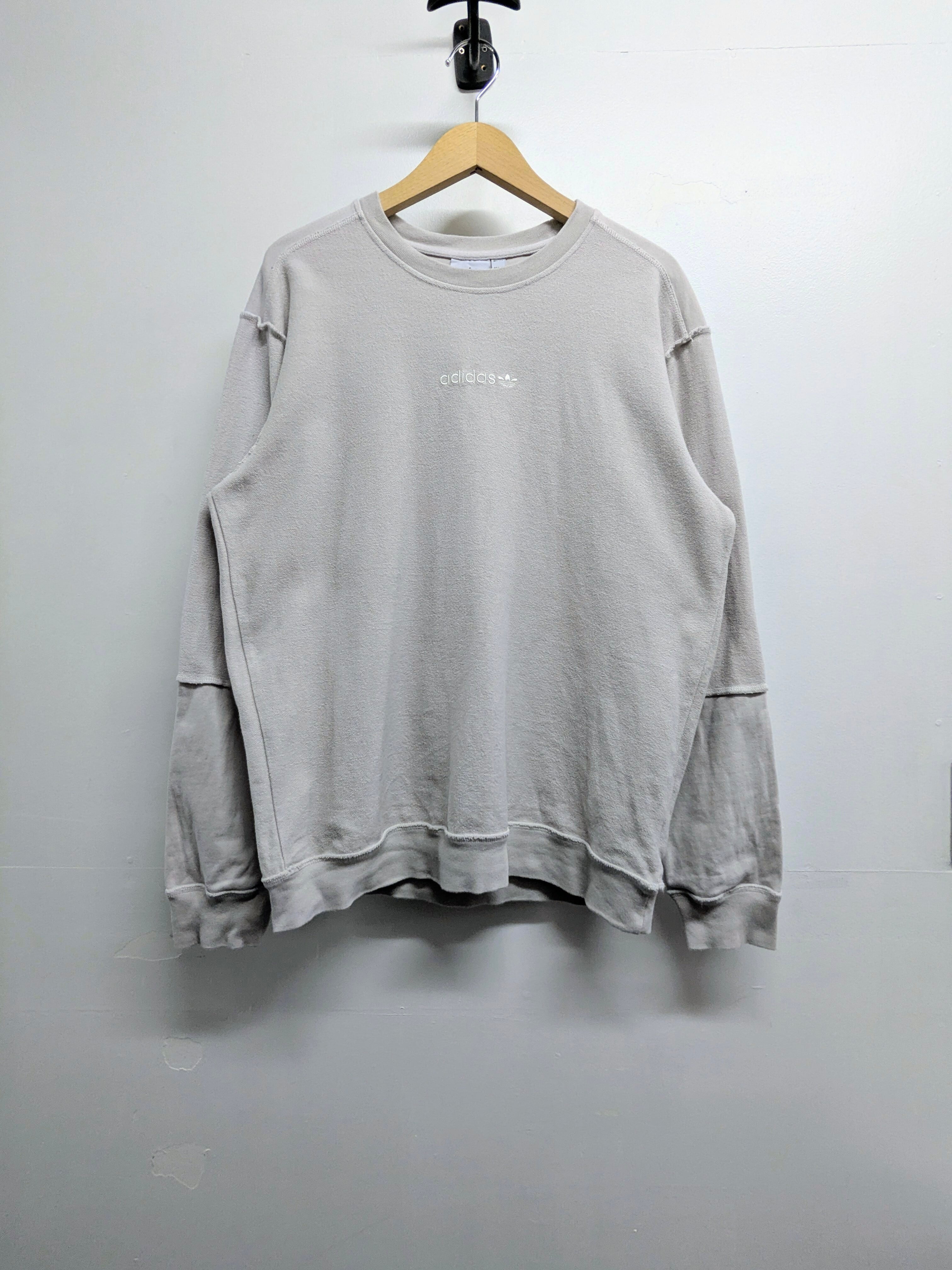 裏っ返したようなデザインのスウェット。袖は表地にきり替わっており、パッチワークのようなデザインにもなっております。フロントの刺繍、バックのプリント入り。ロンTの延長で使えるような通年着れるアイテム。色はグレージュのような上品な色。
