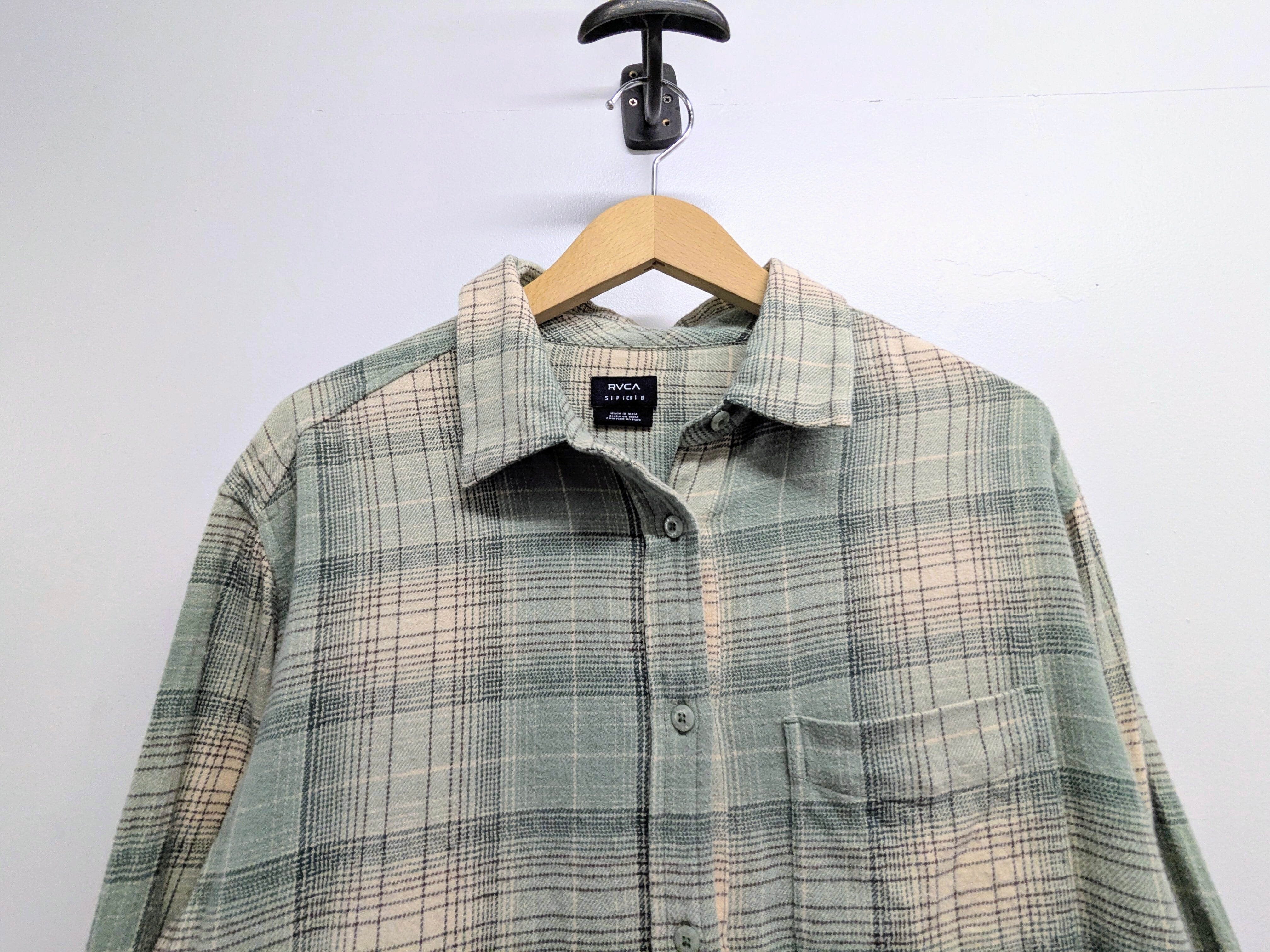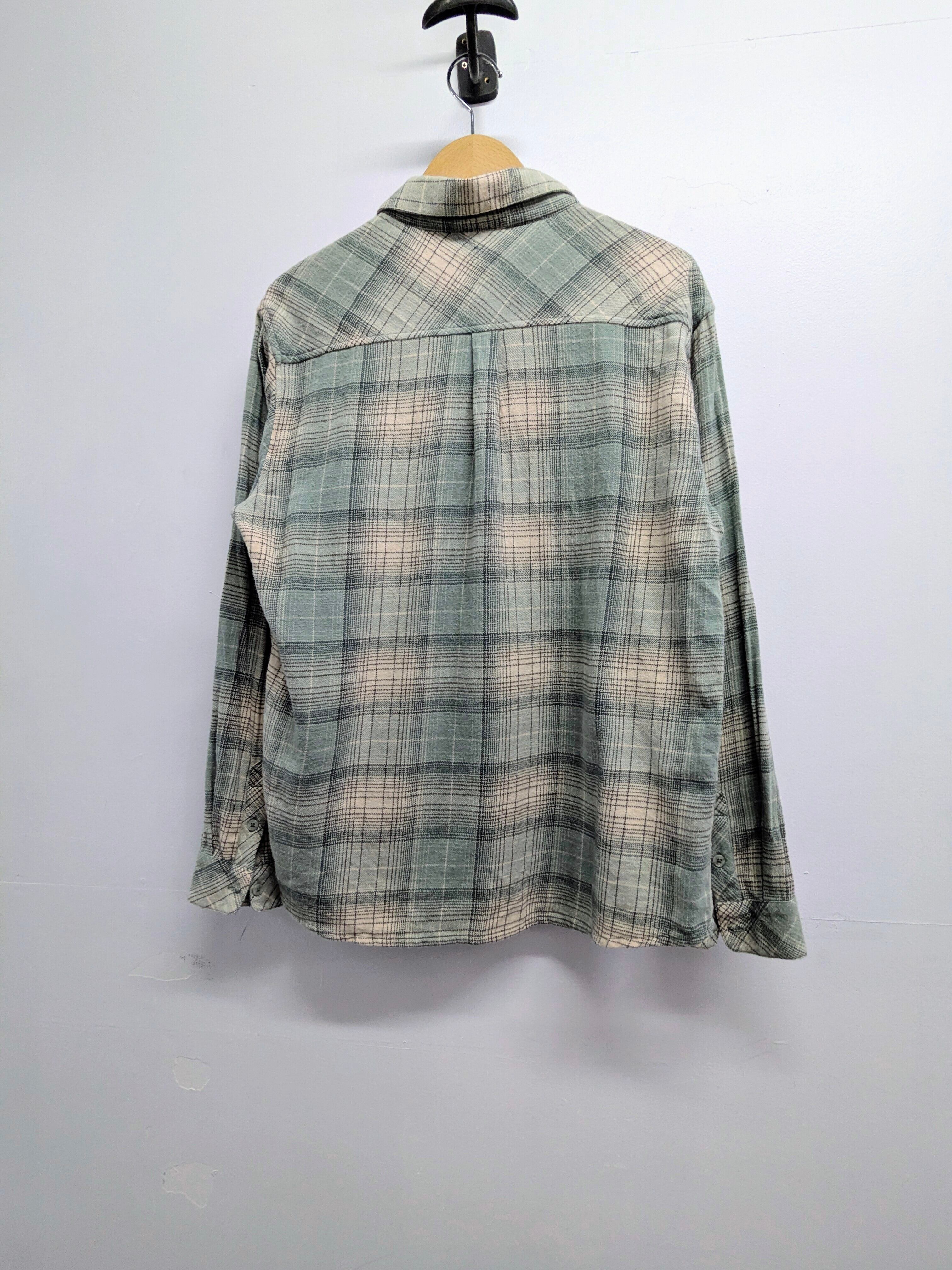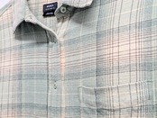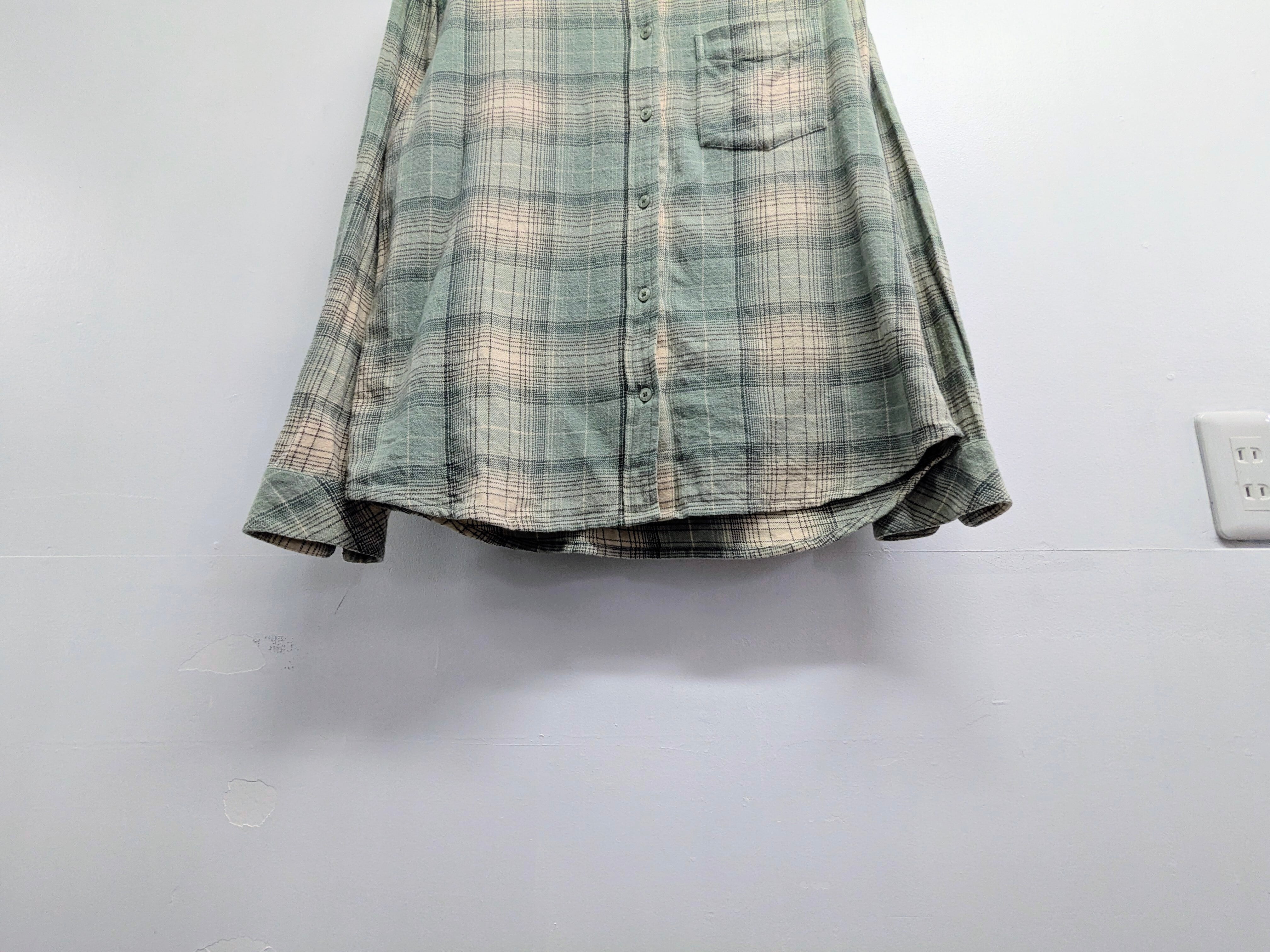 ガーゼのような柔らかい、軽い素材のネルシャツ。淡いグリーン系の色味が抜け感がありちょうどいい一着。色物取り入れたいけど、着たことないような方にもオススメ。