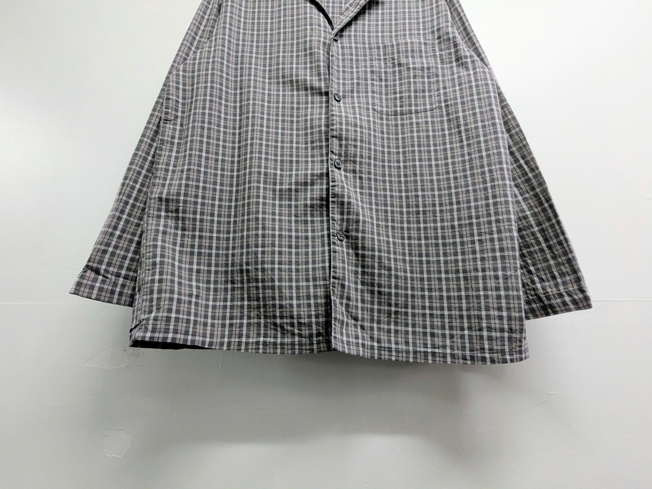 人気のパジャマシャツ。ジャケットにも見える感じが個人的にはおすすめポイント。ジャケット、開襟シャツともまた違った表情。