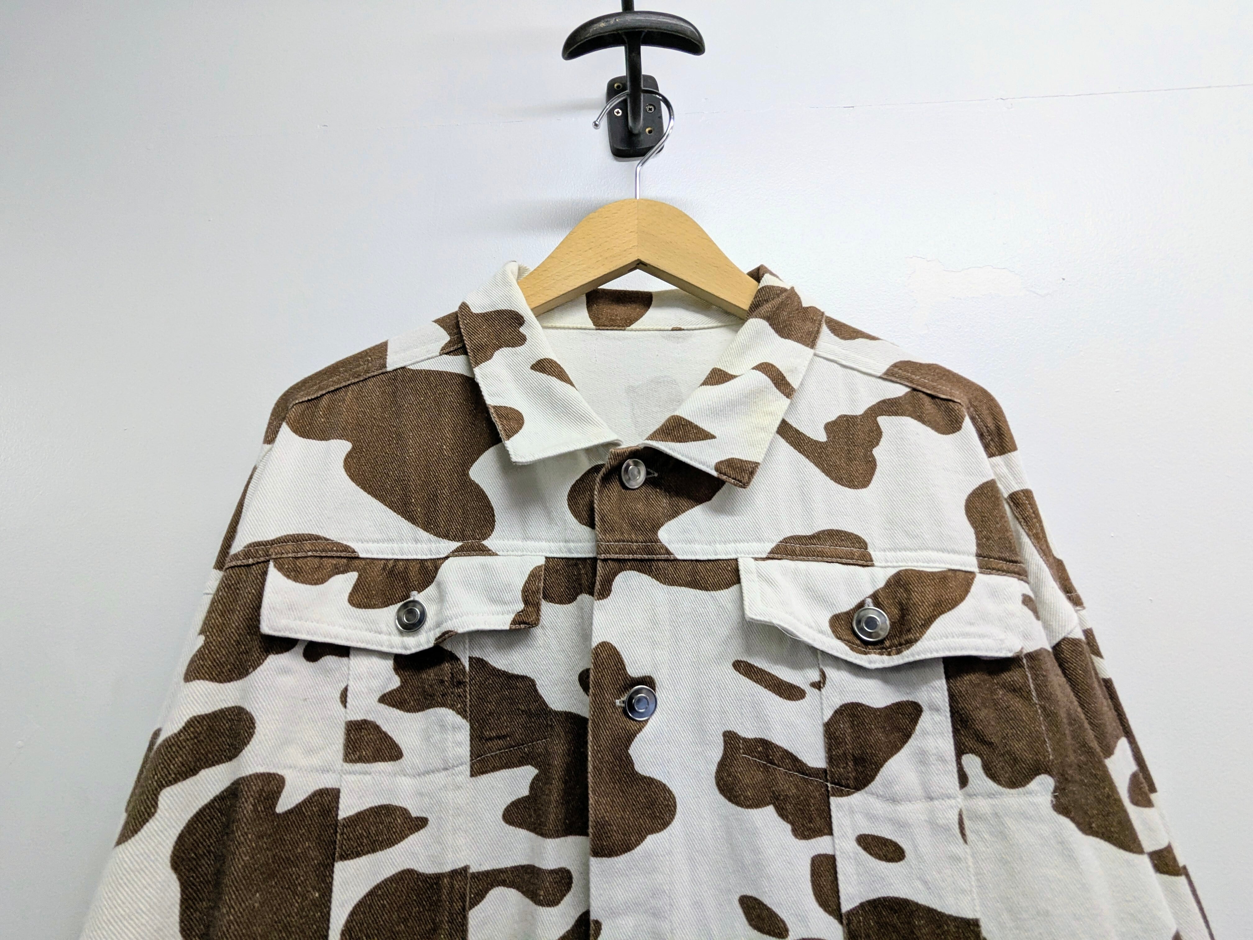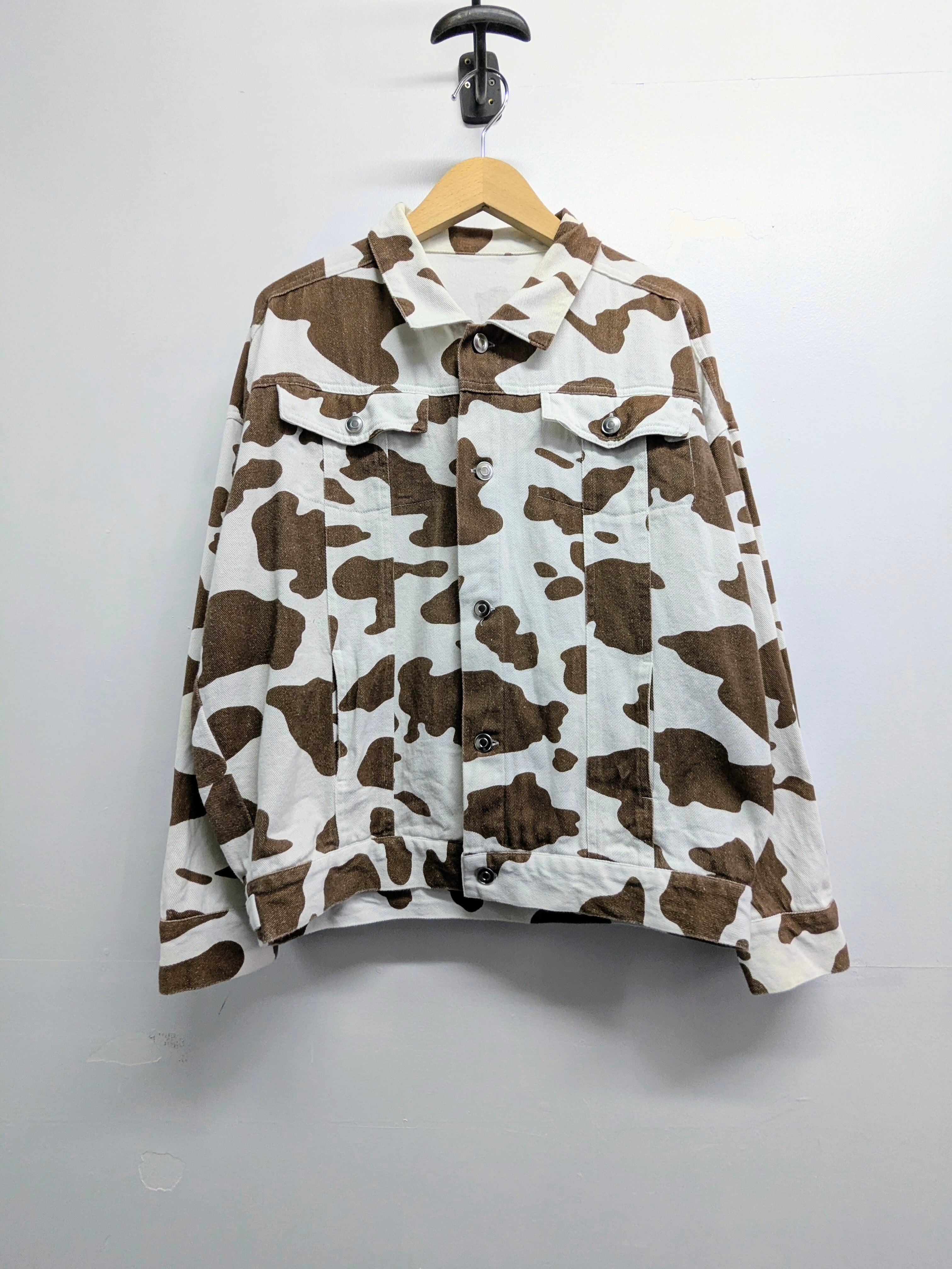 ホワイト、ブラウン系でまとまっていて意外と使いやすい一着。牛柄は個人的にはあまり見ないかなと思いセレクトしてきました。