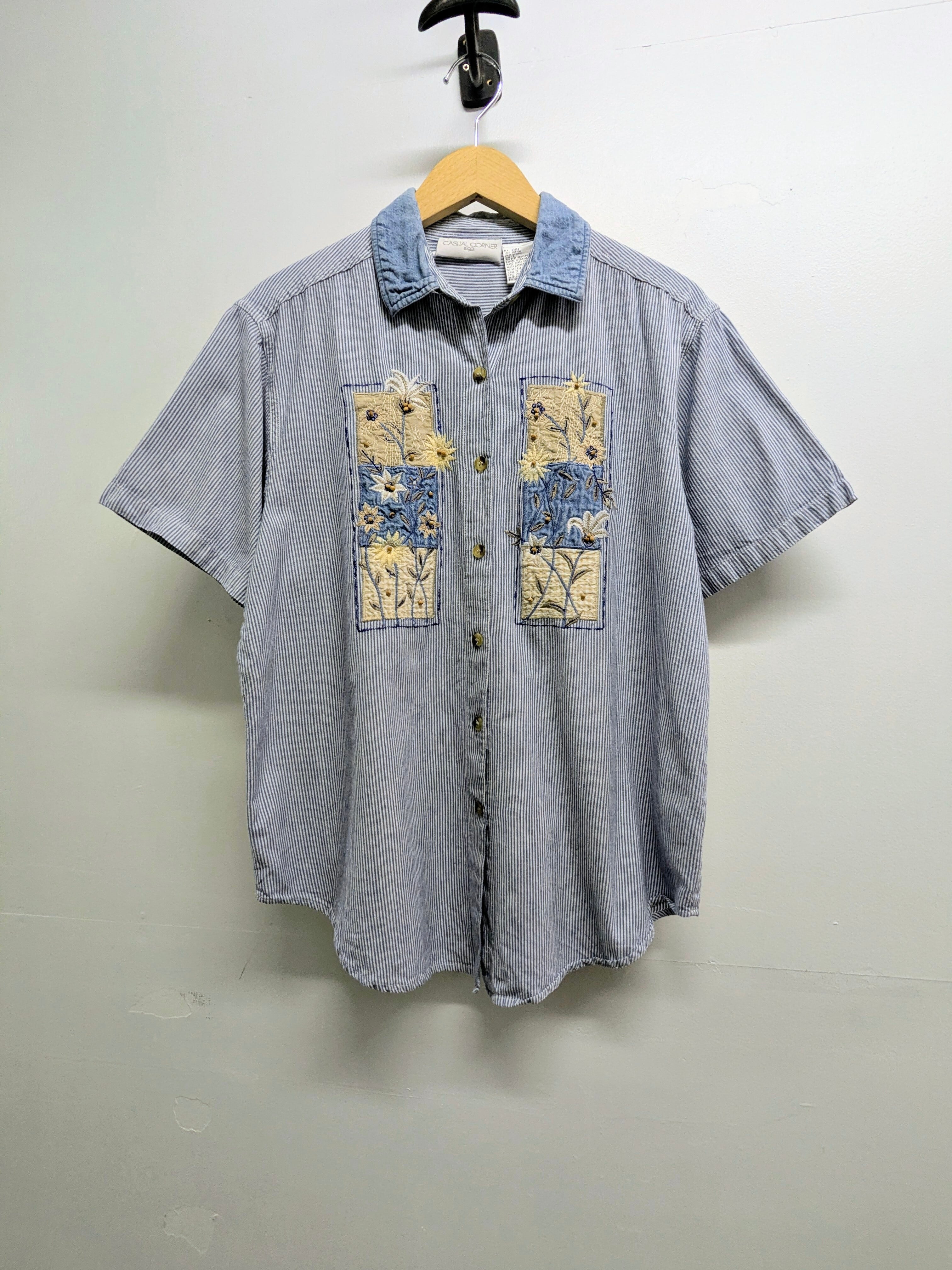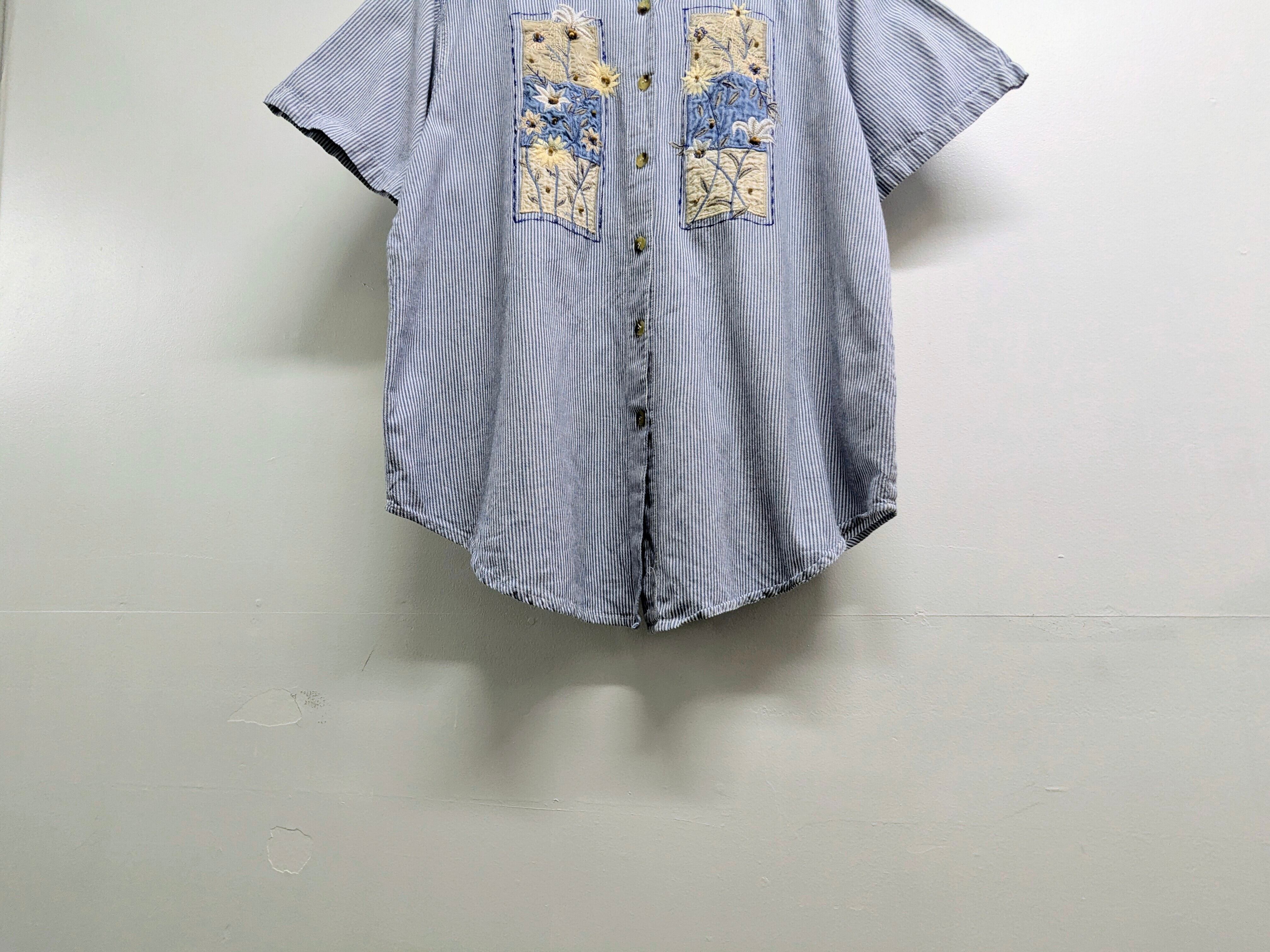 Flower Embroidered Stripe Shirt