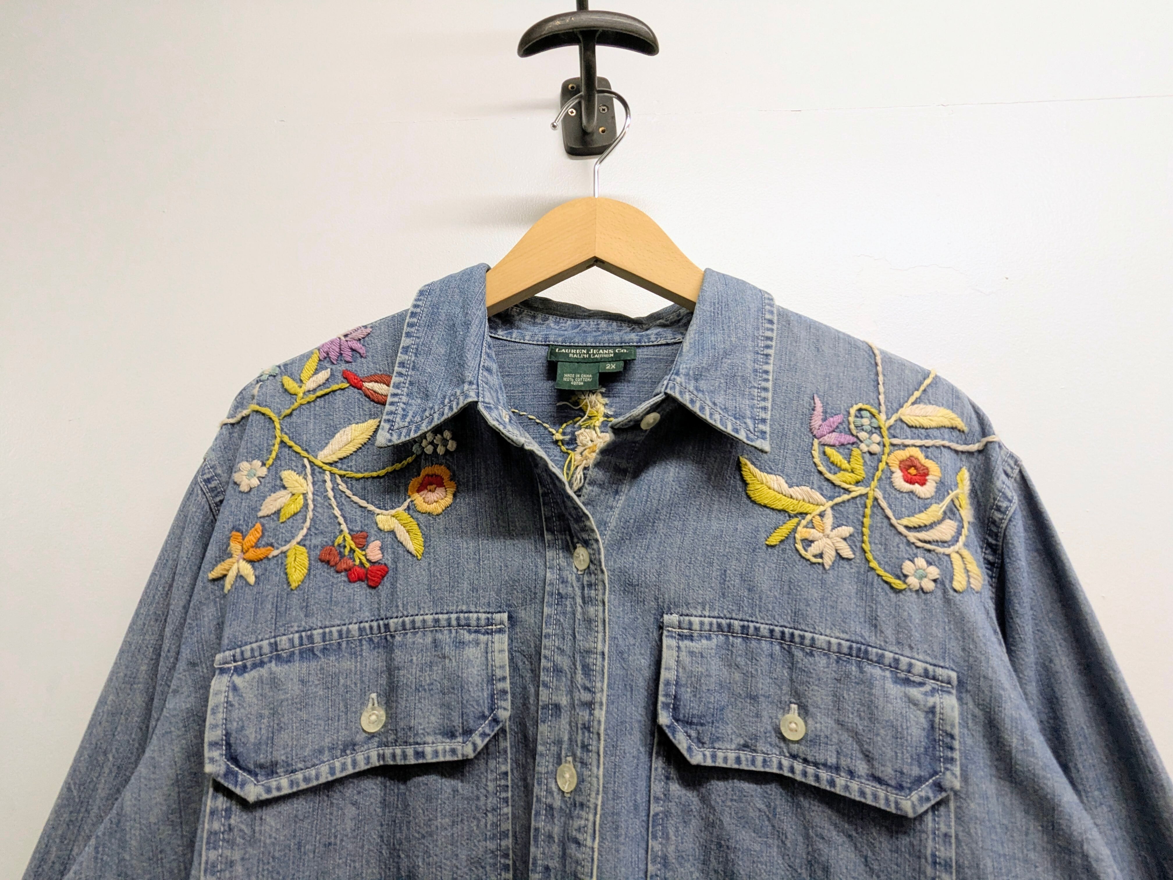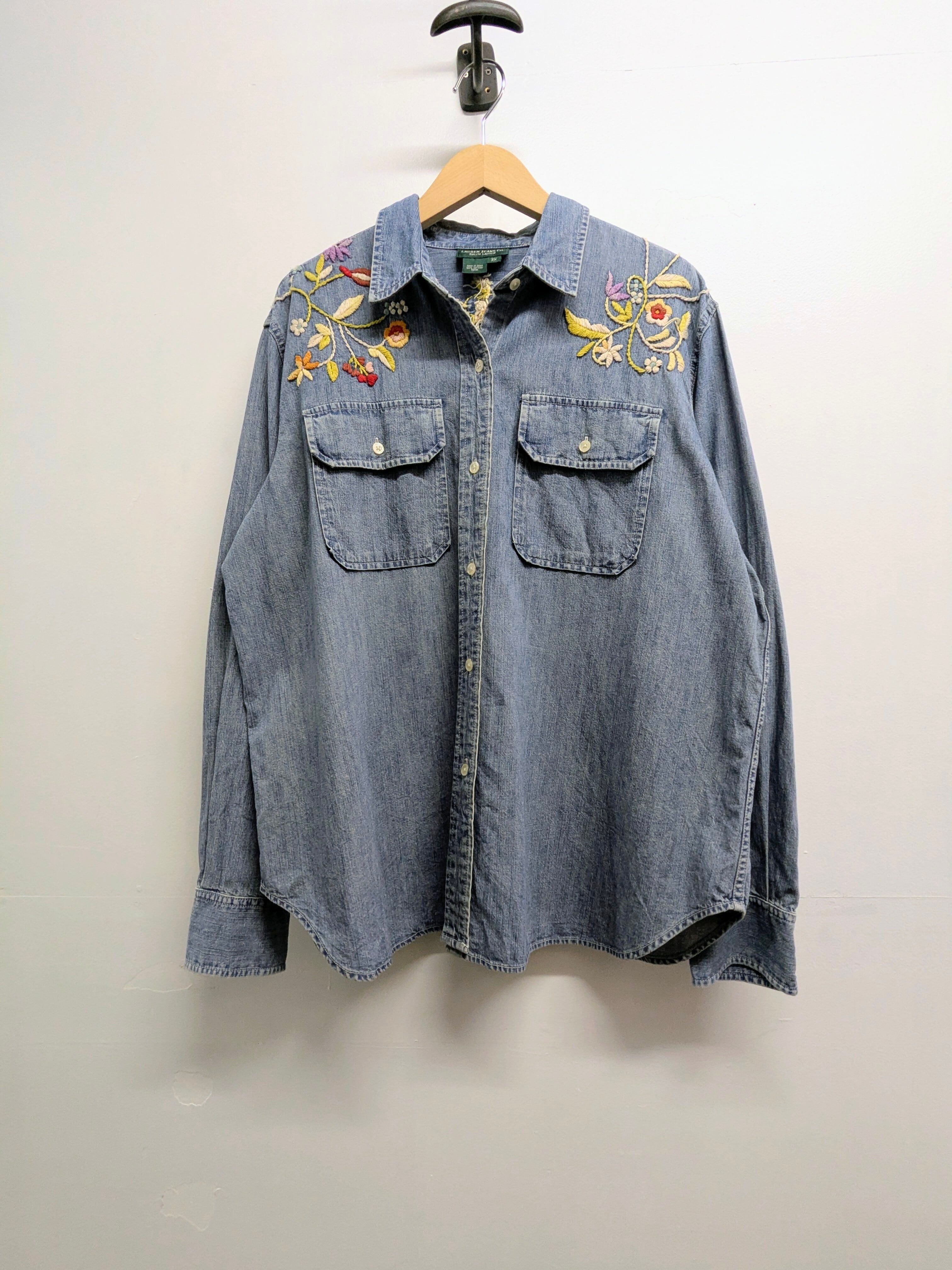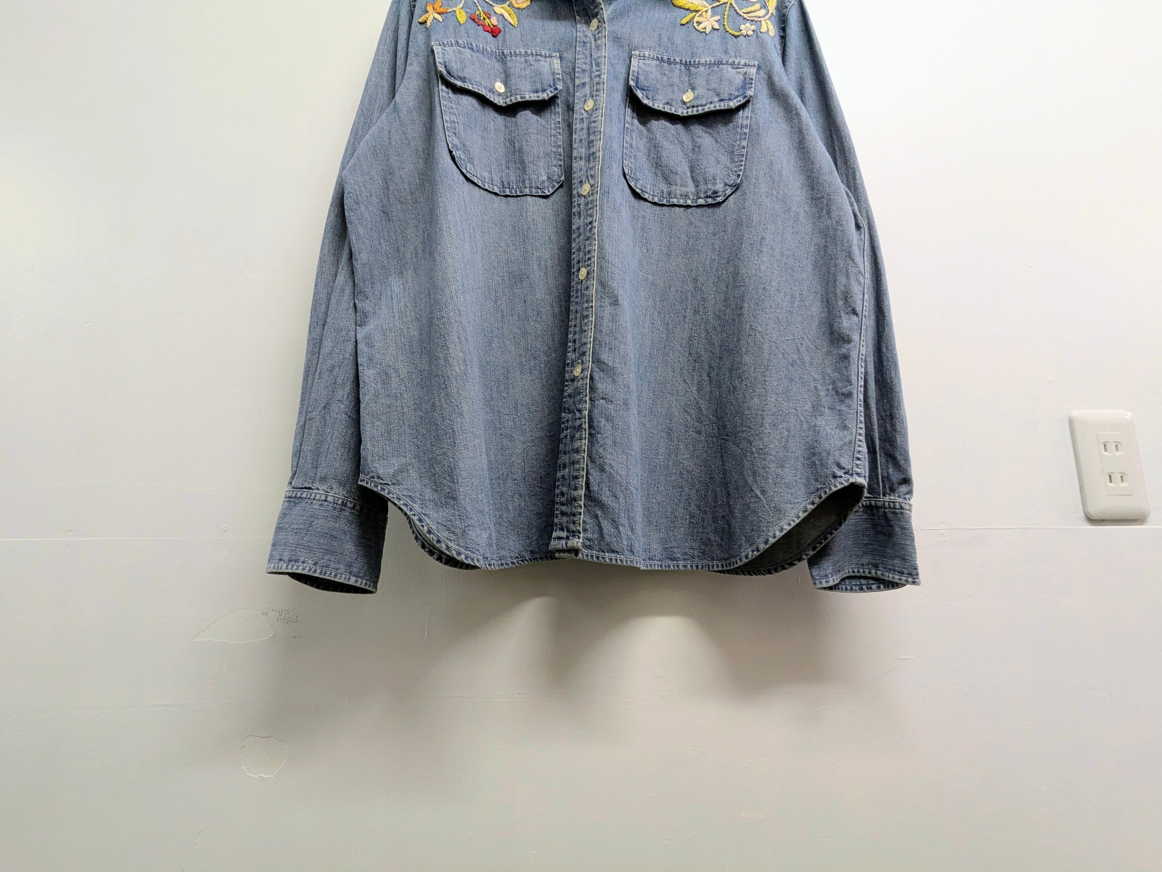 Flower Embroidered Design Denim Shirt "Ralph Lauren"