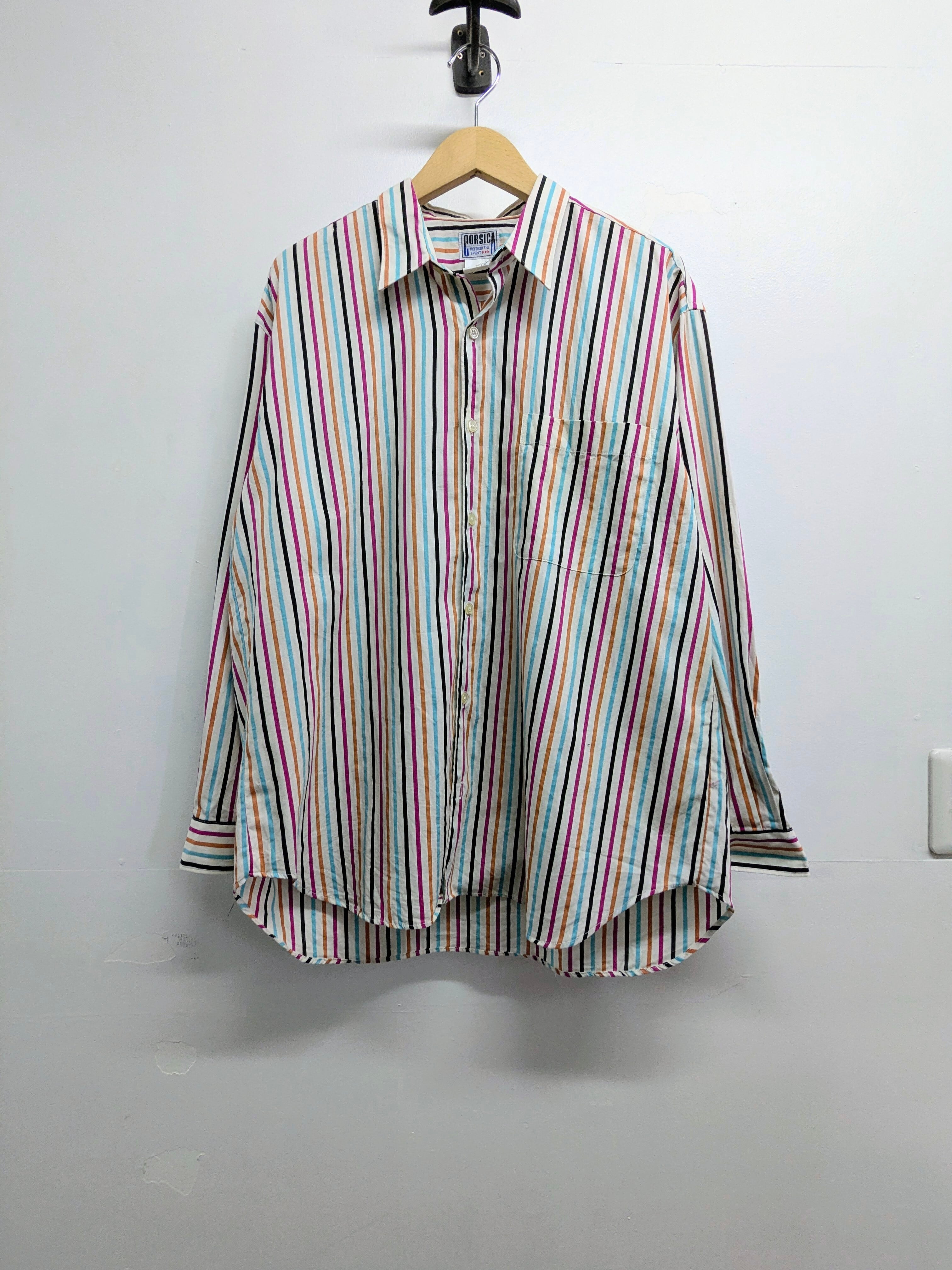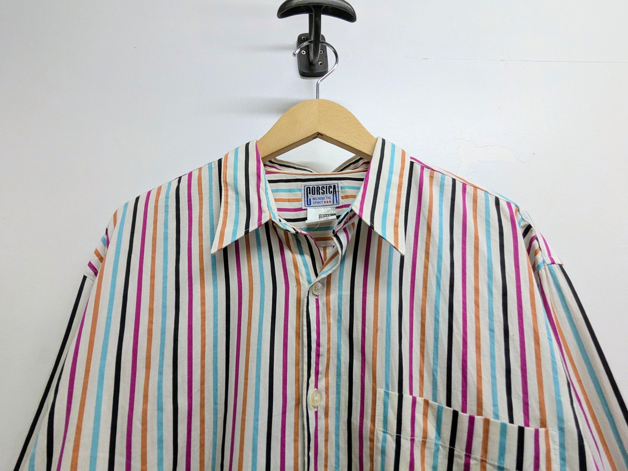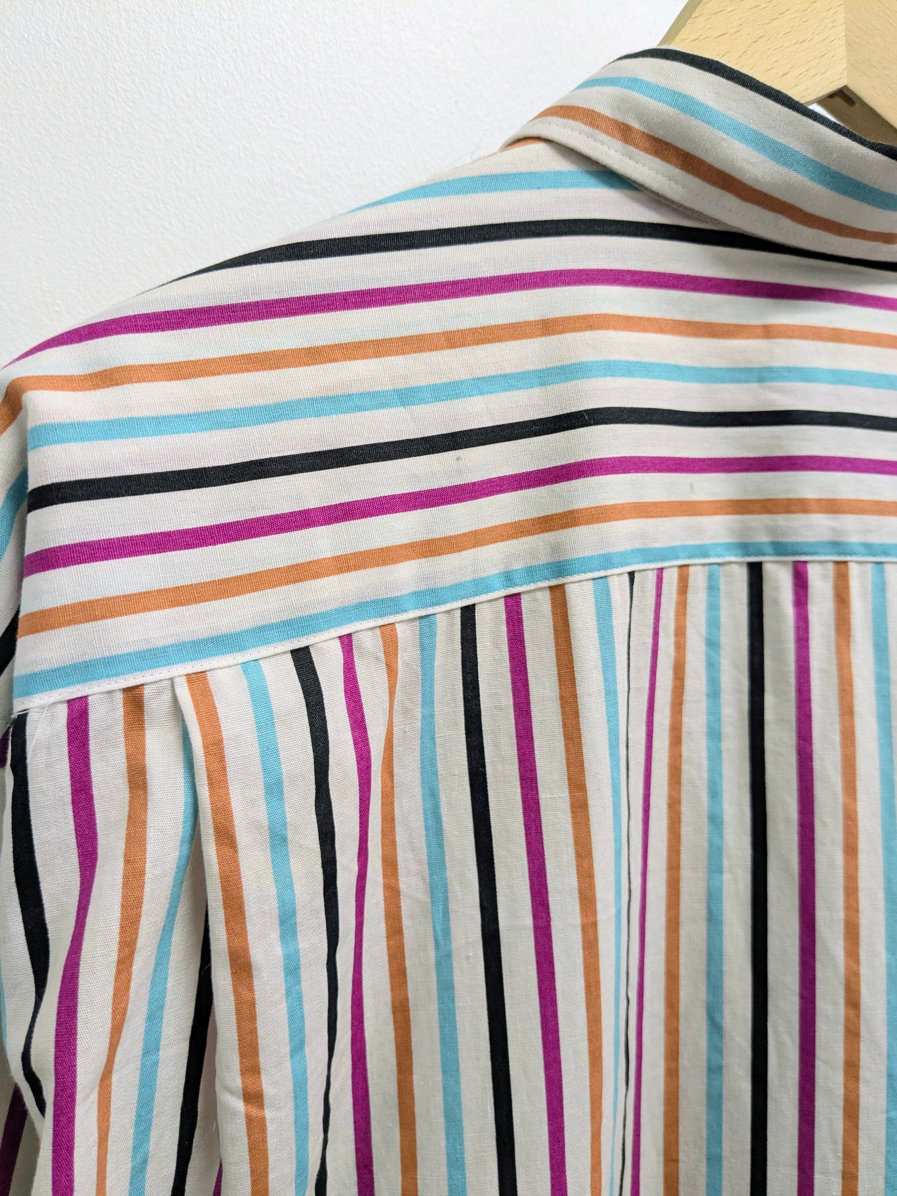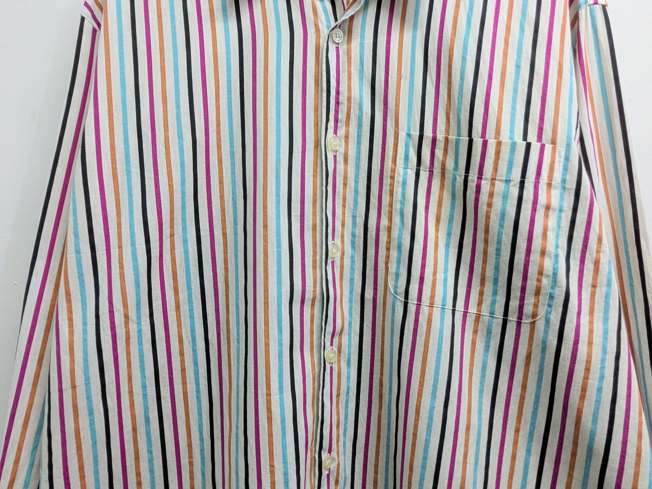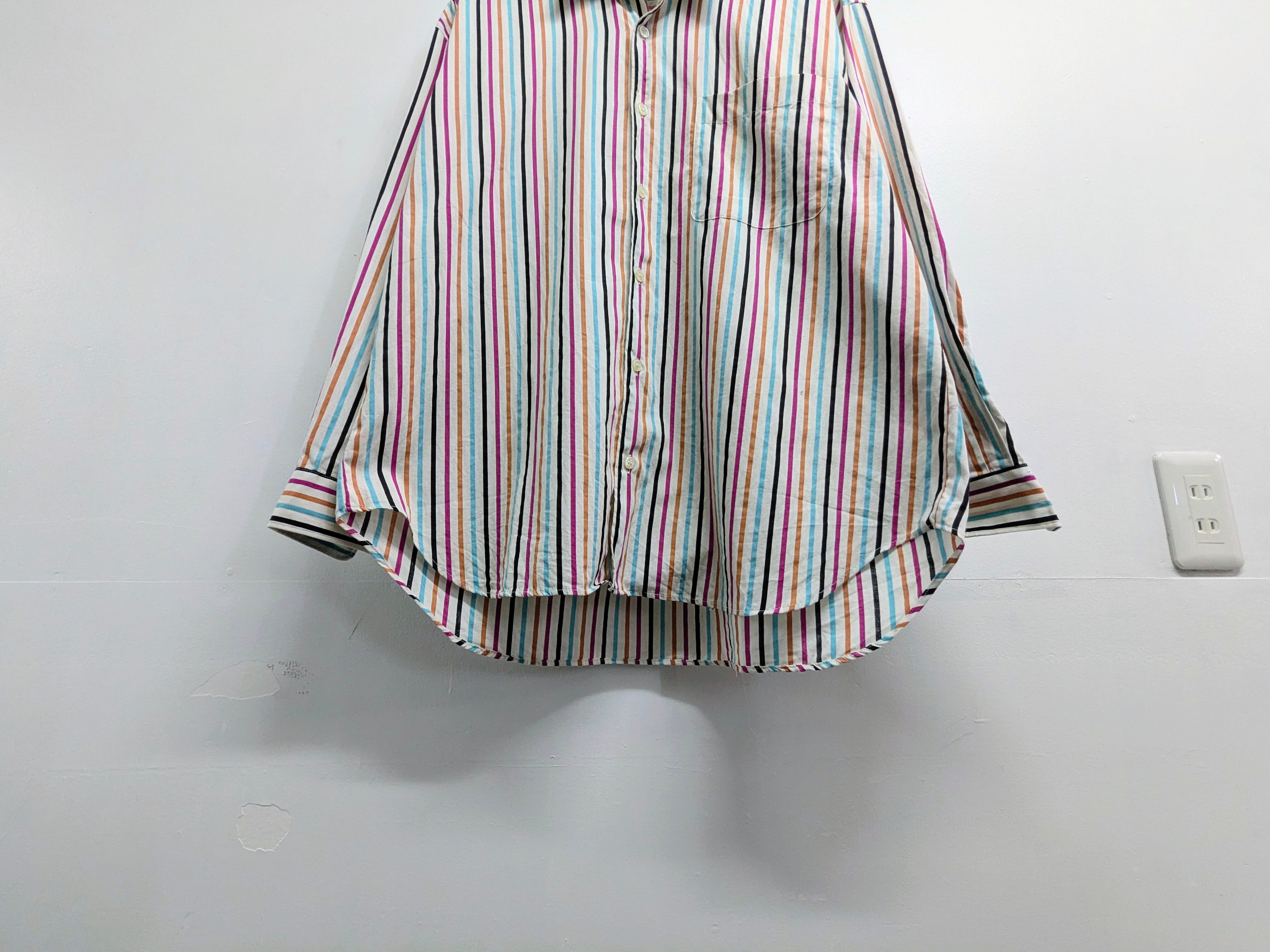 カラーストライプのシャツ。単色でなく、マルチカラーなのもまた可愛いです。今年は色物が人気そうなので、ここらへんもおすすめです。
