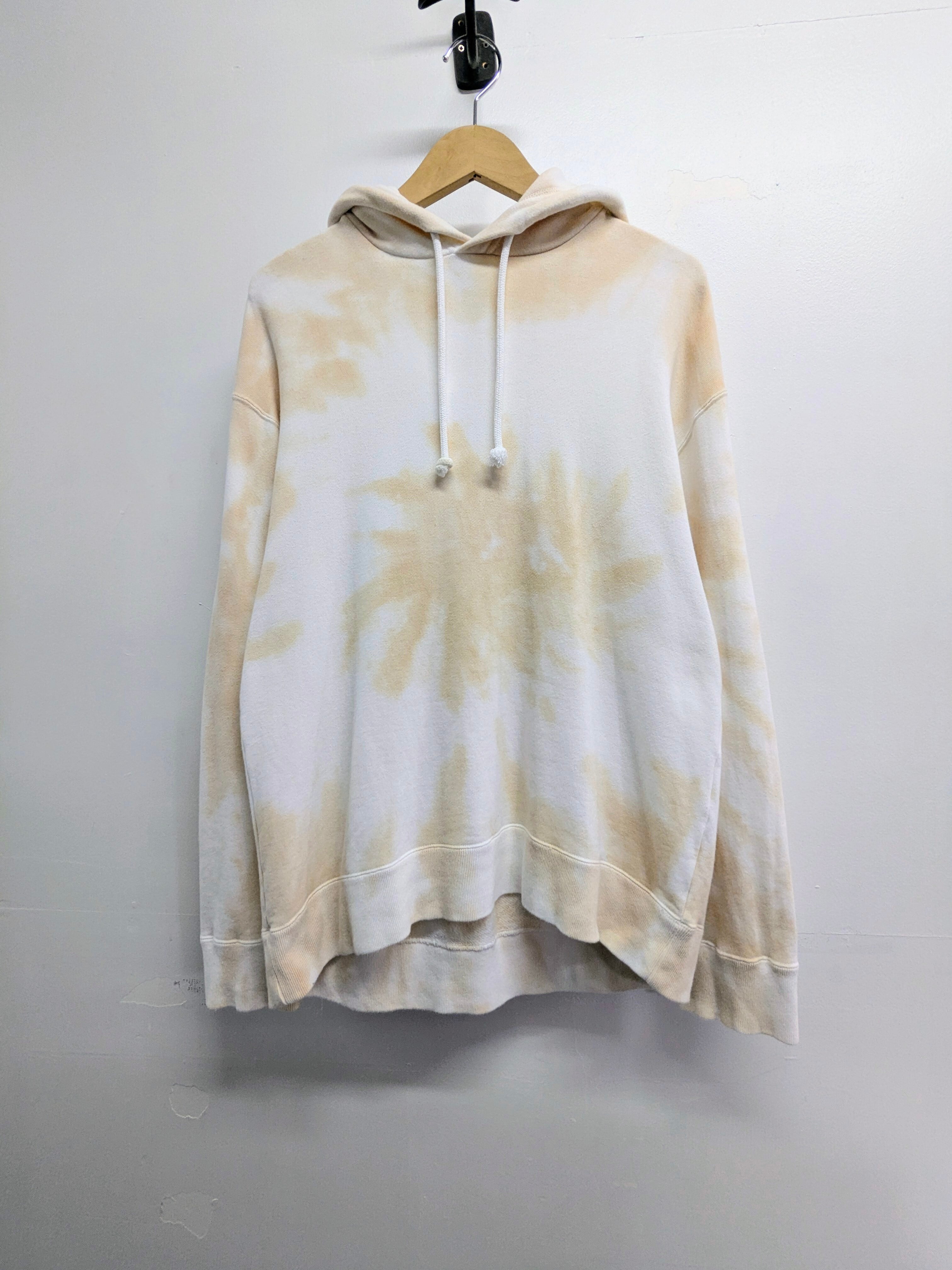 タイダイ柄のスウェットパーカー。ライトオンスでとても着やすいアイテム。派手すぎないさり気ないカラーリングが使いやすい。