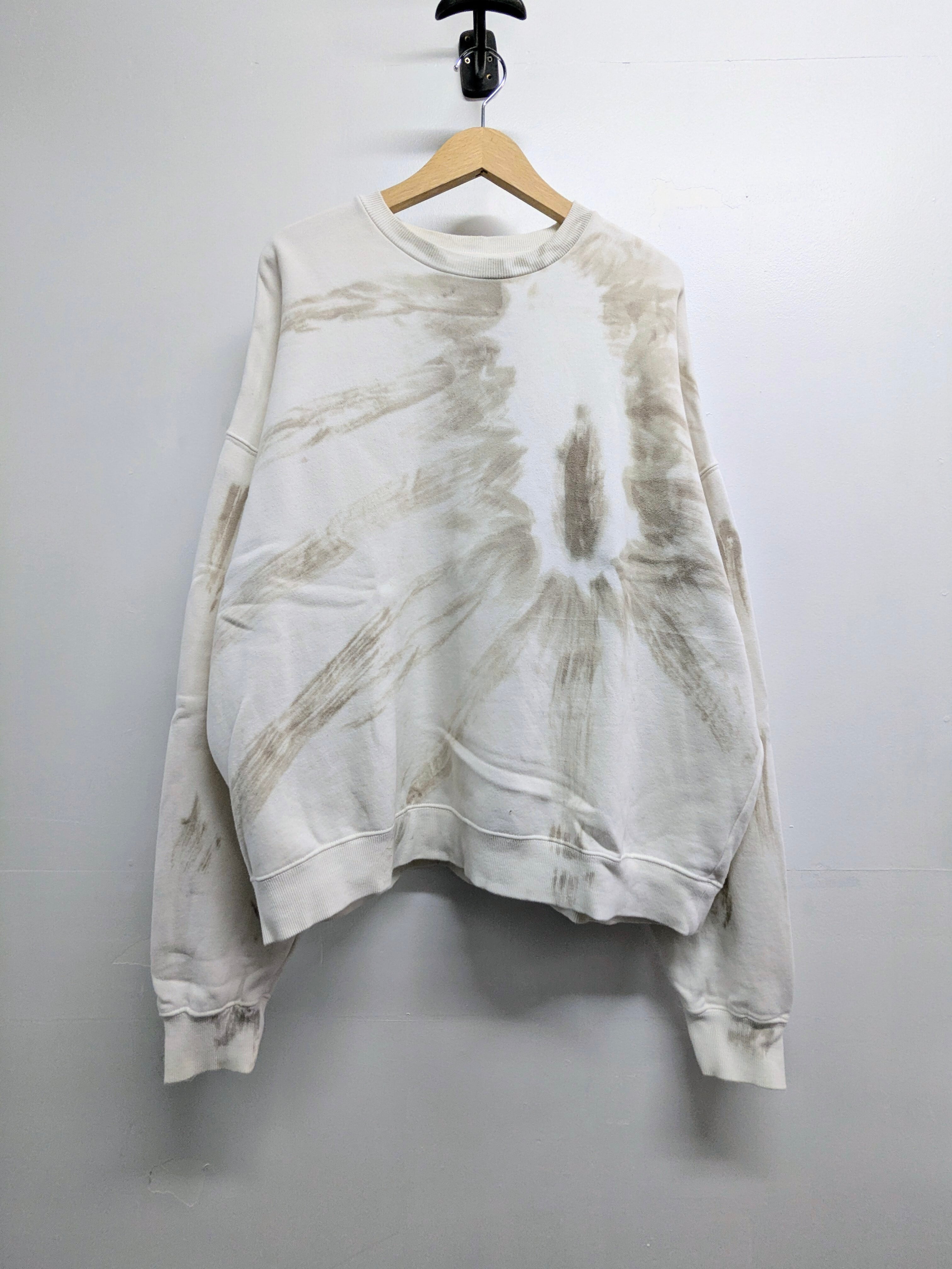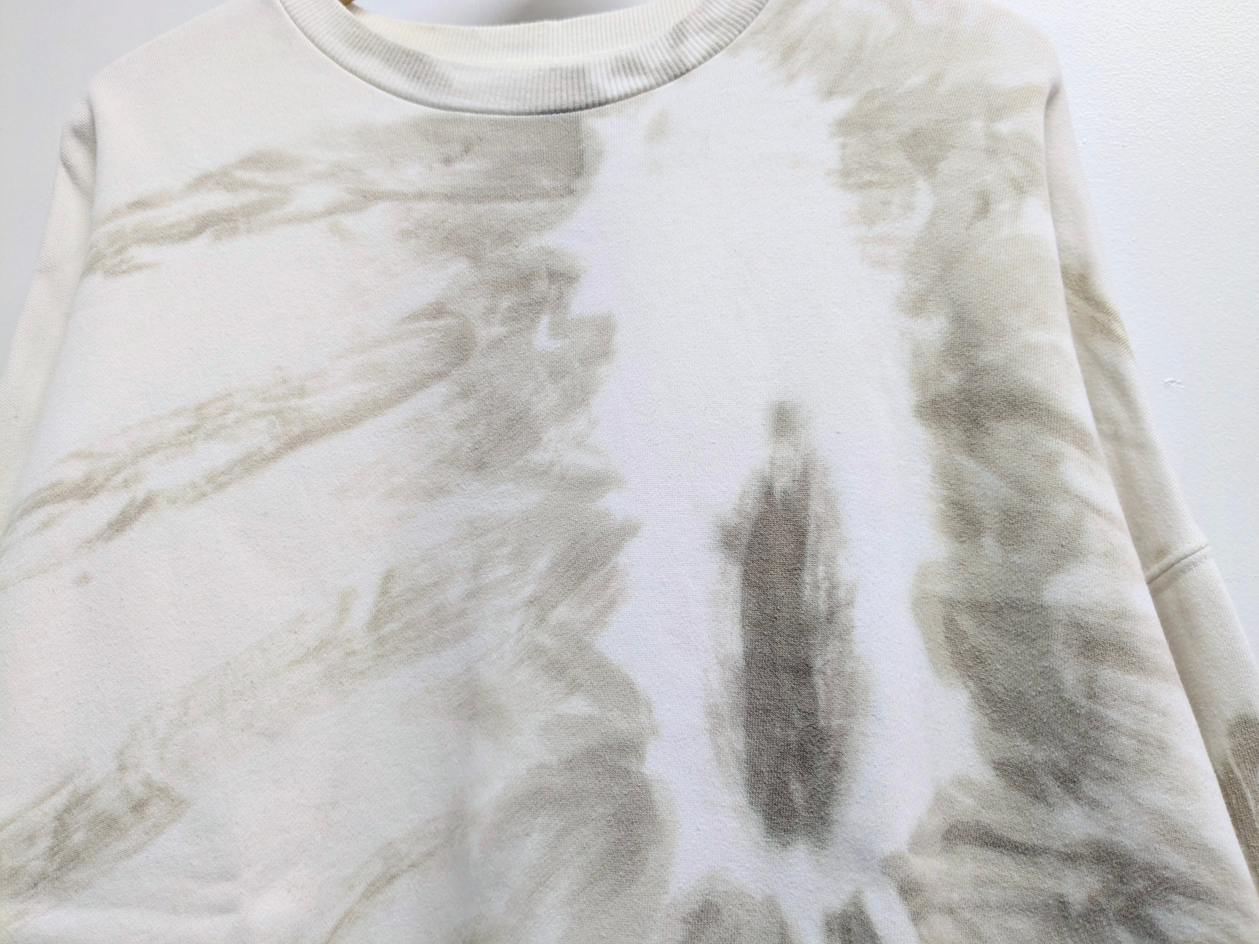 短丈のタイダイスウェット。アーム、身幅などはしっかりと大きめな作り。ボトムを選ばず使えるので、ルーズなシルエットでもまとまってスタイリングできます。裏起毛で着心地は抜群です。