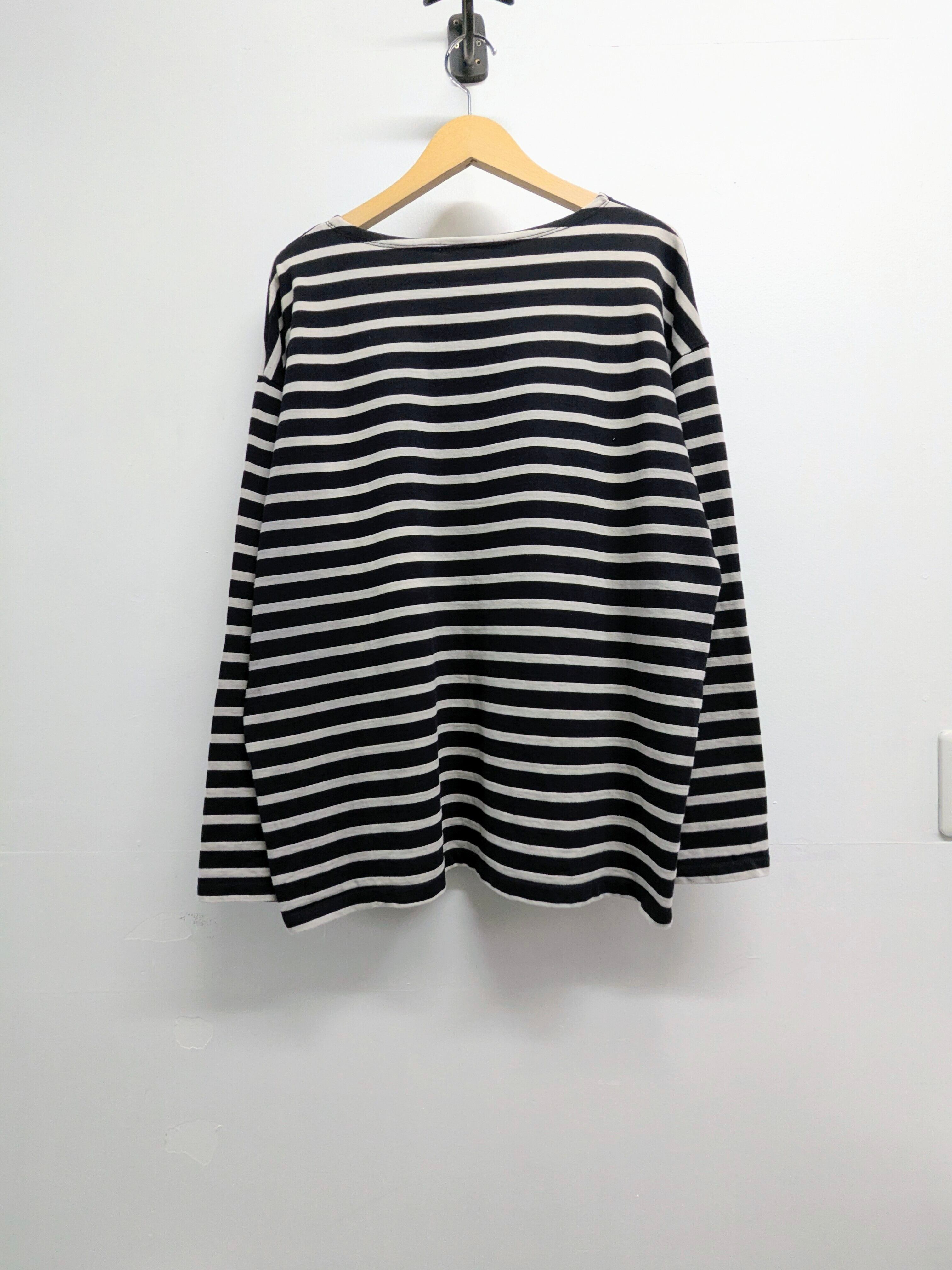 バスクまで厚手ではなく、でも通常のロンTより気持ち厚手のしっかりとした素材。オーソドックスなアイテムですが、サイズを大きく着ることでまた違った見え方をします。