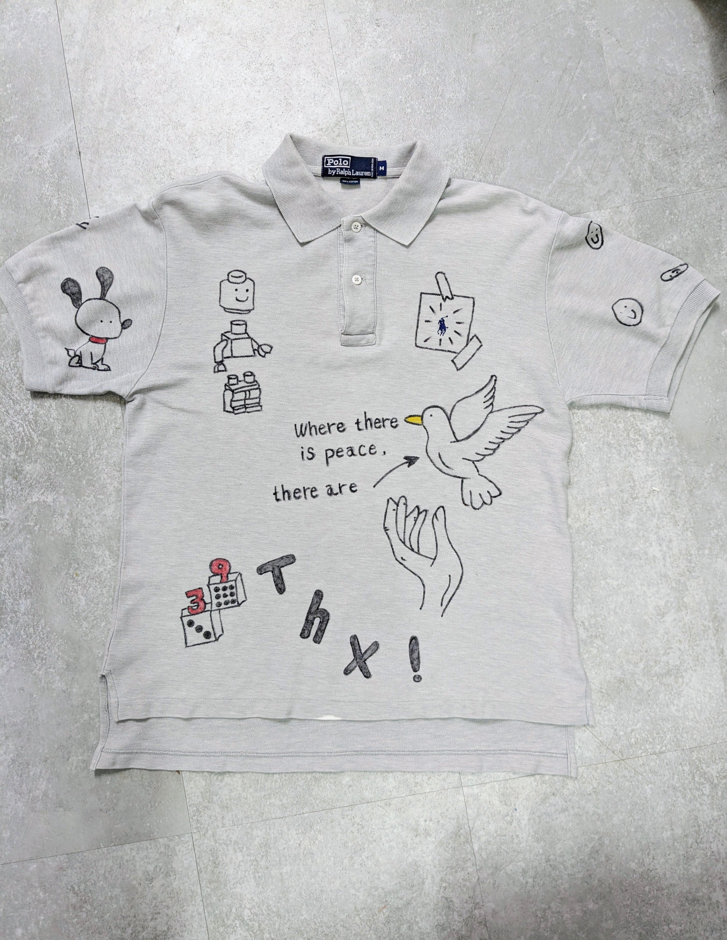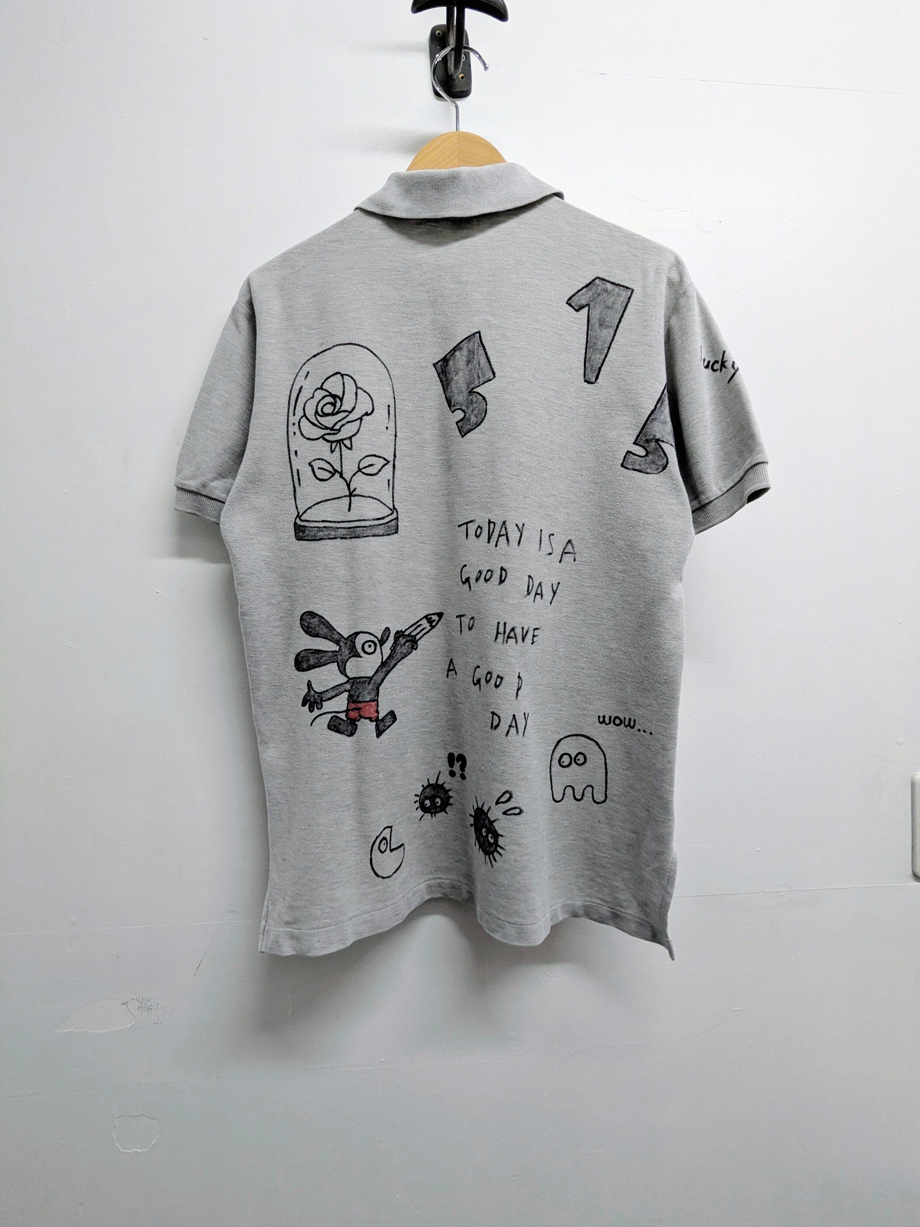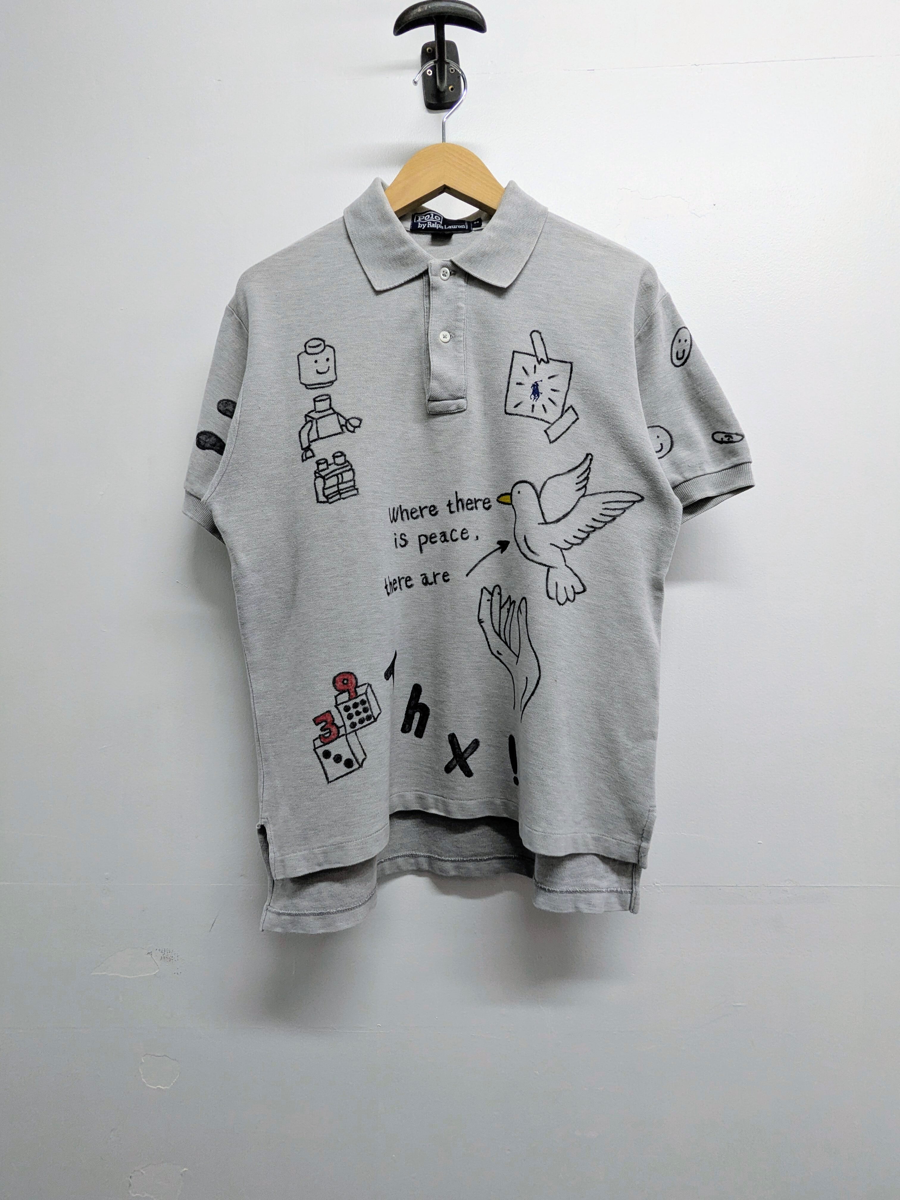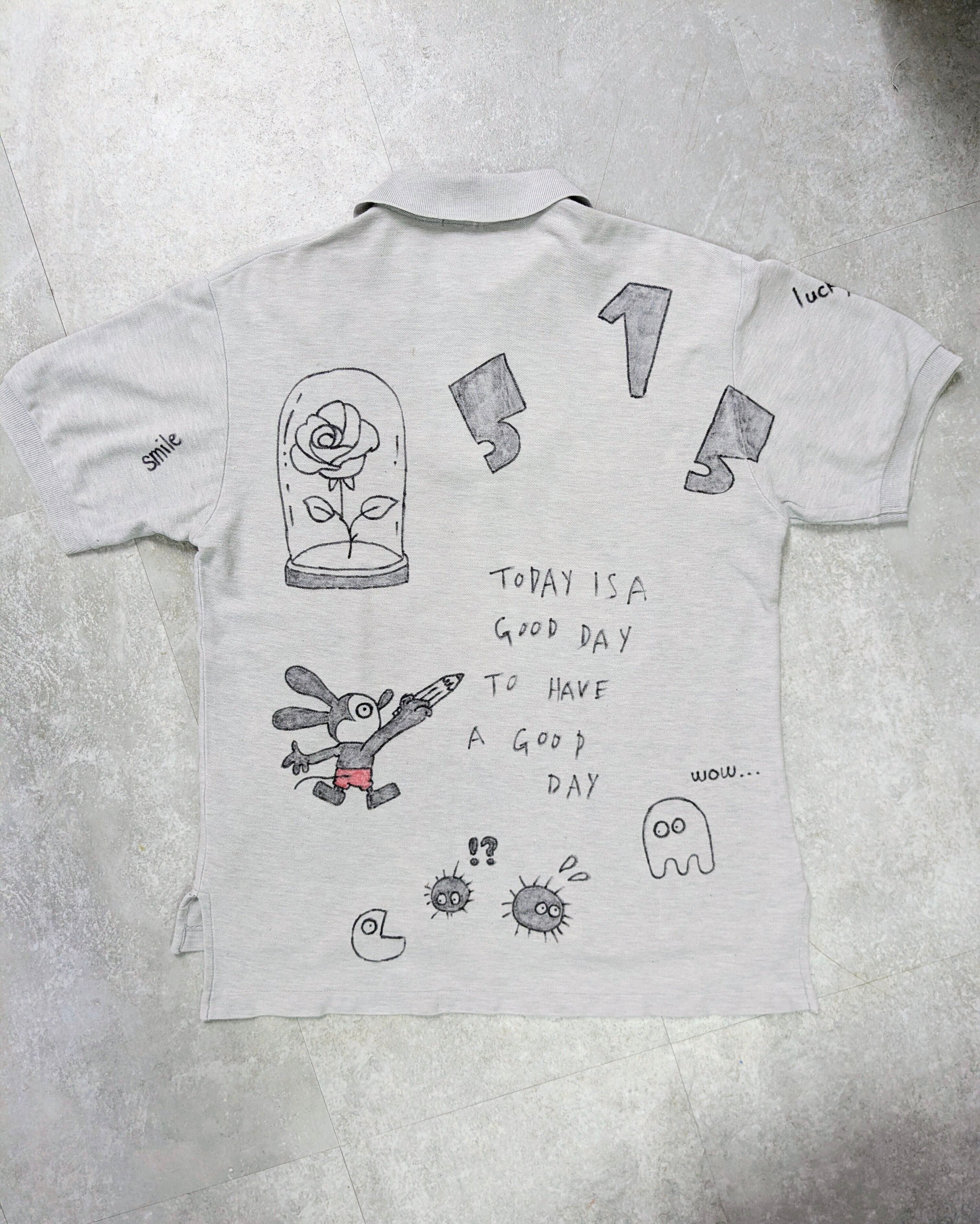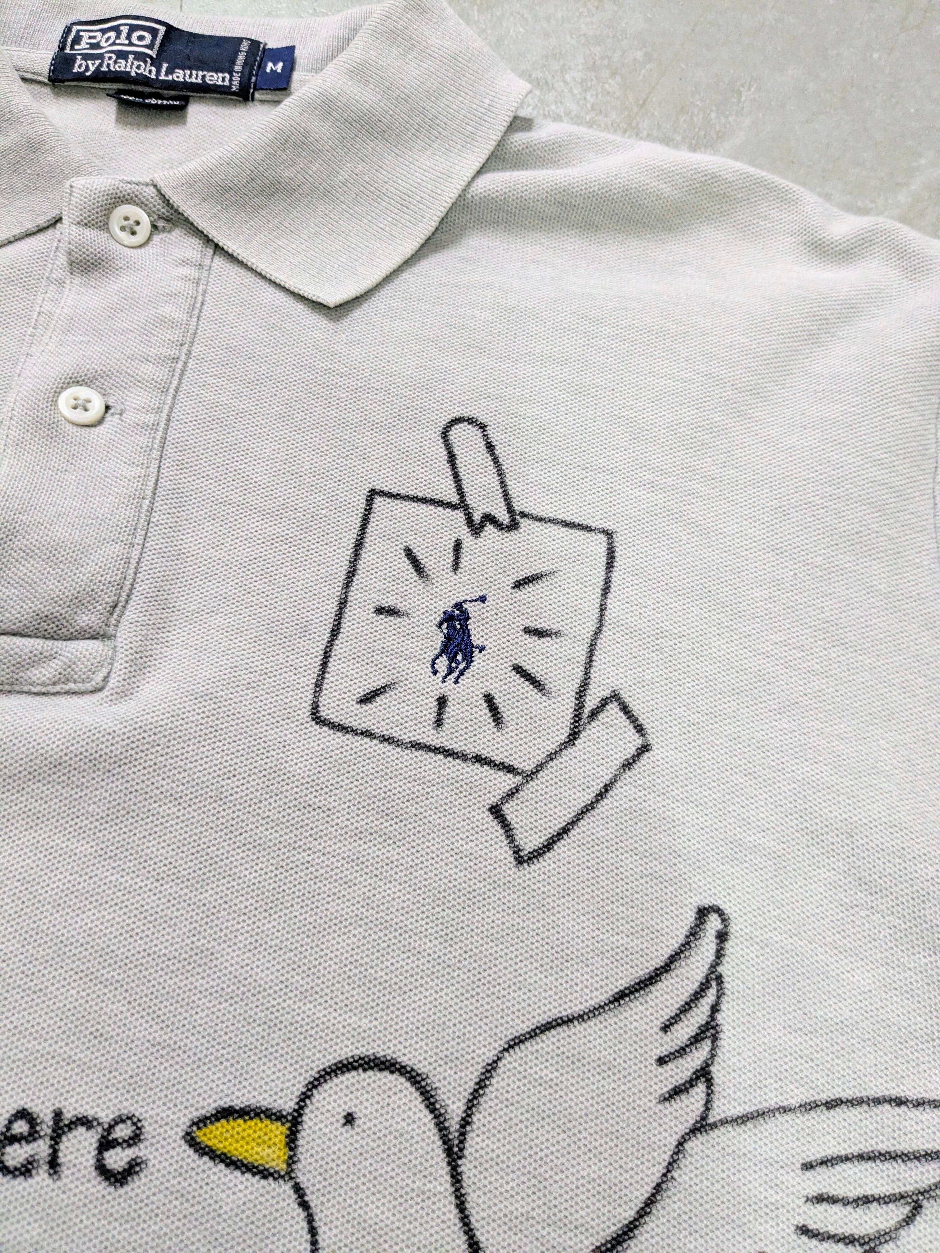 ユーズドのラルフローレンのポロシャツにイラストを加えてあります。メモリアル要素もありつつ、どこか見たことあるようなキャラクターがいたりととても可愛いアイテムとなっています。全て手描きのため唯一無二の一点物となっています。