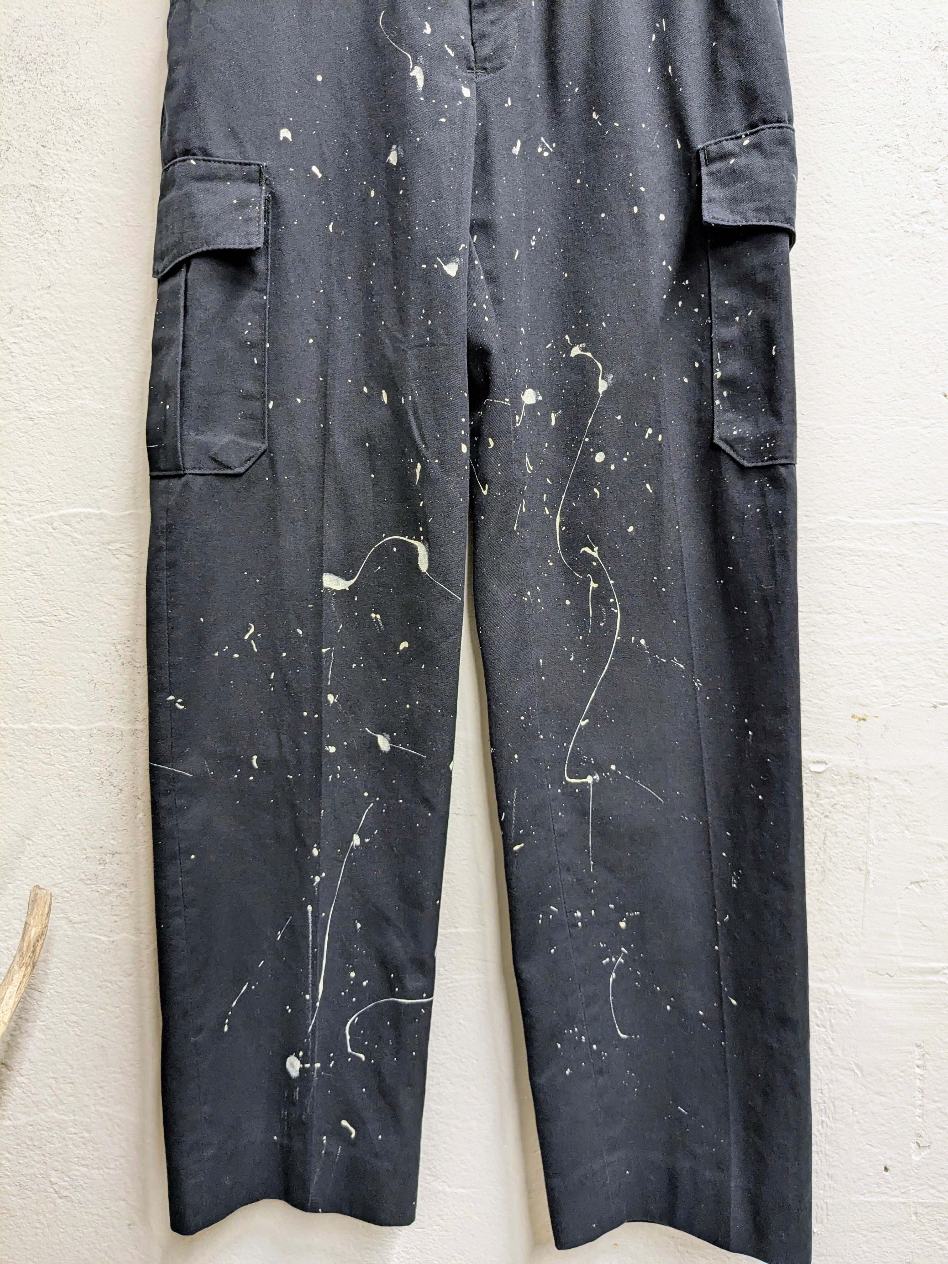 ART SPLASH PAINTED MILITARY BLACK CARGO PANTS