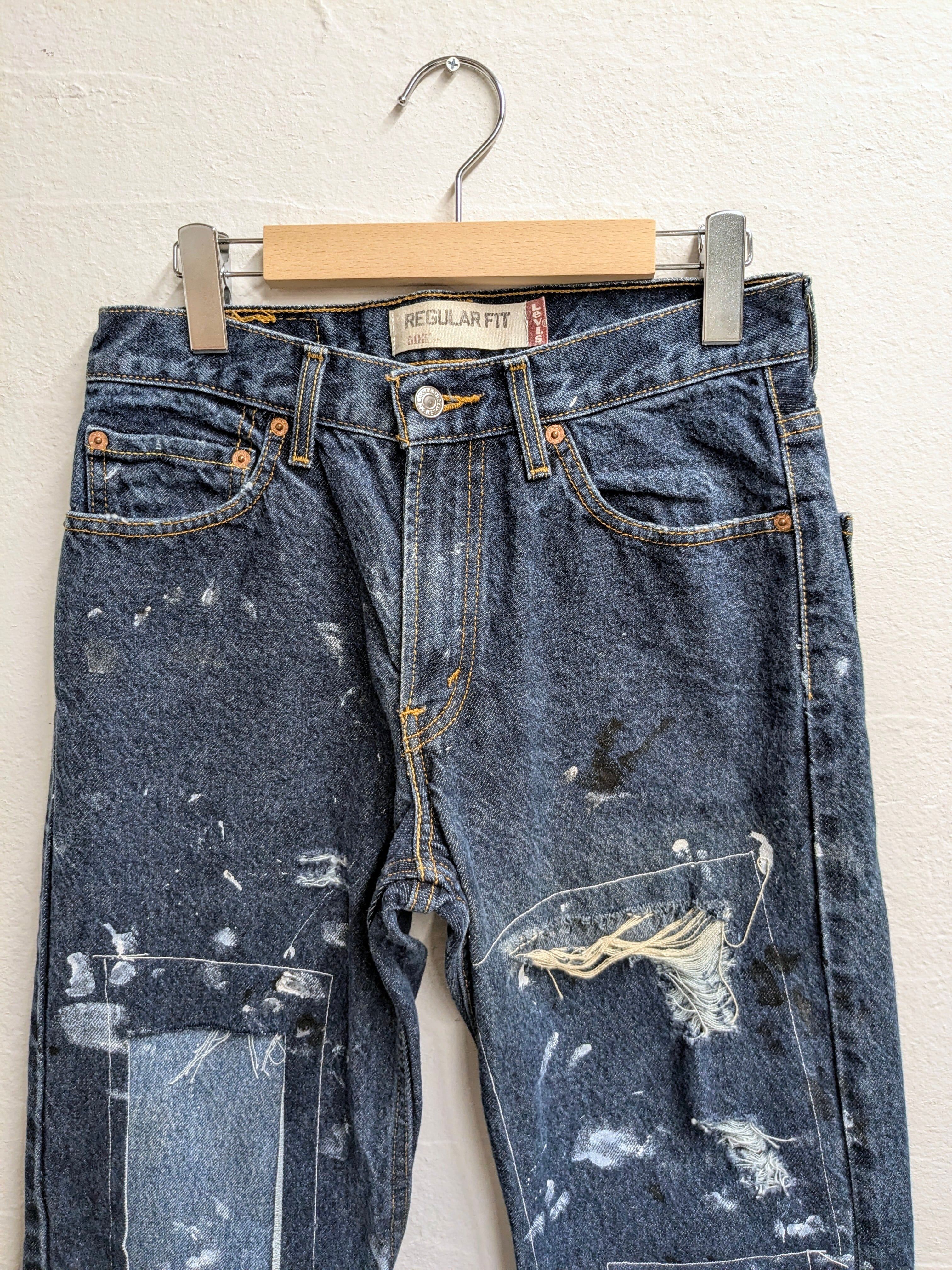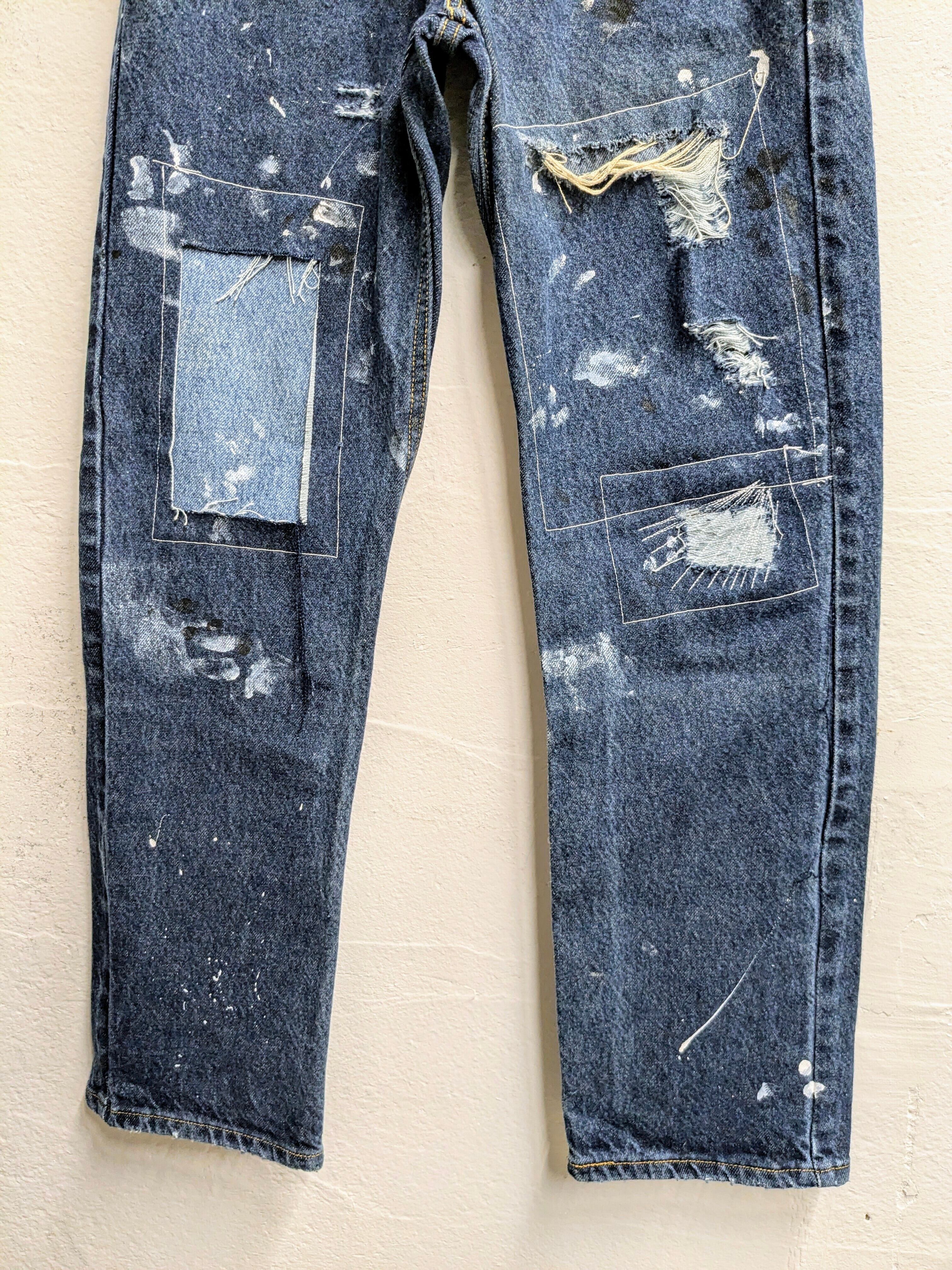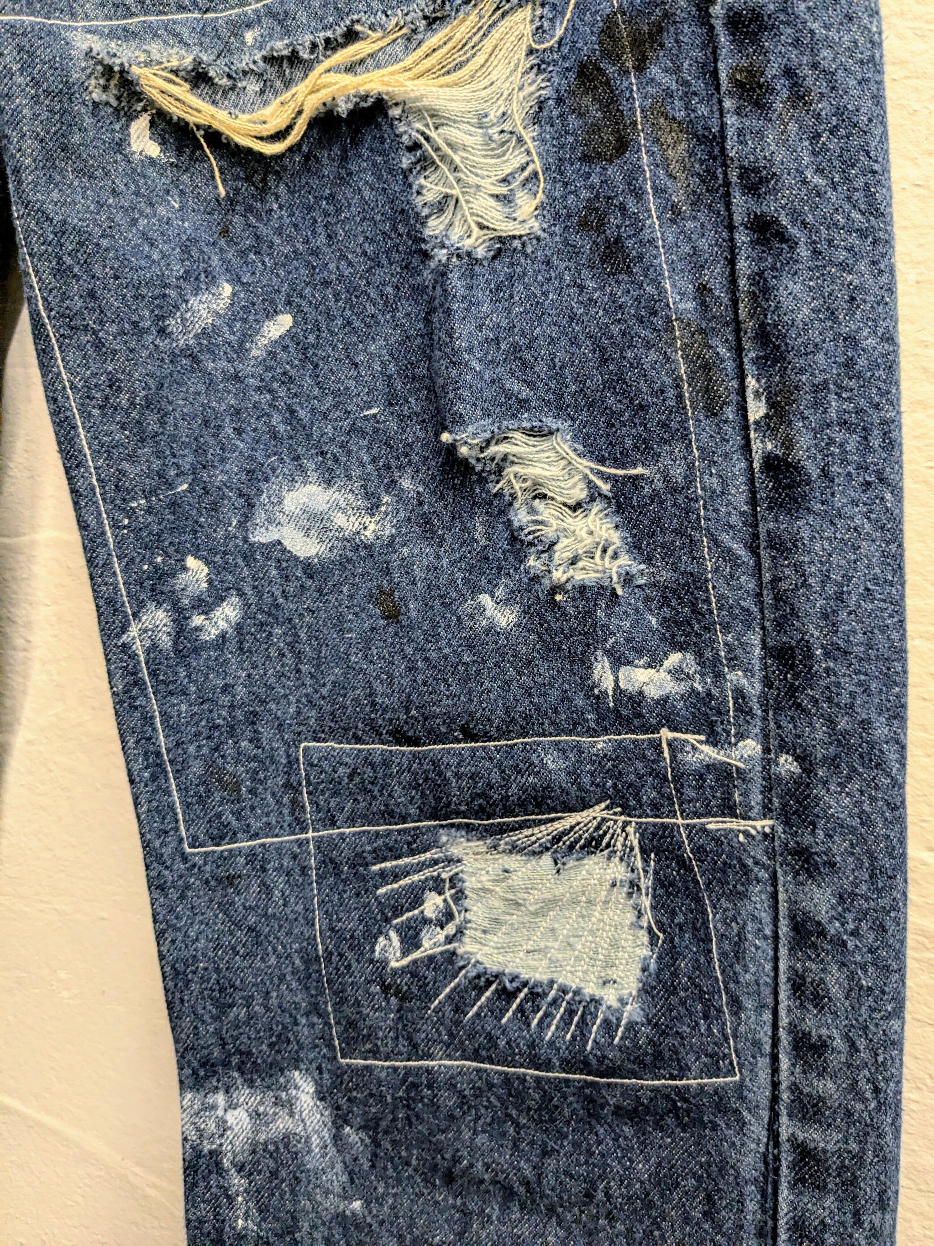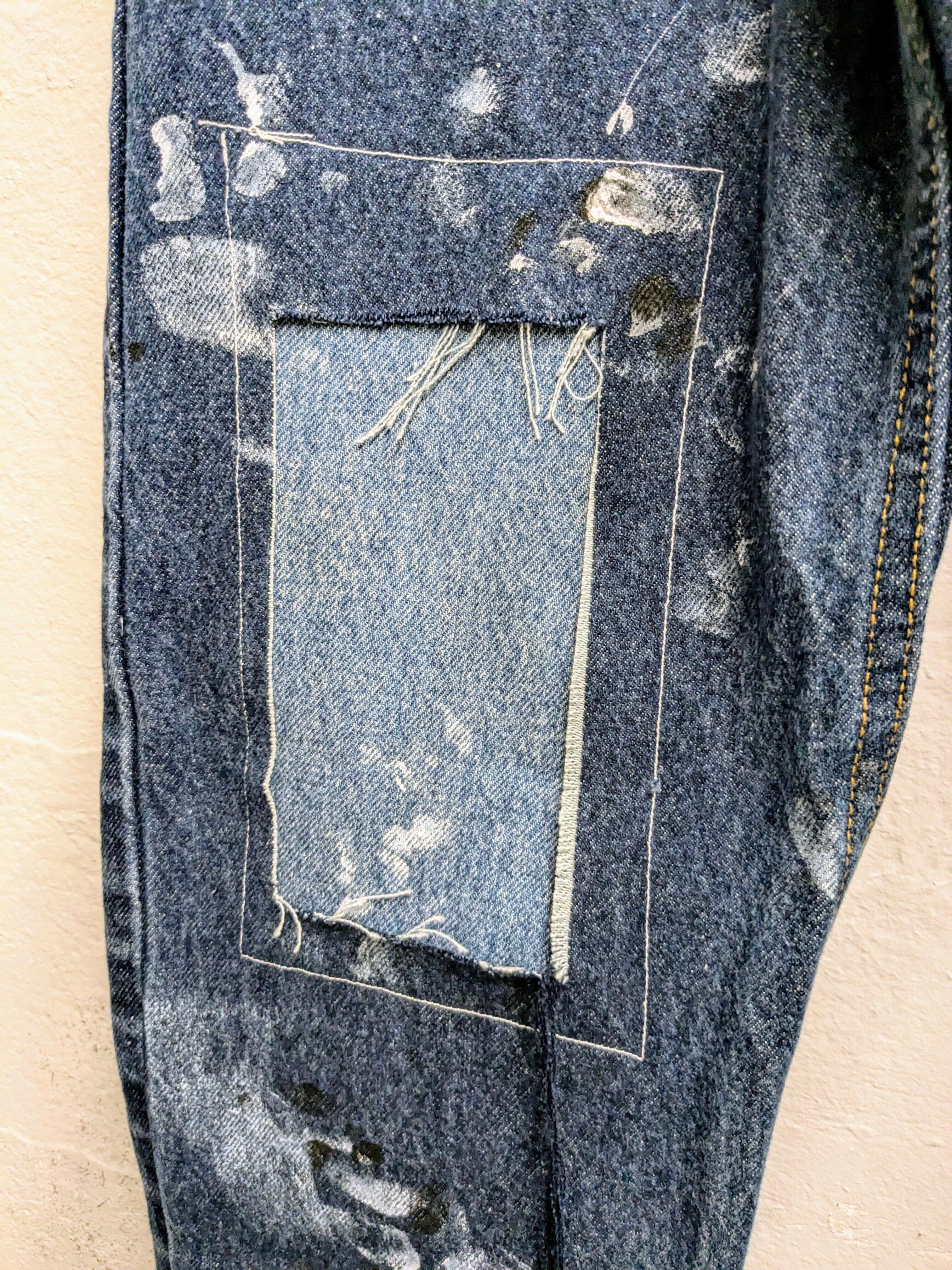 DAMAGE & REPAIR & PAINTED INDIGO DENIM PANTS