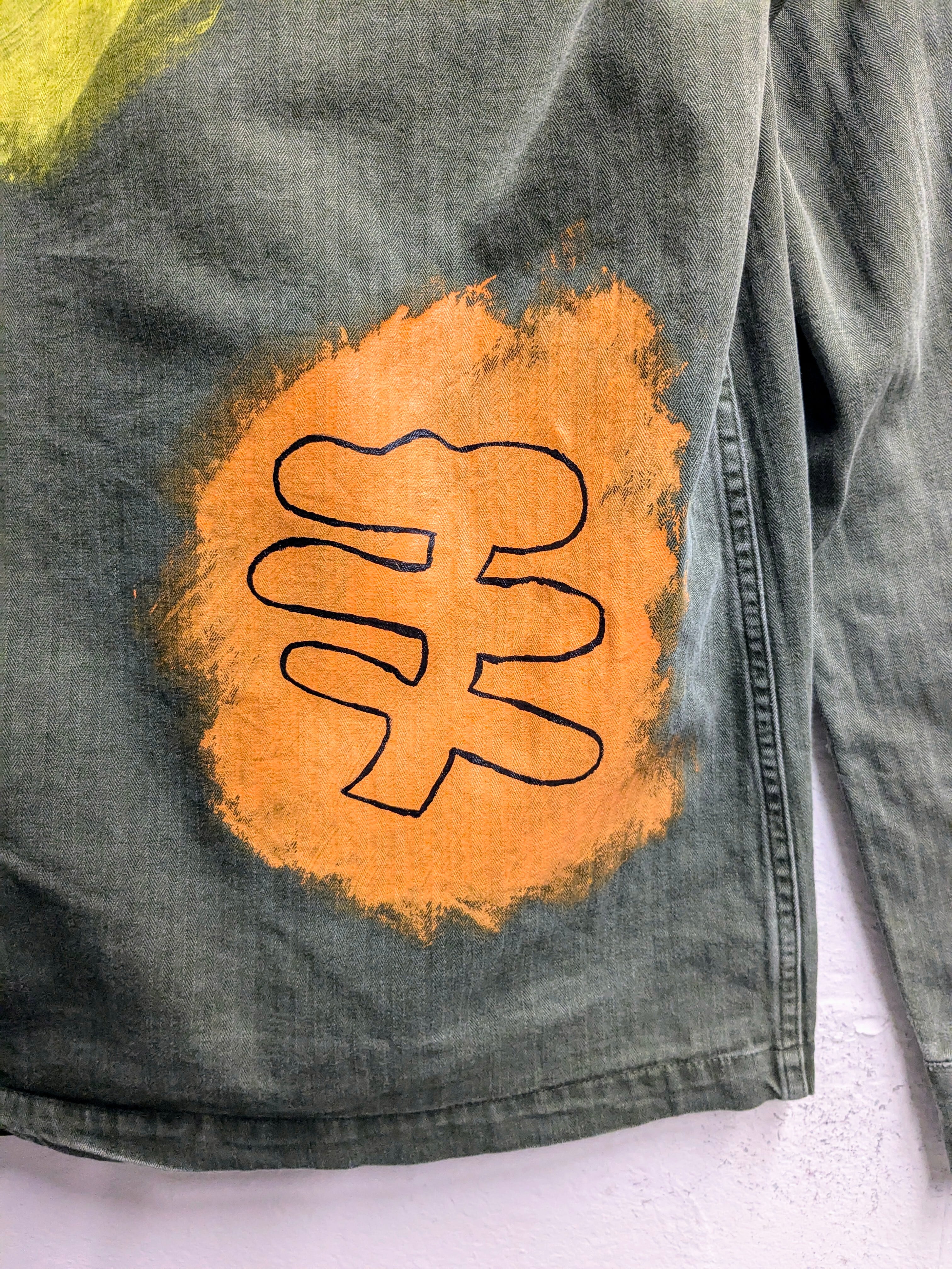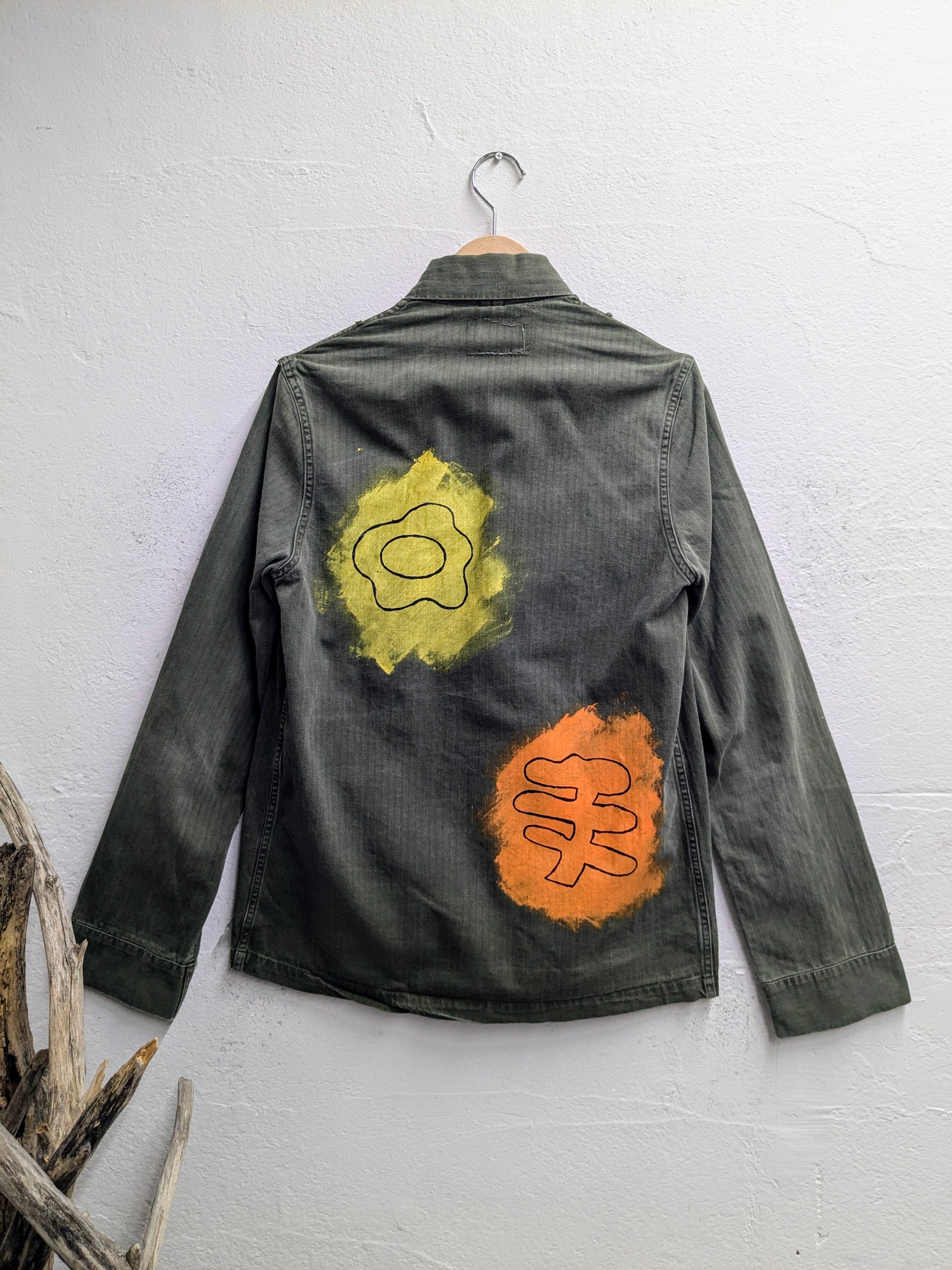 ヴィンテージのミリタリーのジャケットにイラストを入れてもらった逸品。