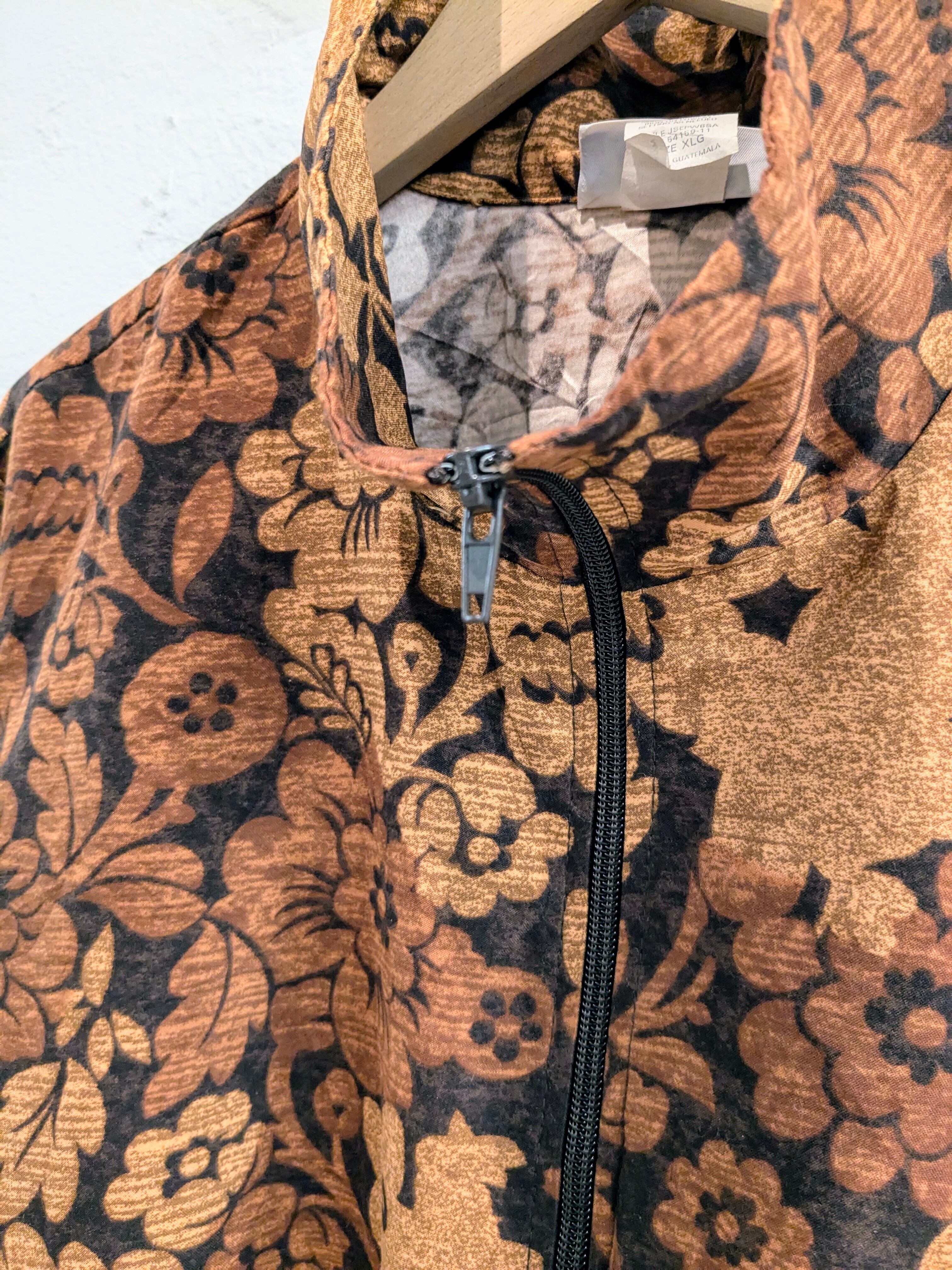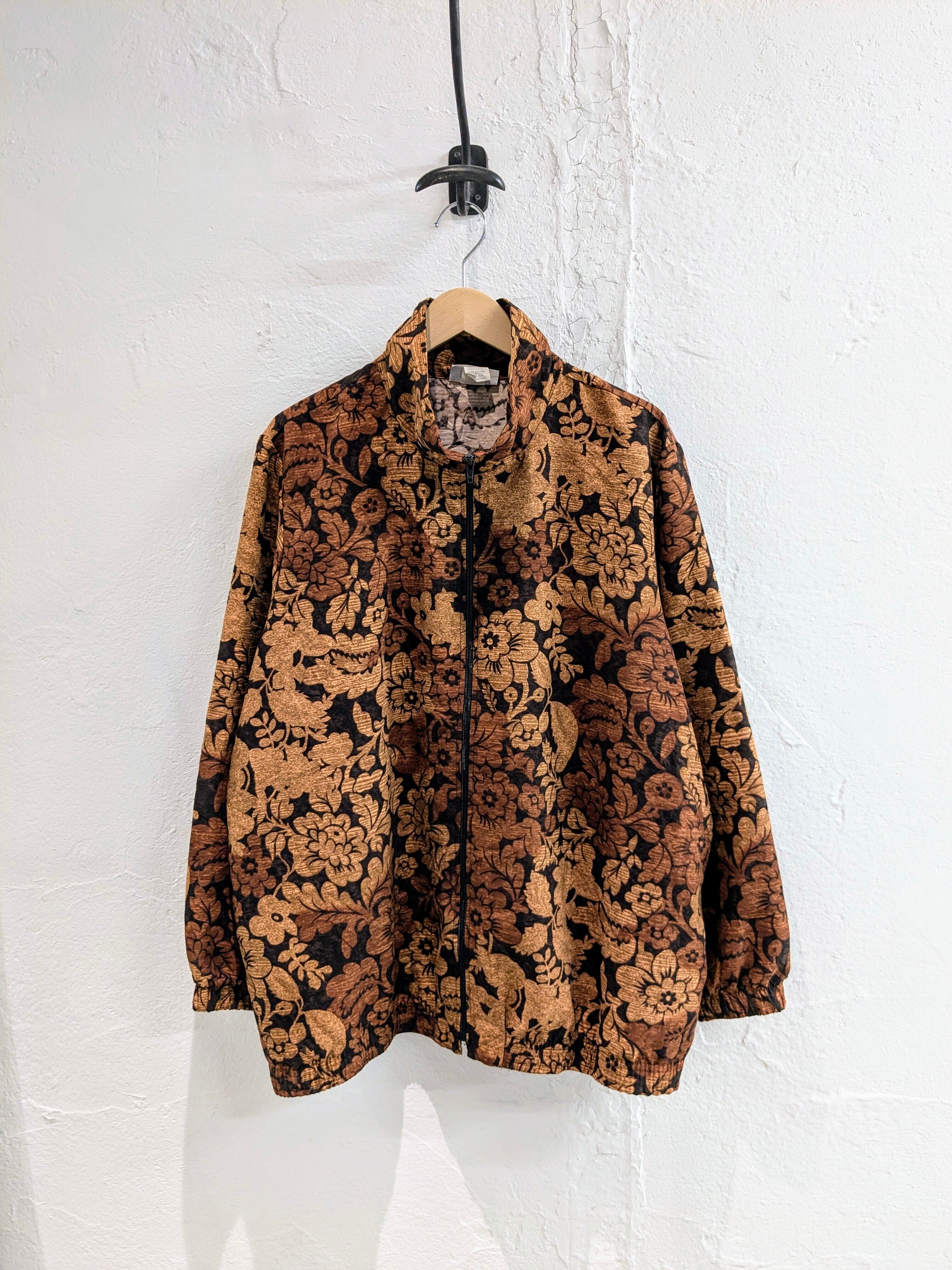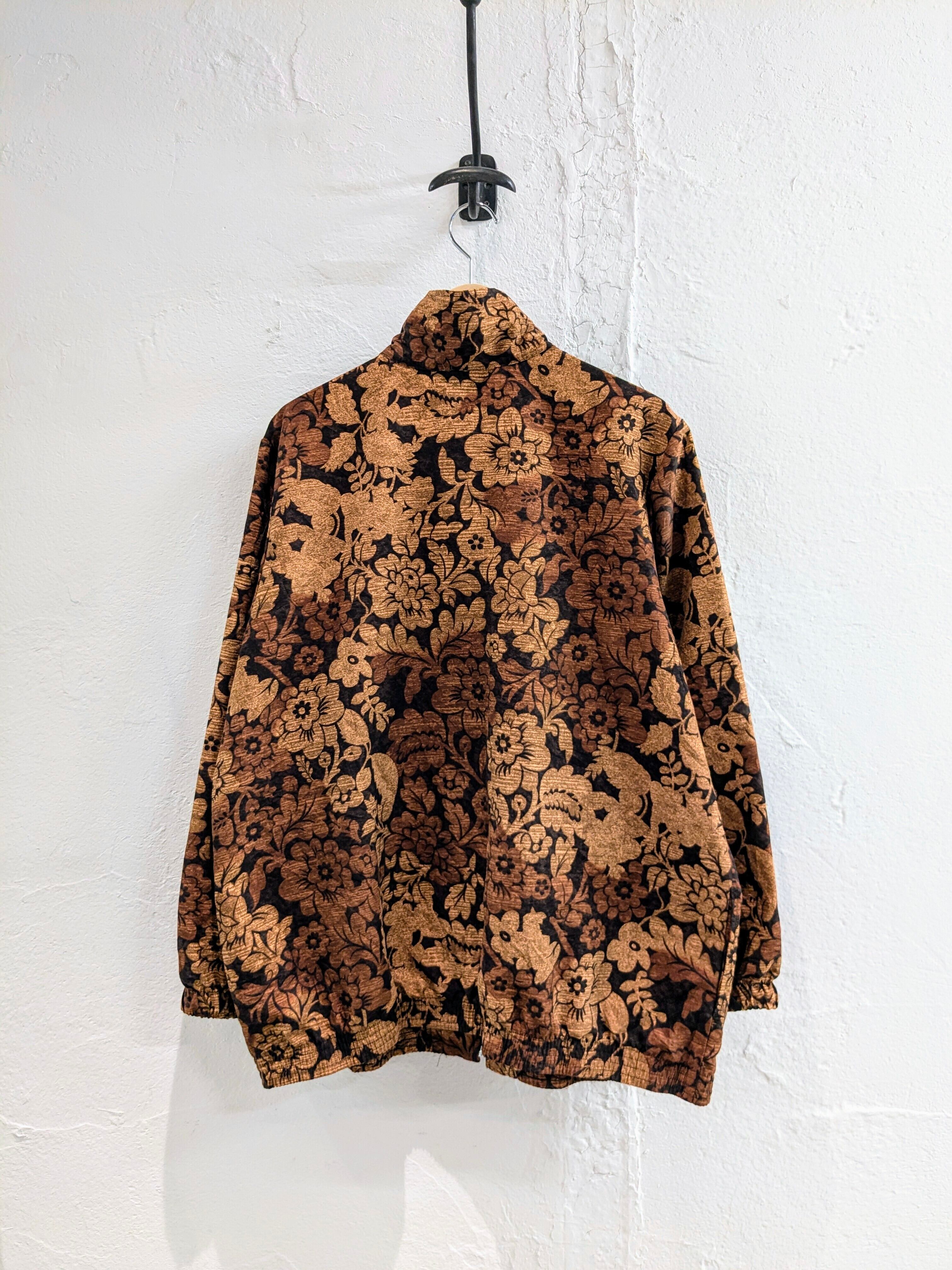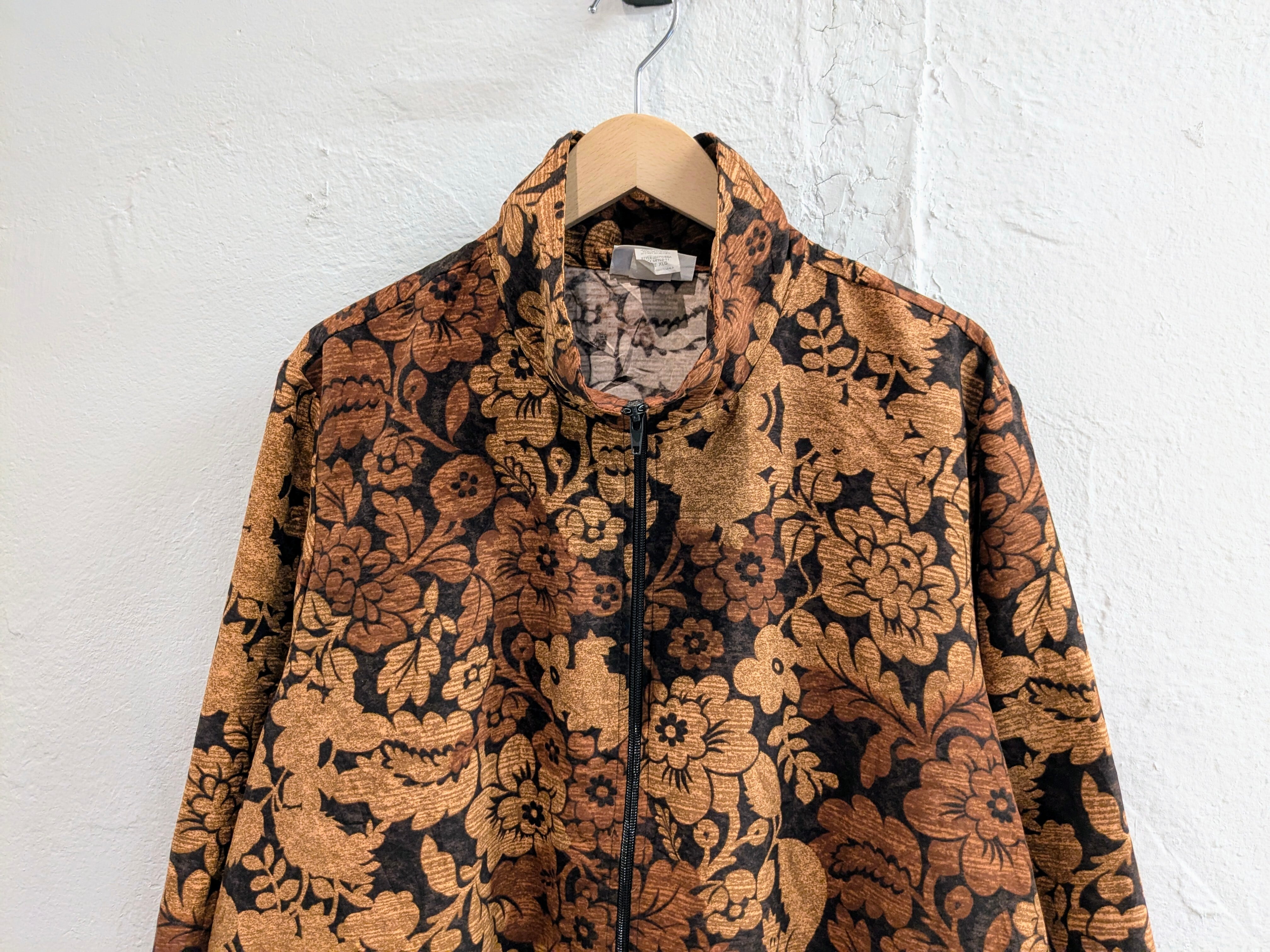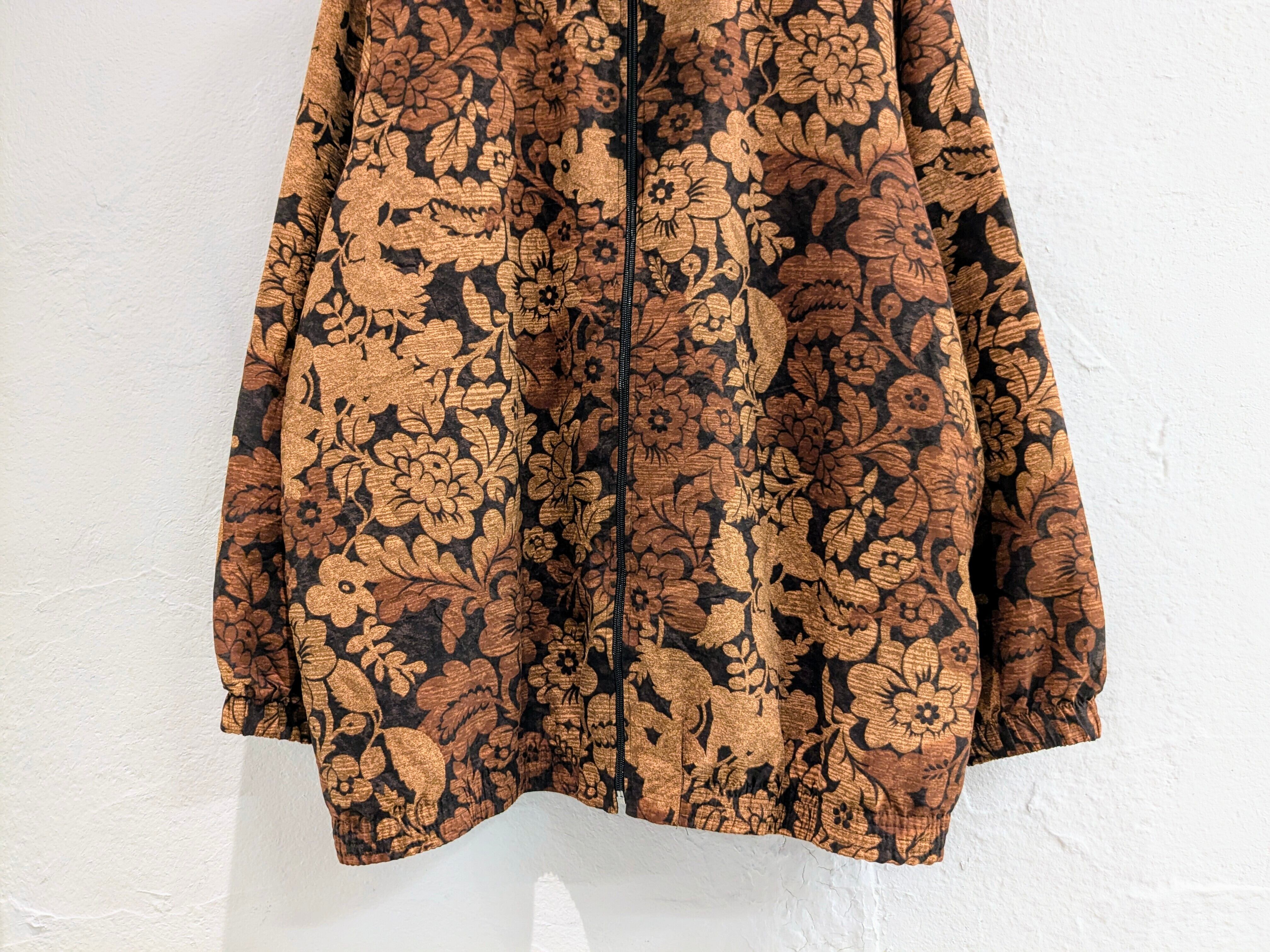 花柄のプリントが入っている、ジップアップのブルゾンになります。