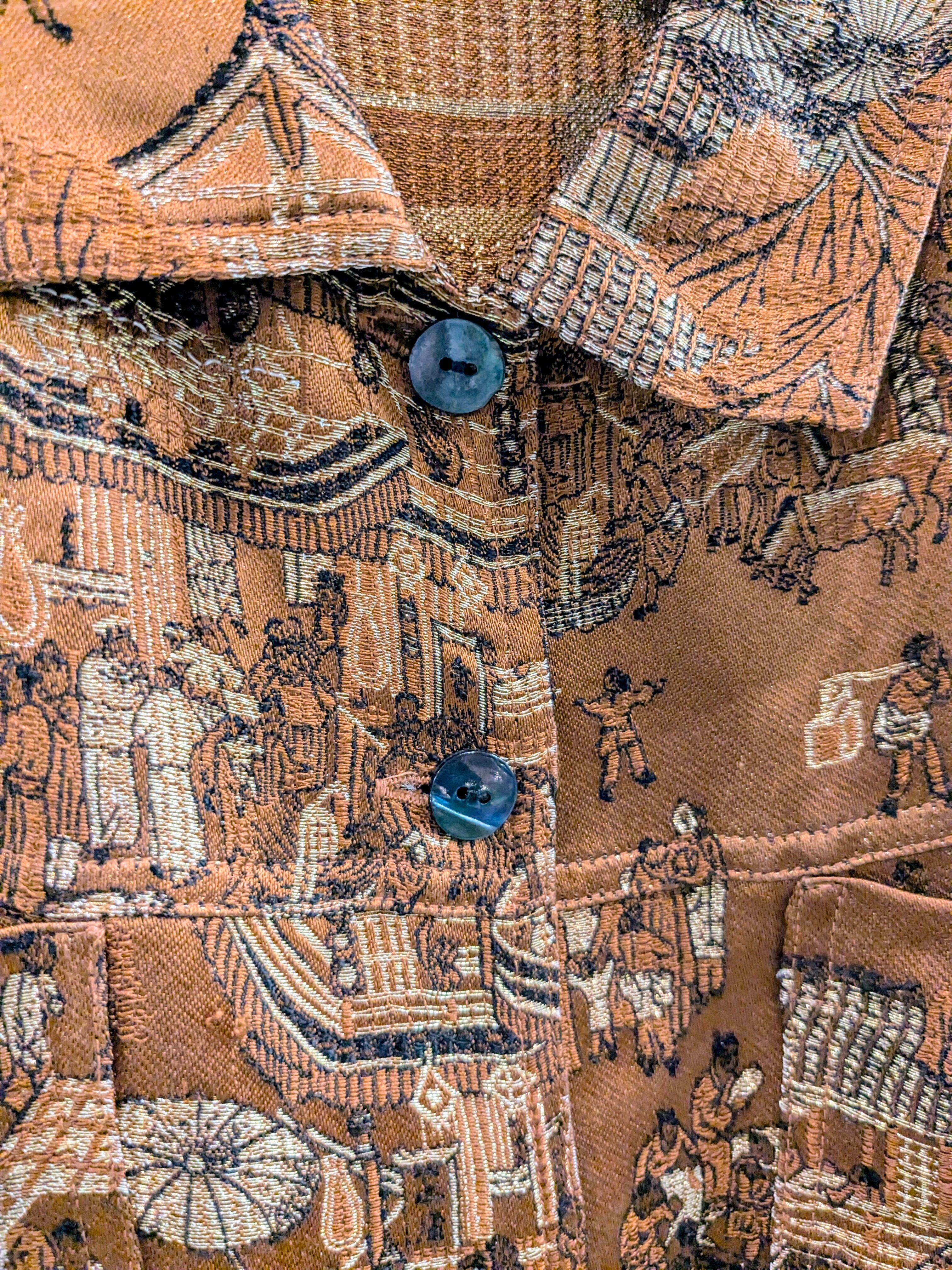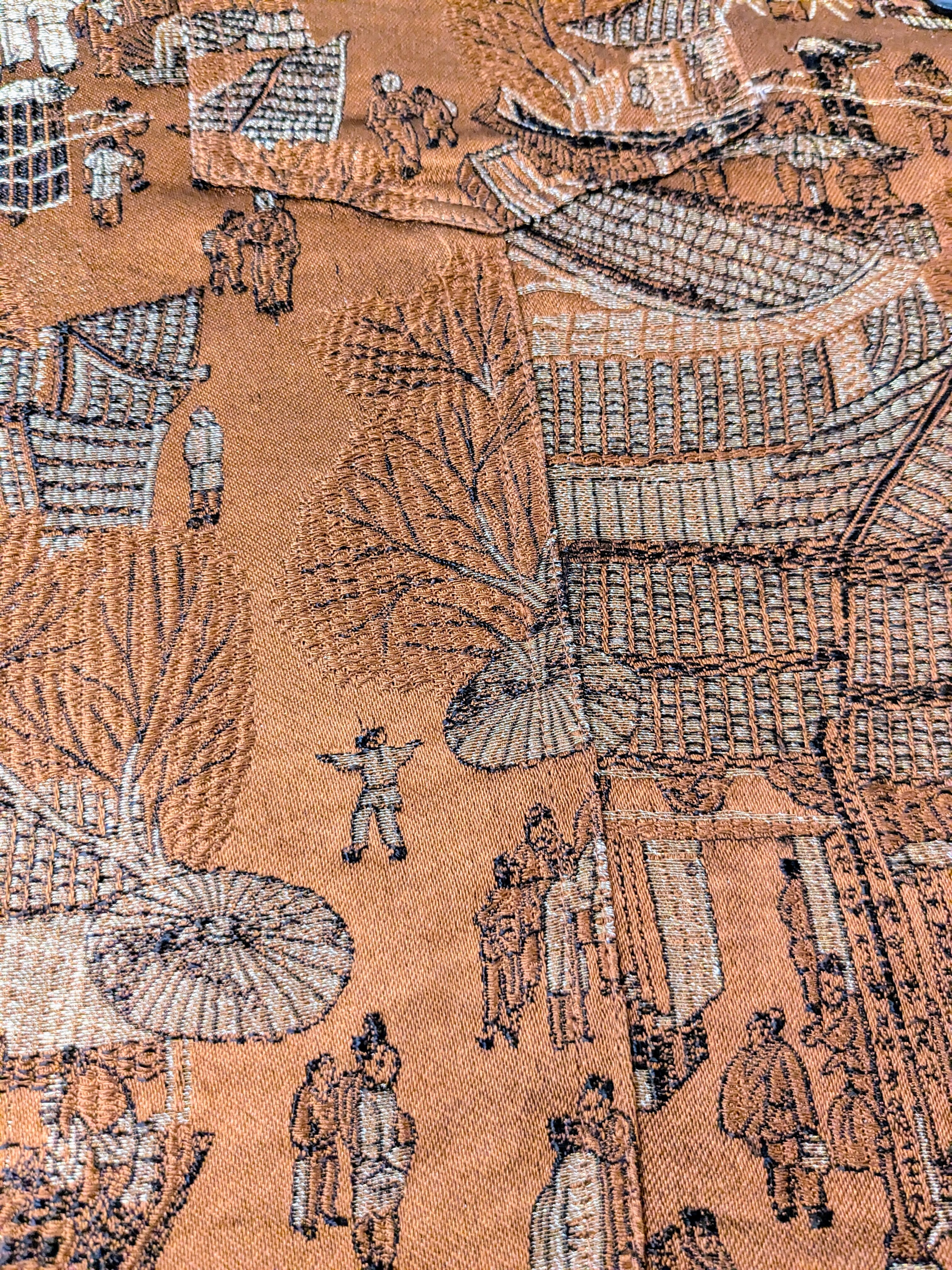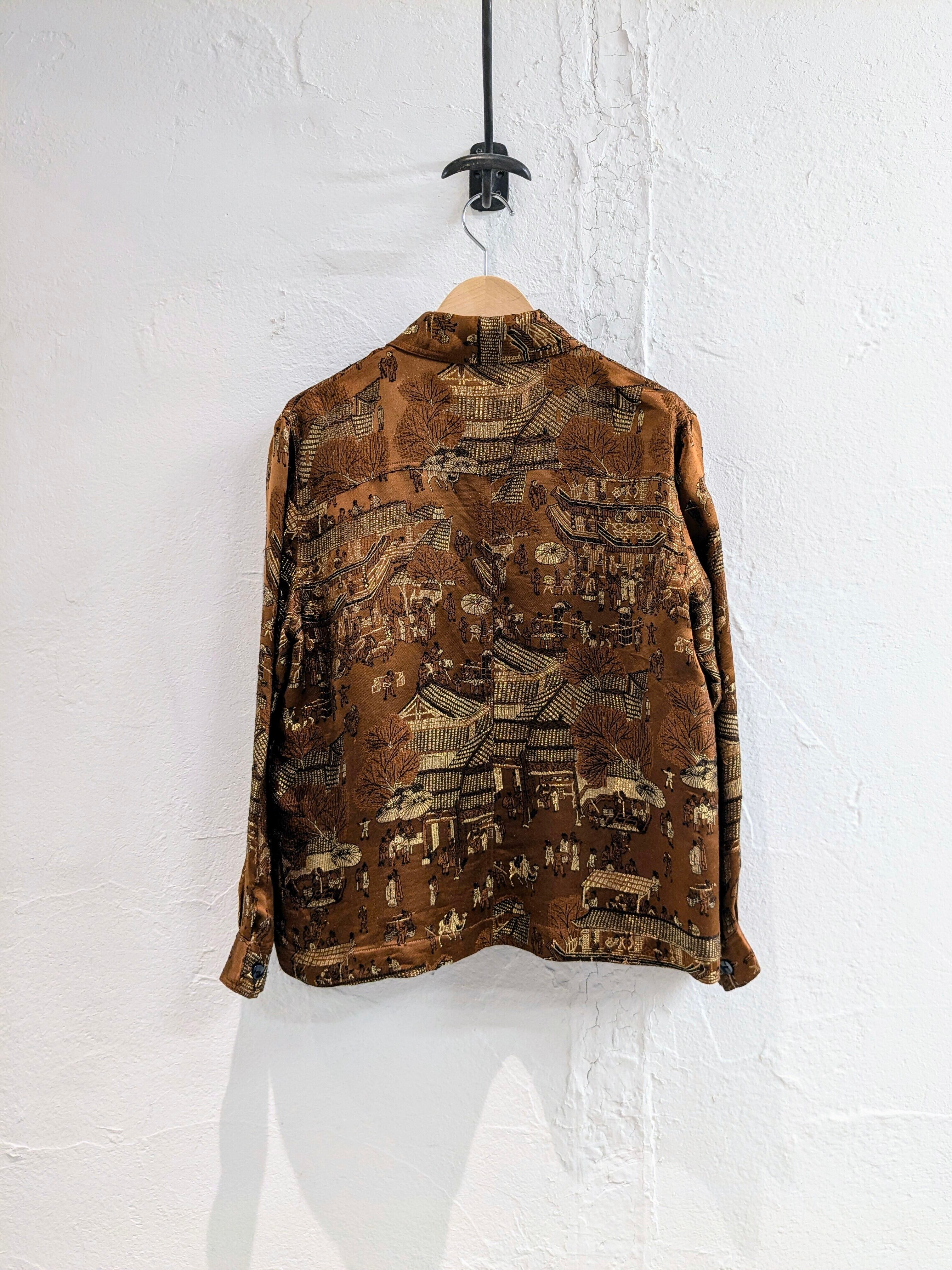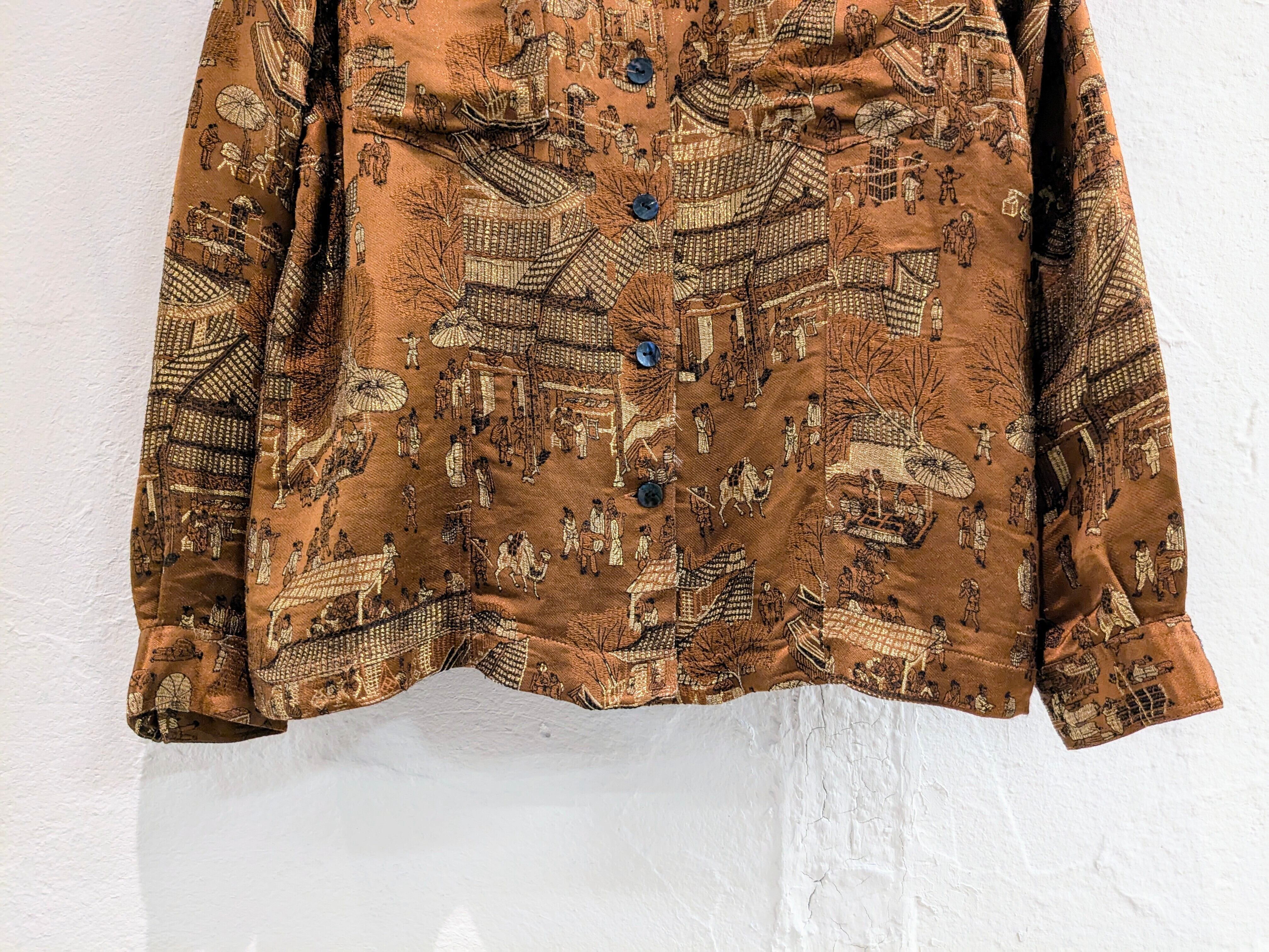 日本?中国?の街並みが刺繍してあります。