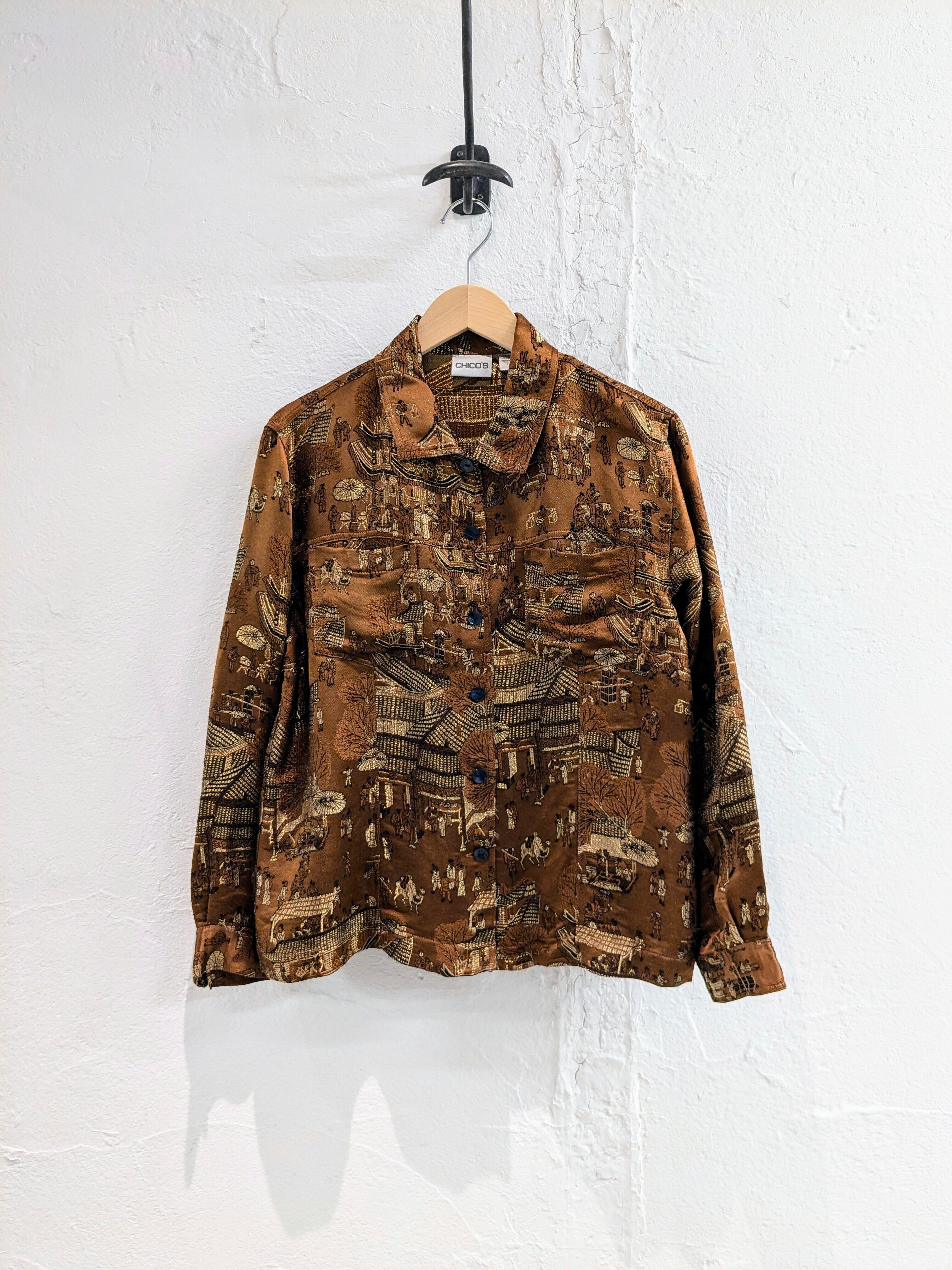 "CHICO'S" CITY EMBROIDERY SILK BLOUSON