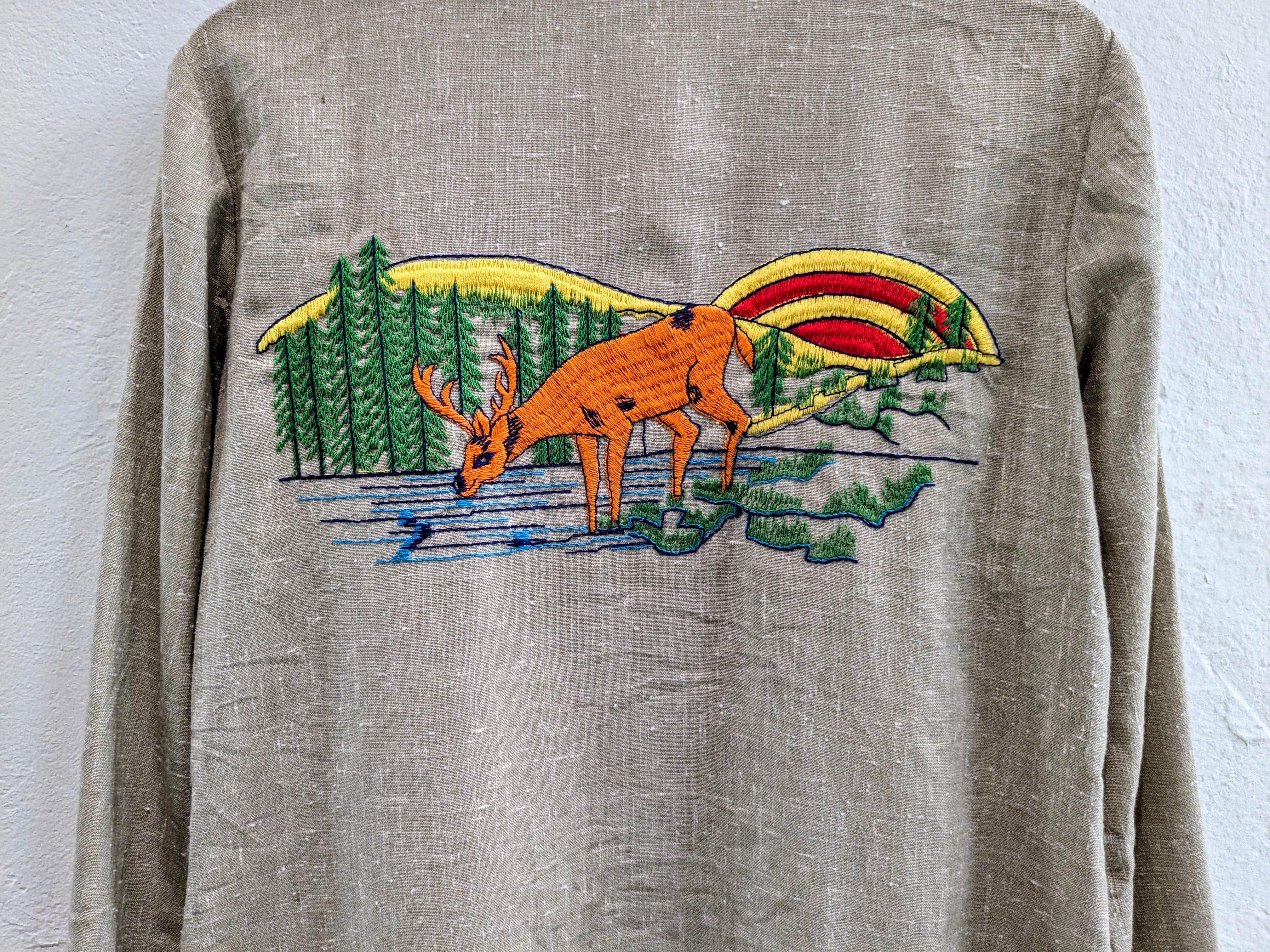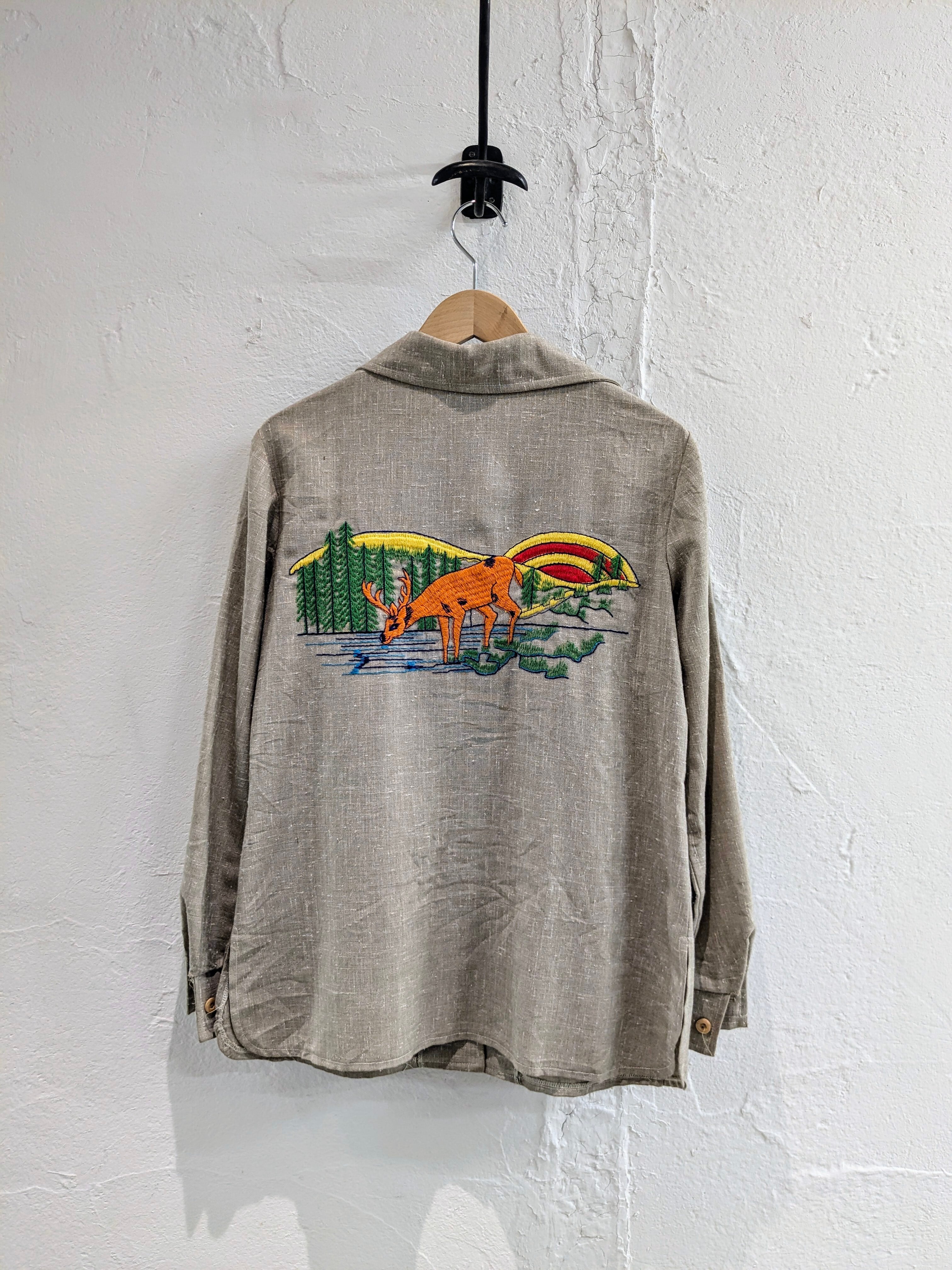 DEER EMBROIDERY DESIGN SAFARI SHIRT JACKET