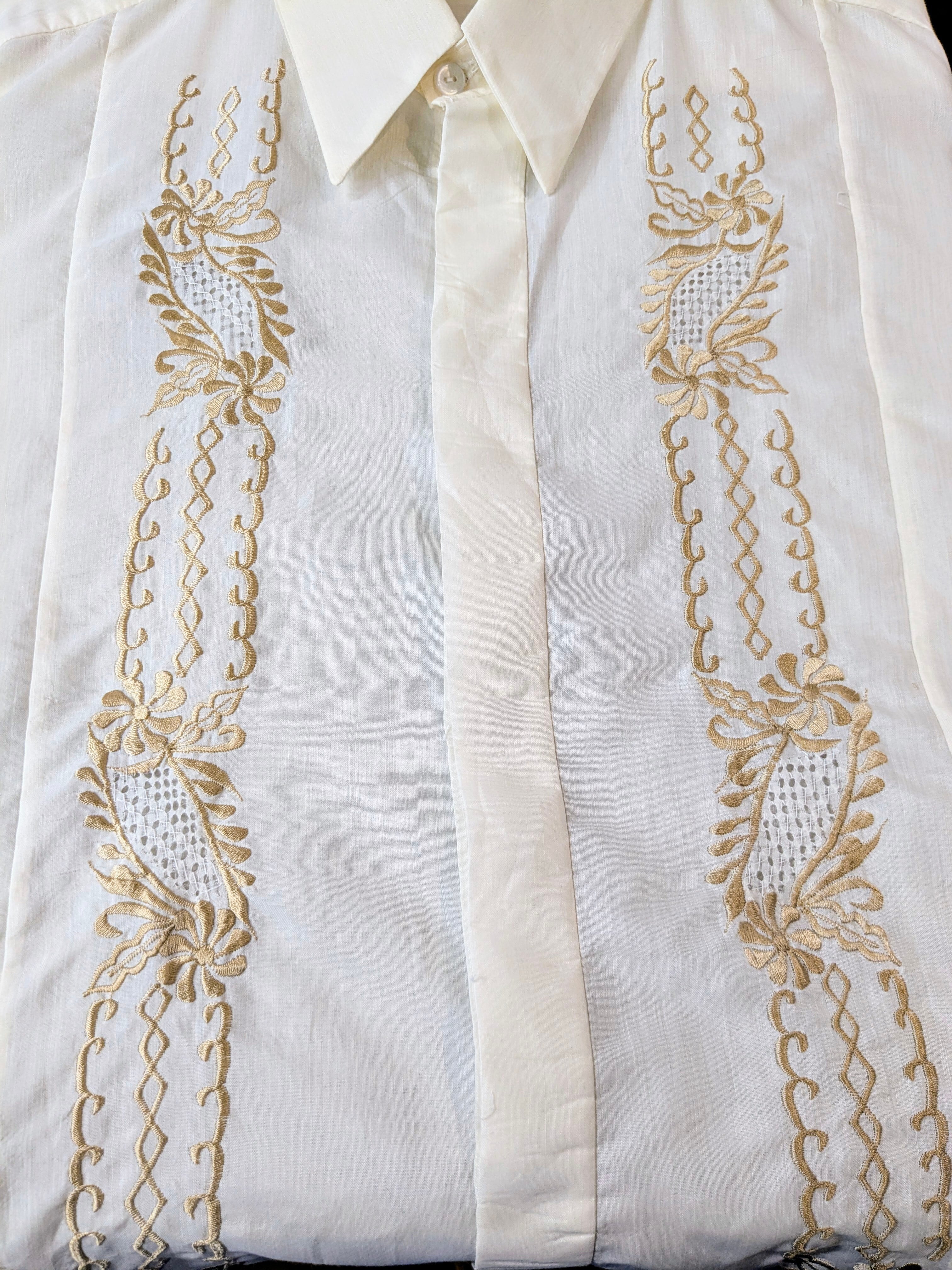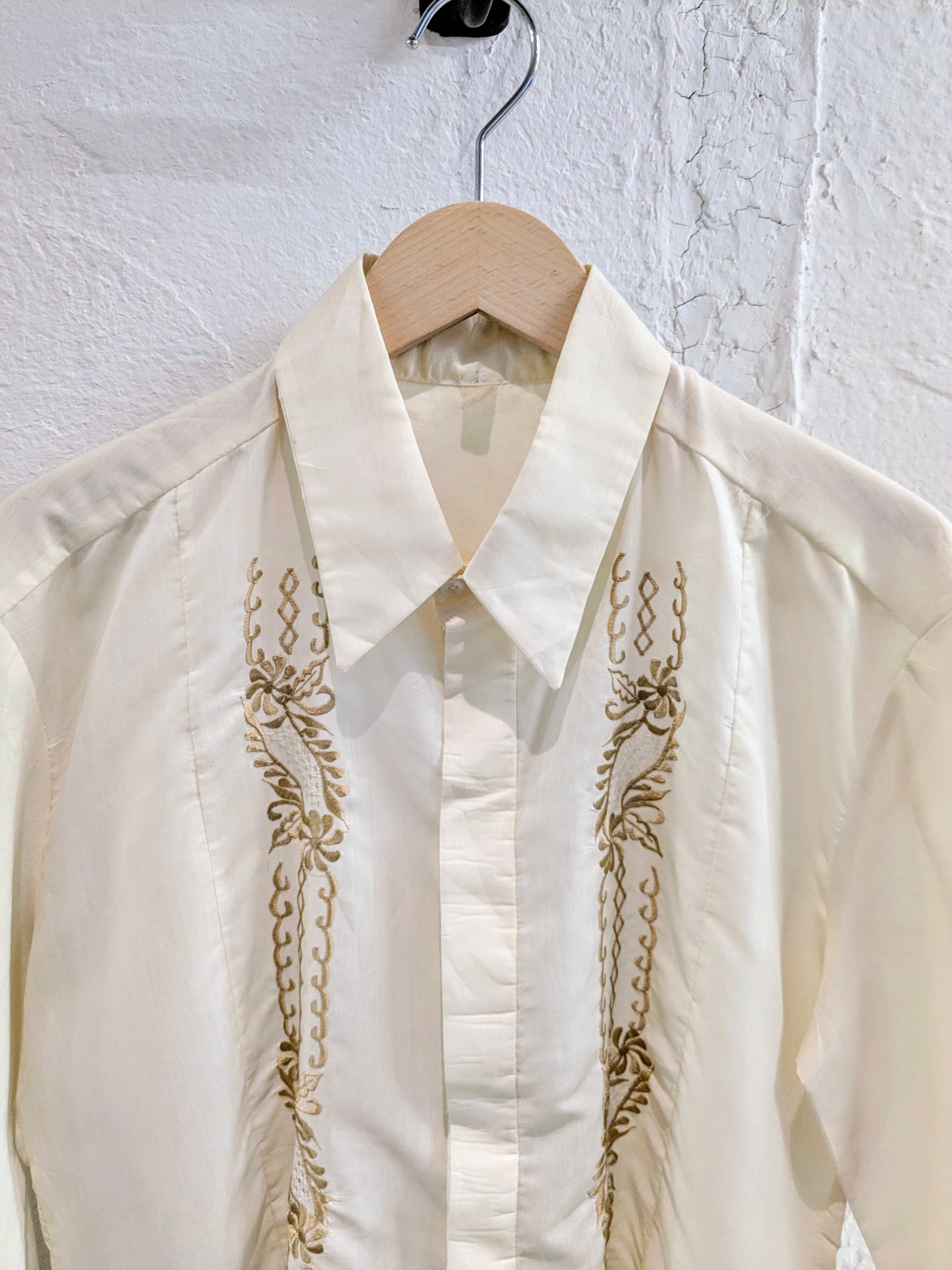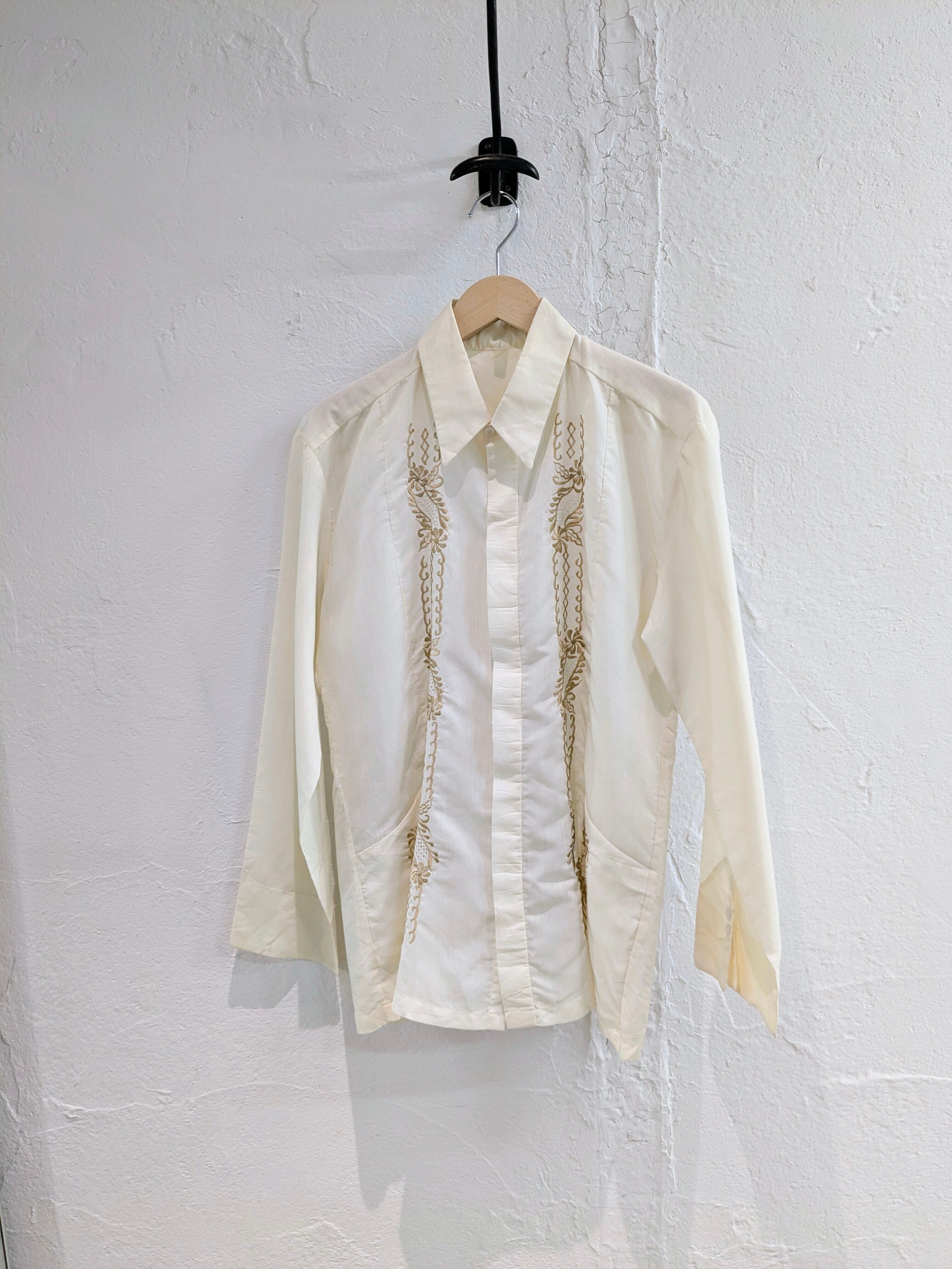 70's〜 FLOWER EMBROIDERY DESIGN SHEER CUBAN SHIRT