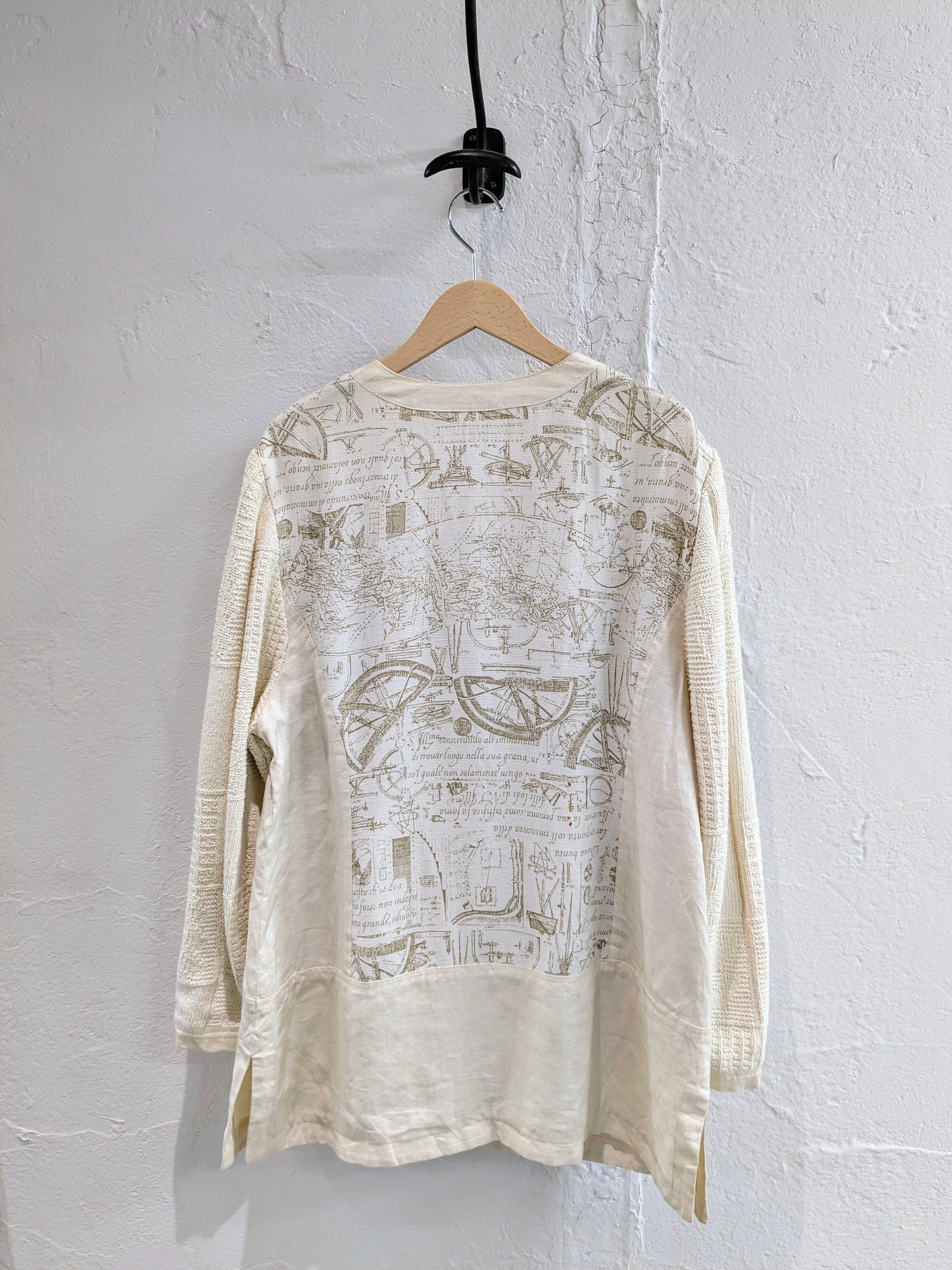 航海図?測量器具?のようなモノが描かけれています。また袖はニットに切り替わっていたりとかなり形としては珍しいかと。