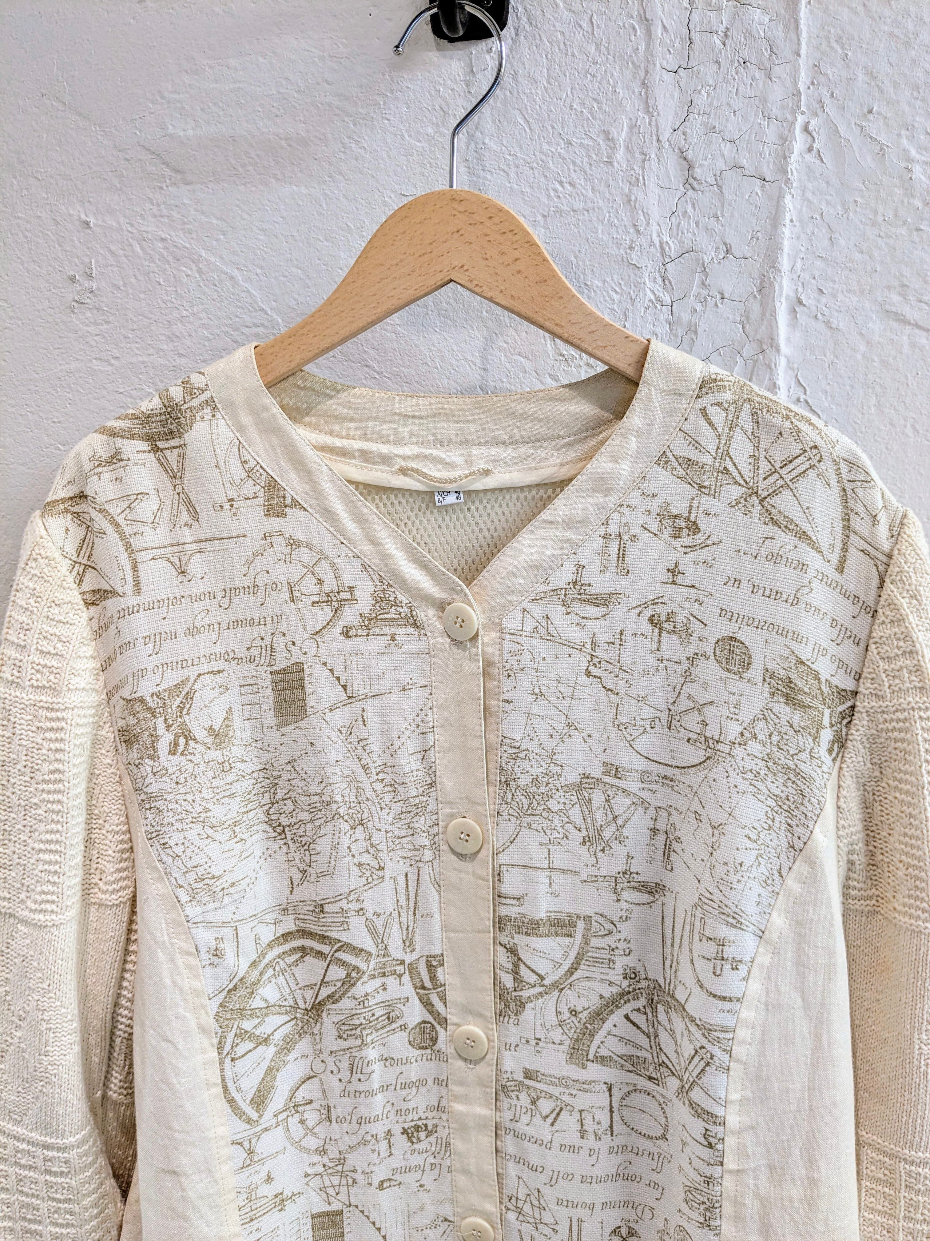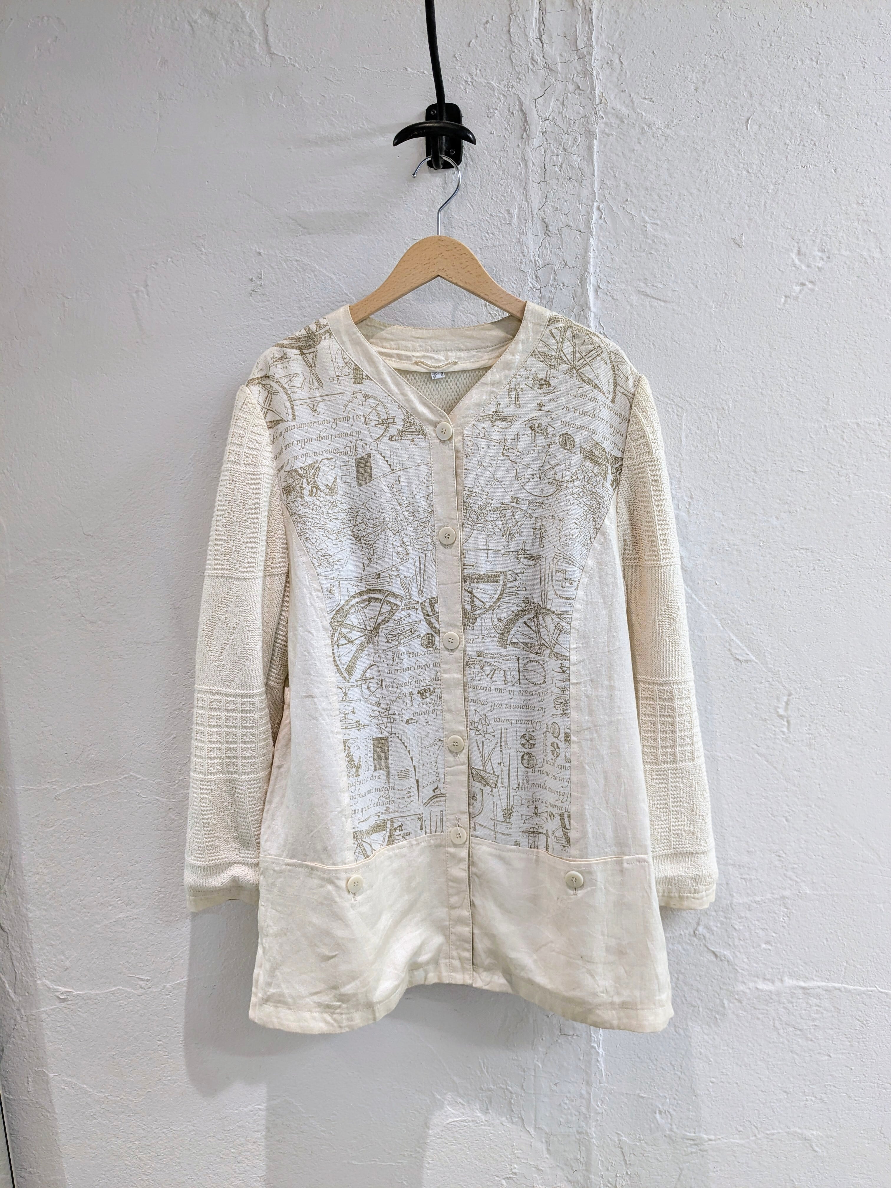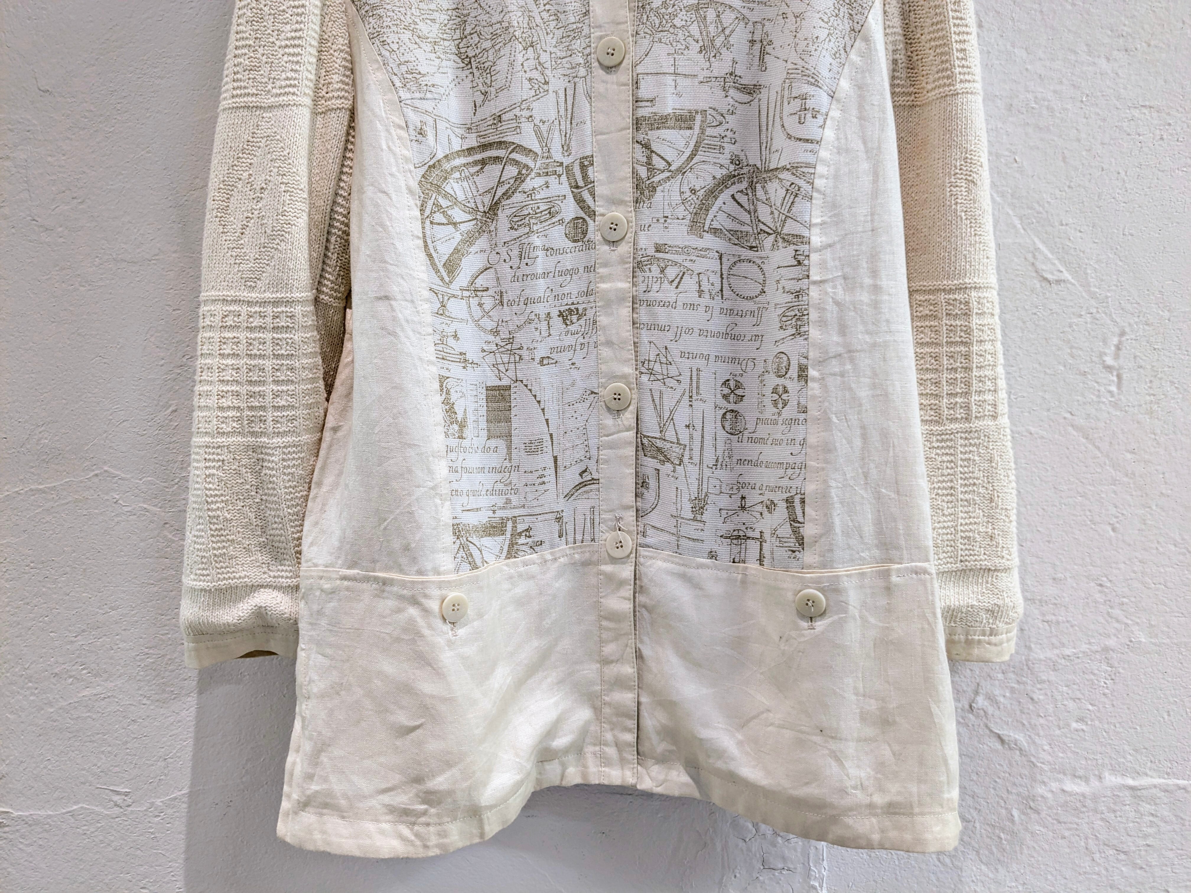 EURO VINTAGE ART PRINT KNIT DOCKING NOCOLLAR JACKET