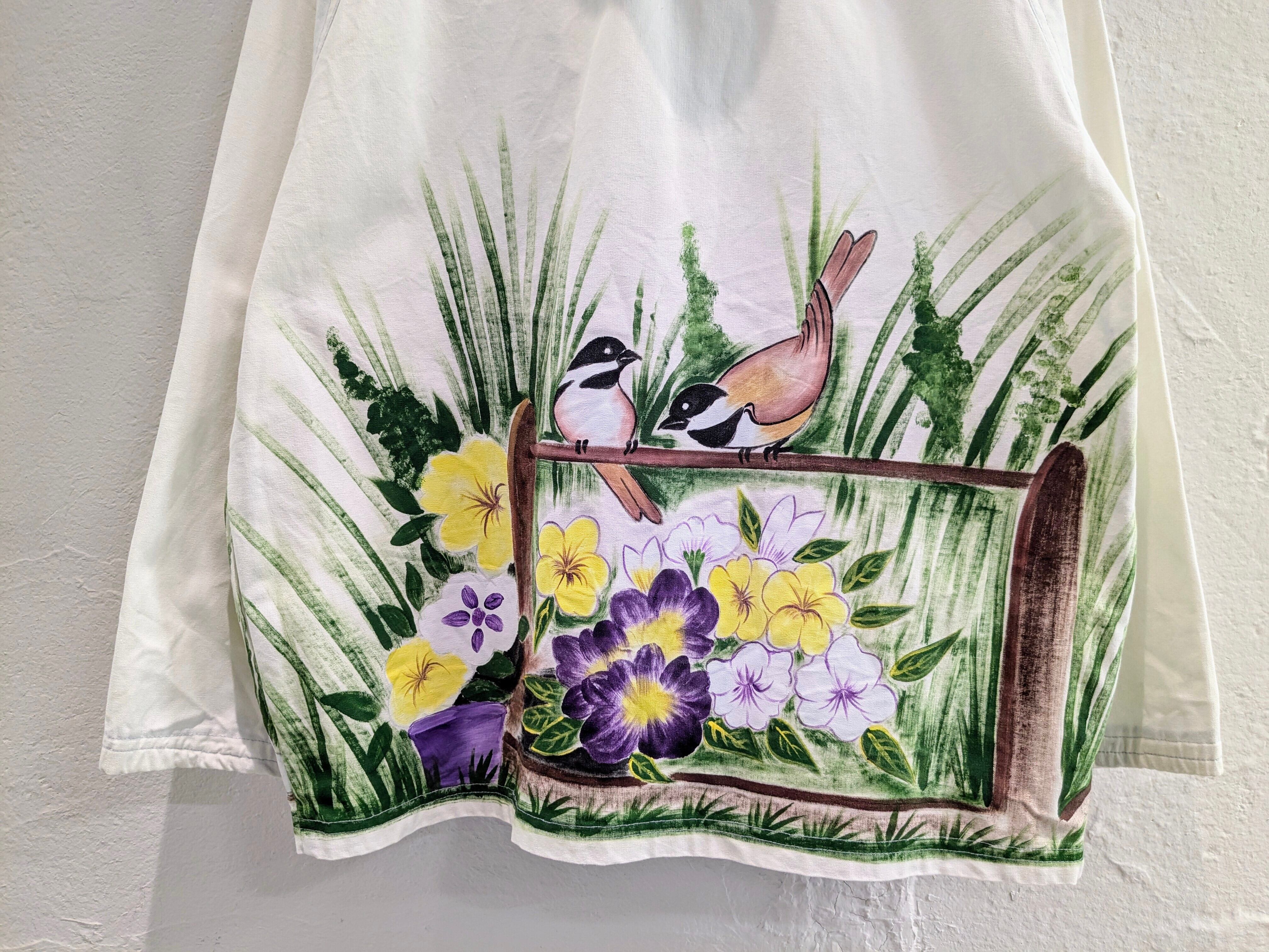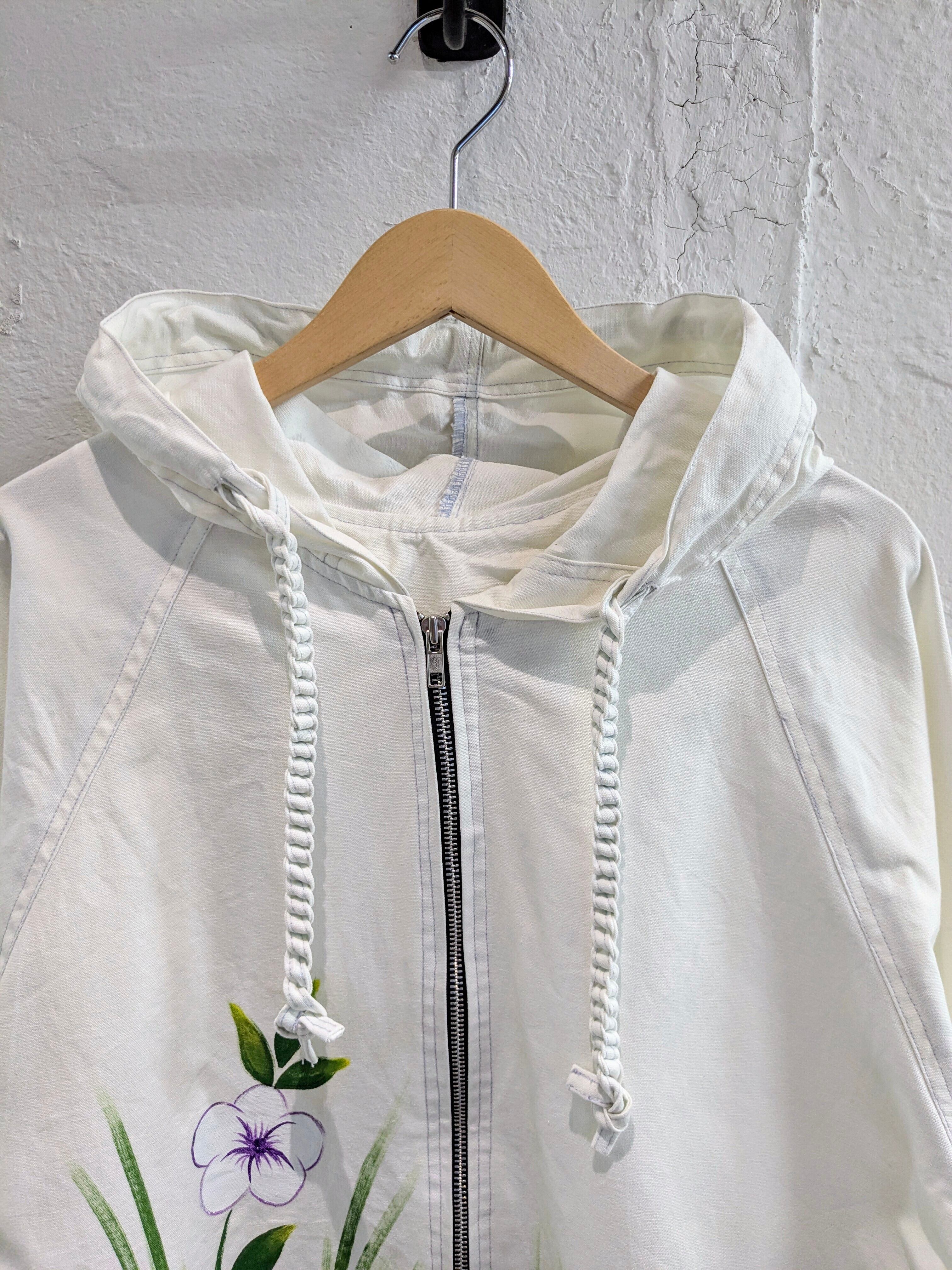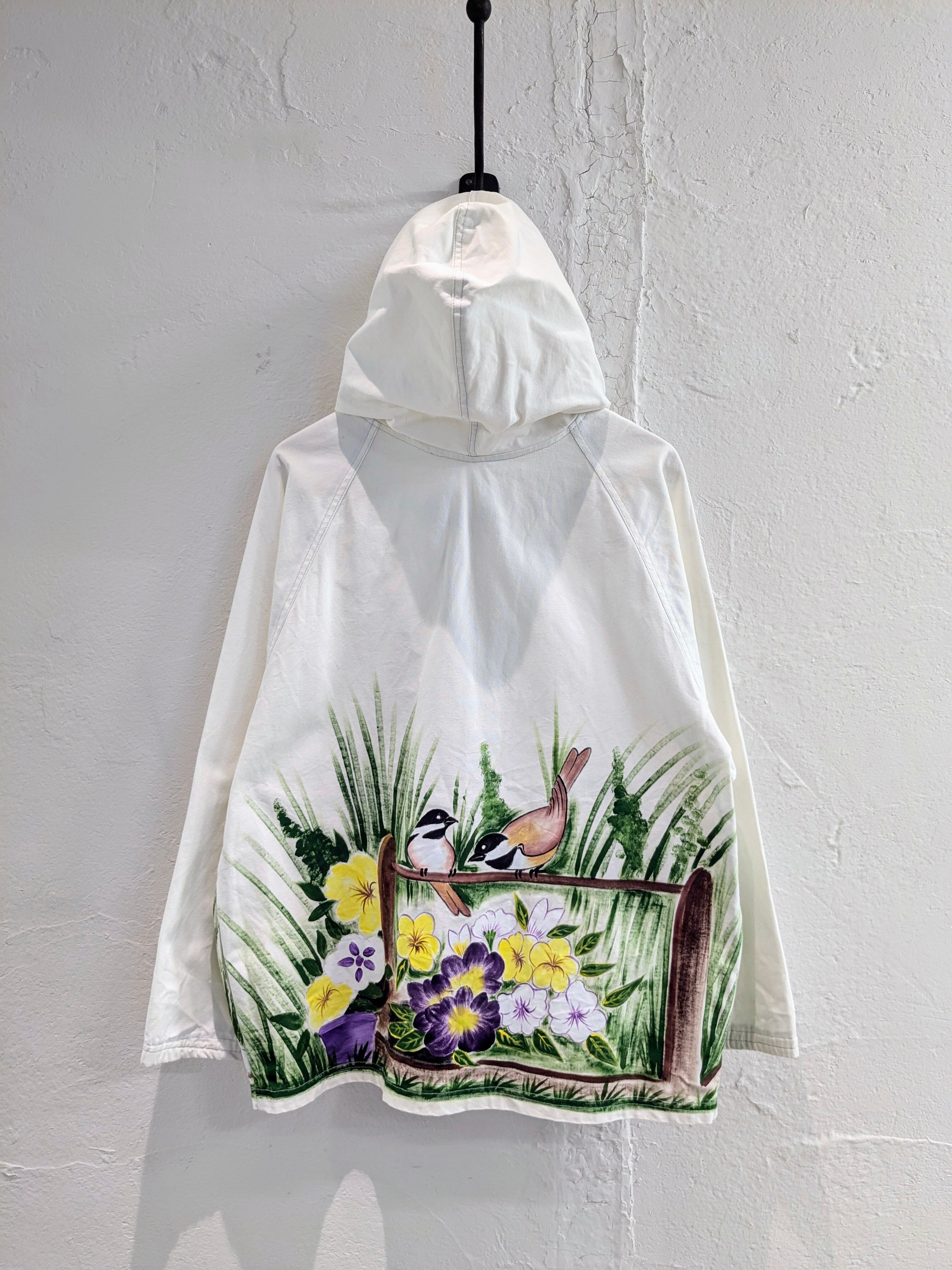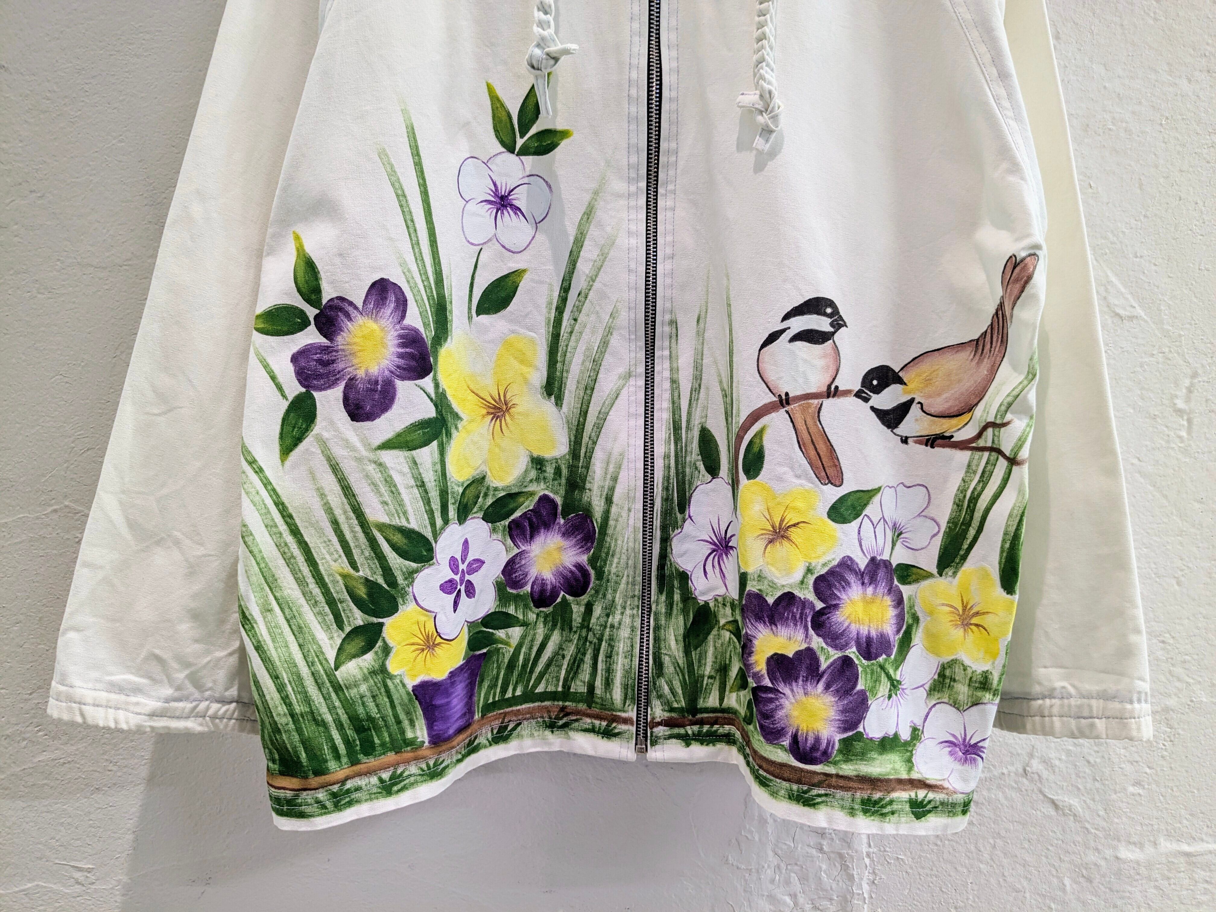 HAND DRAWING FLOWER & BIRD ZIP BLOUSON