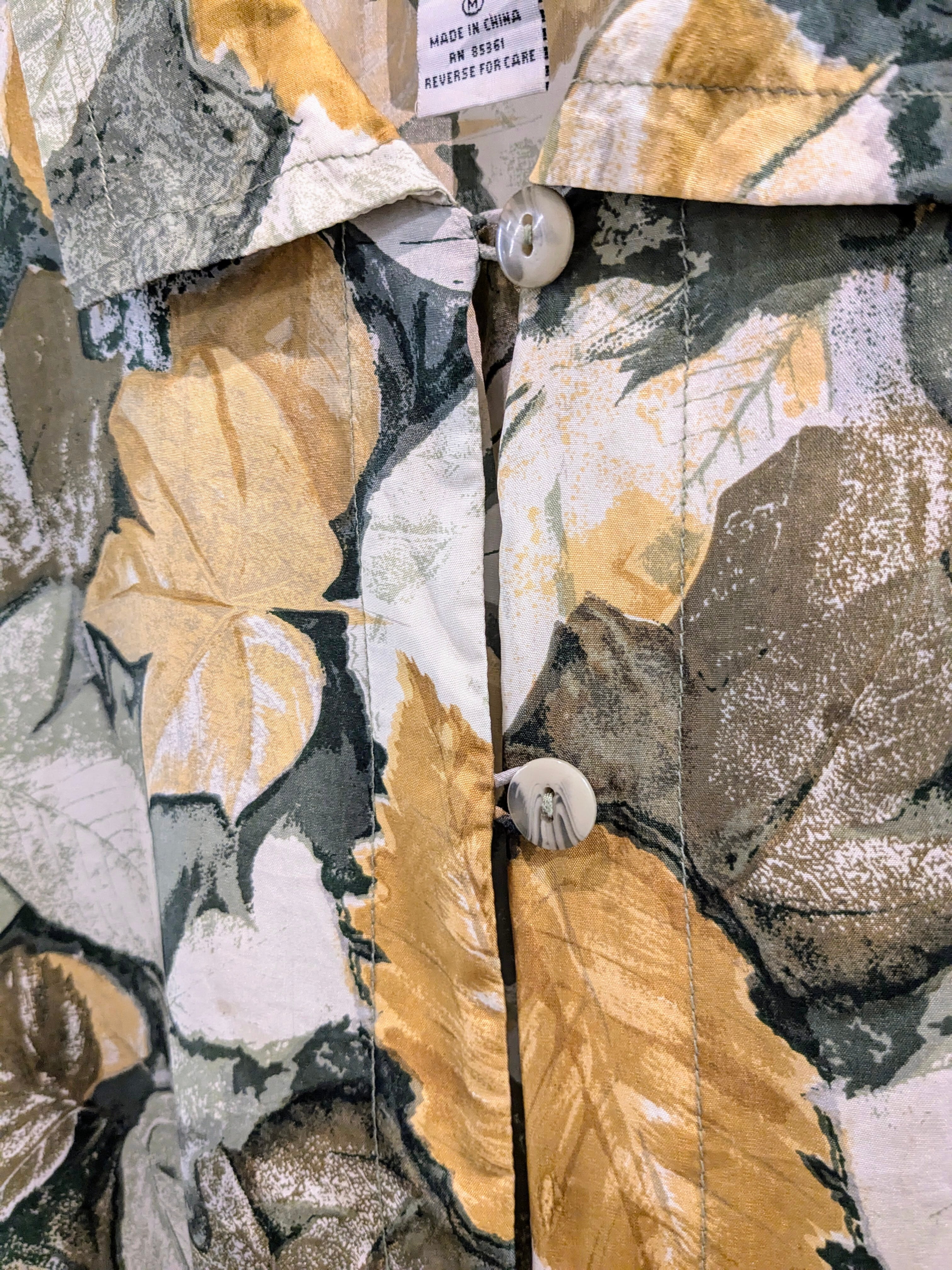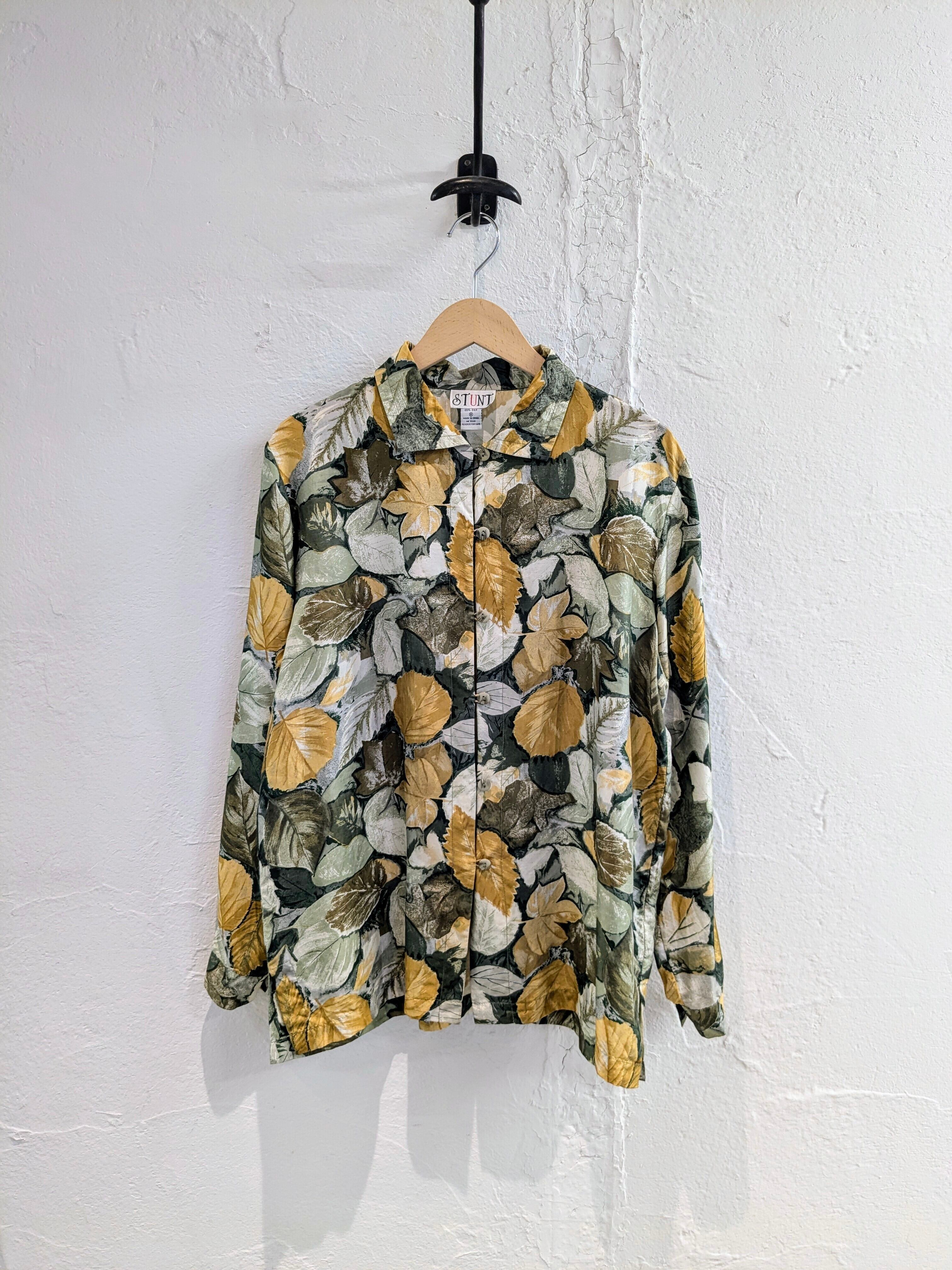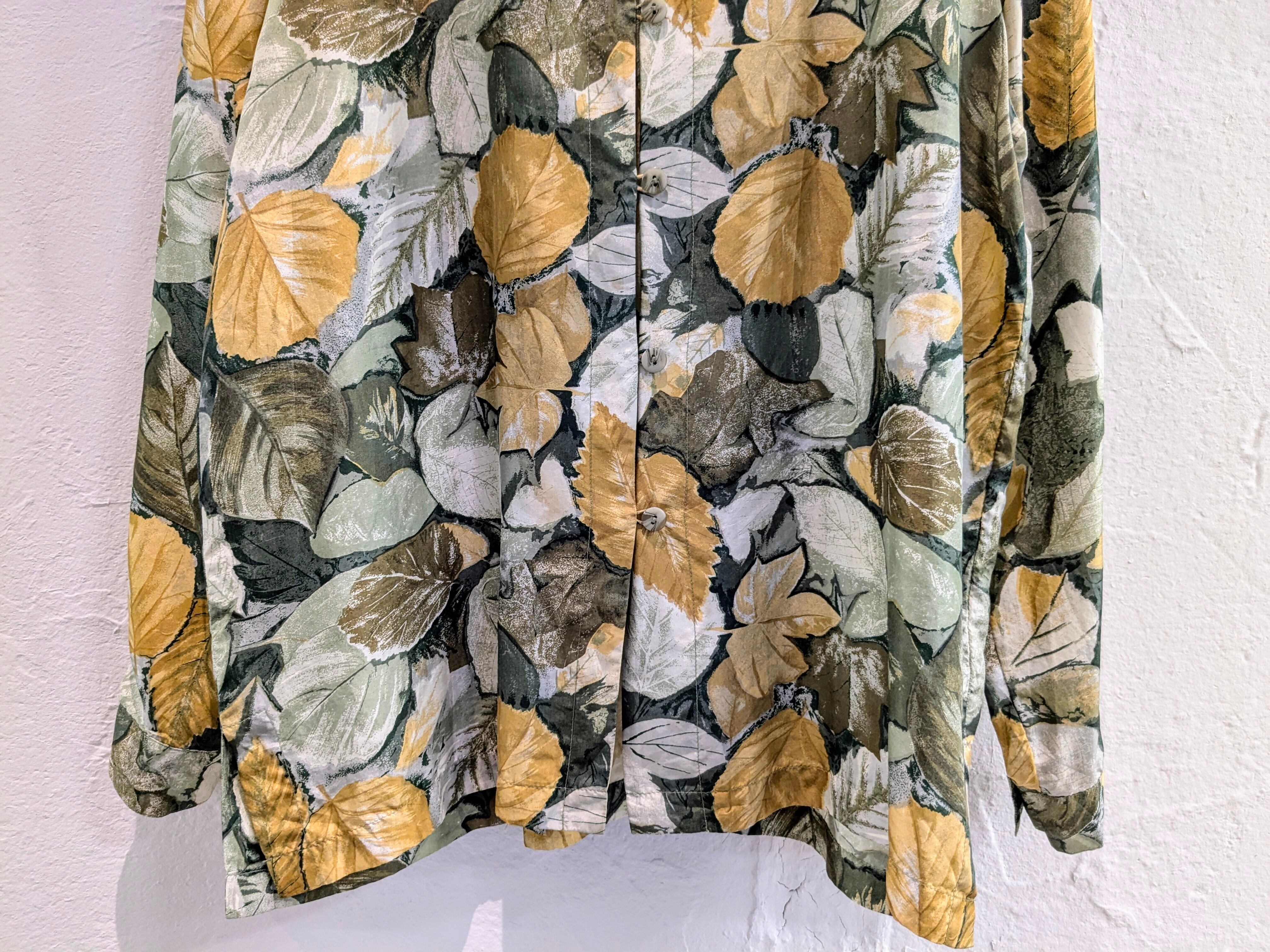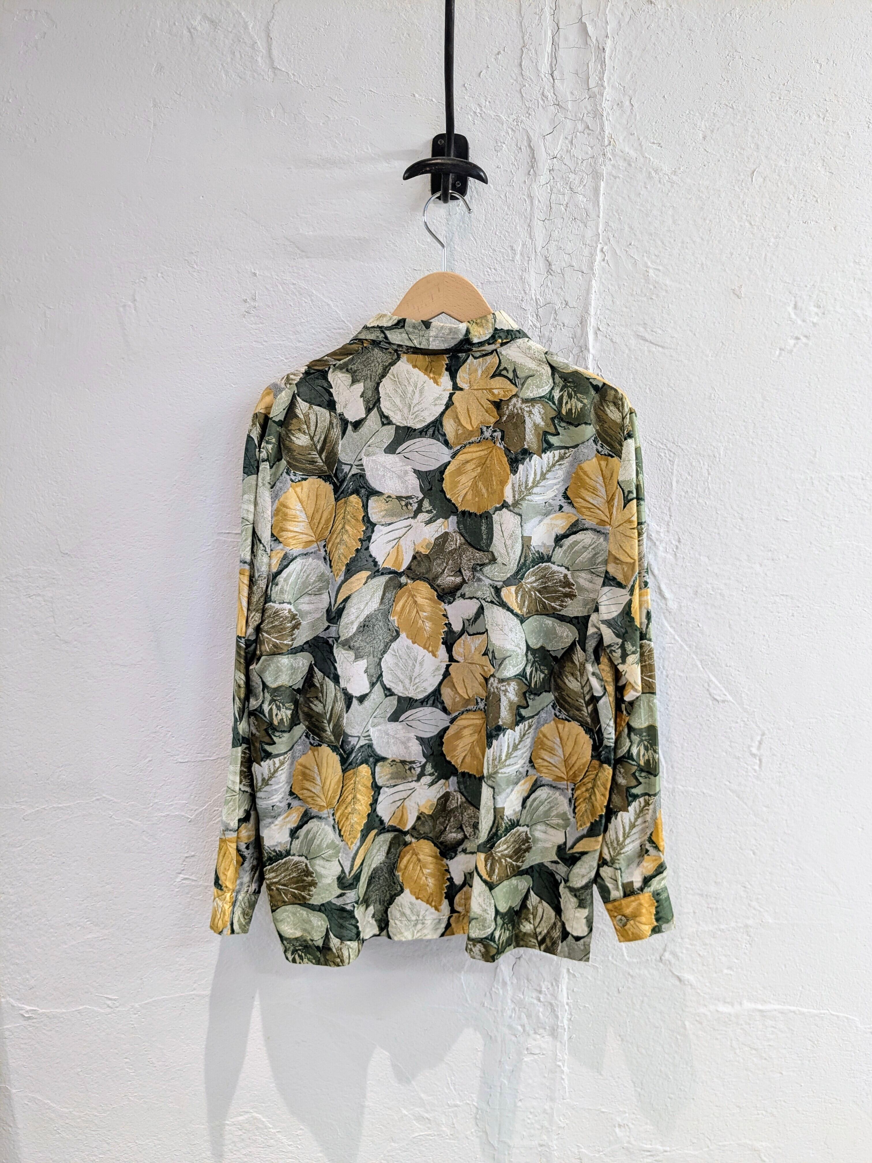 ART LEAF DRAWING PRINT DESIGN SILK SHIRT