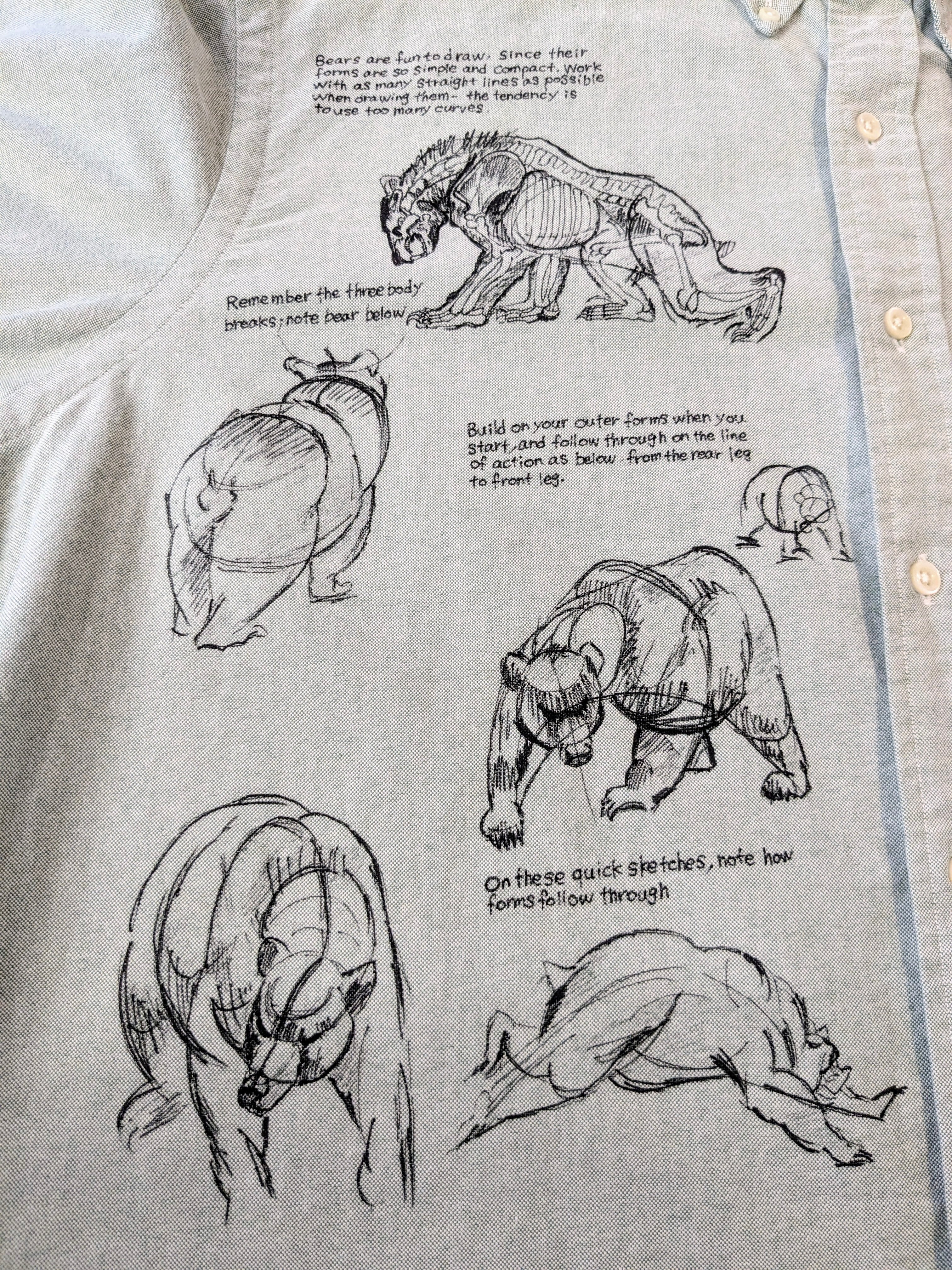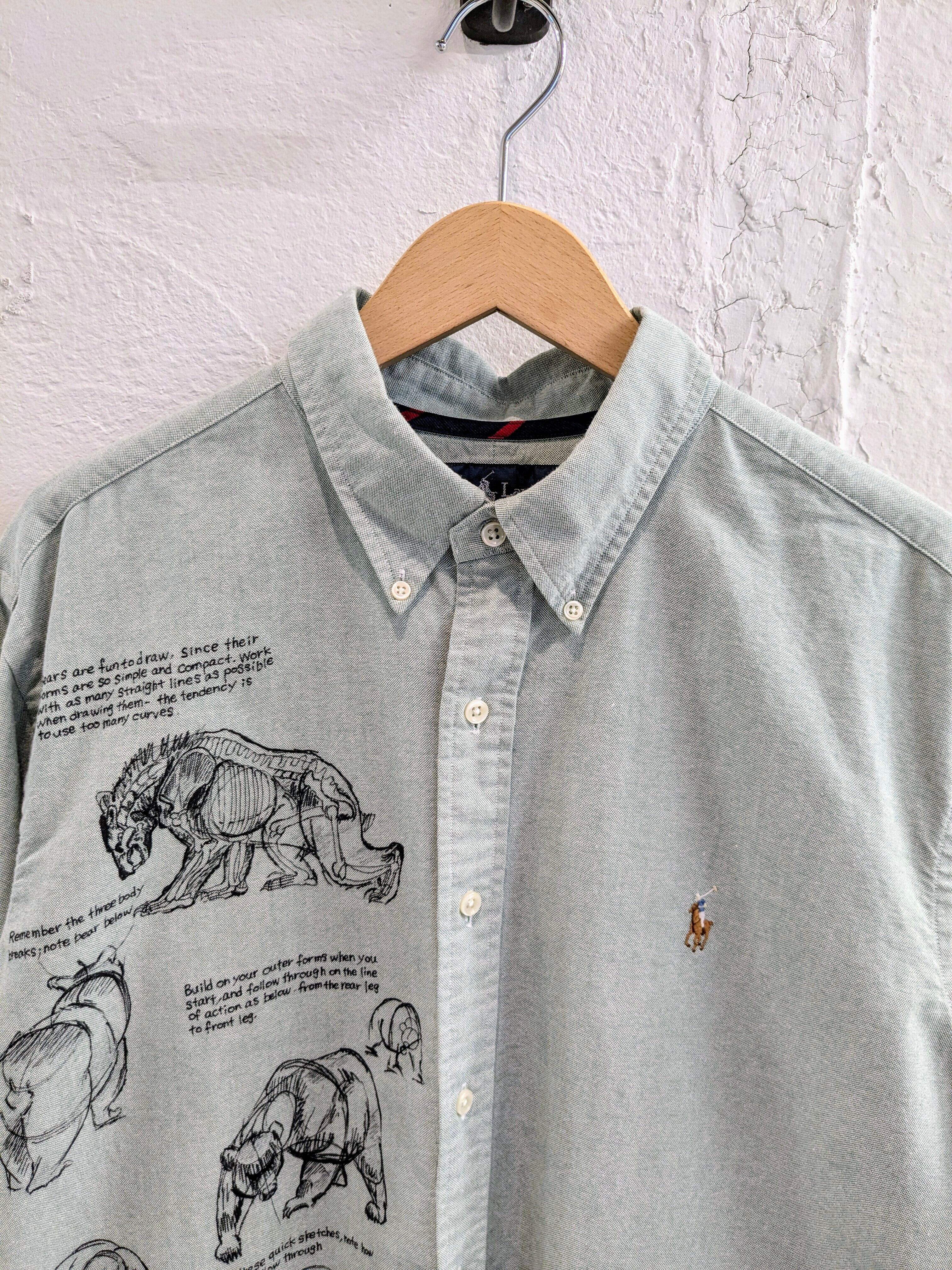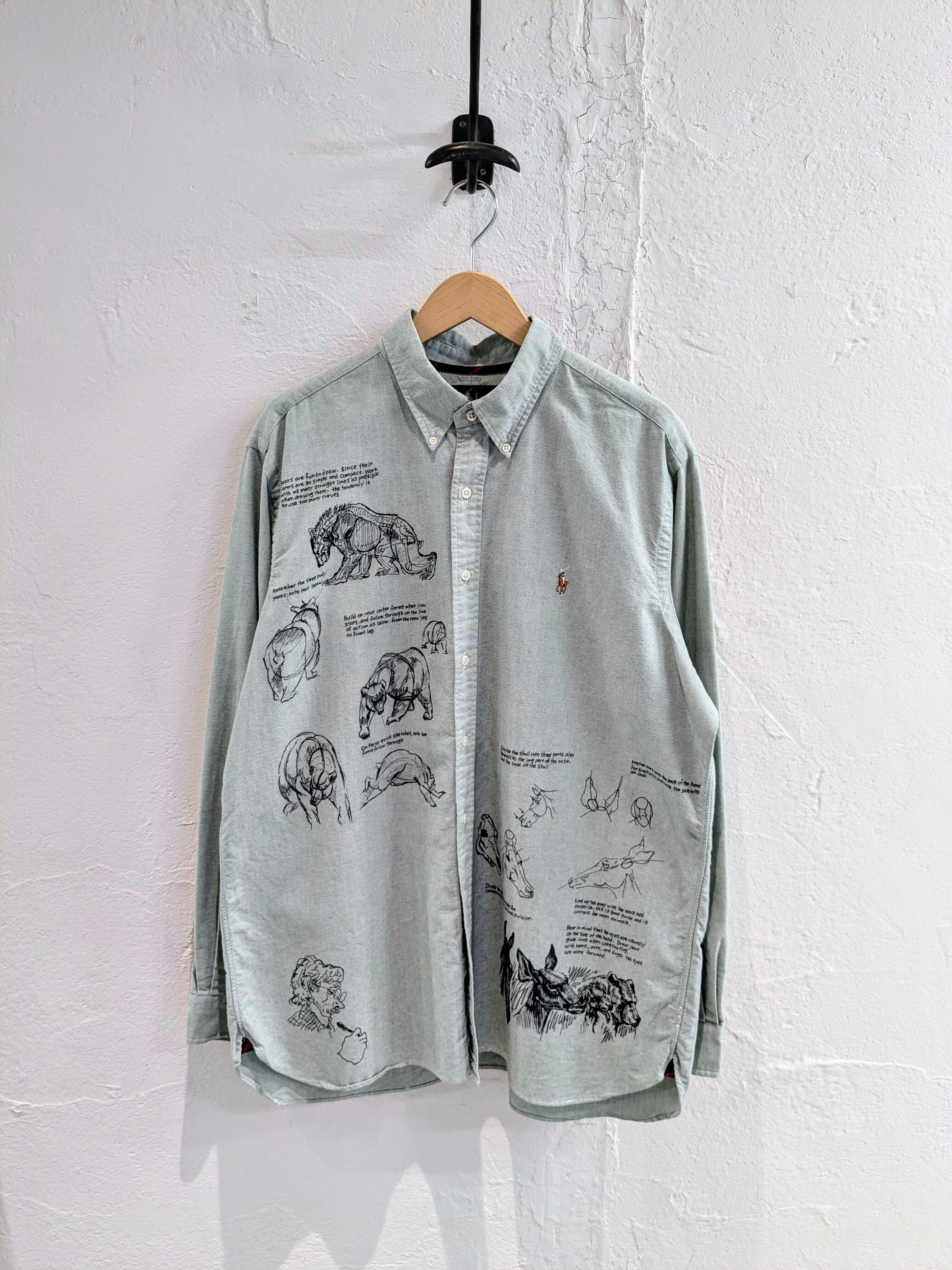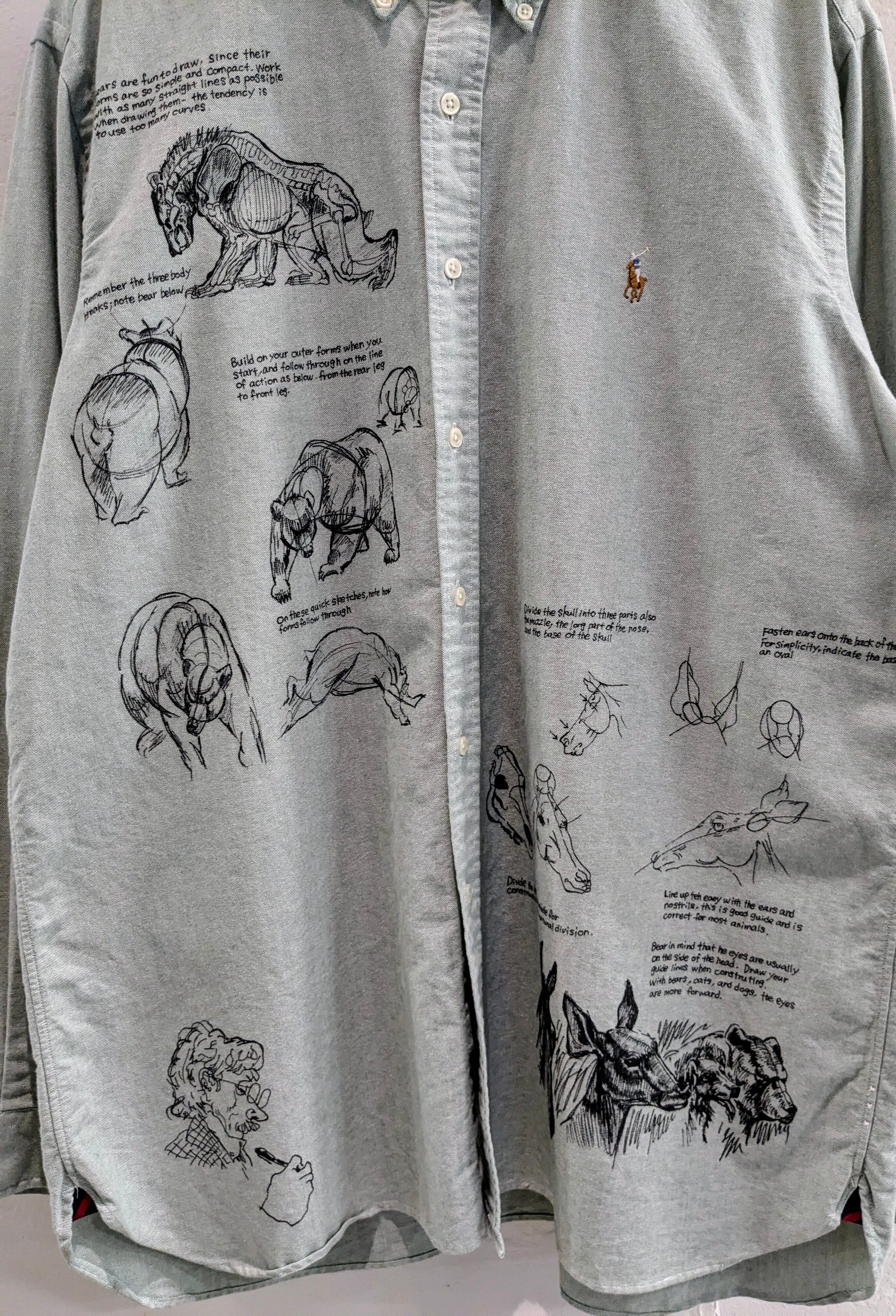 USEDのラルフローレンのシャツに、手描きのイラストが描かれた1枚。まさに世界に1点物。