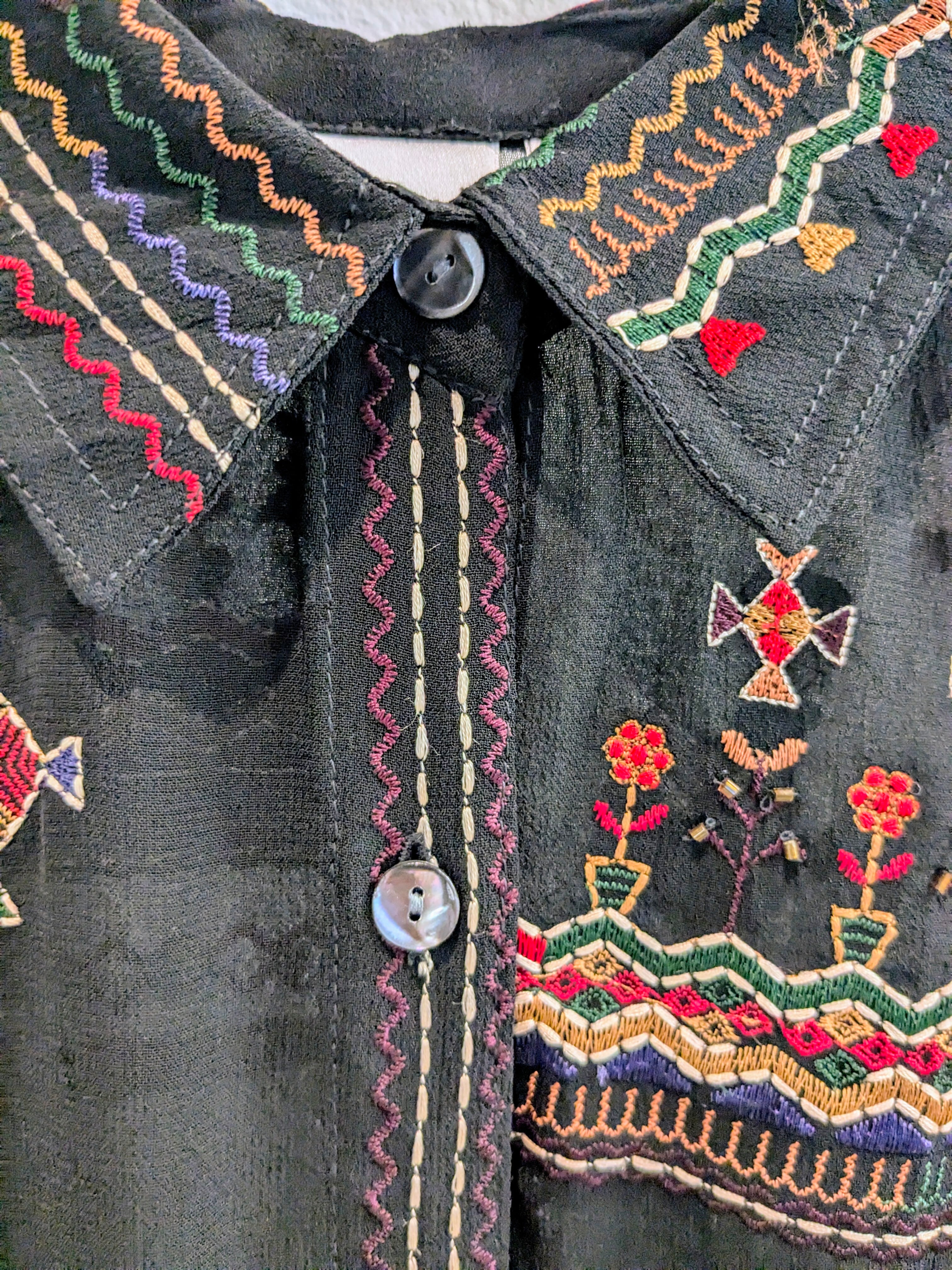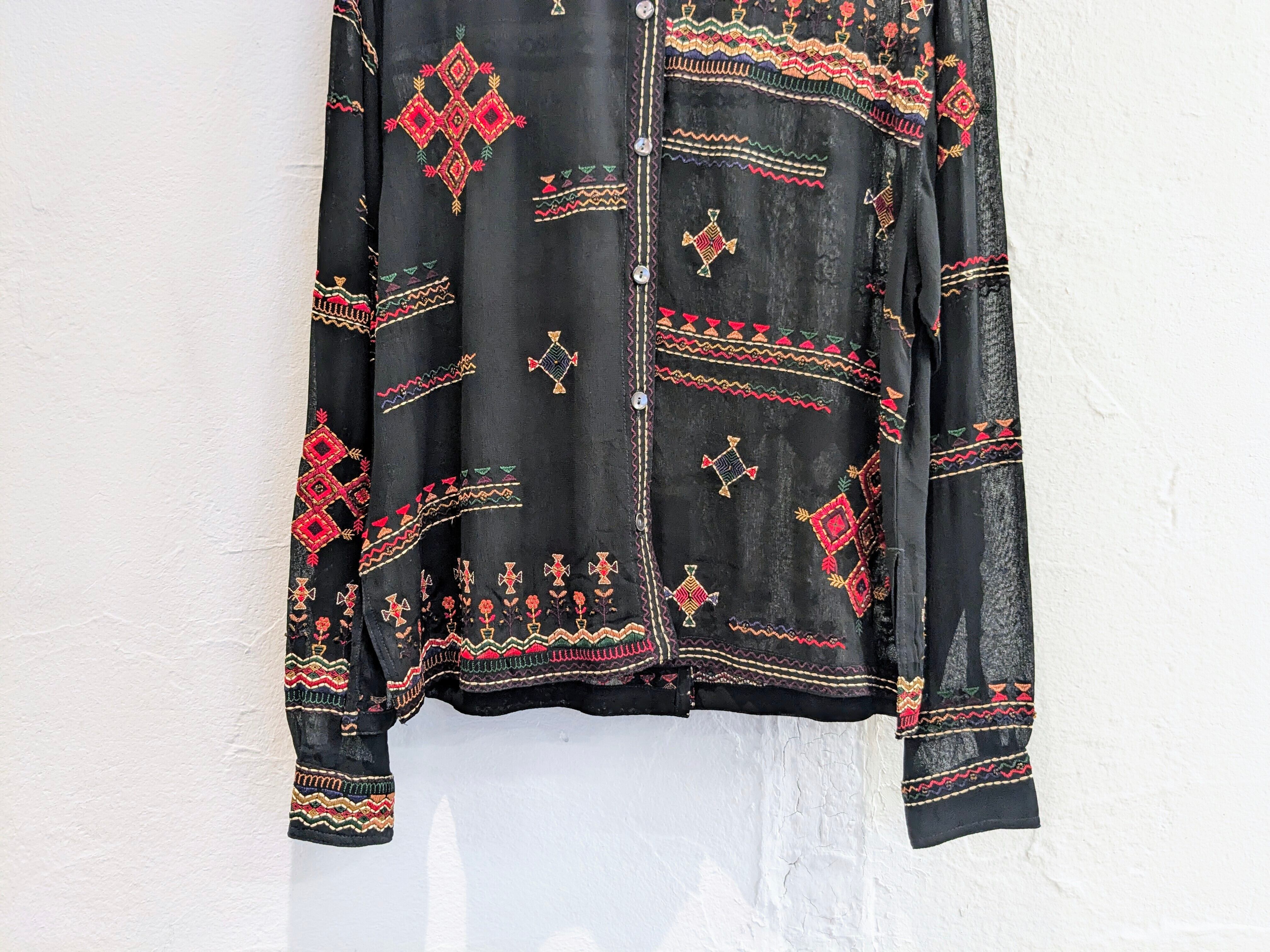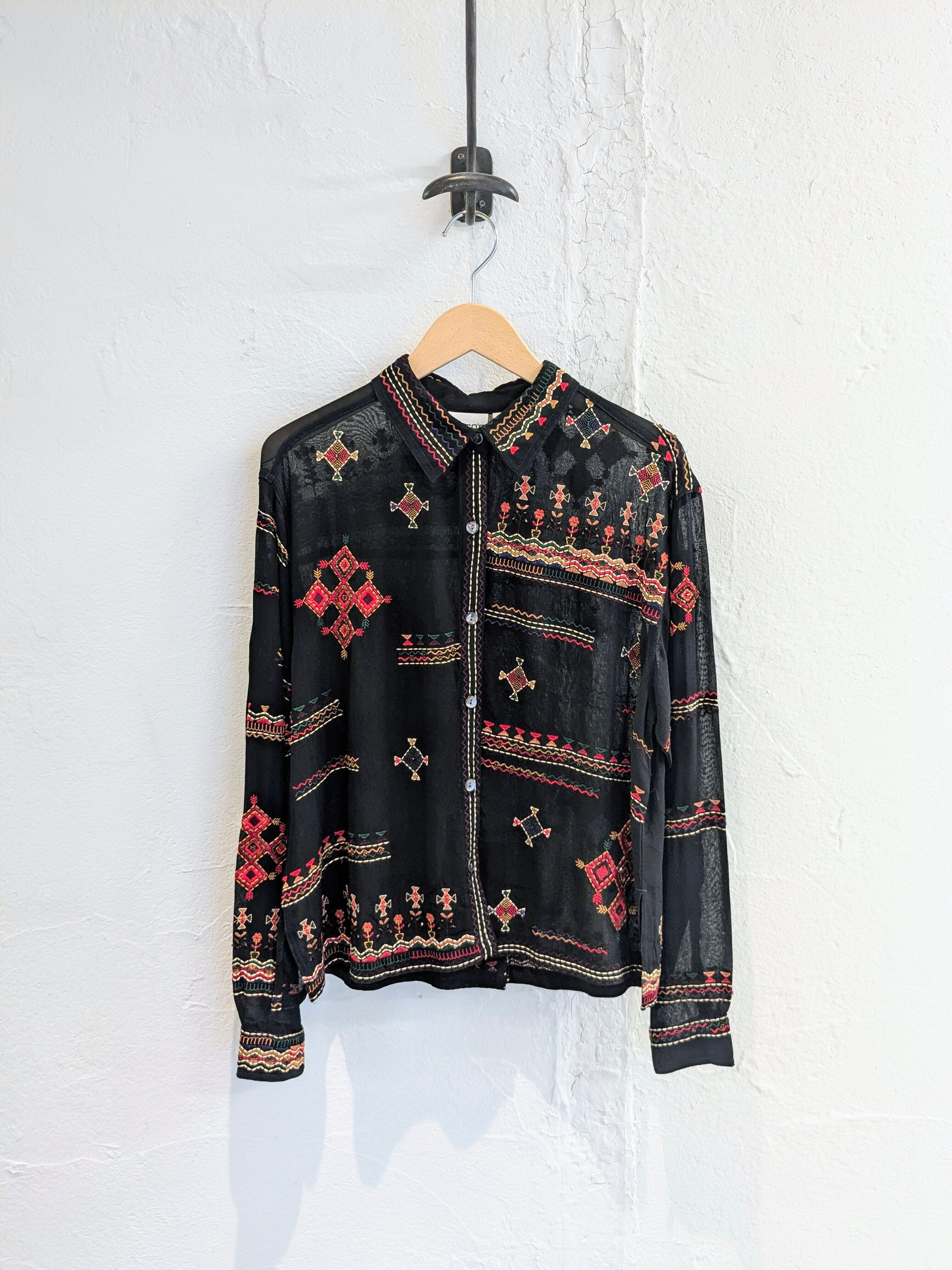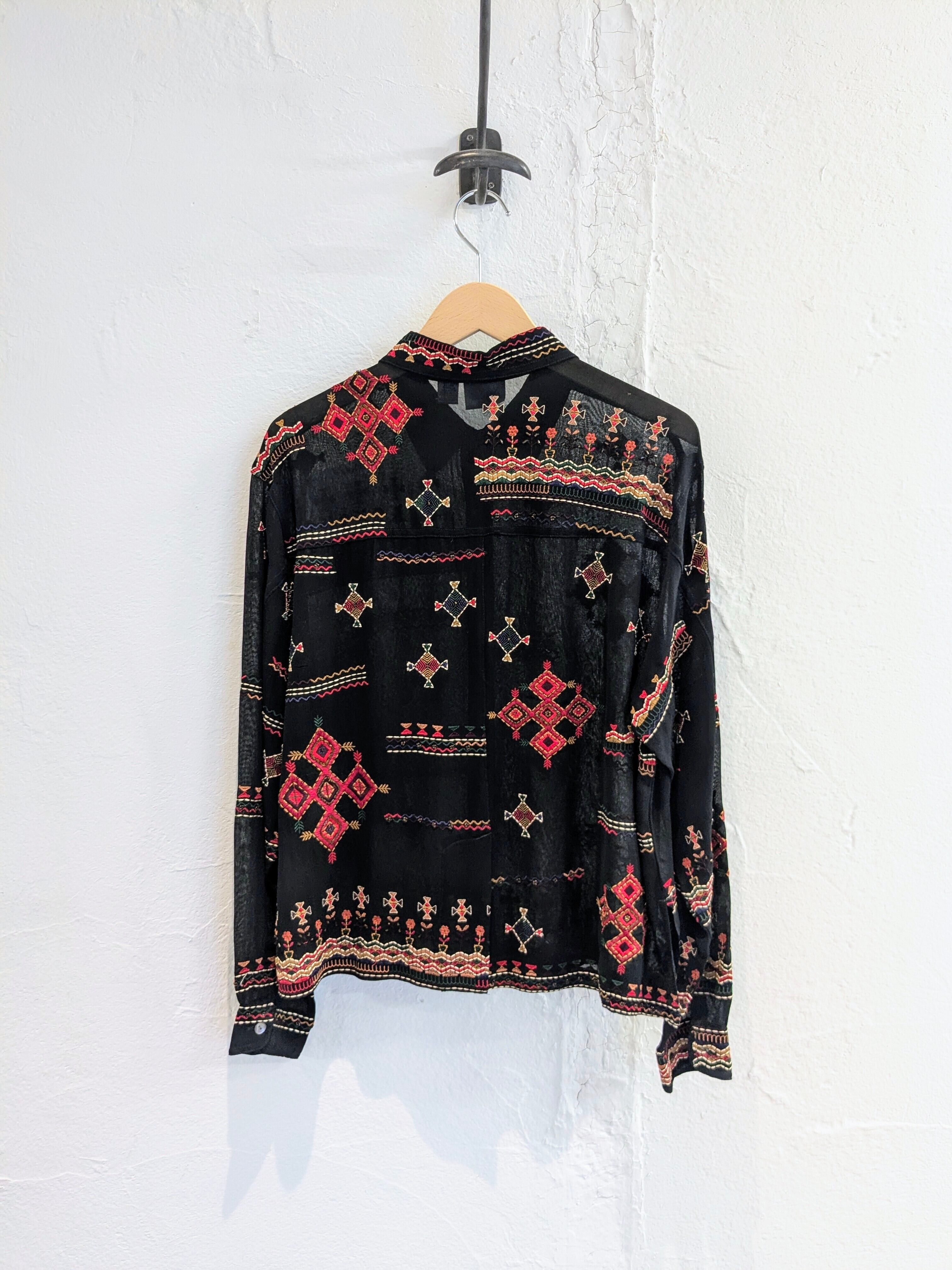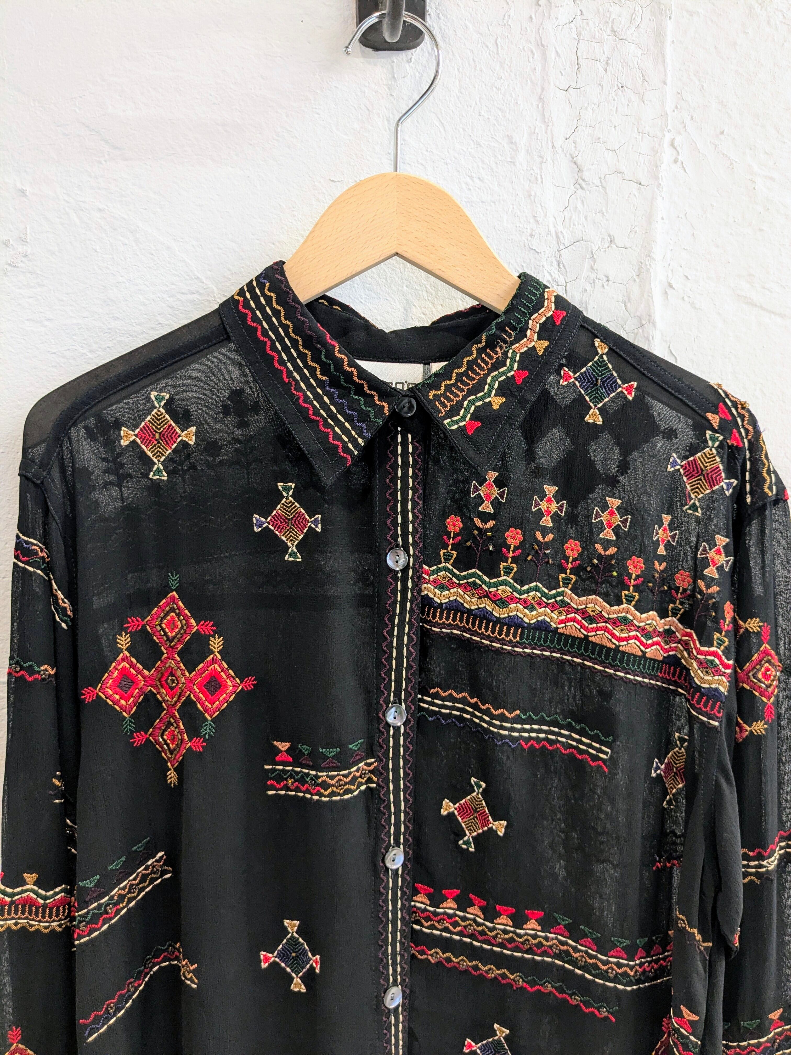 CHICO'S ETHNIC EMBROIDERY SHEER SHIRT BLOUSON