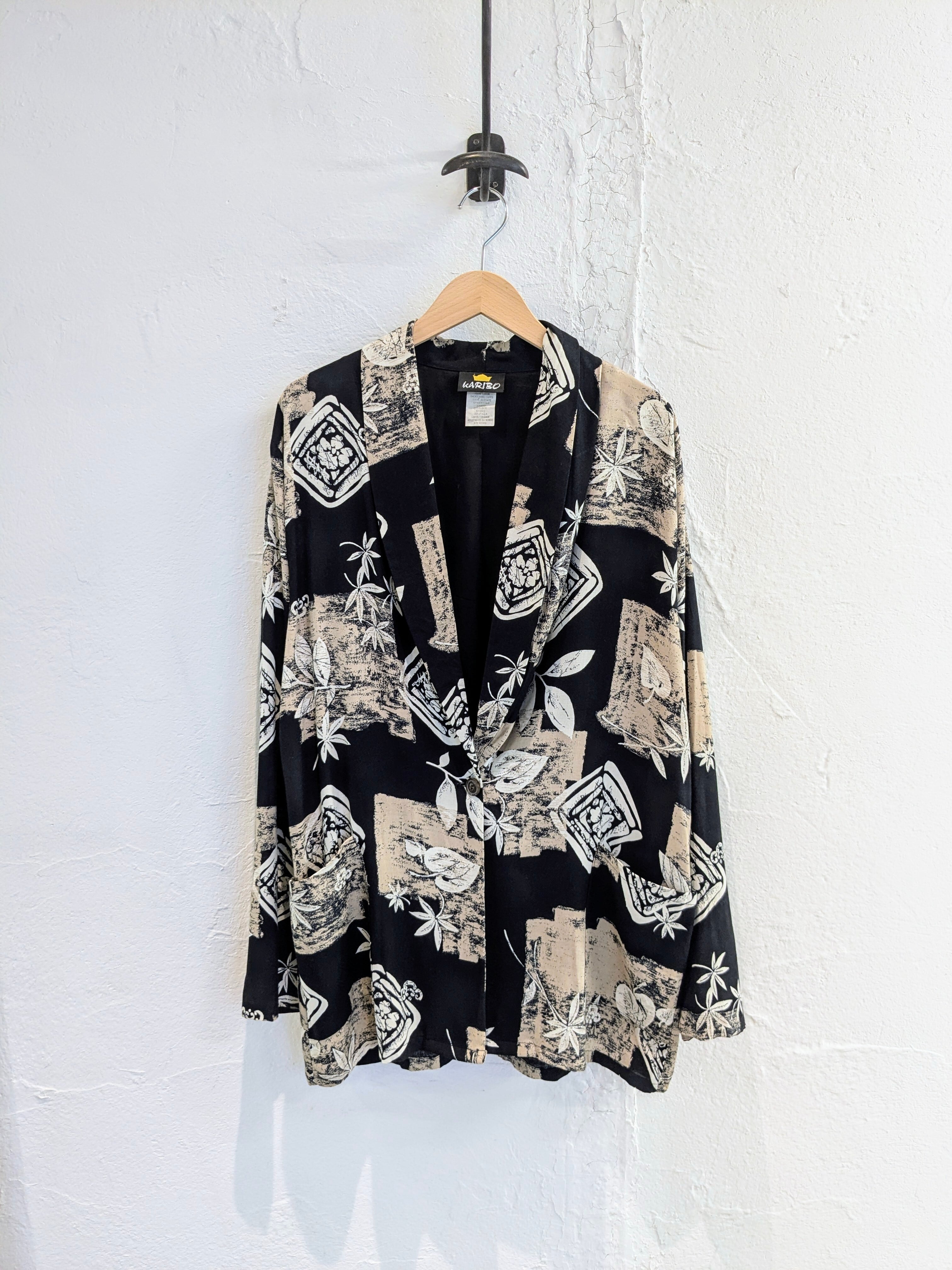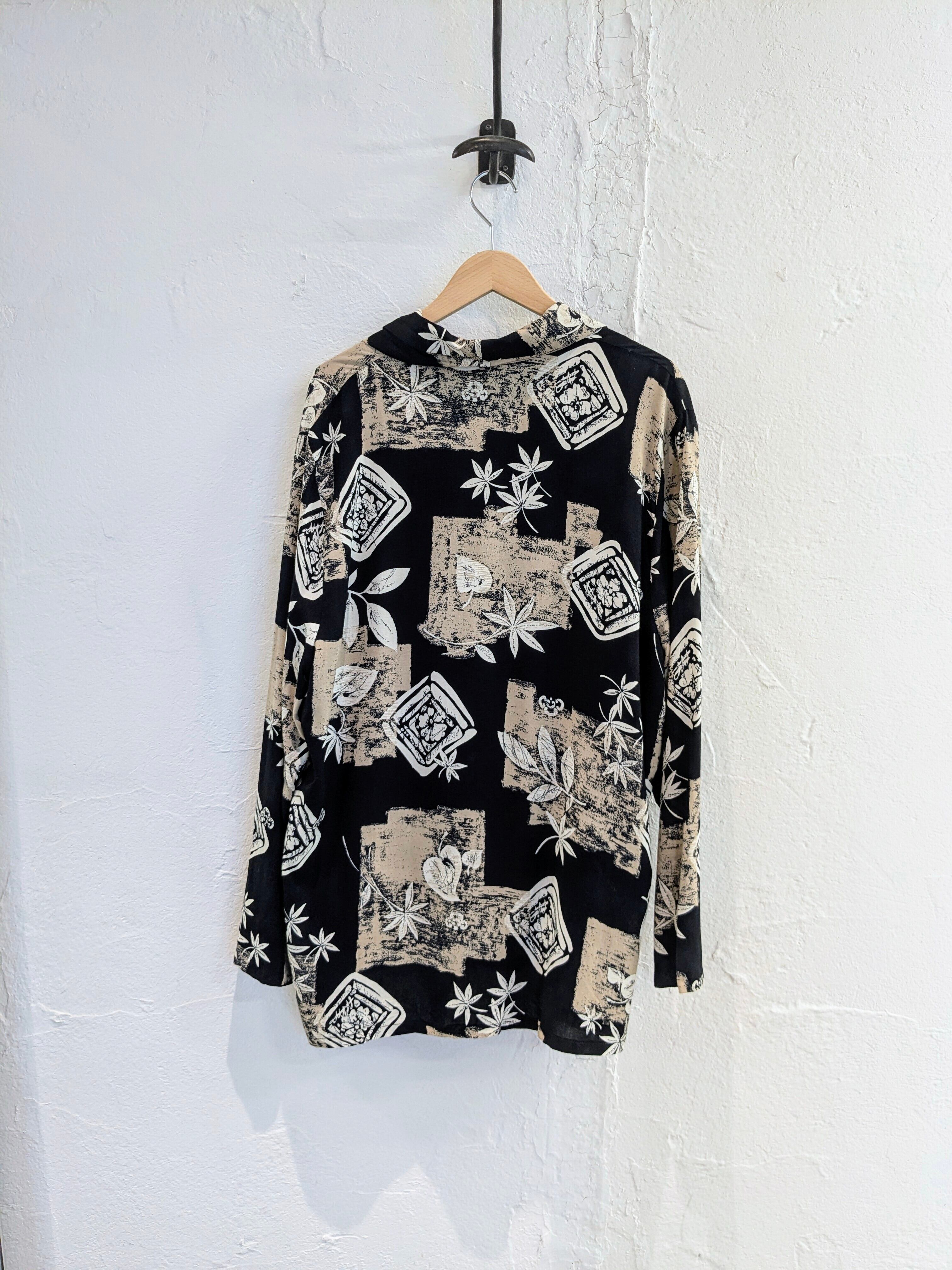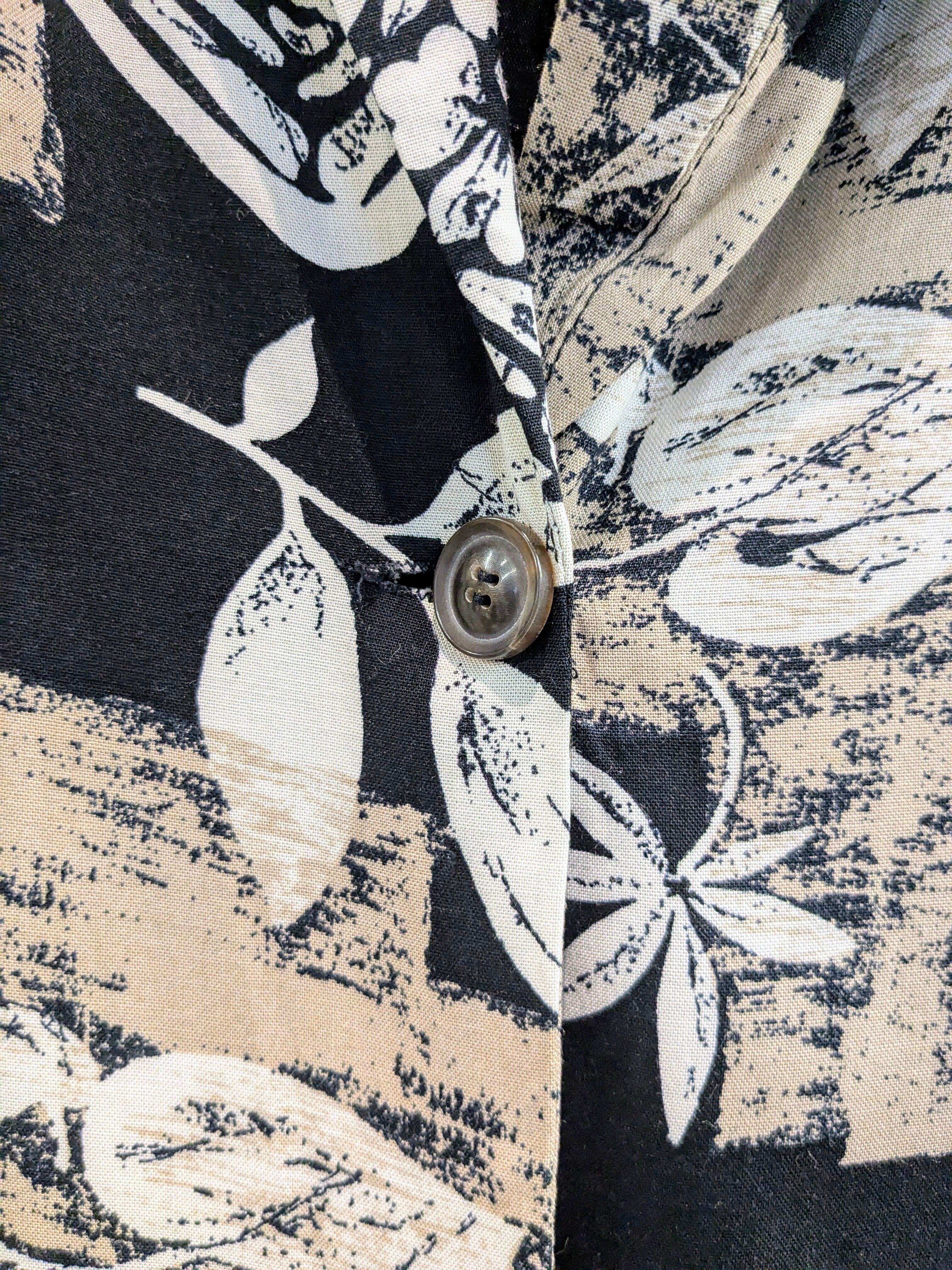 ART LEAF PATTERN BLACK SHIRT JACKET