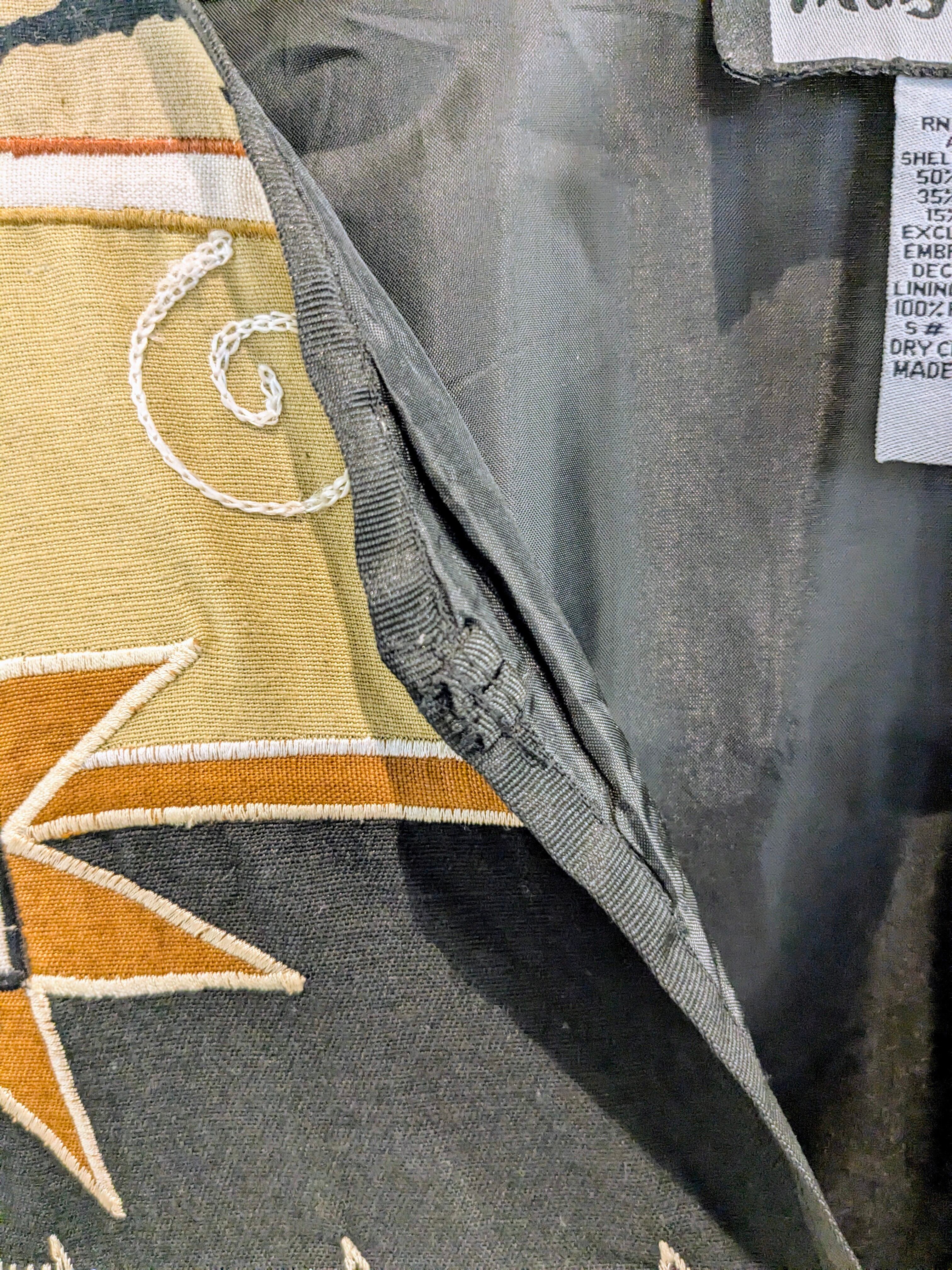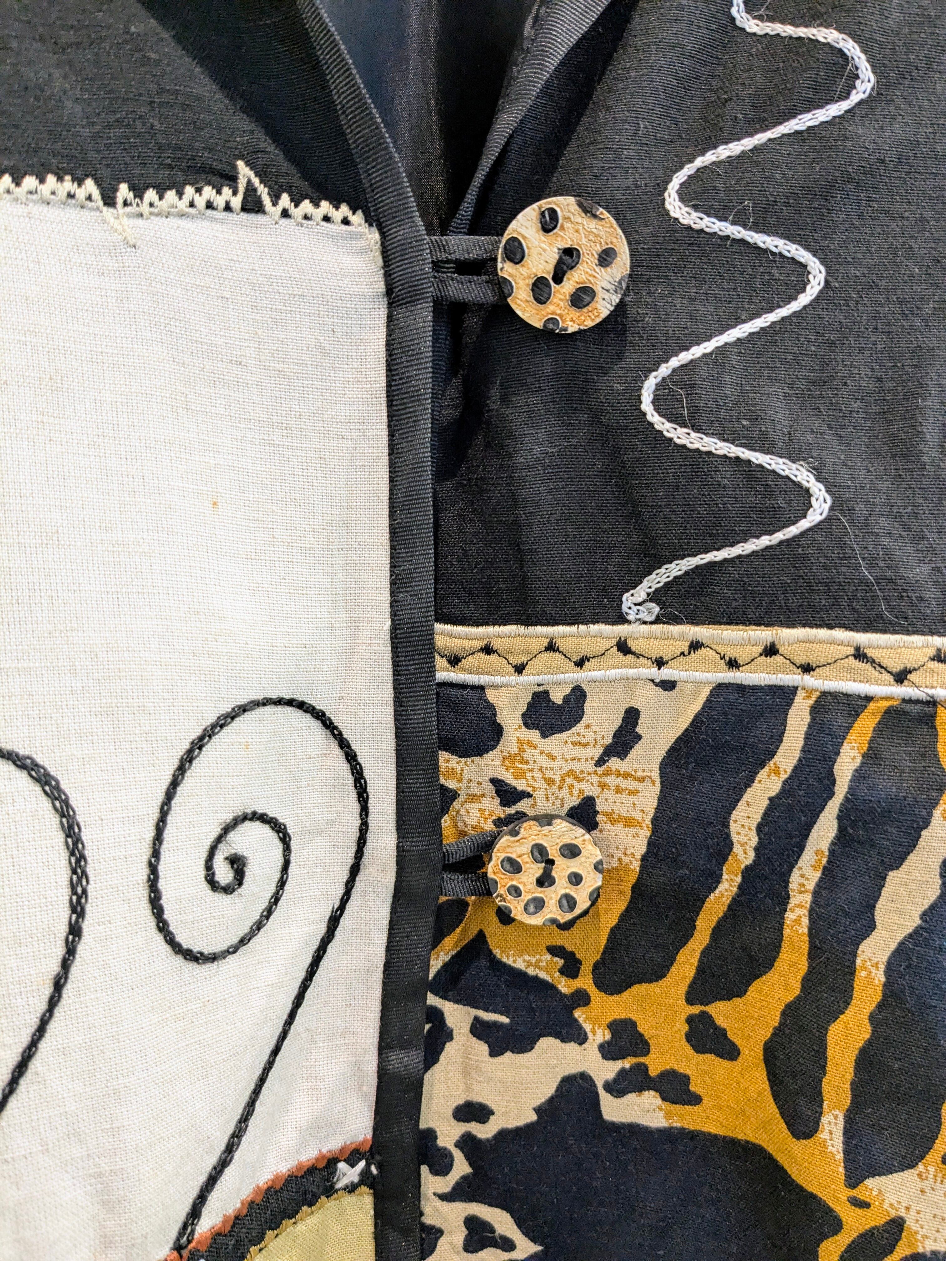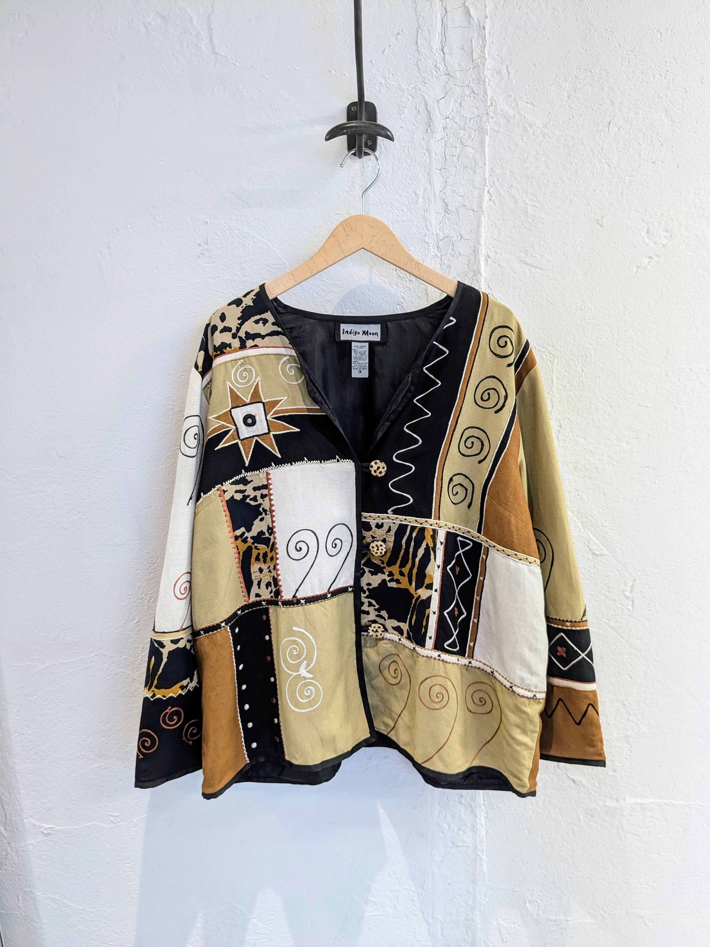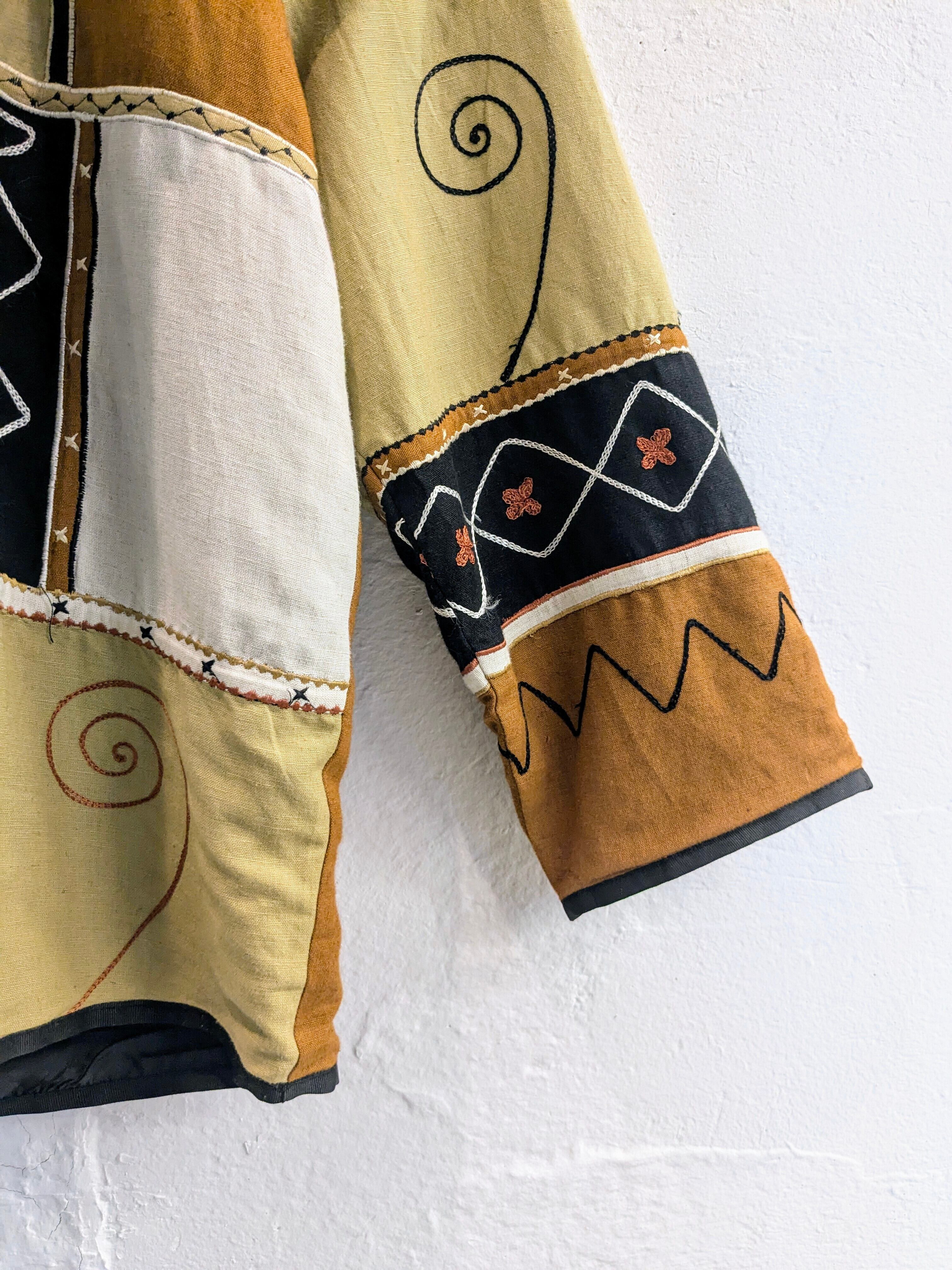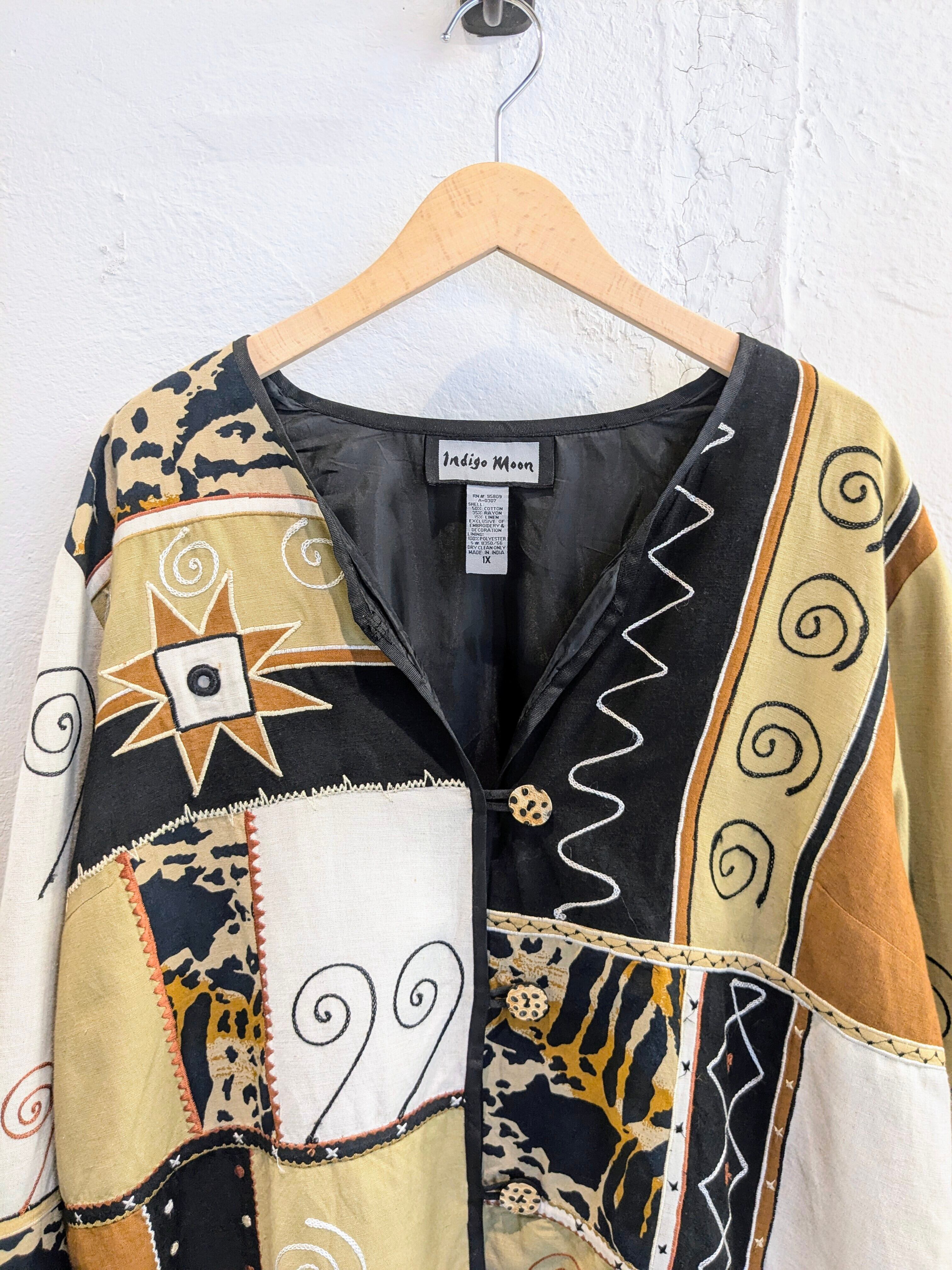 ETHNIC PATCHWORK DESIGN NOCOLLAR JACKET